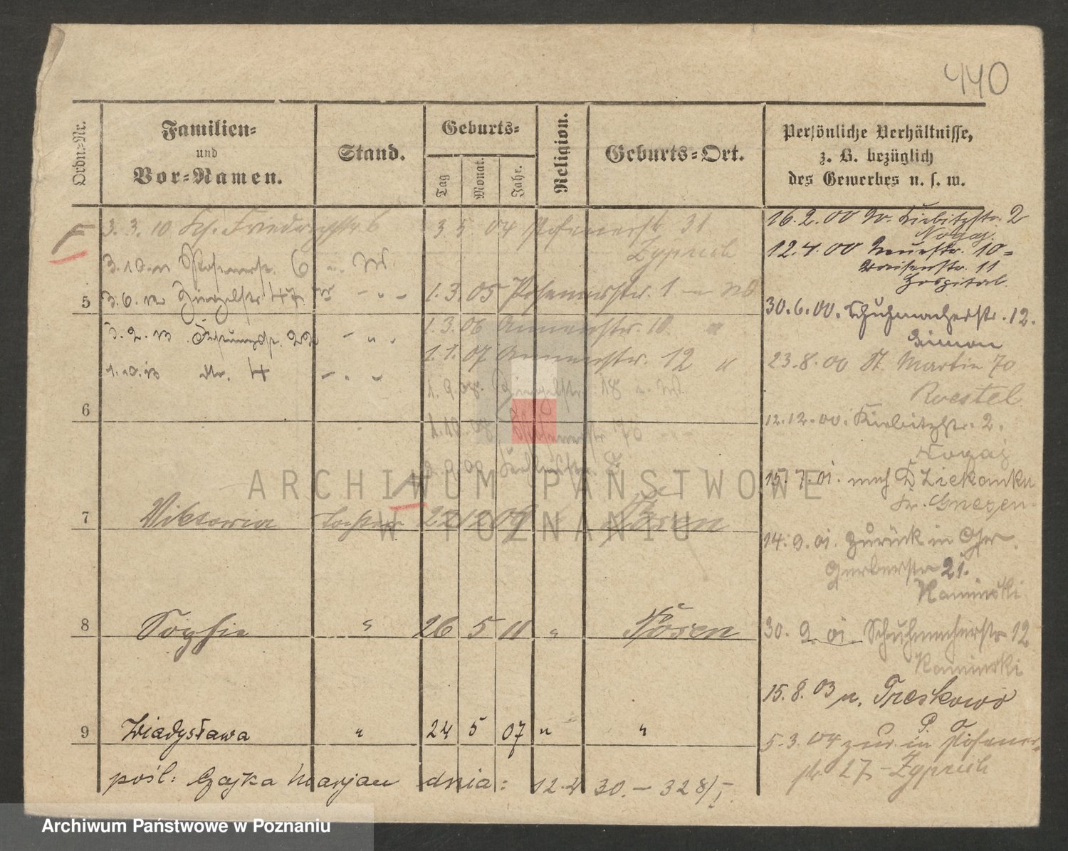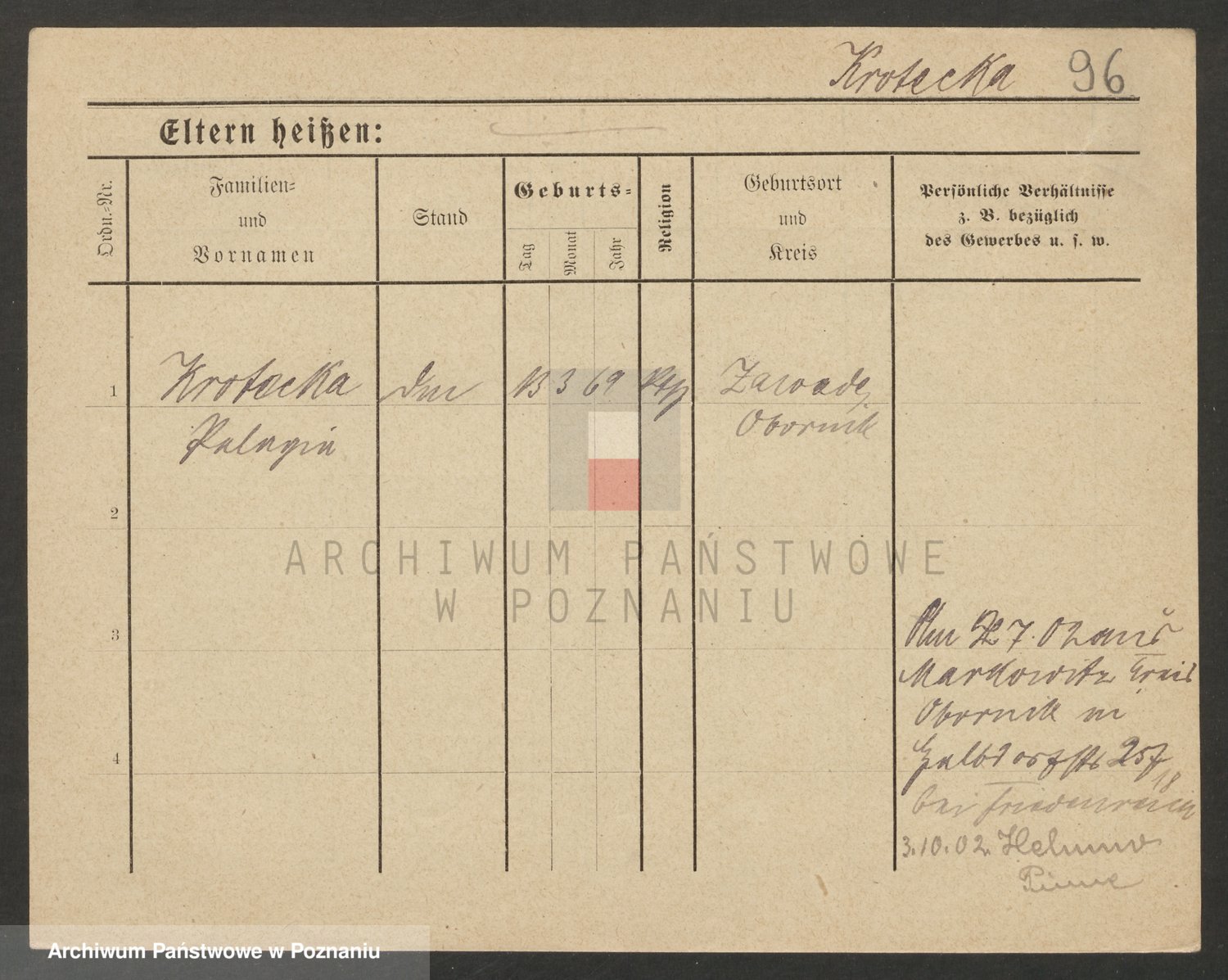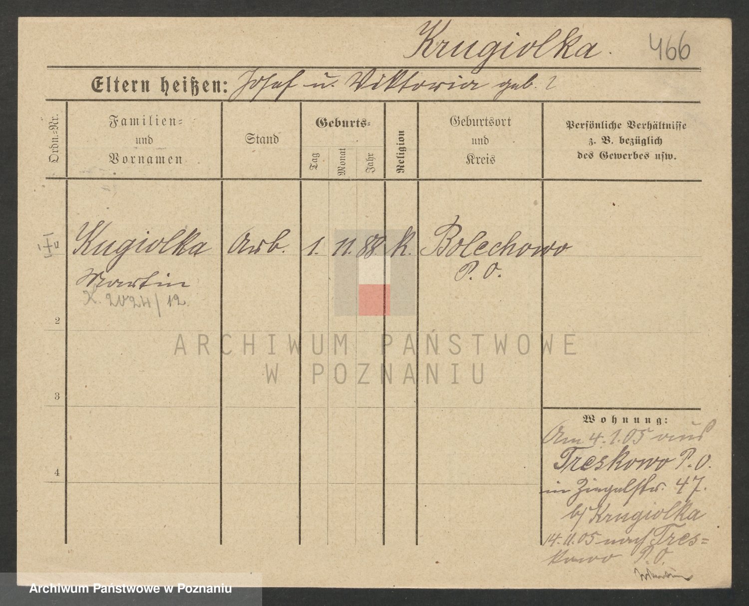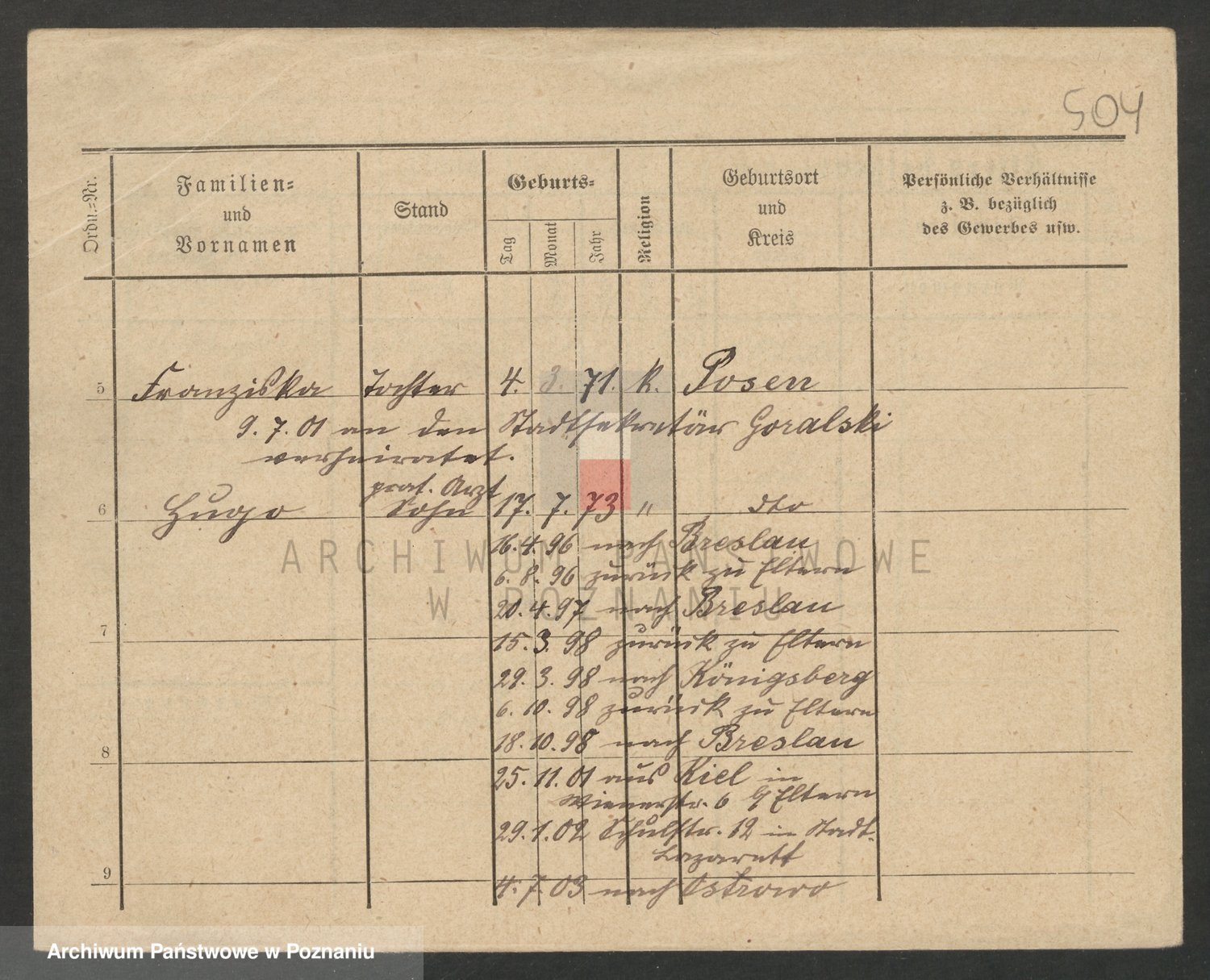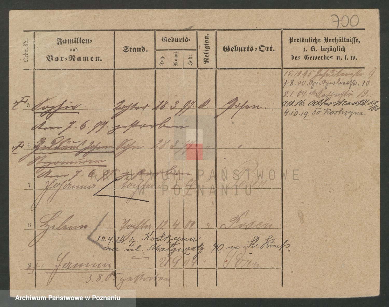 Podgląd karty osobowej dostępny jest po kliknięciu na nazwisko lub ikonkę karty. Można dokonywać powiększenia (ikony na górze) lub przechodzić między kolejnymi skanami (strzałki po bokach).