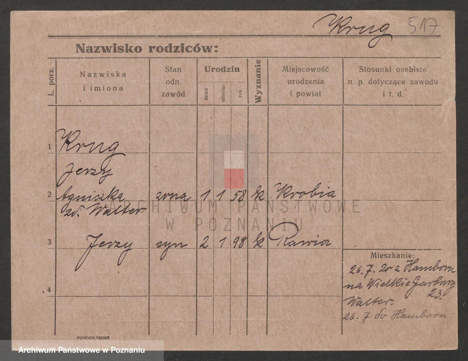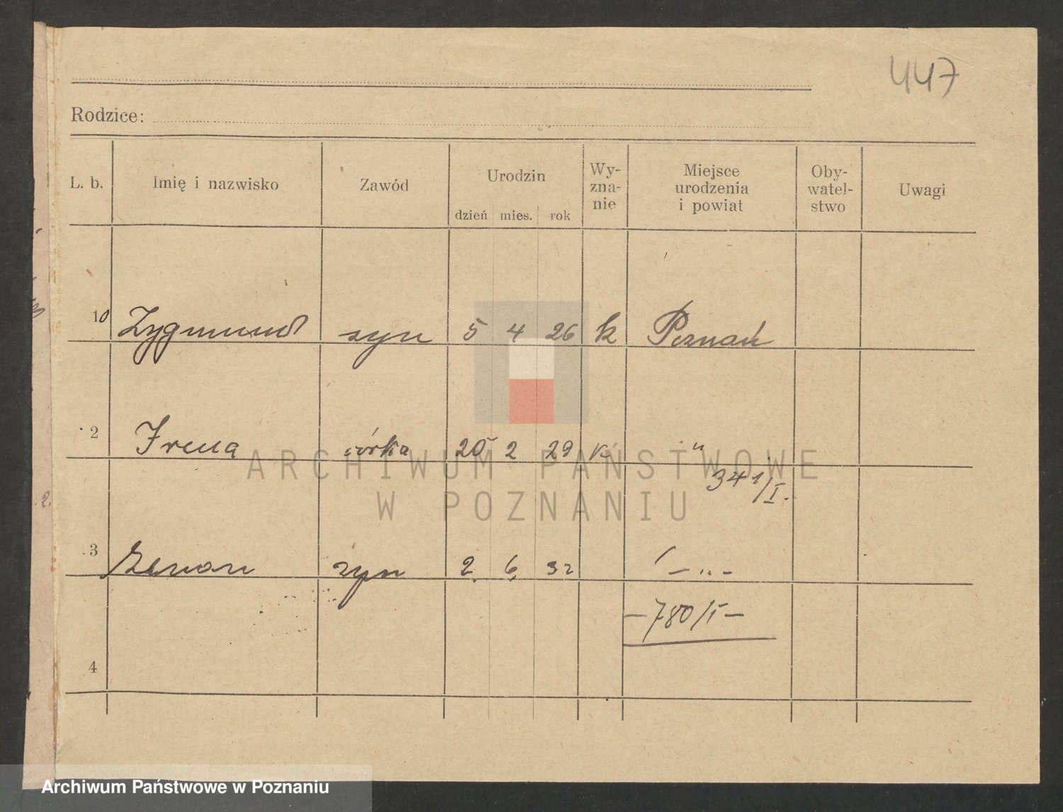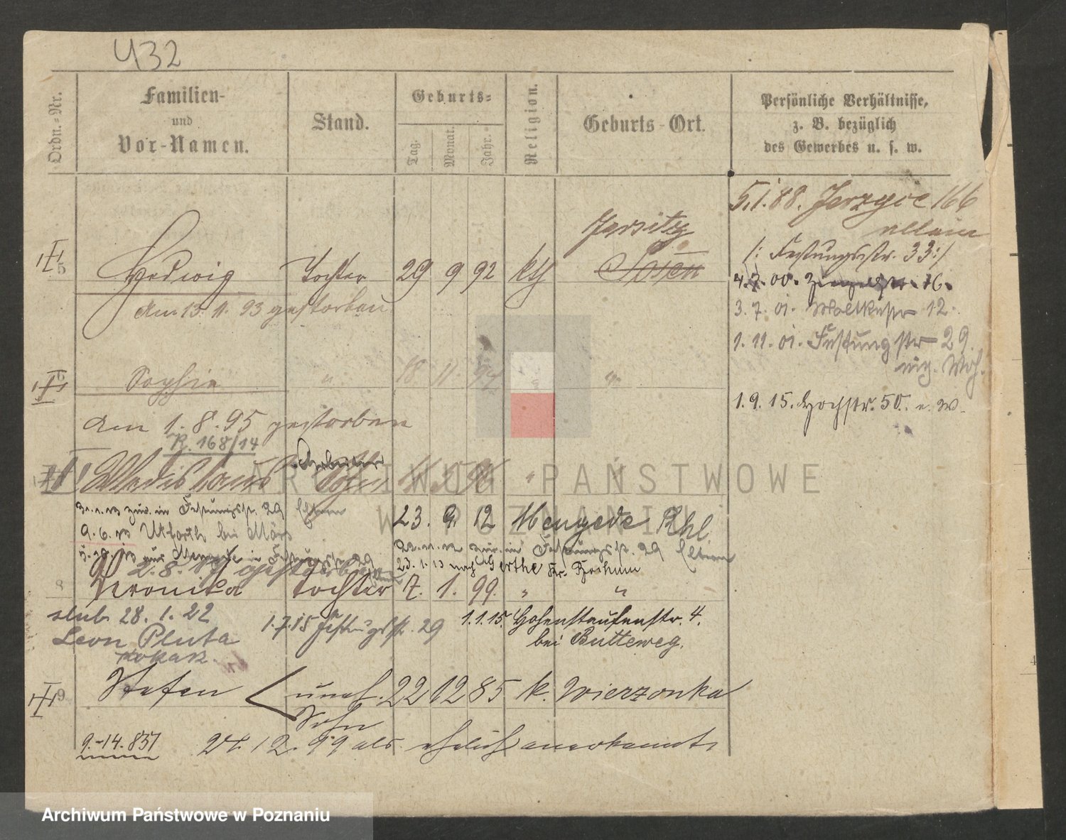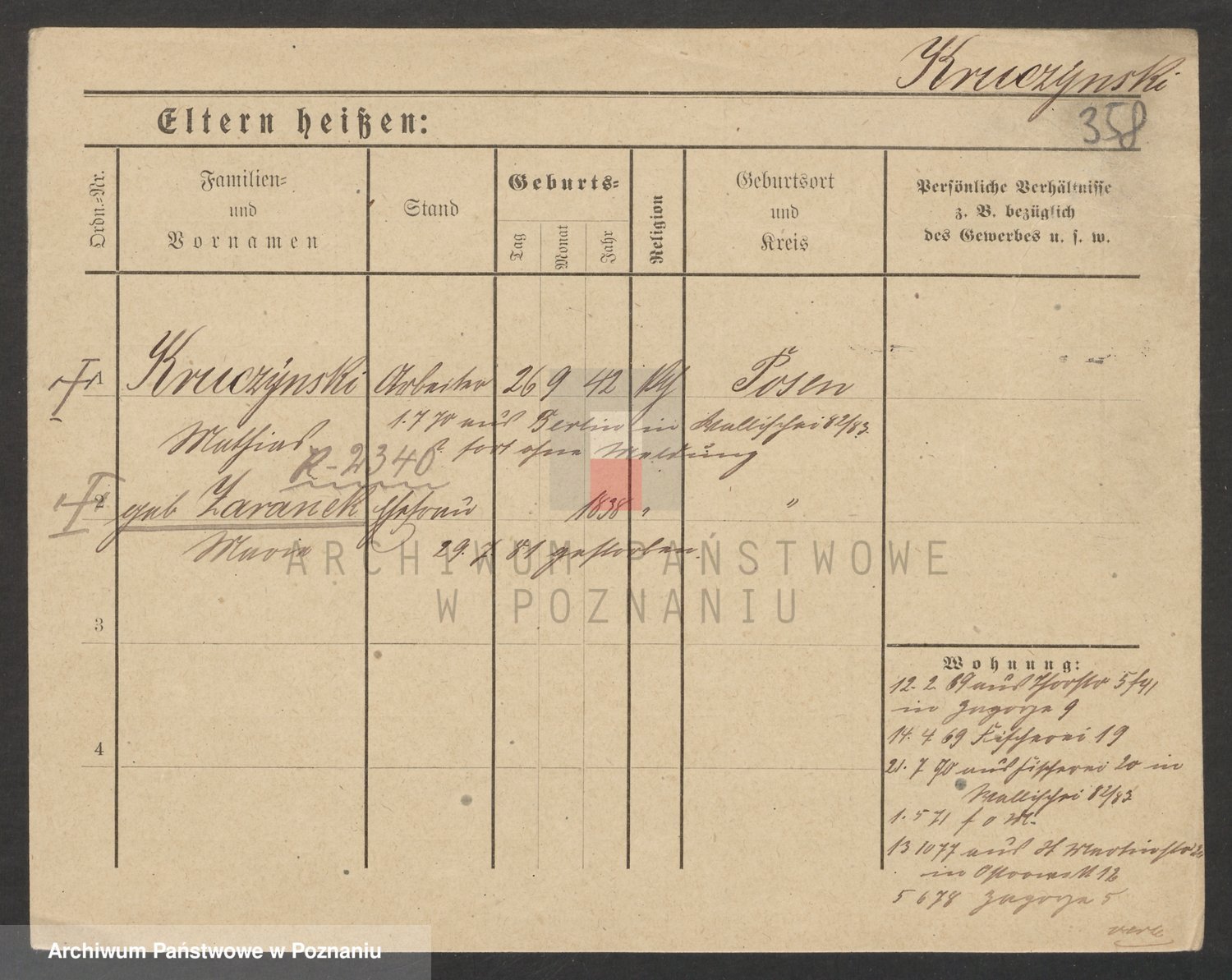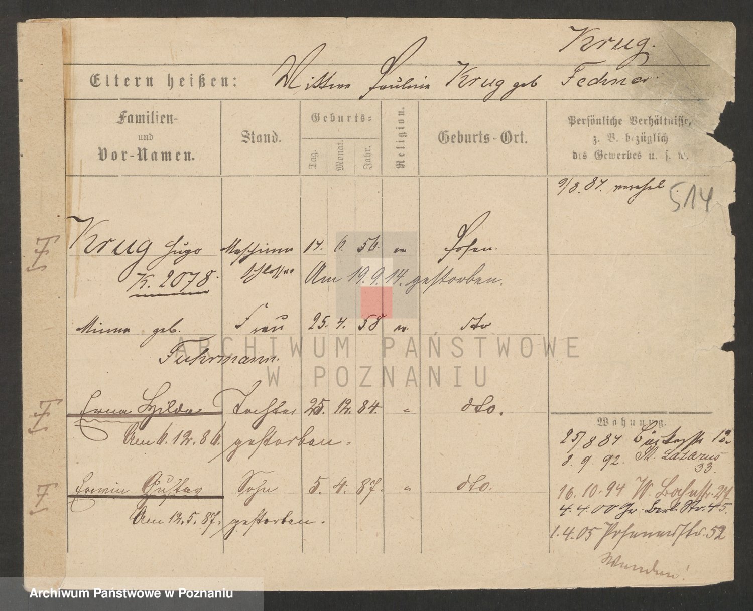 Podgląd karty osobowej dostępny jest po kliknięciu na nazwisko lub ikonkę karty. Można dokonywać powiększenia (ikony na górze) lub przechodzić między kolejnymi skanami (strzałki po bokach).