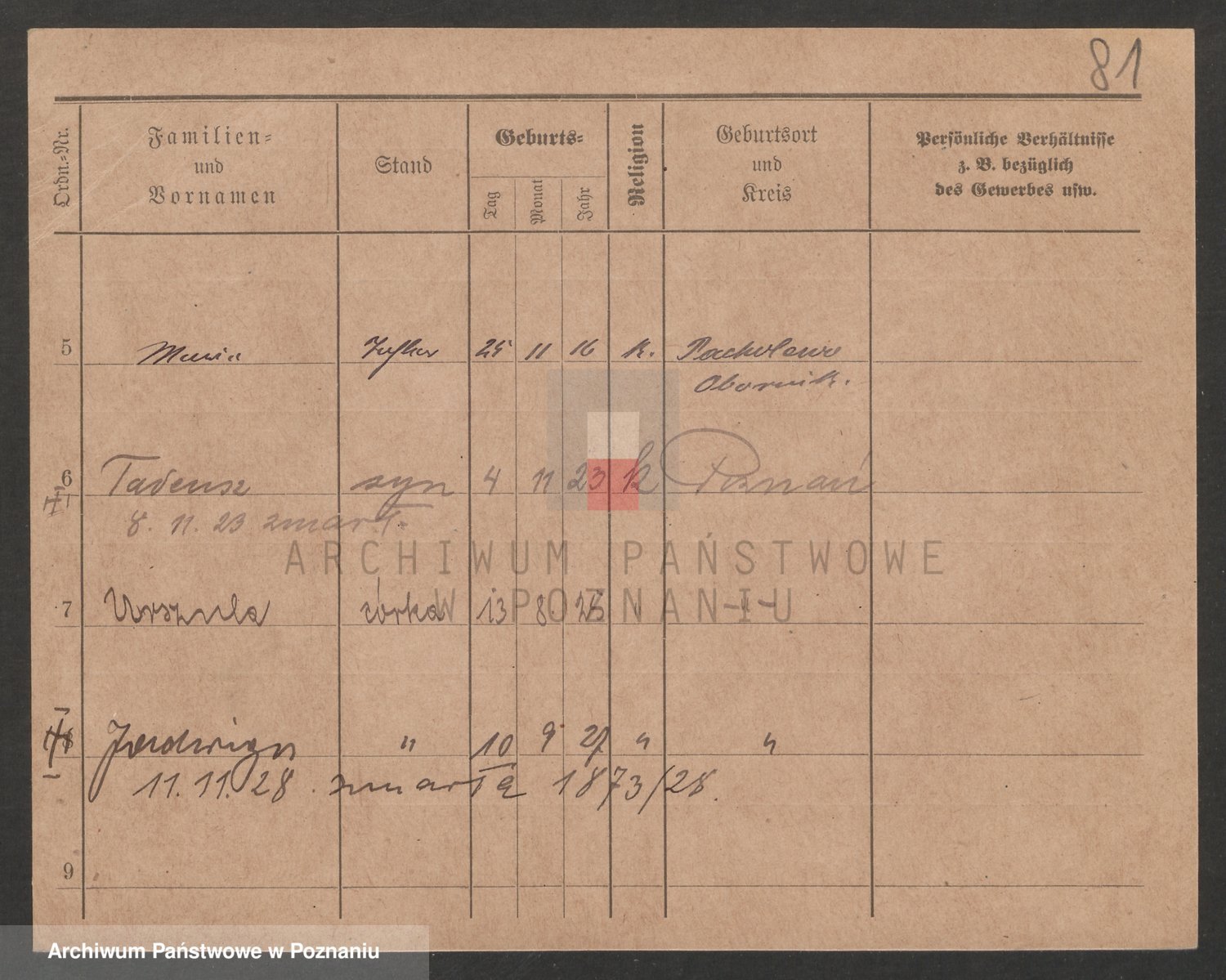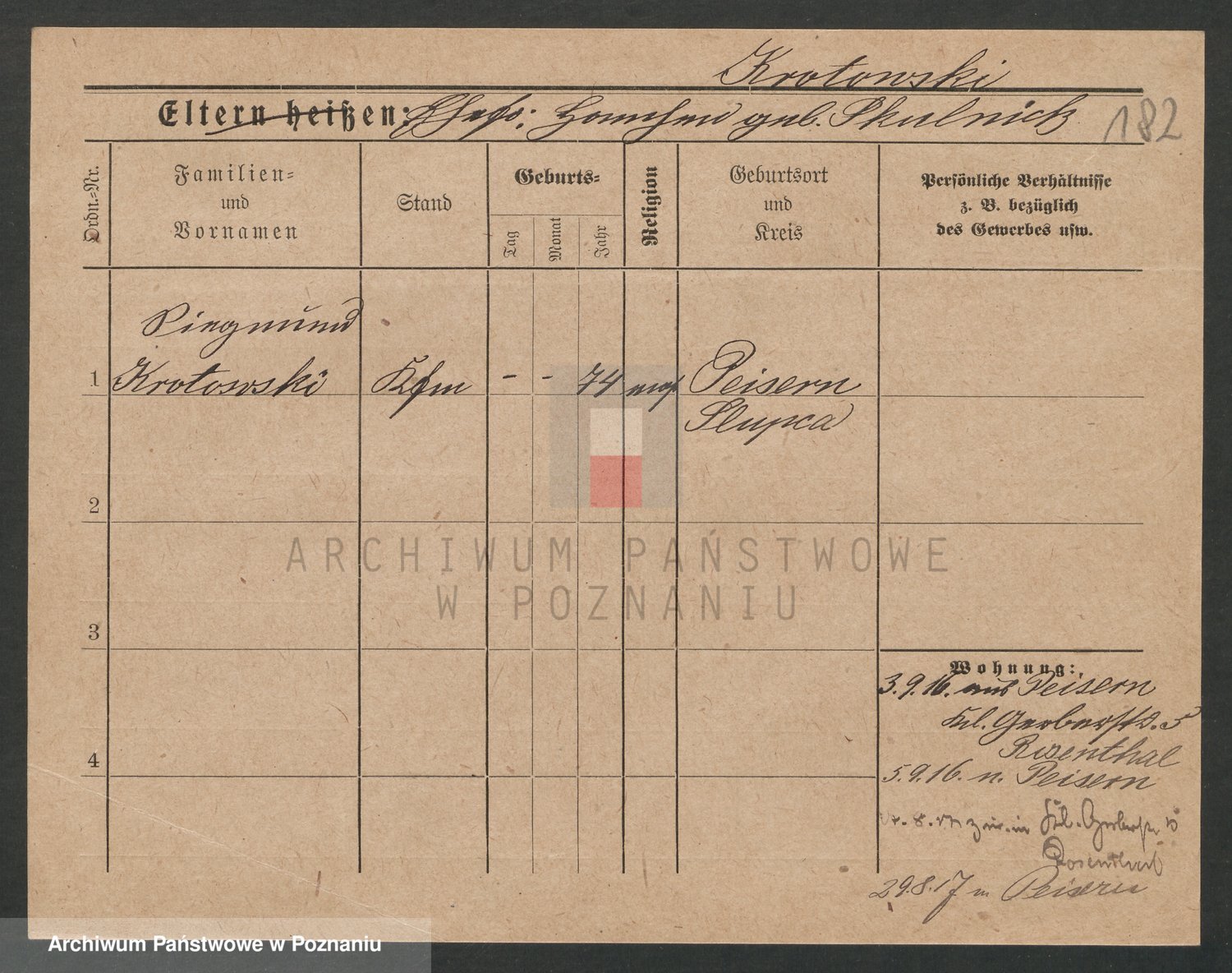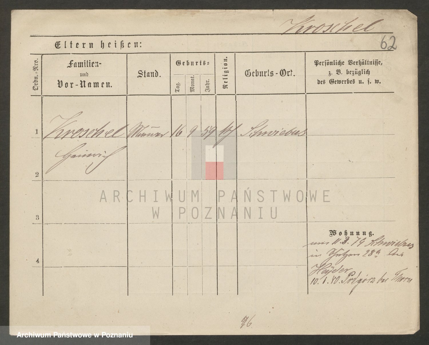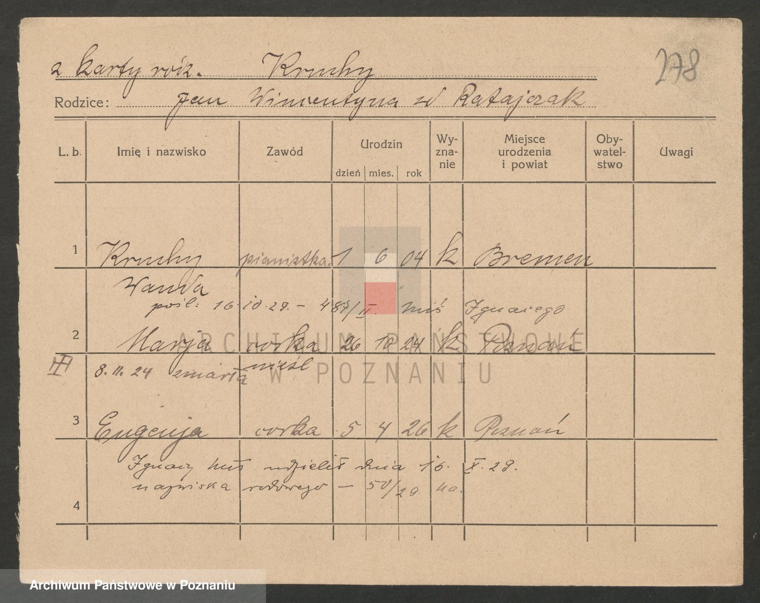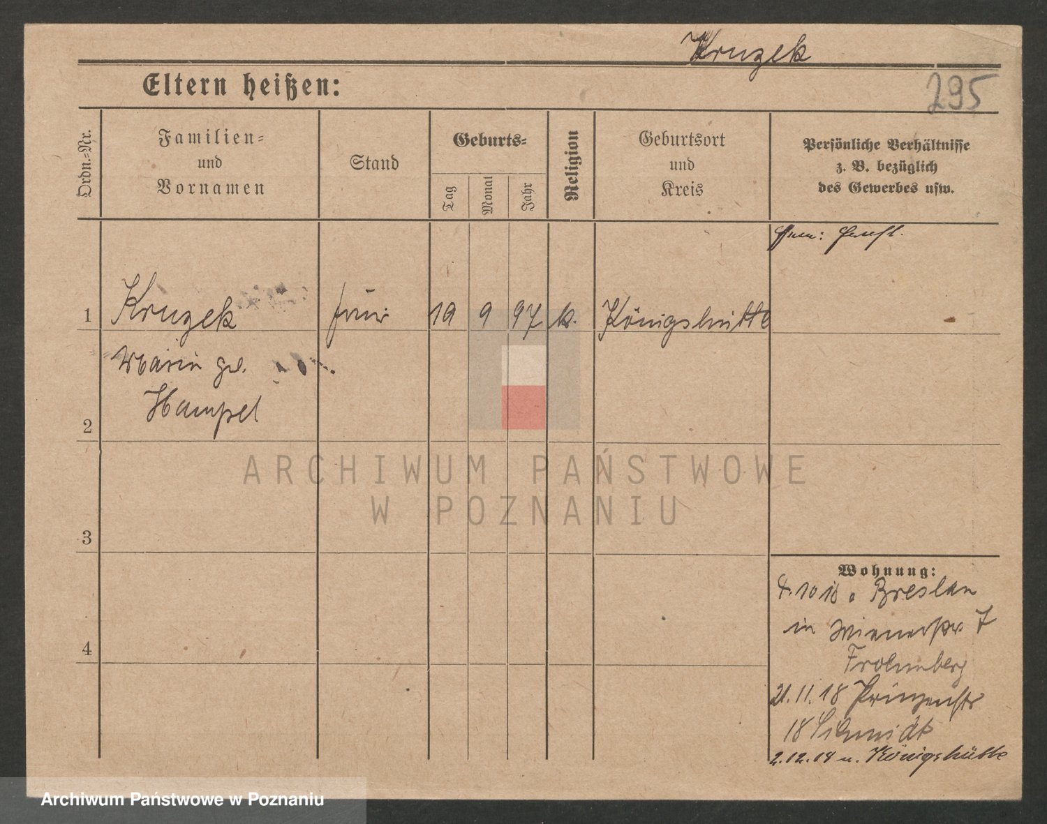 Podgląd karty osobowej dostępny jest po kliknięciu na nazwisko lub ikonkę karty. Można dokonywać powiększenia (ikony na górze) lub przechodzić między kolejnymi skanami (strzałki po bokach).