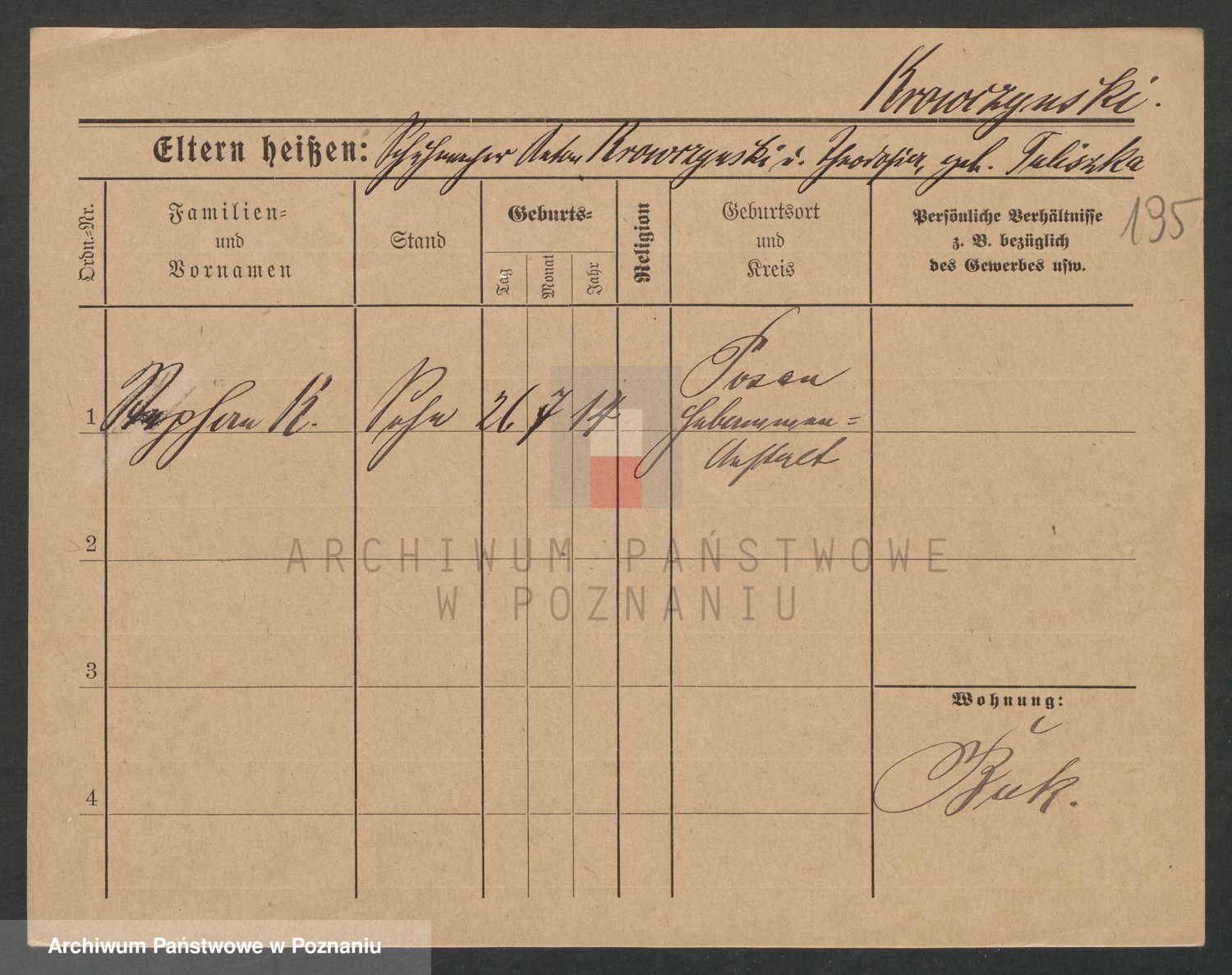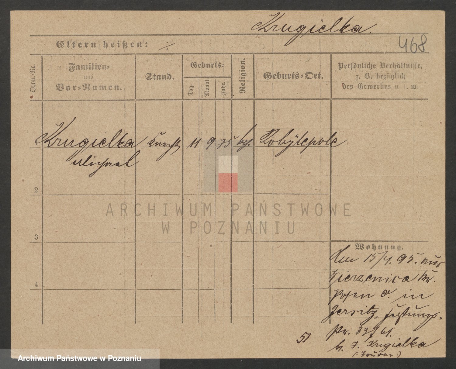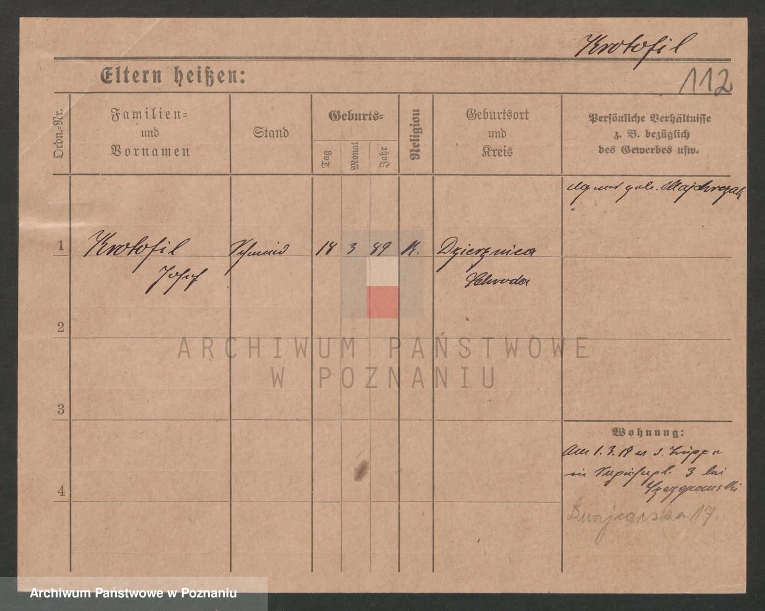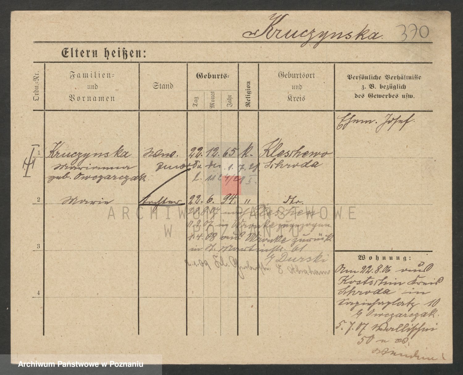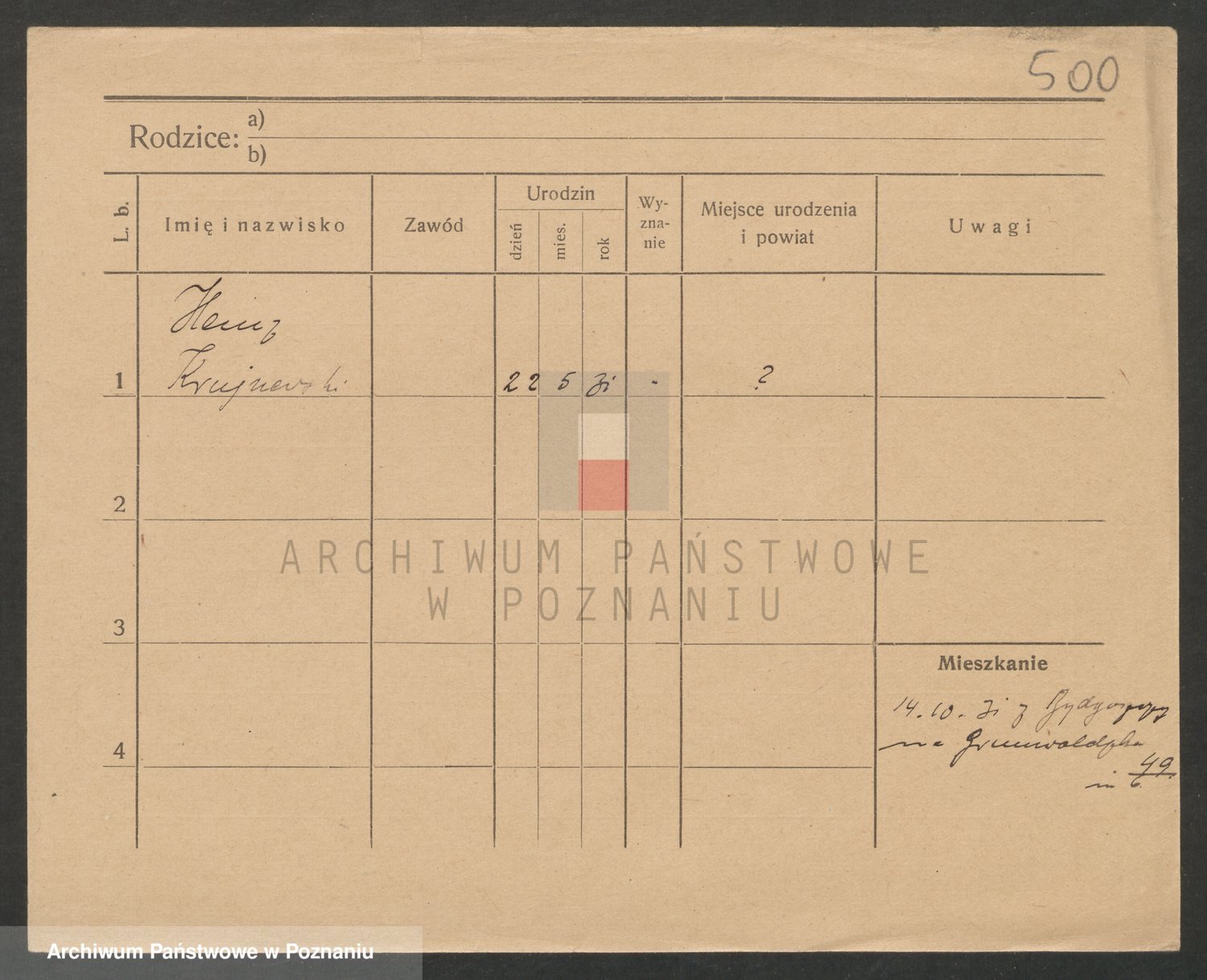 Podgląd karty osobowej dostępny jest po kliknięciu na nazwisko lub ikonkę karty. Można dokonywać powiększenia (ikony na górze) lub przechodzić między kolejnymi skanami (strzałki po bokach).