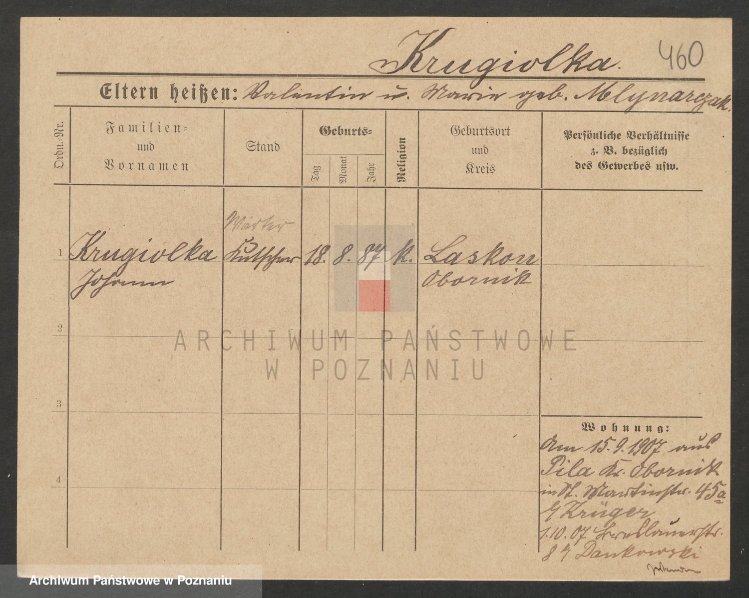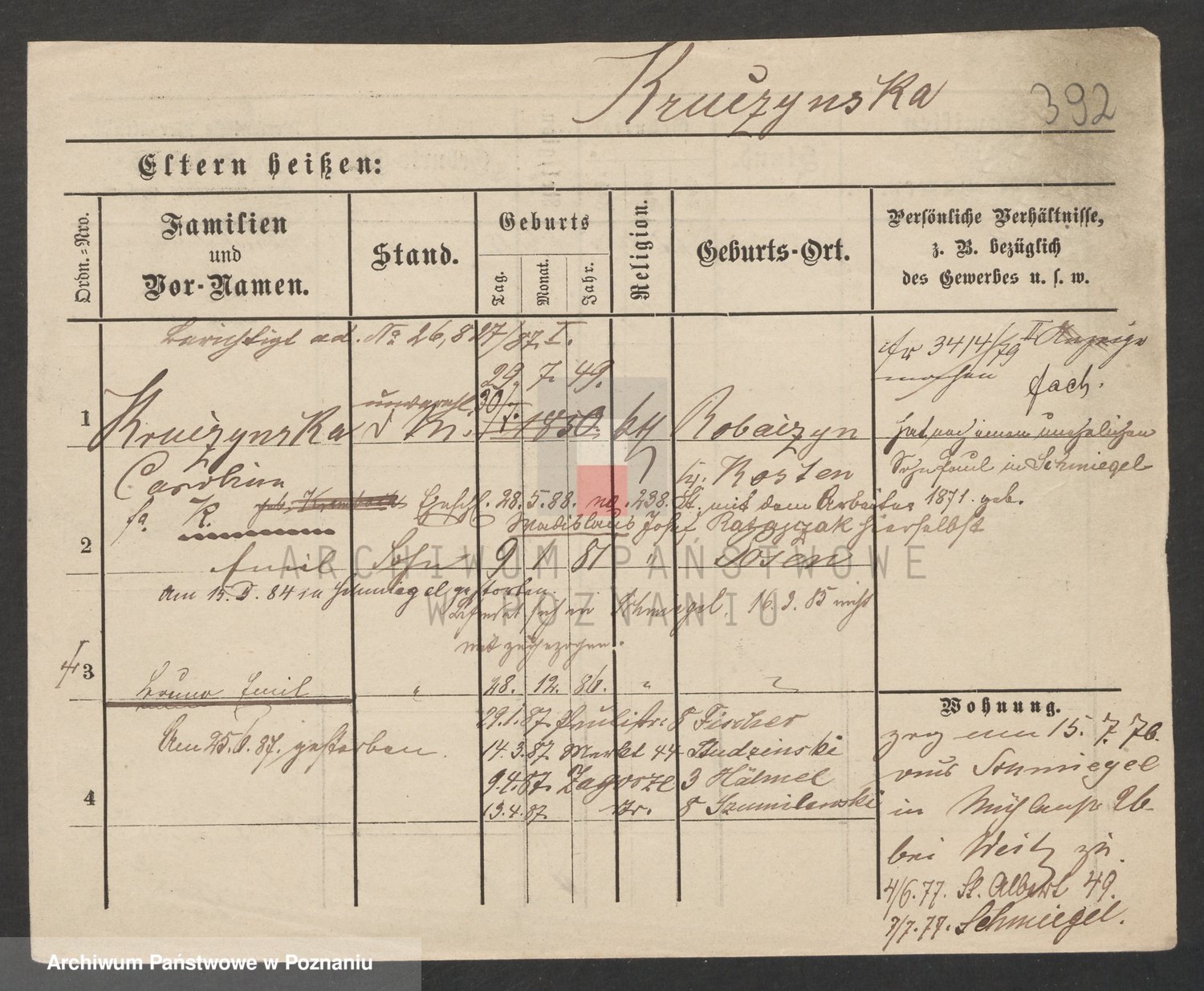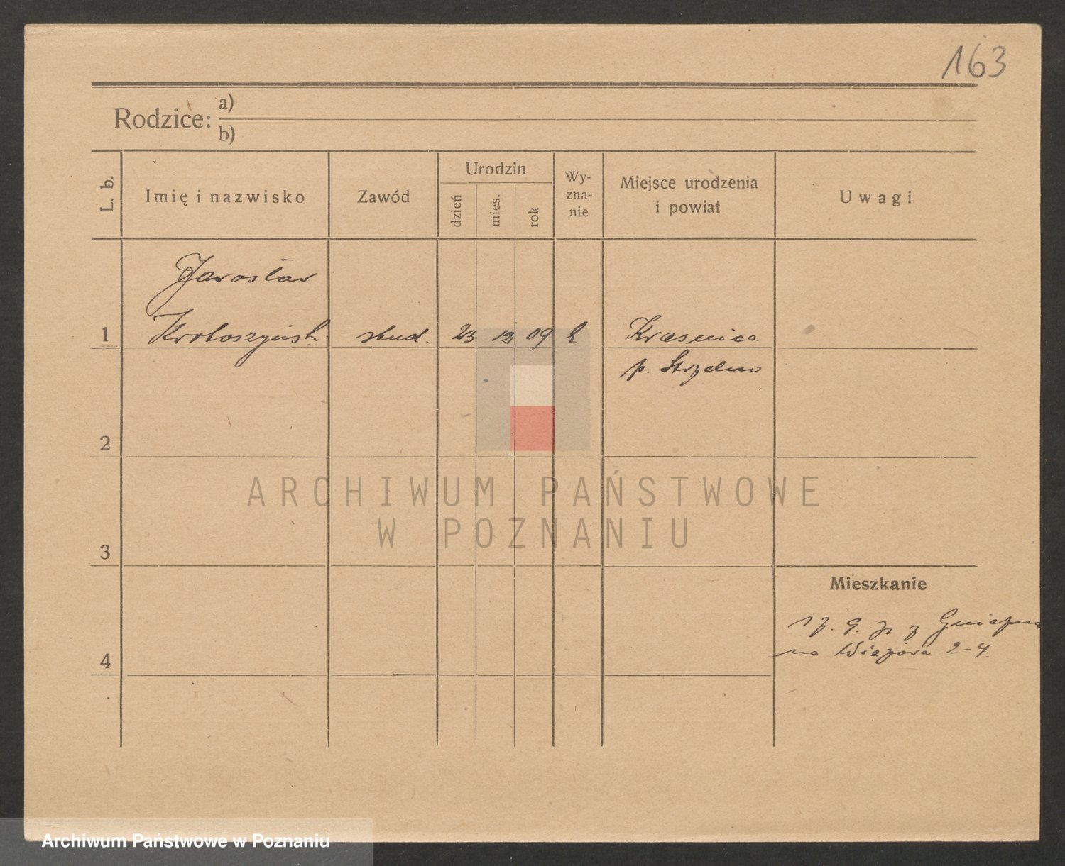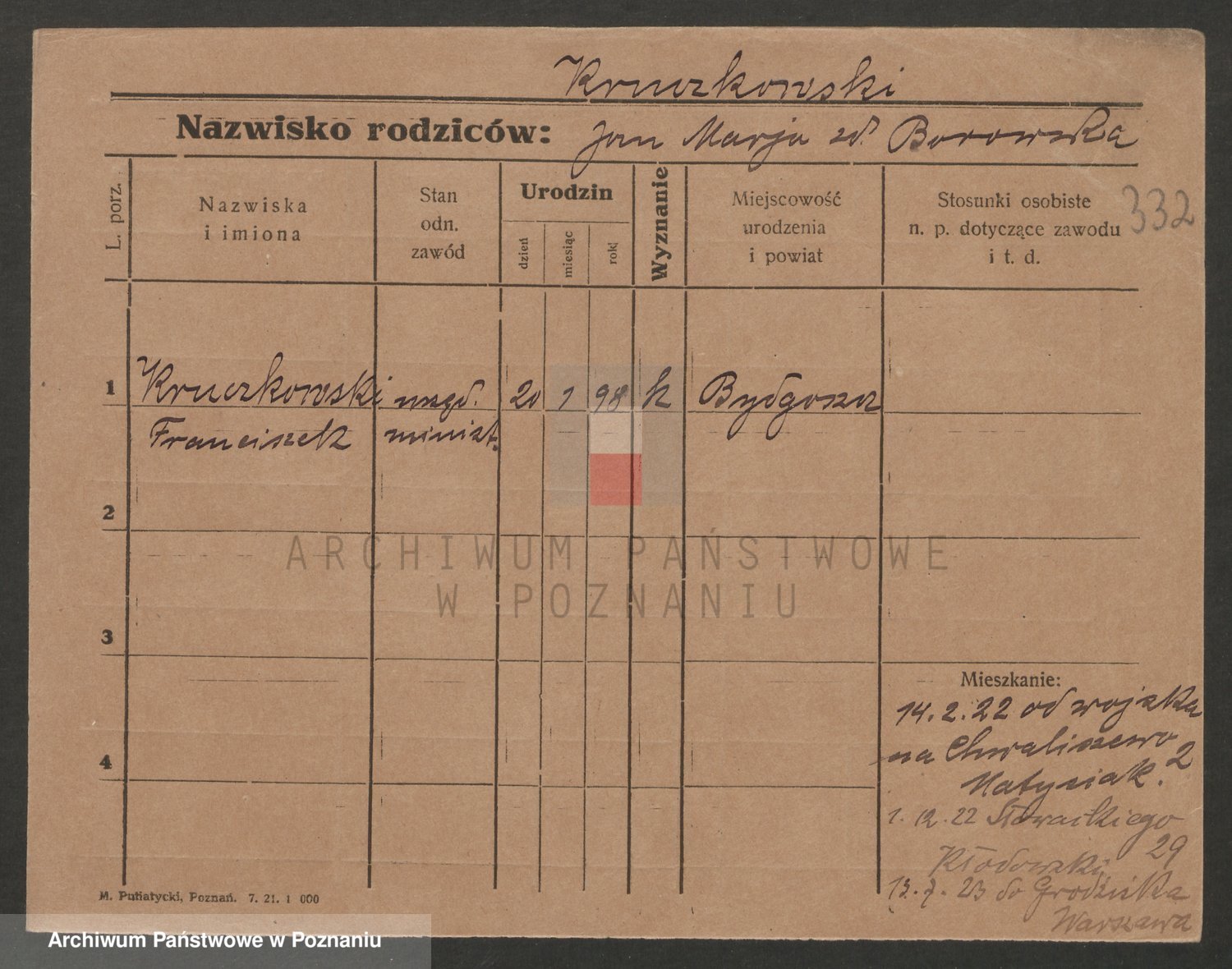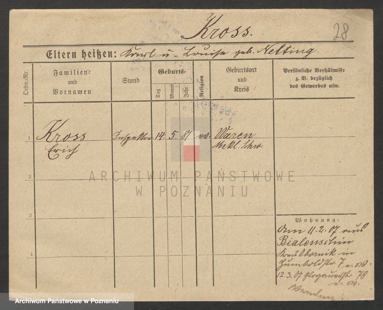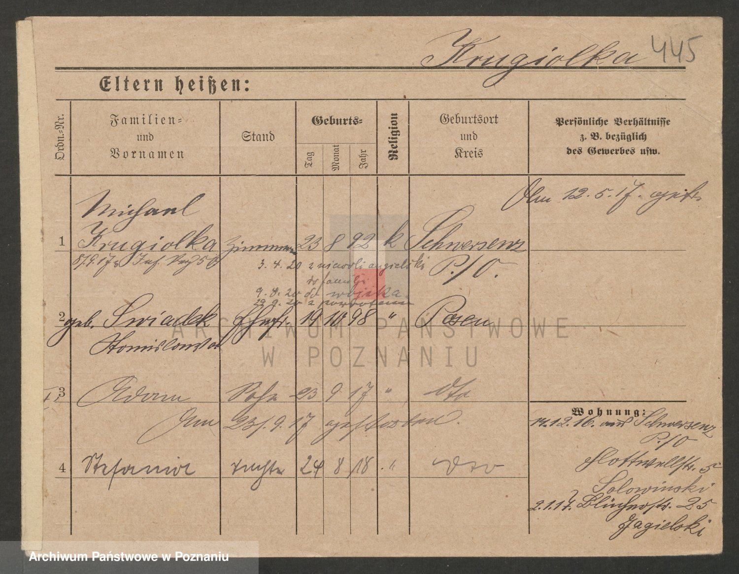 Podgląd karty osobowej dostępny jest po kliknięciu na nazwisko lub ikonkę karty. Można dokonywać powiększenia (ikony na górze) lub przechodzić między kolejnymi skanami (strzałki po bokach).