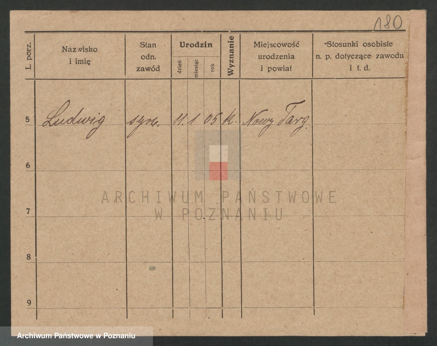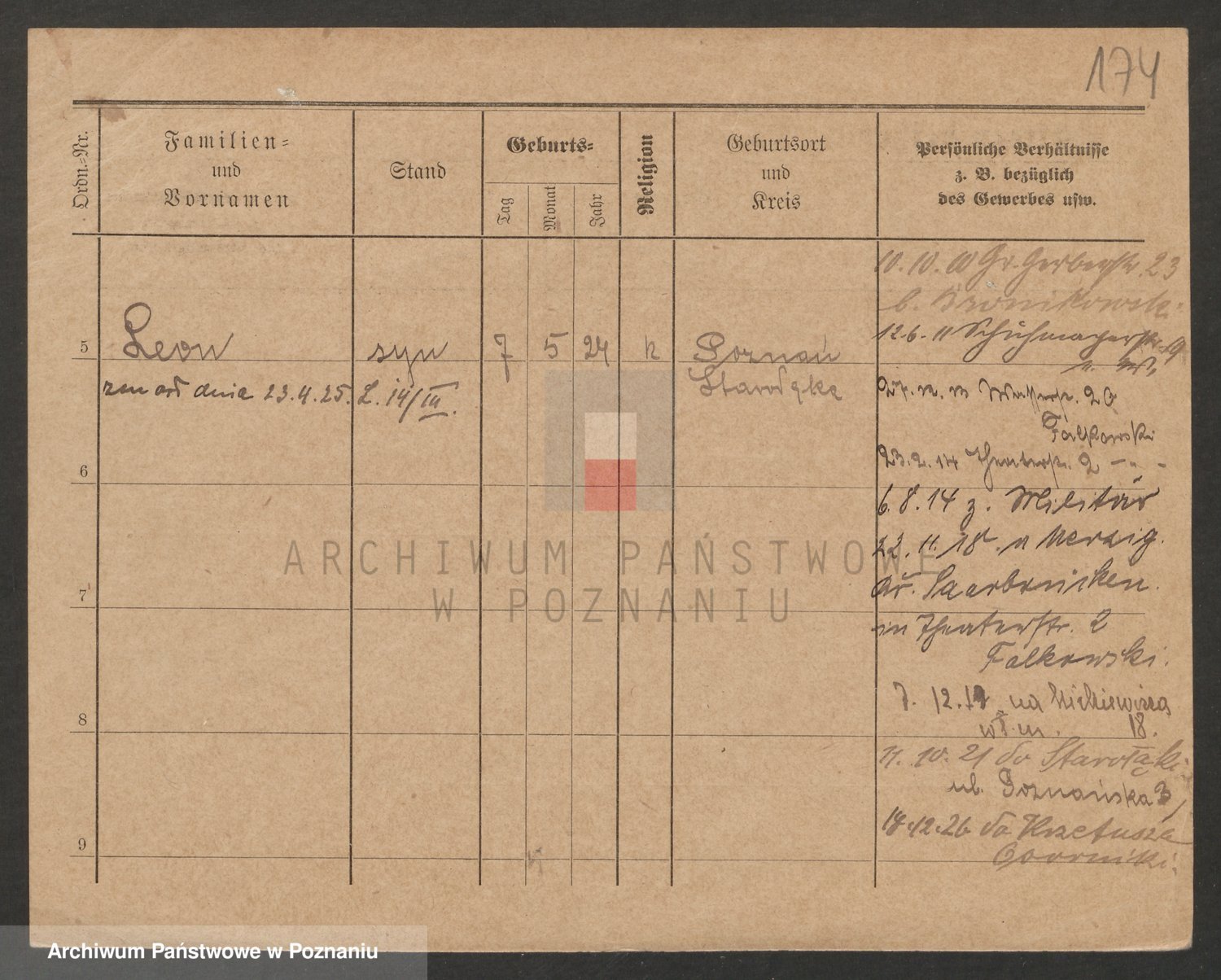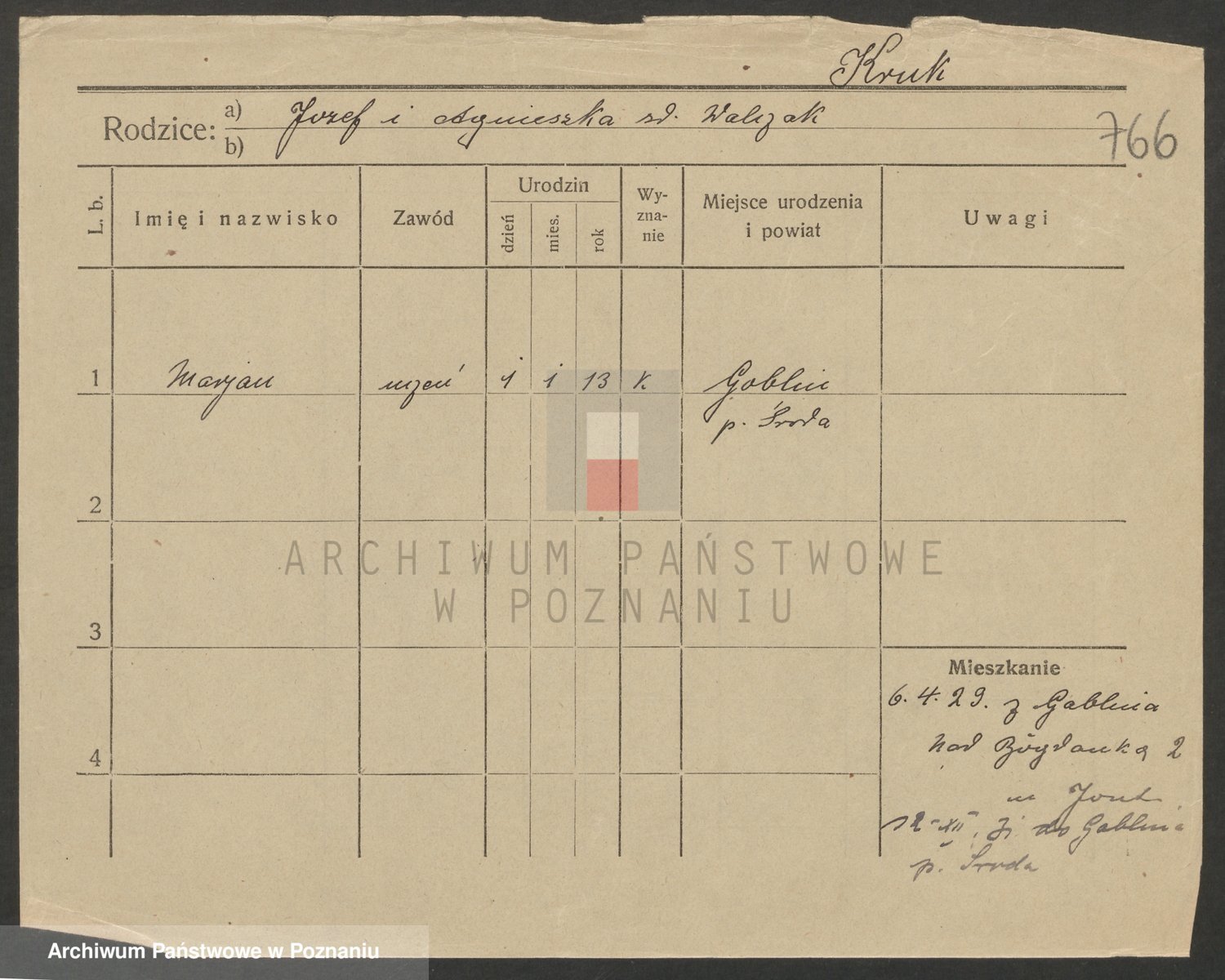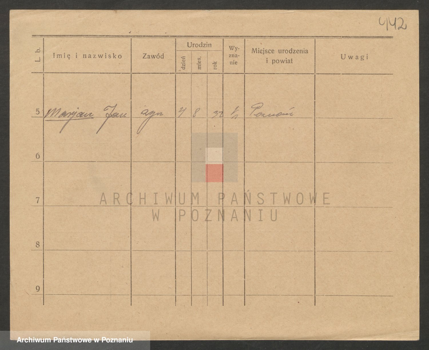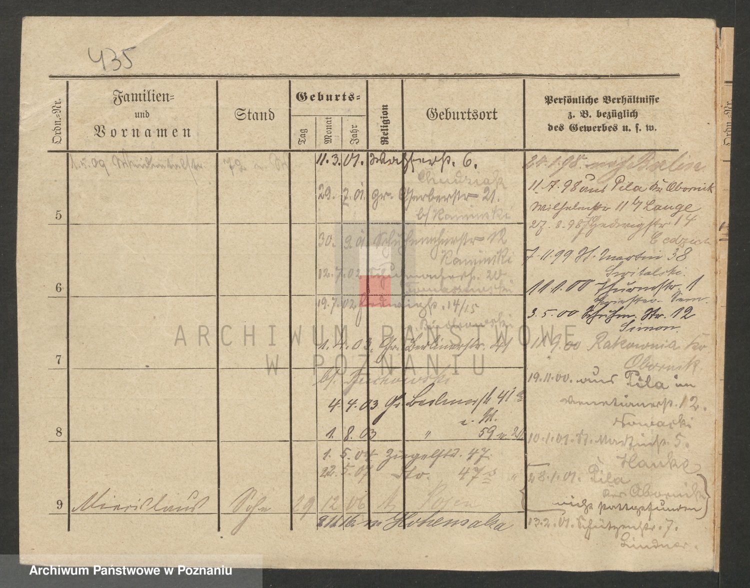 Podgląd karty osobowej dostępny jest po kliknięciu na nazwisko lub ikonkę karty. Można dokonywać powiększenia (ikony na górze) lub przechodzić między kolejnymi skanami (strzałki po bokach).