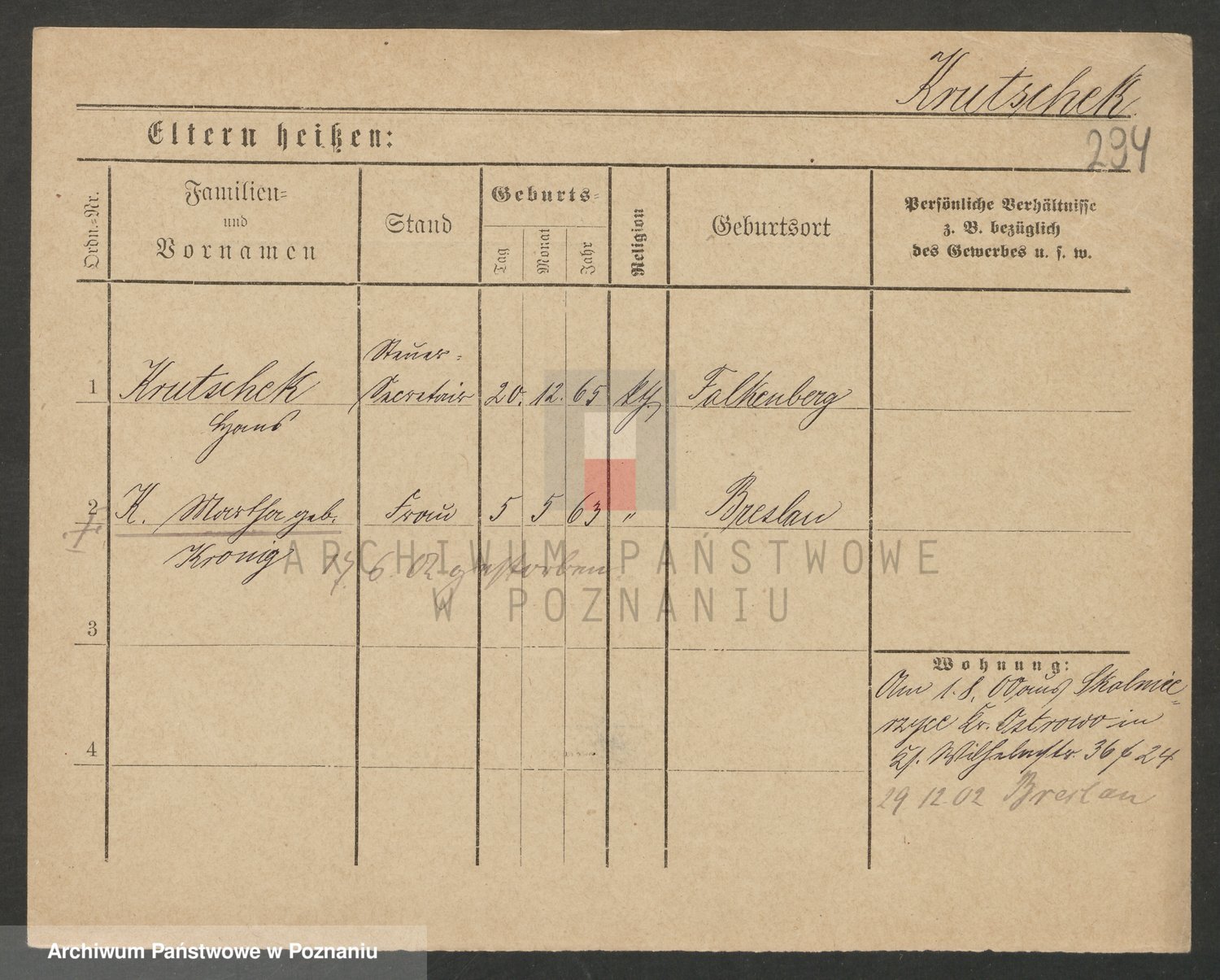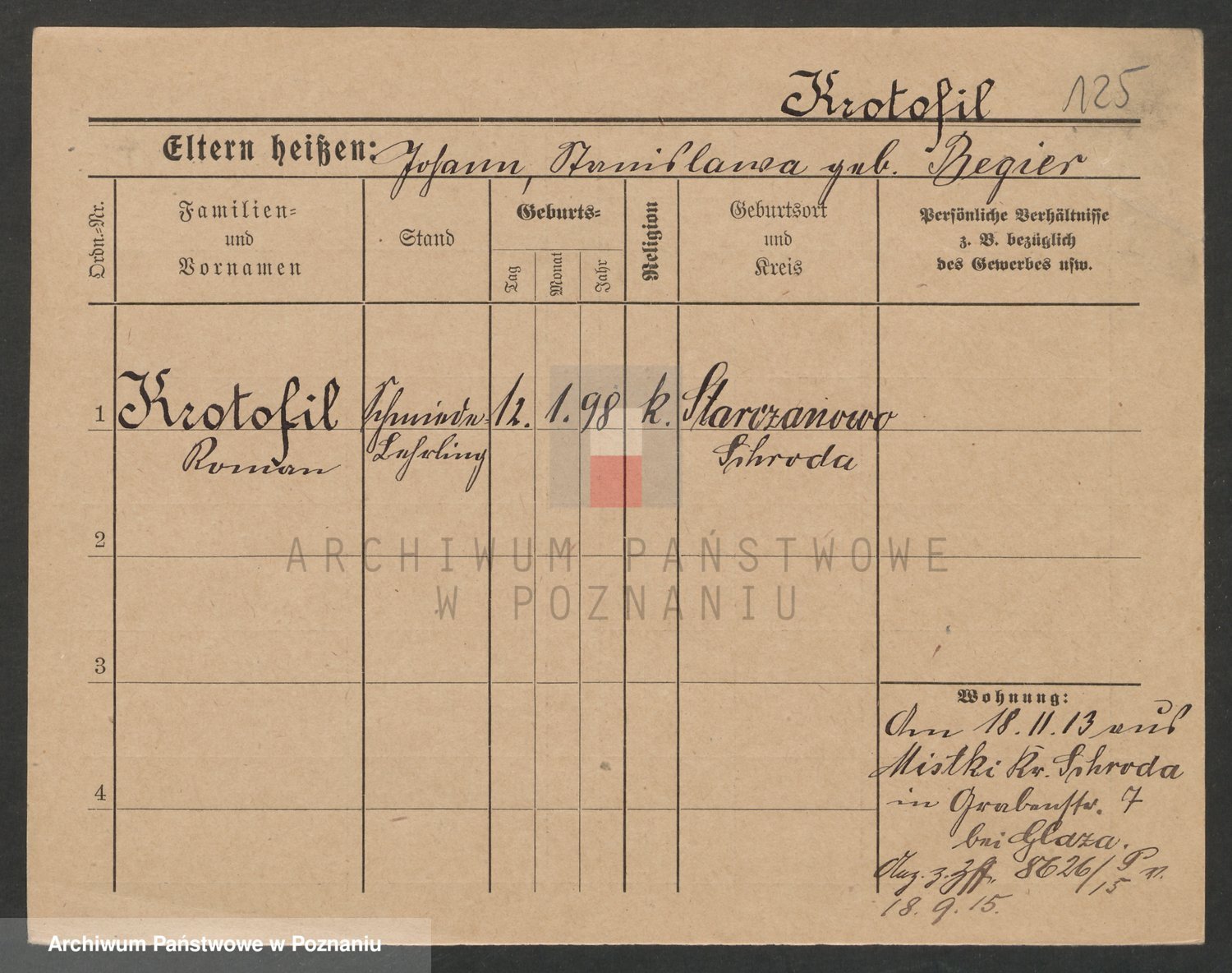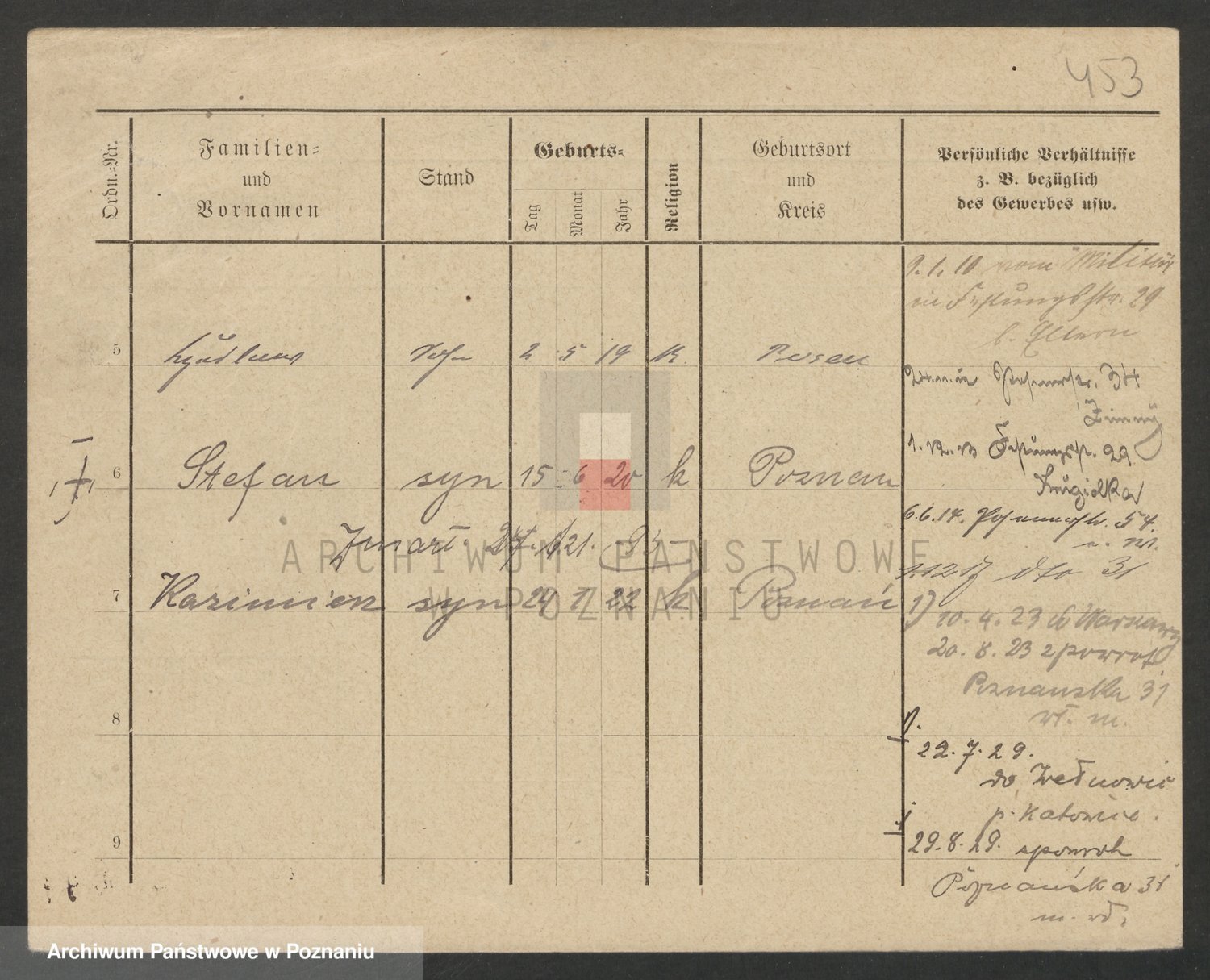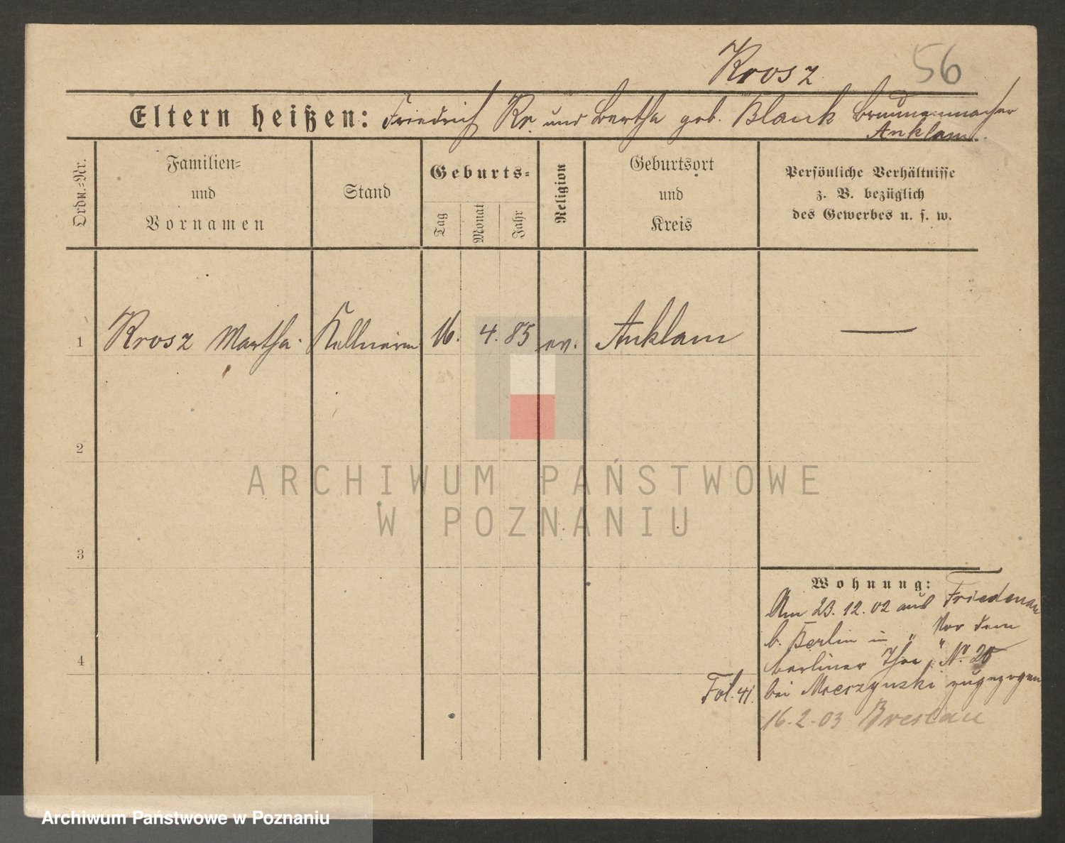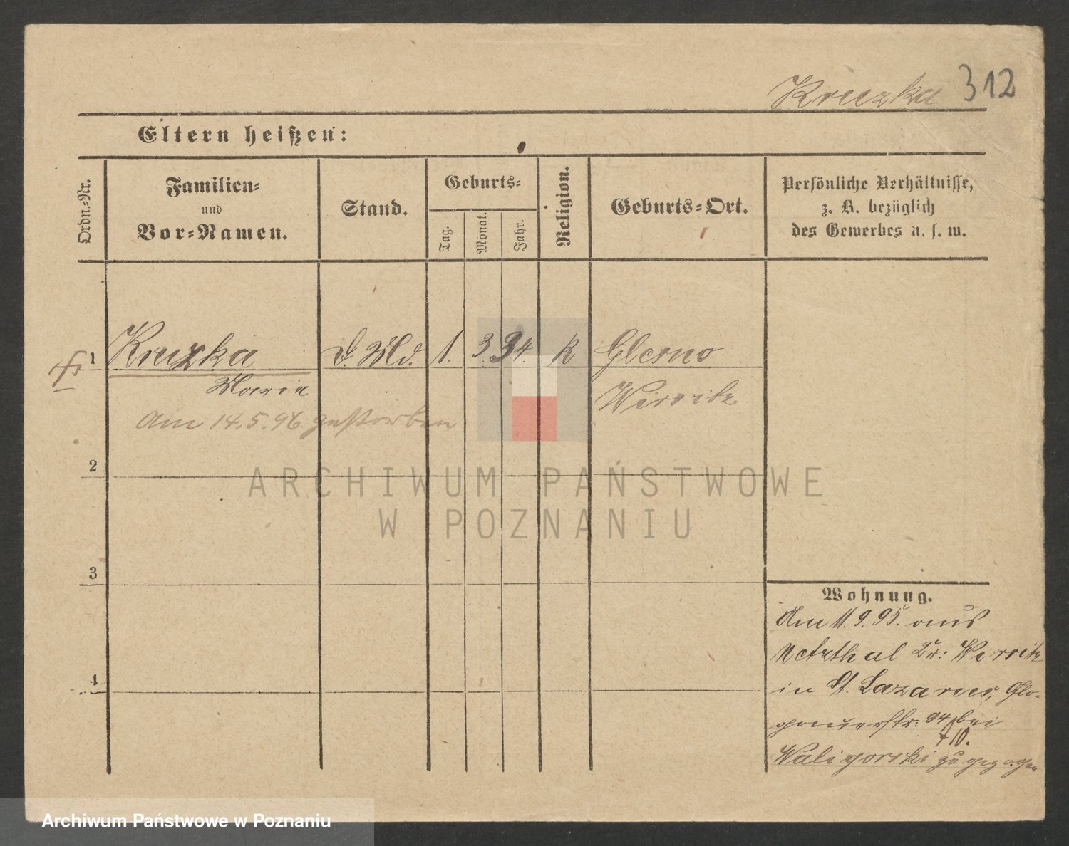 Podgląd karty osobowej dostępny jest po kliknięciu na nazwisko lub ikonkę karty. Można dokonywać powiększenia (ikony na górze) lub przechodzić między kolejnymi skanami (strzałki po bokach).