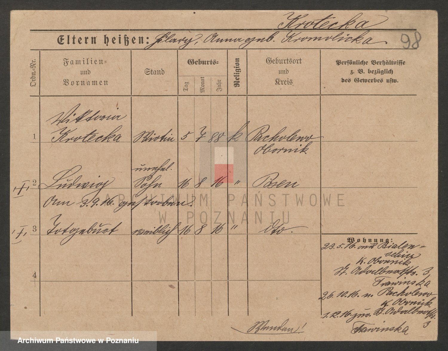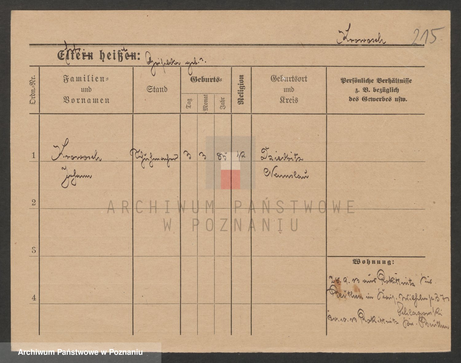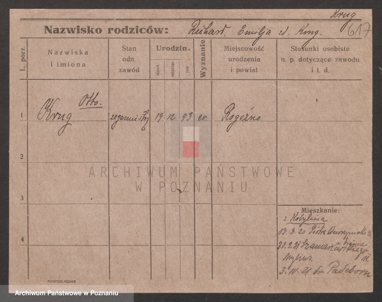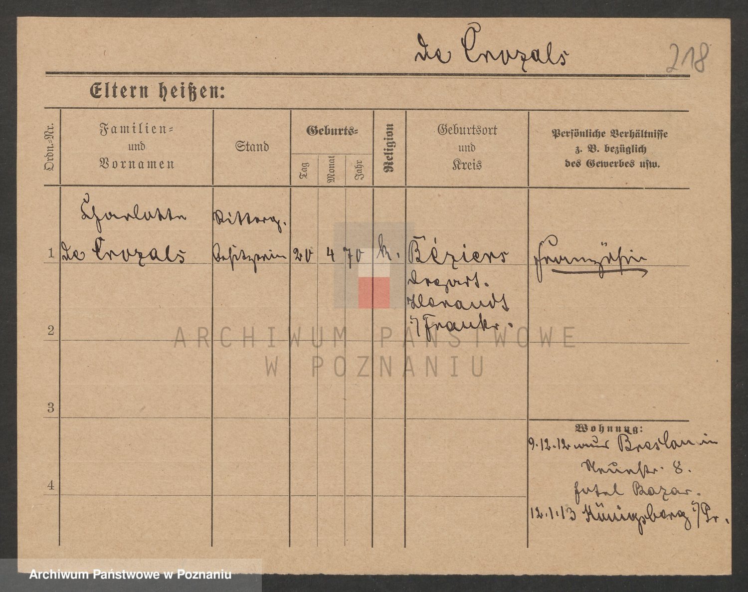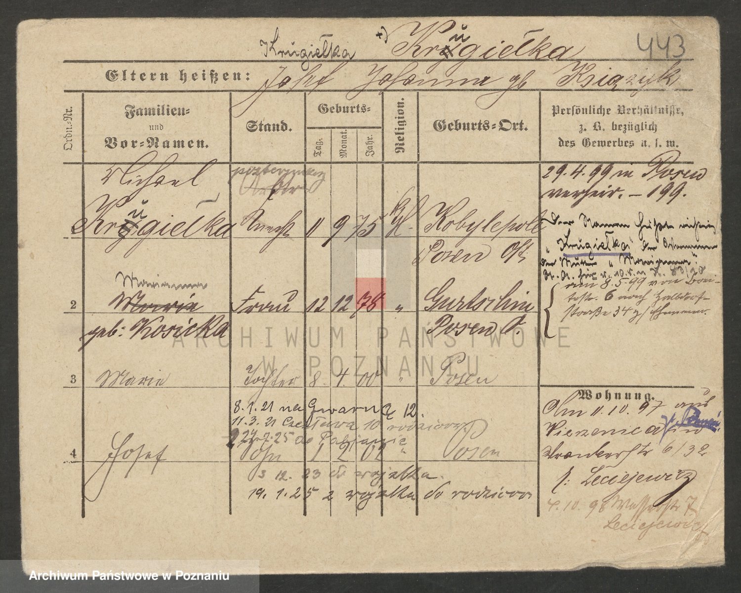 Podgląd karty osobowej dostępny jest po kliknięciu na nazwisko lub ikonkę karty. Można dokonywać powiększenia (ikony na górze) lub przechodzić między kolejnymi skanami (strzałki po bokach).