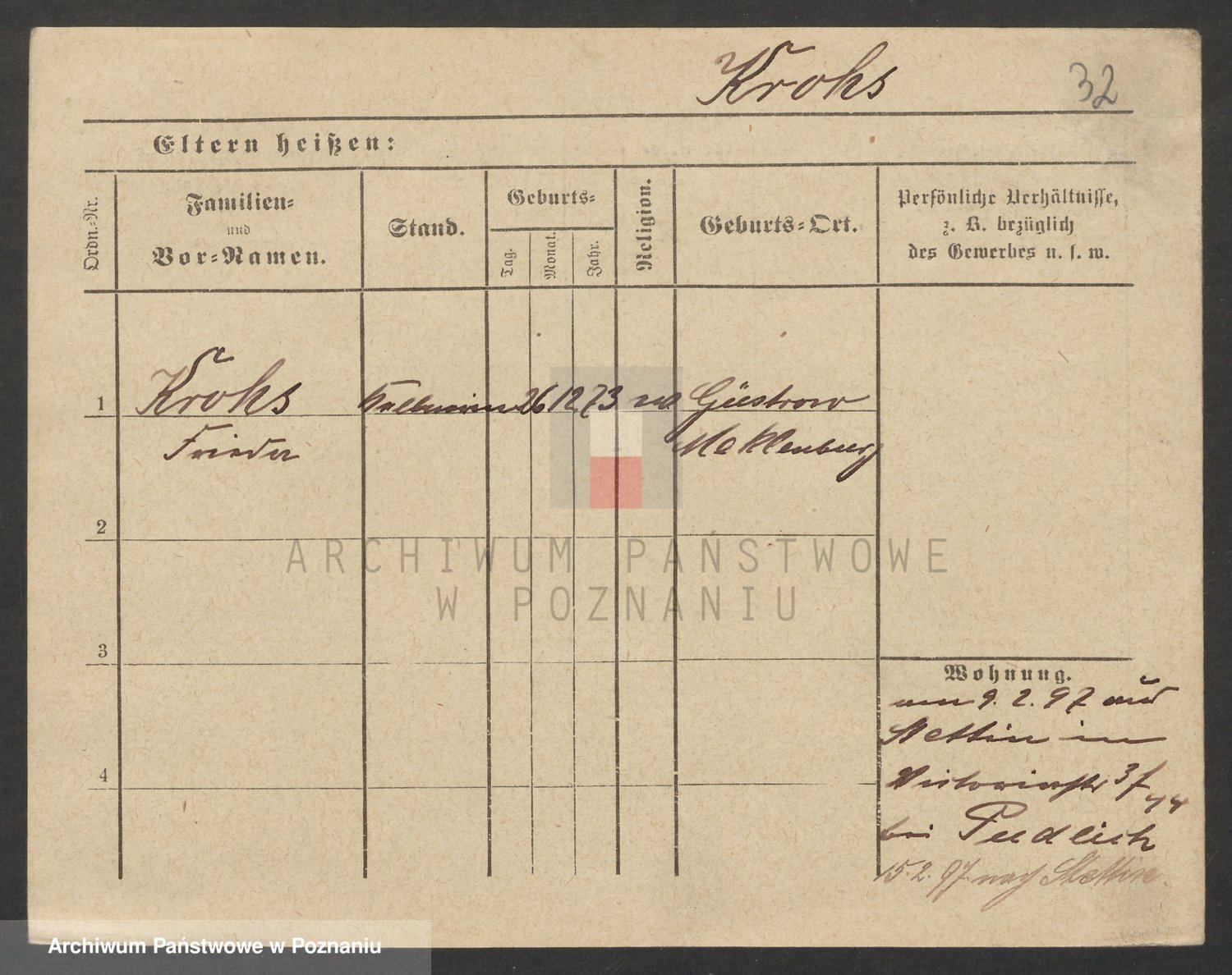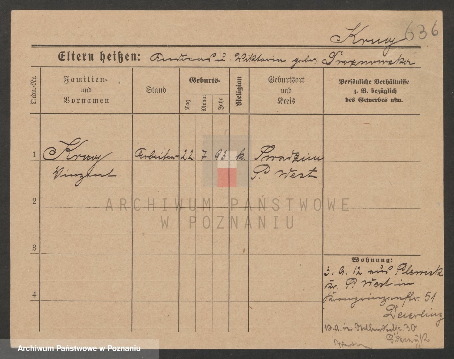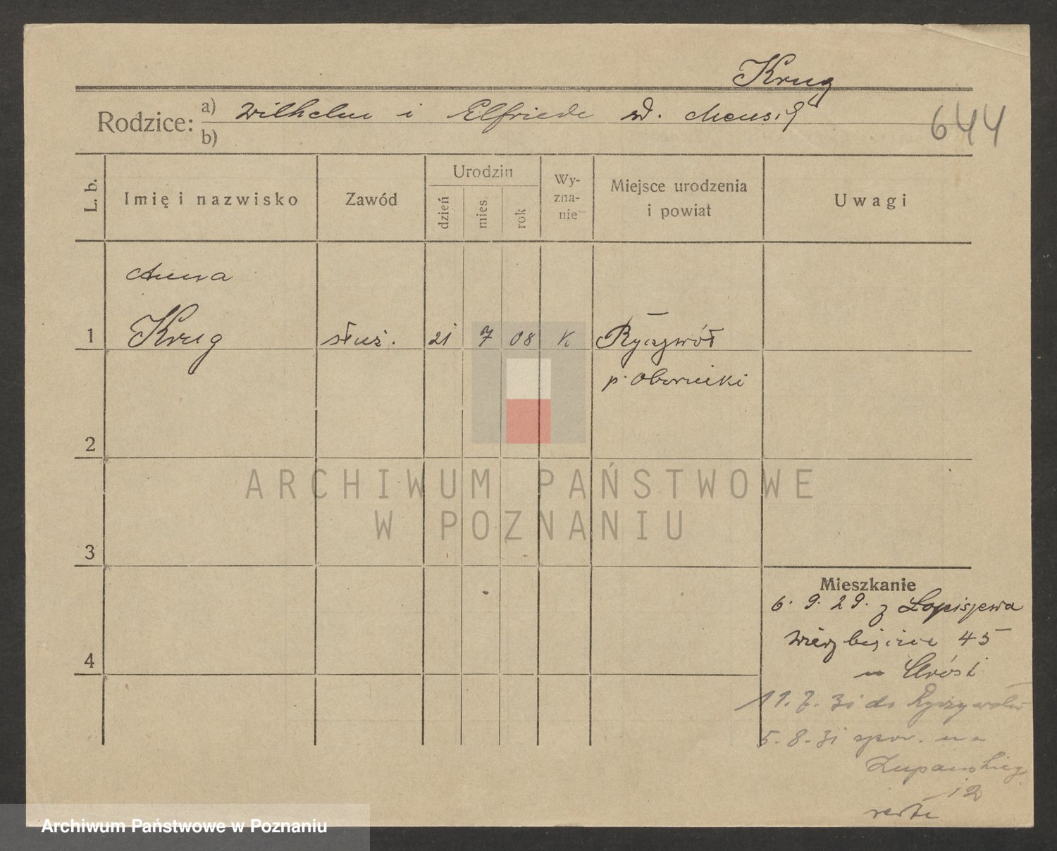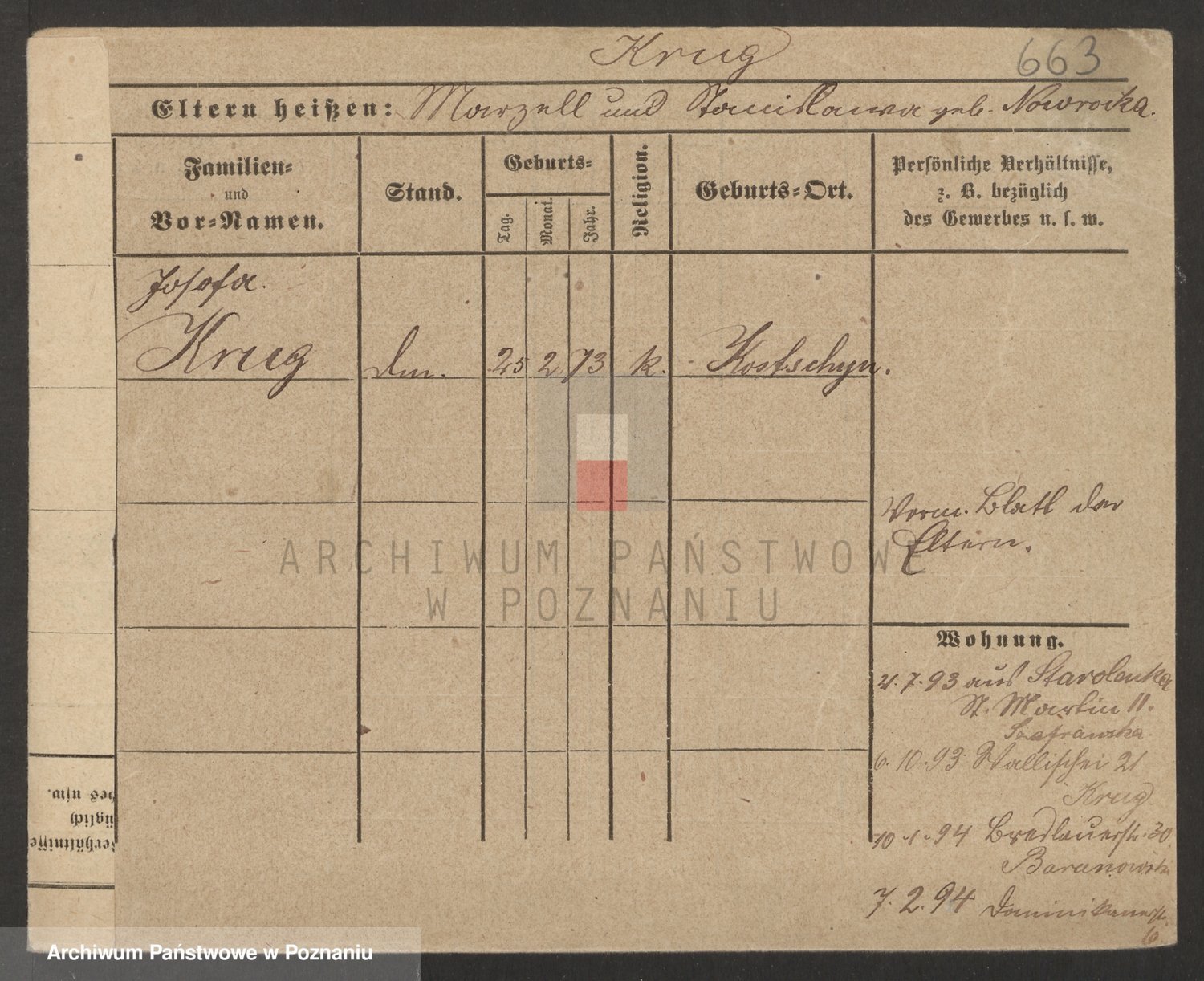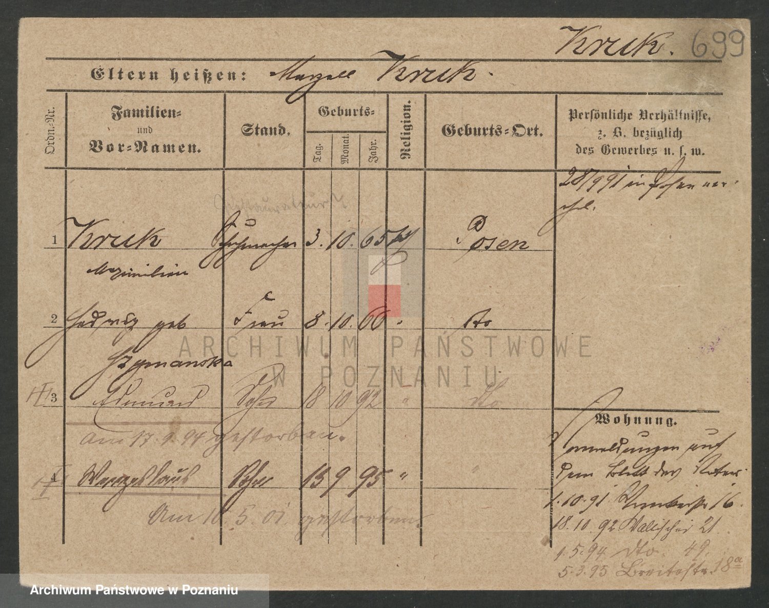 Podgląd karty osobowej dostępny jest po kliknięciu na nazwisko lub ikonkę karty. Można dokonywać powiększenia (ikony na górze) lub przechodzić między kolejnymi skanami (strzałki po bokach).