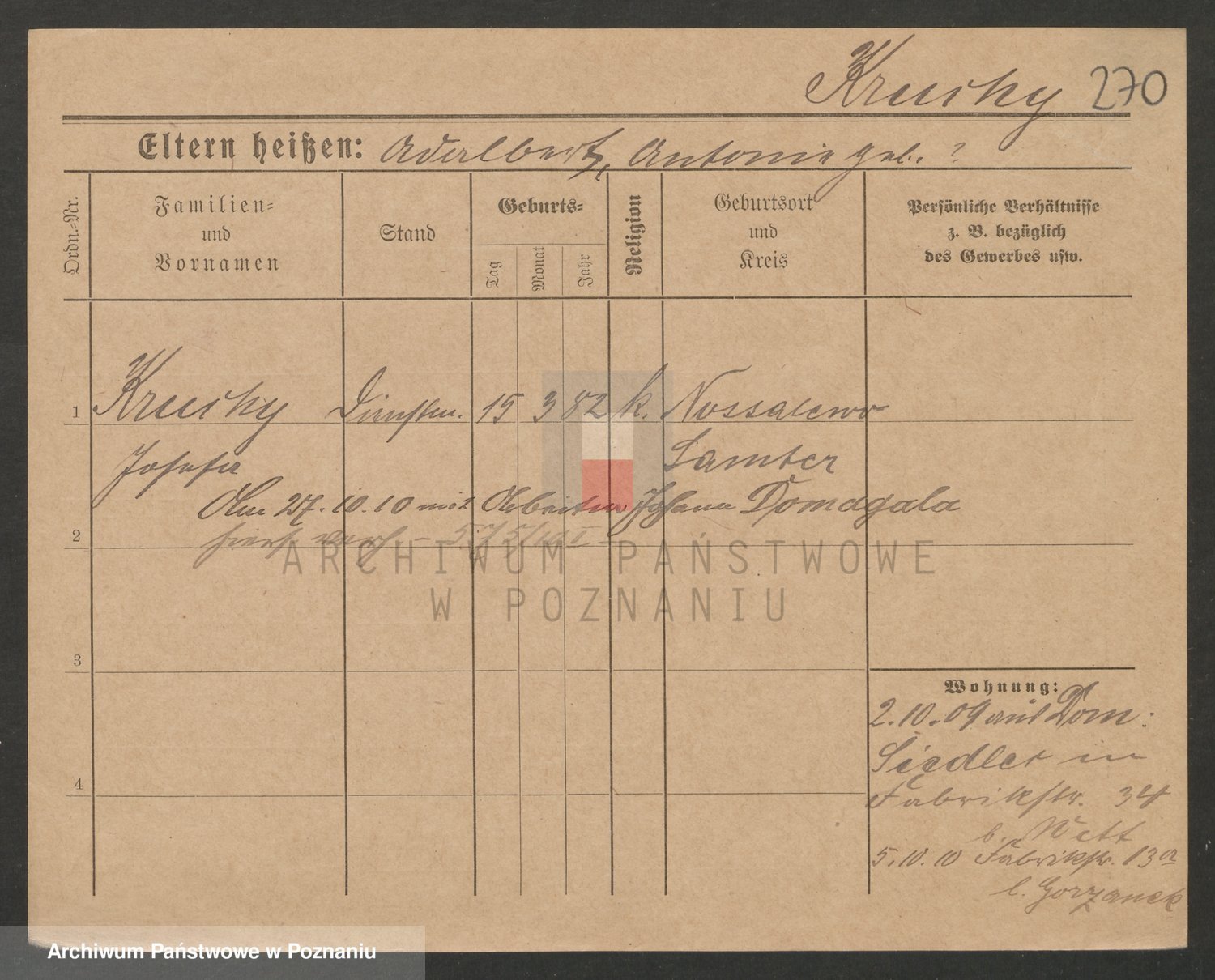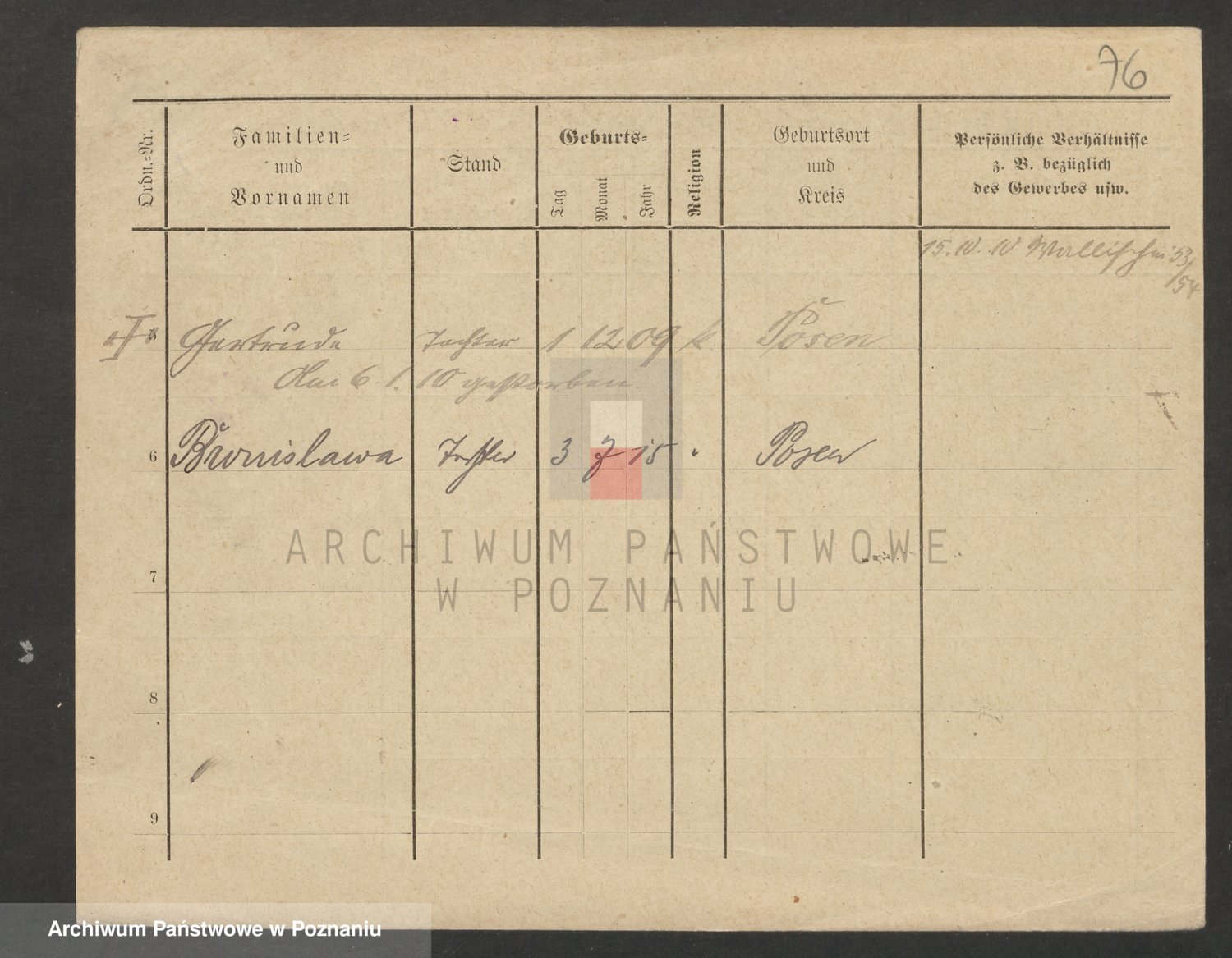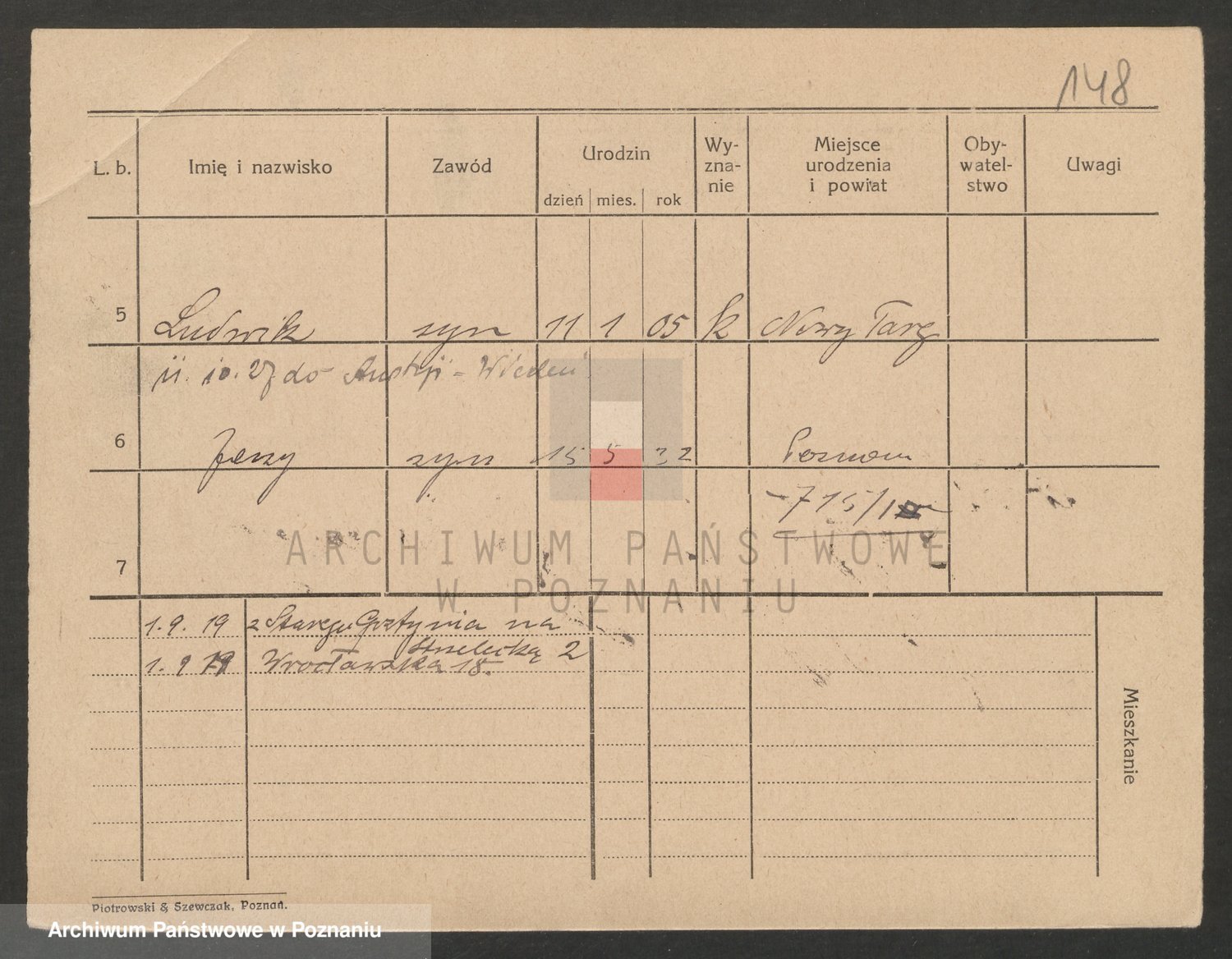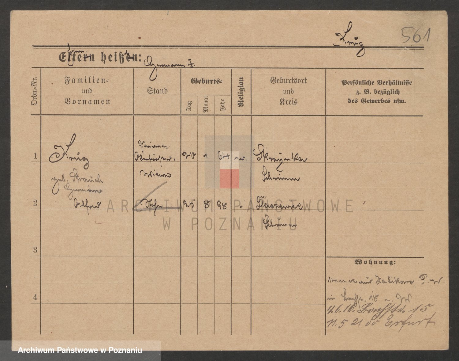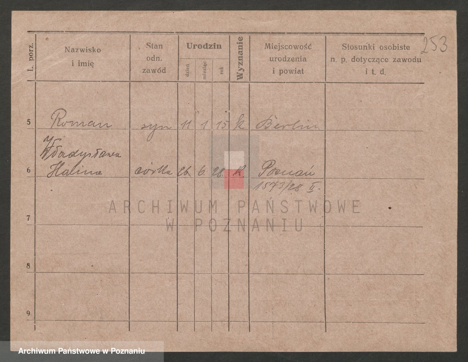 Podgląd karty osobowej dostępny jest po kliknięciu na nazwisko lub ikonkę karty. Można dokonywać powiększenia (ikony na górze) lub przechodzić między kolejnymi skanami (strzałki po bokach).