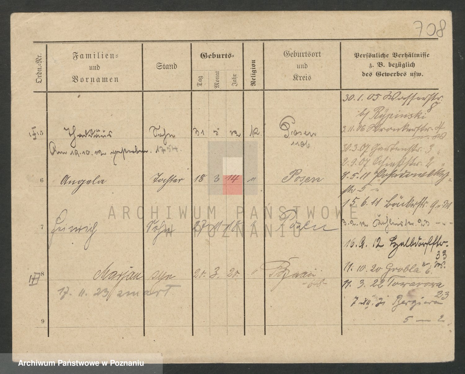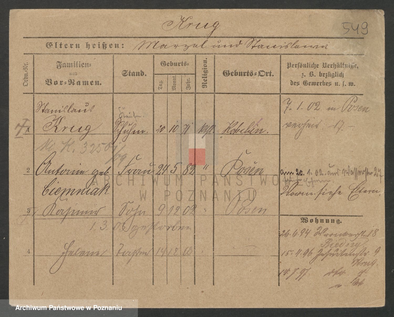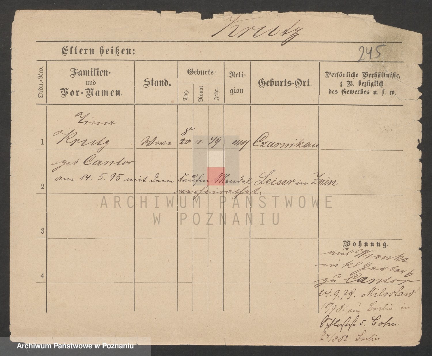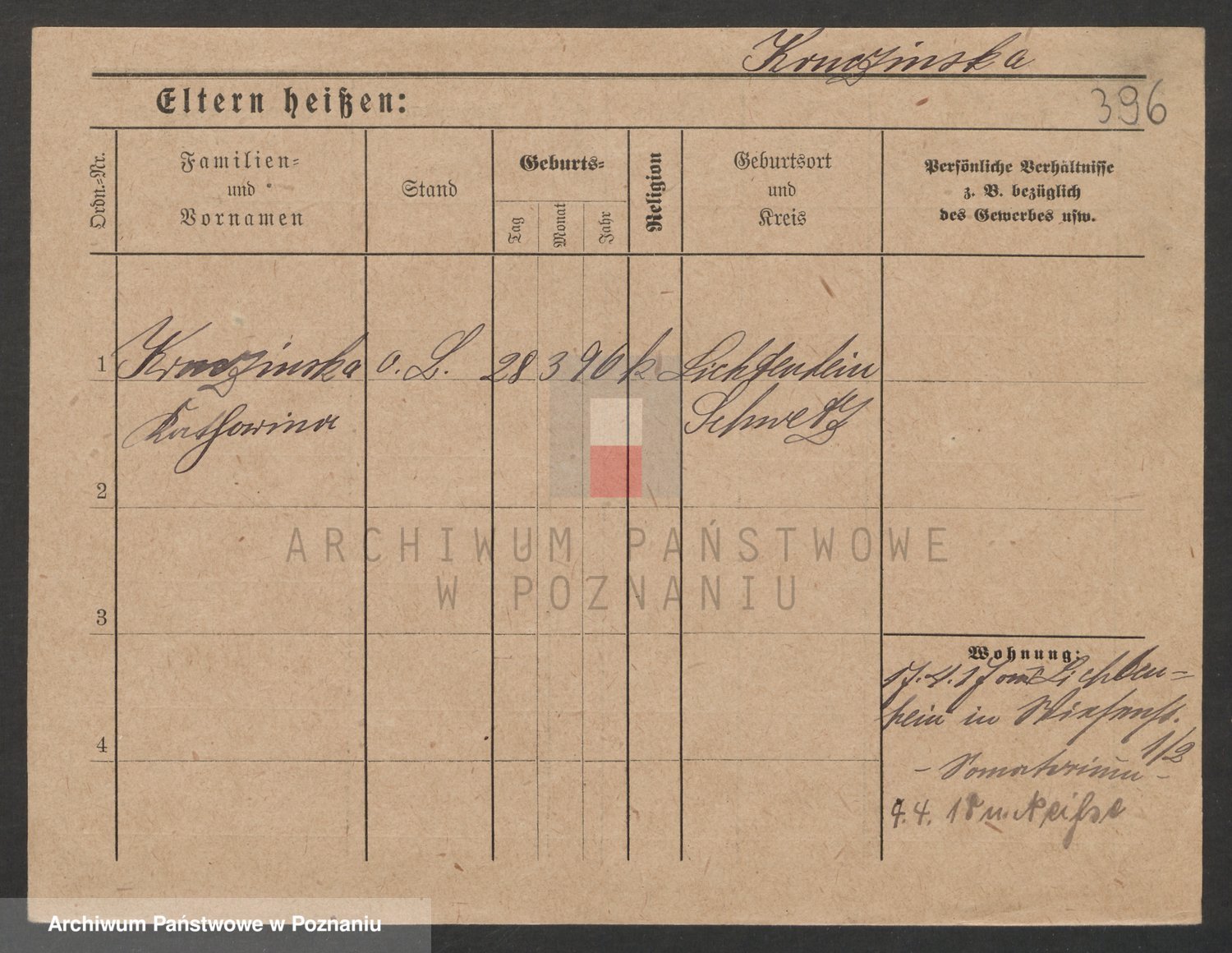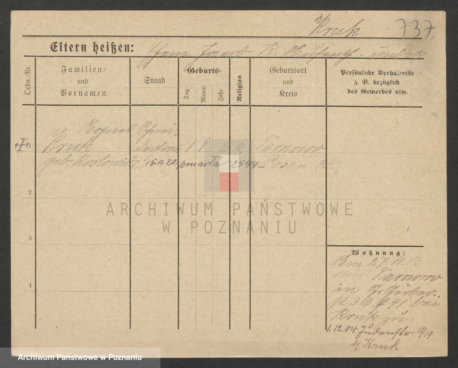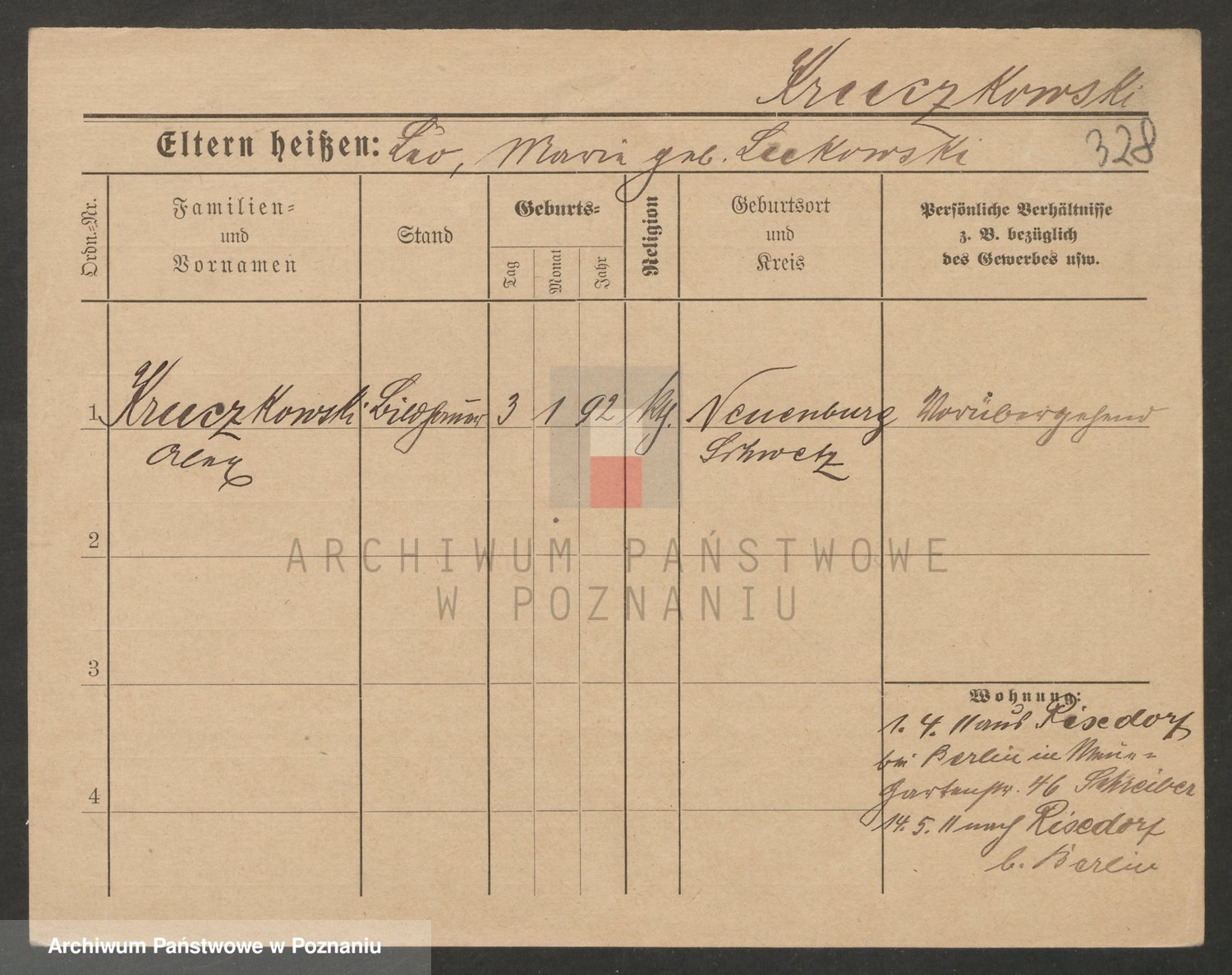 Podgląd karty osobowej dostępny jest po kliknięciu na nazwisko lub ikonkę karty. Można dokonywać powiększenia (ikony na górze) lub przechodzić między kolejnymi skanami (strzałki po bokach).