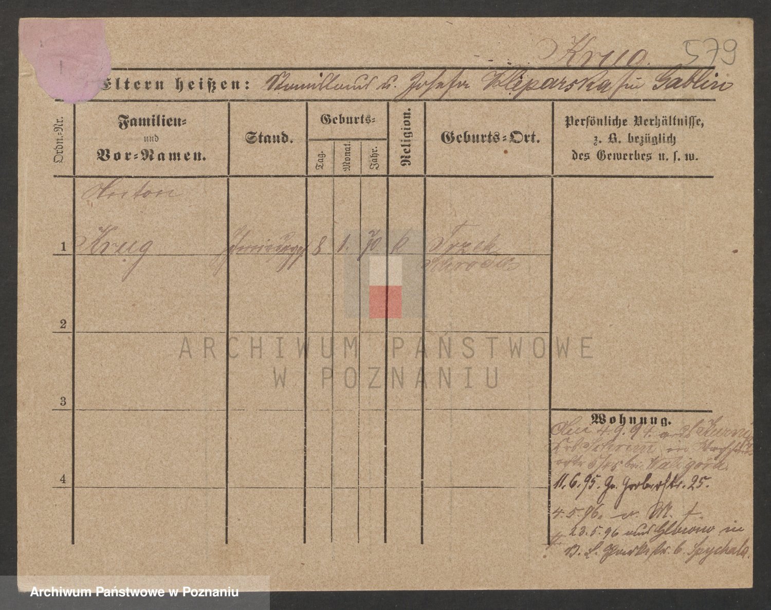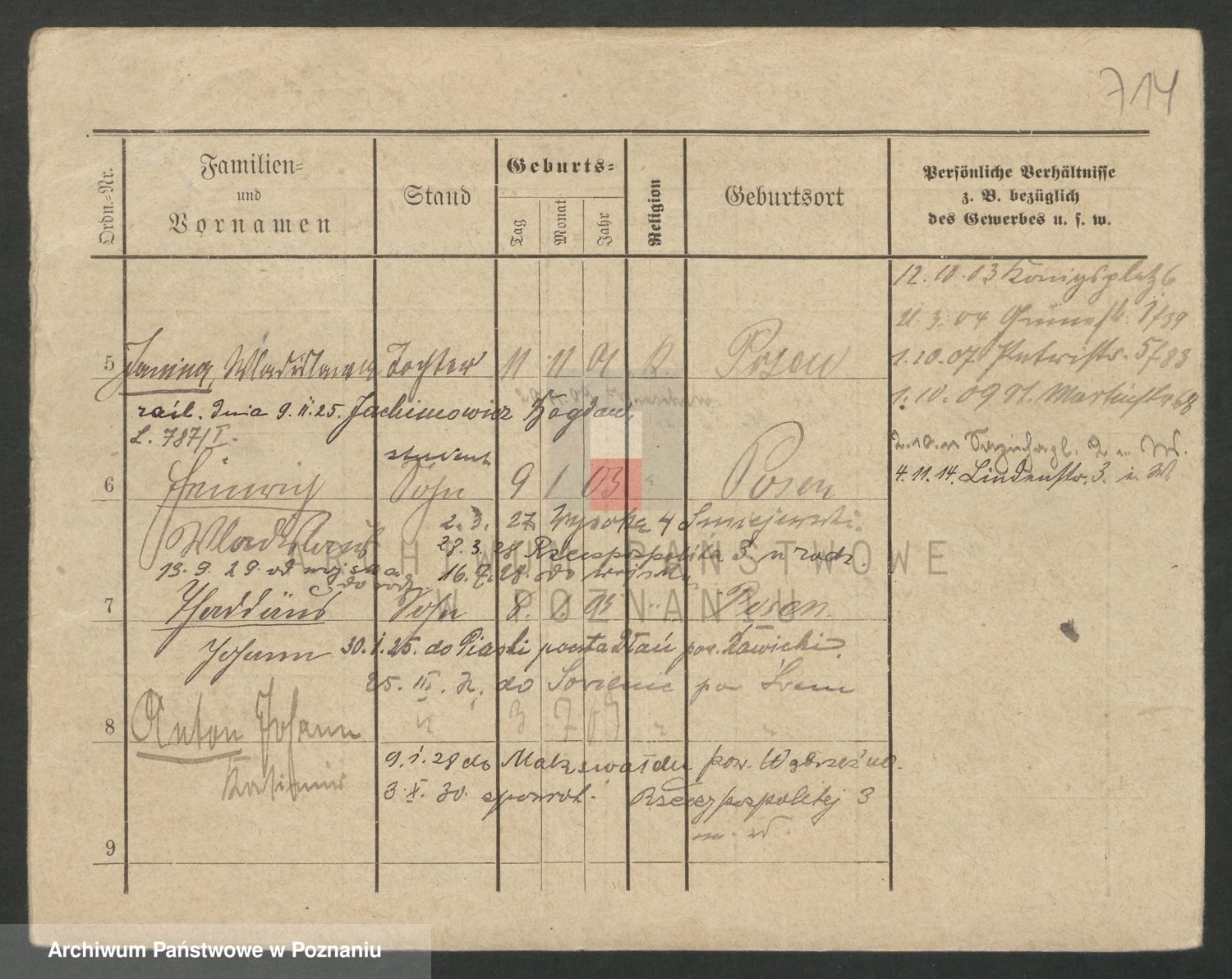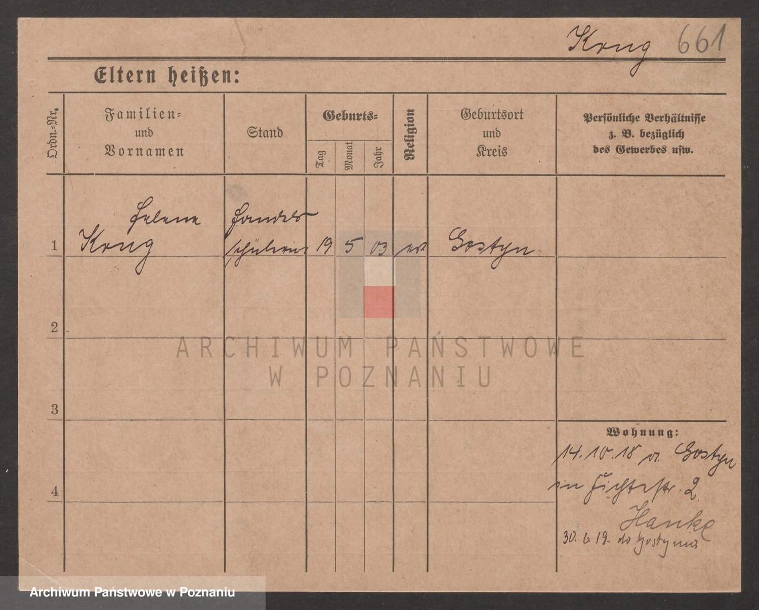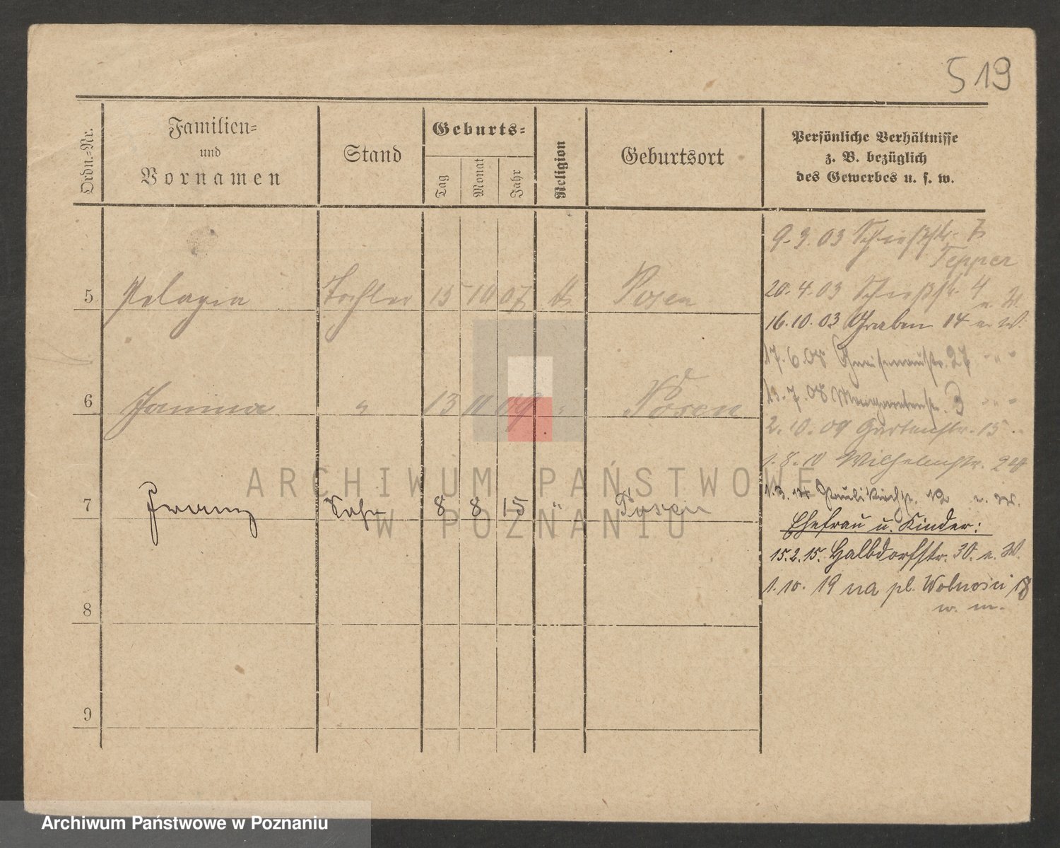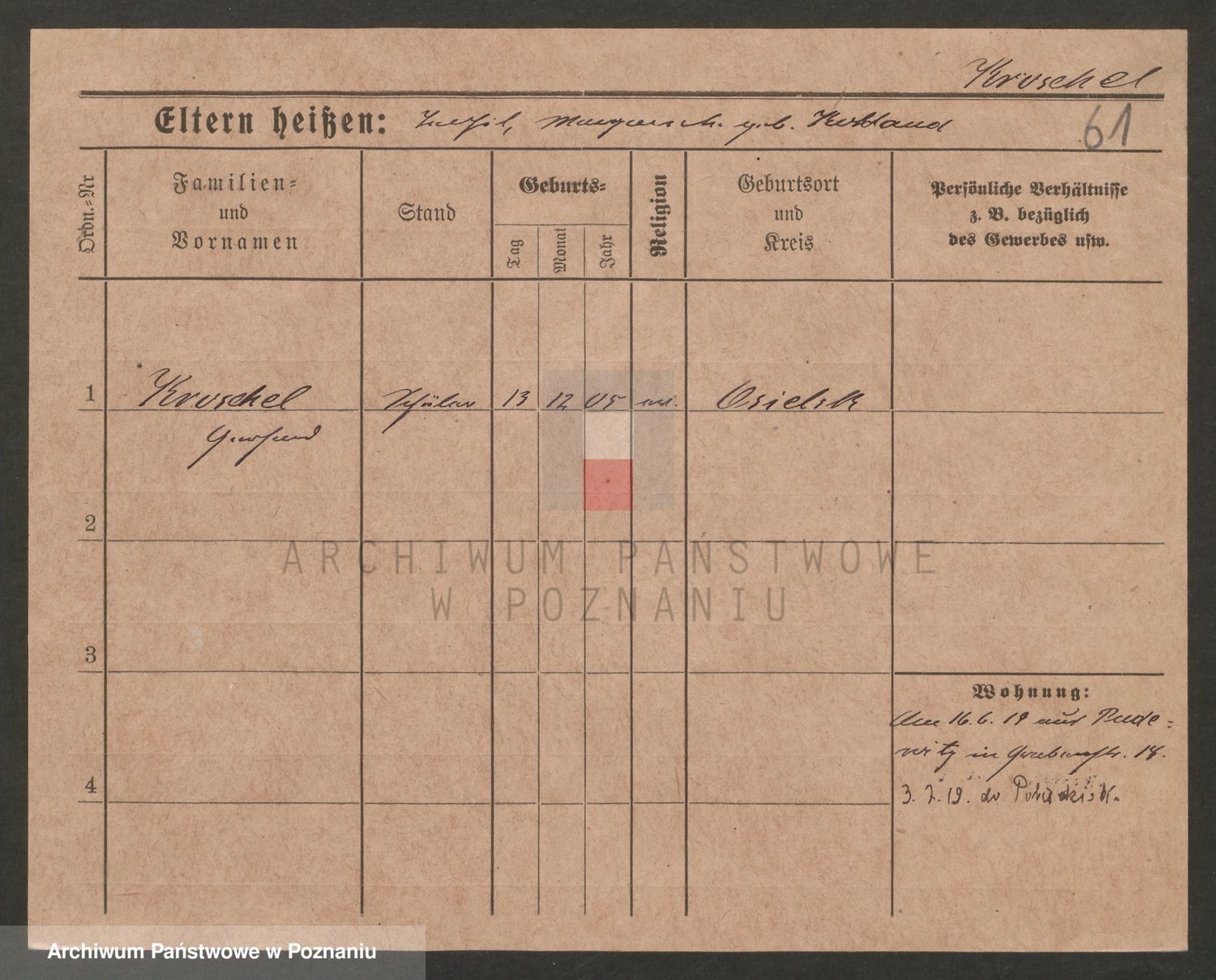 Podgląd karty osobowej dostępny jest po kliknięciu na nazwisko lub ikonkę karty. Można dokonywać powiększenia (ikony na górze) lub przechodzić między kolejnymi skanami (strzałki po bokach).