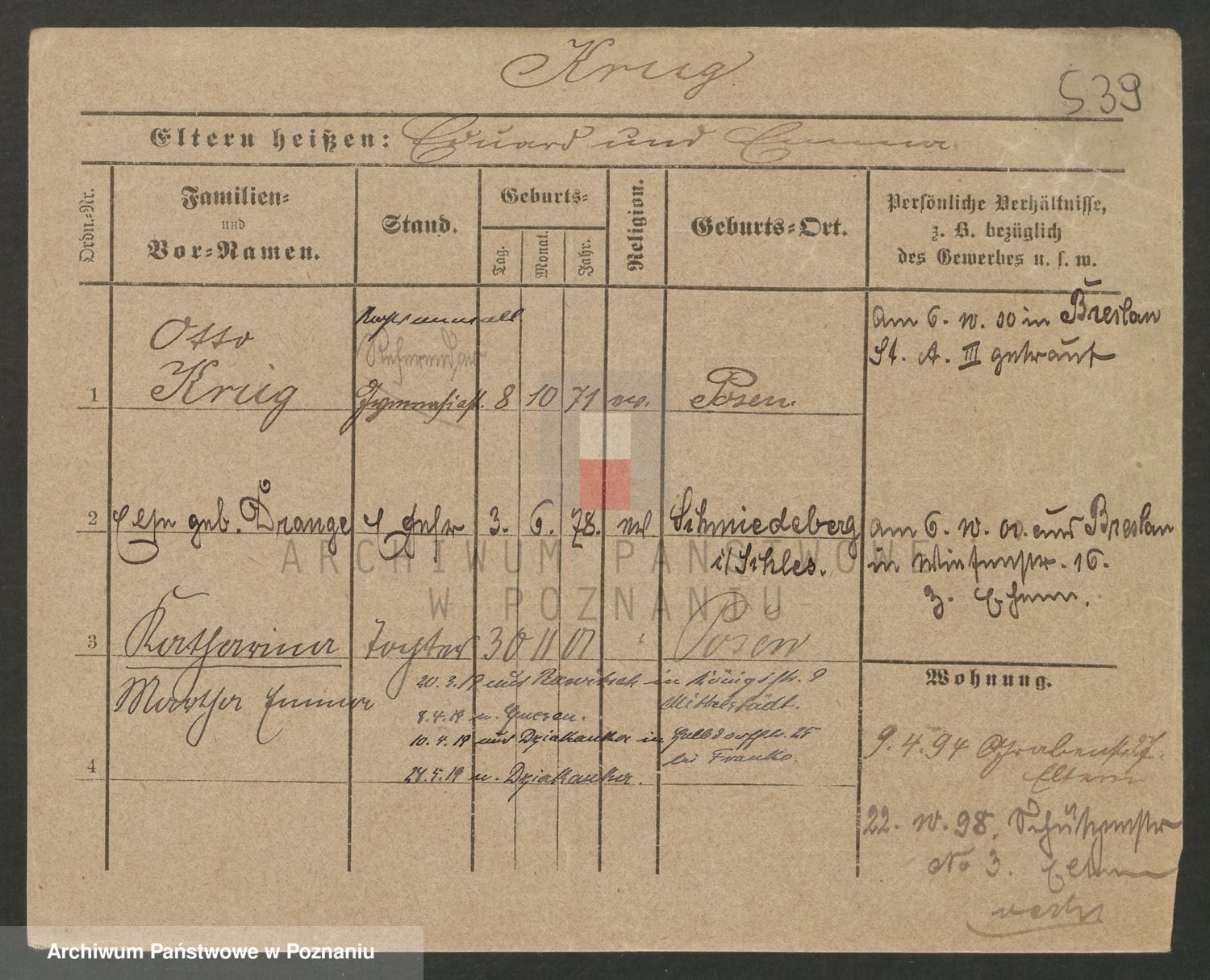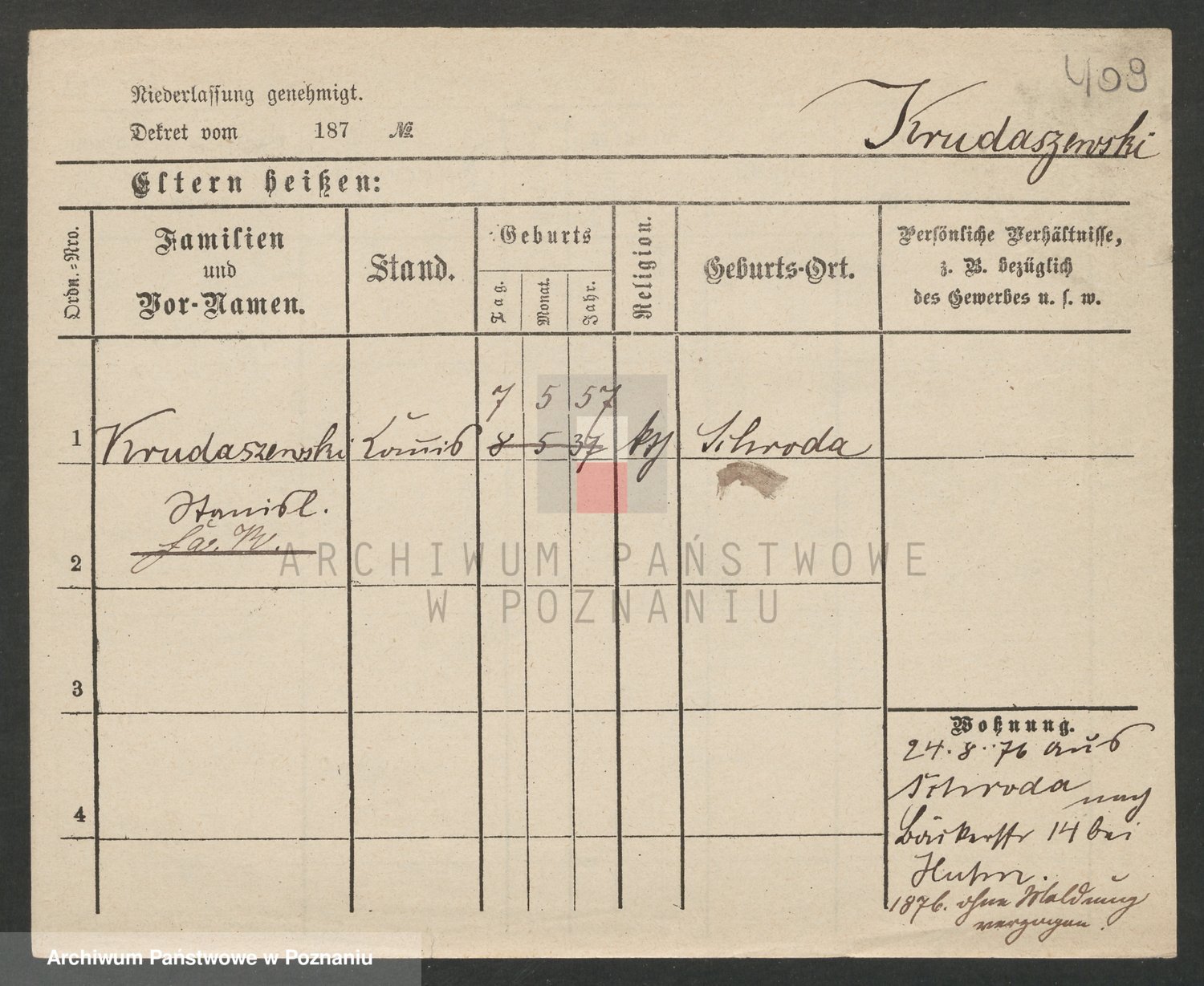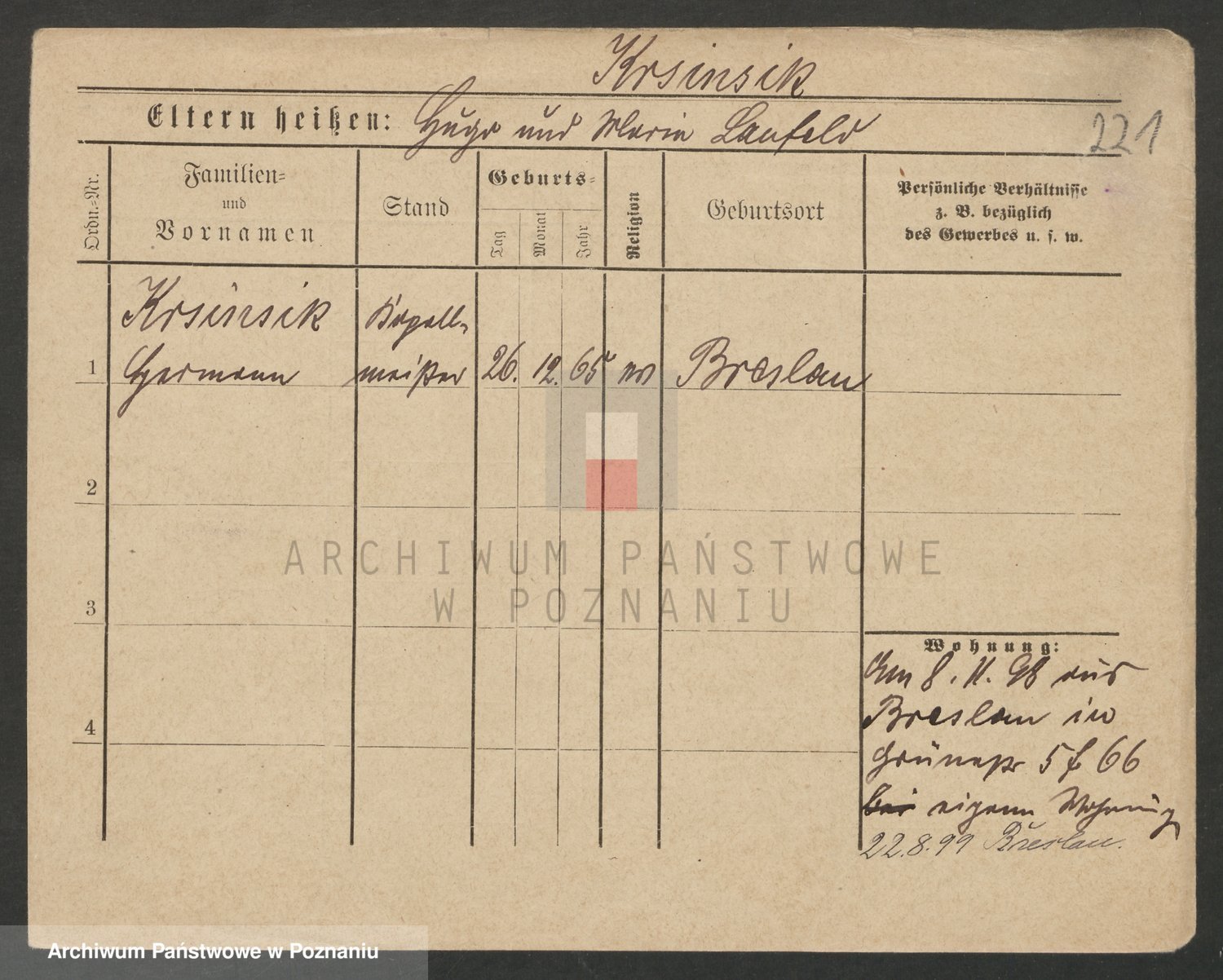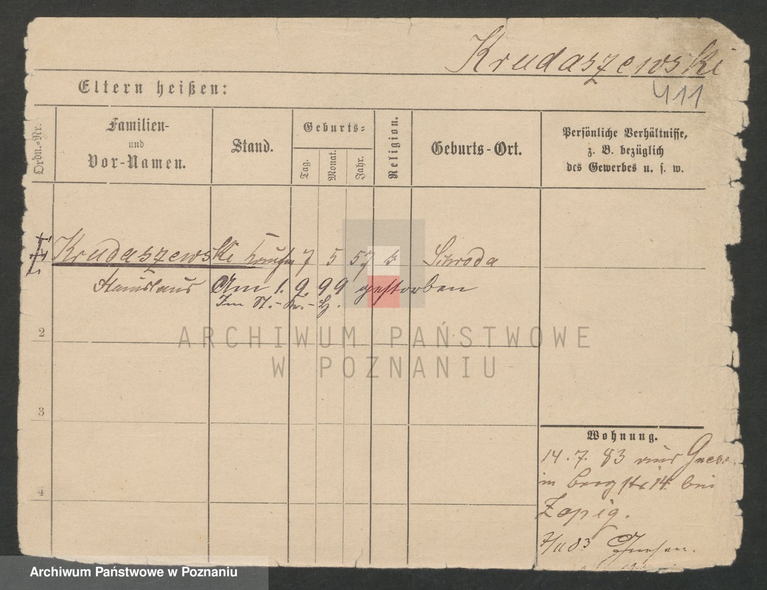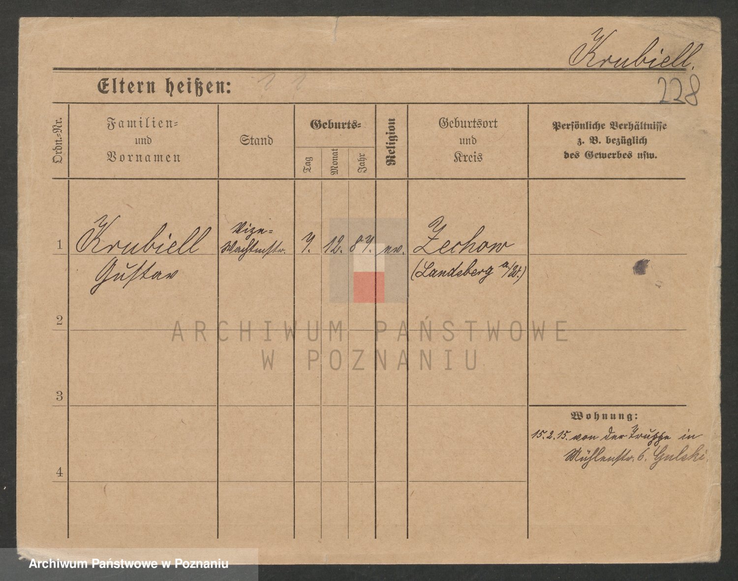 Podgląd karty osobowej dostępny jest po kliknięciu na nazwisko lub ikonkę karty. Można dokonywać powiększenia (ikony na górze) lub przechodzić między kolejnymi skanami (strzałki po bokach).