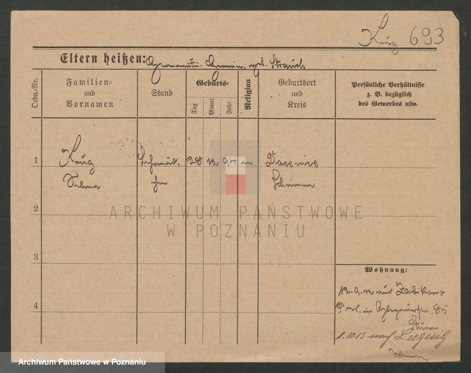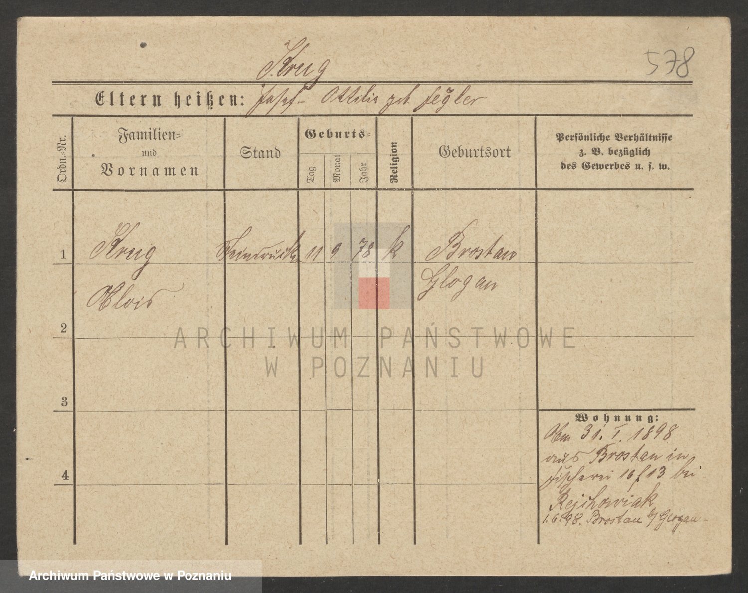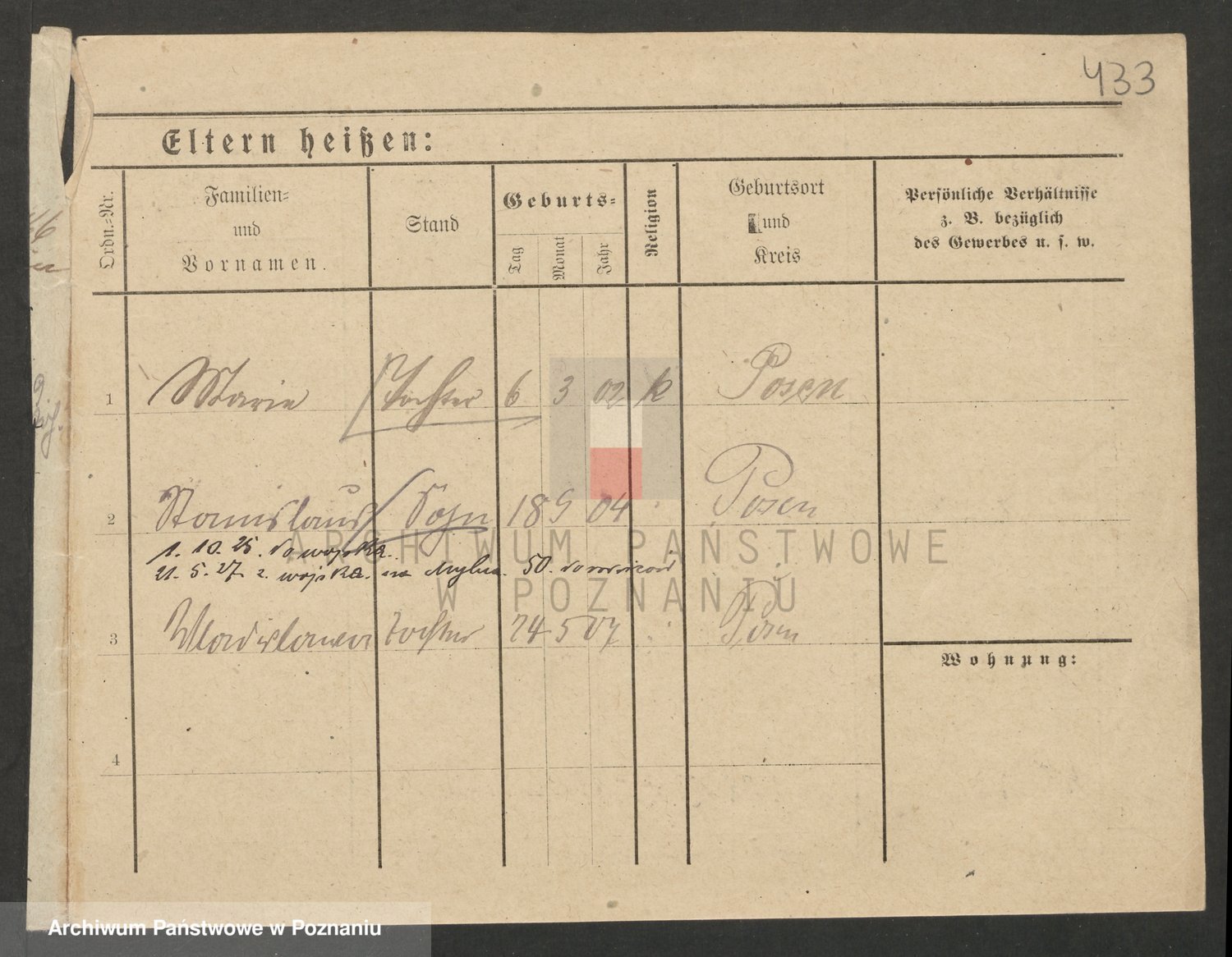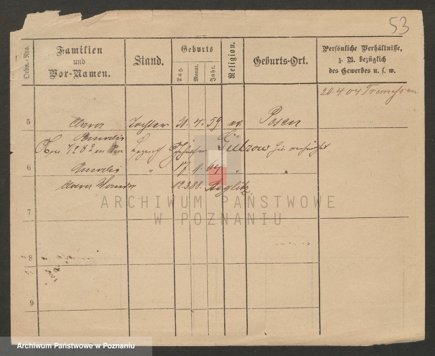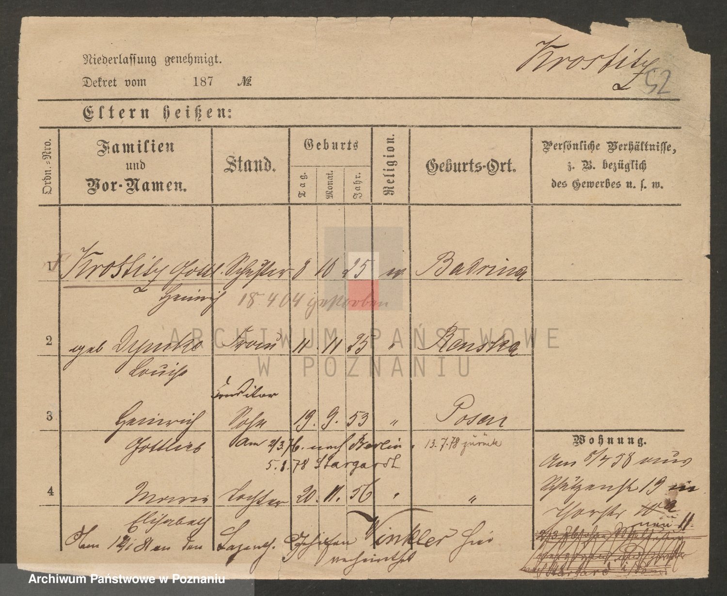 Podgląd karty osobowej dostępny jest po kliknięciu na nazwisko lub ikonkę karty. Można dokonywać powiększenia (ikony na górze) lub przechodzić między kolejnymi skanami (strzałki po bokach).