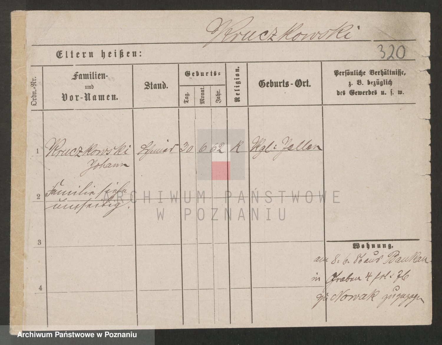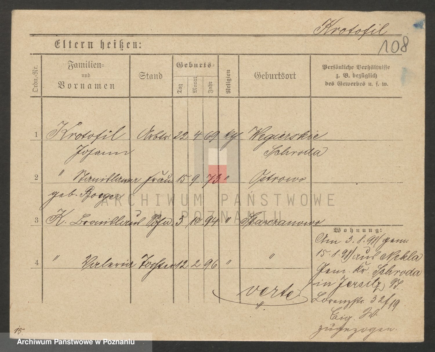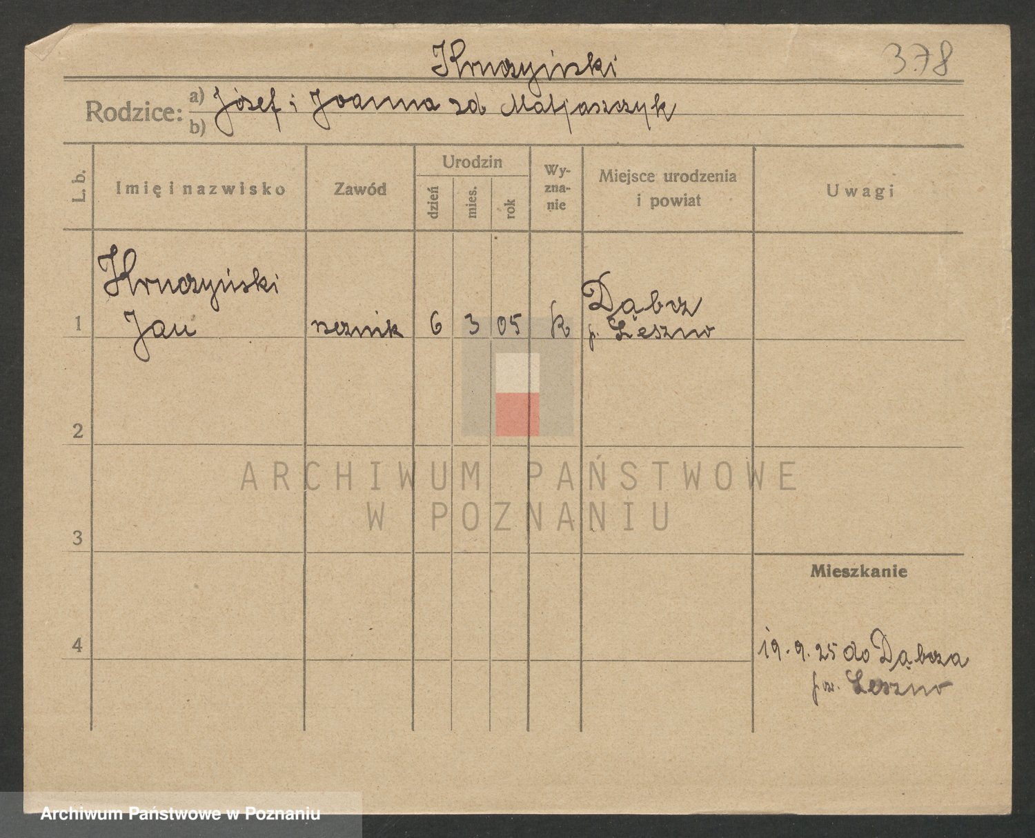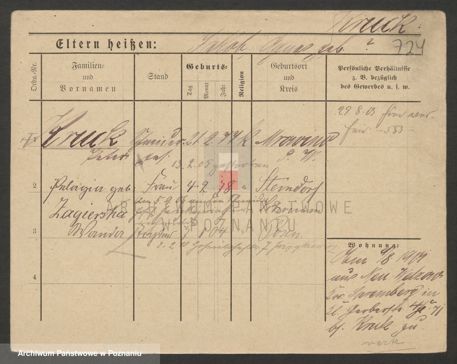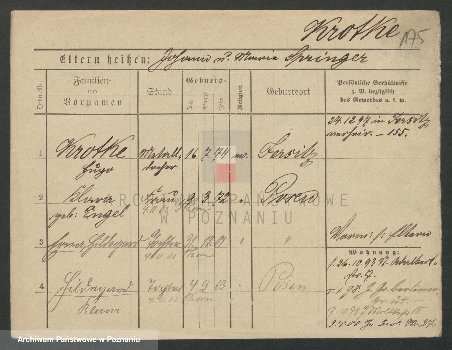 Podgląd karty osobowej dostępny jest po kliknięciu na nazwisko lub ikonkę karty. Można dokonywać powiększenia (ikony na górze) lub przechodzić między kolejnymi skanami (strzałki po bokach).