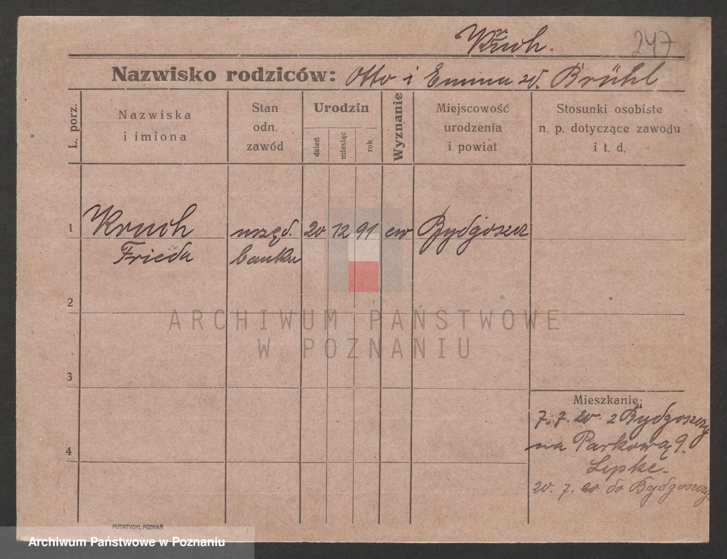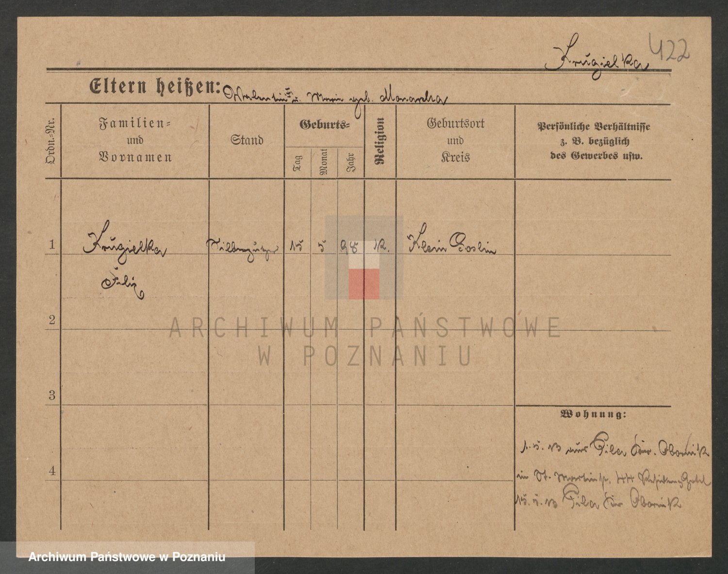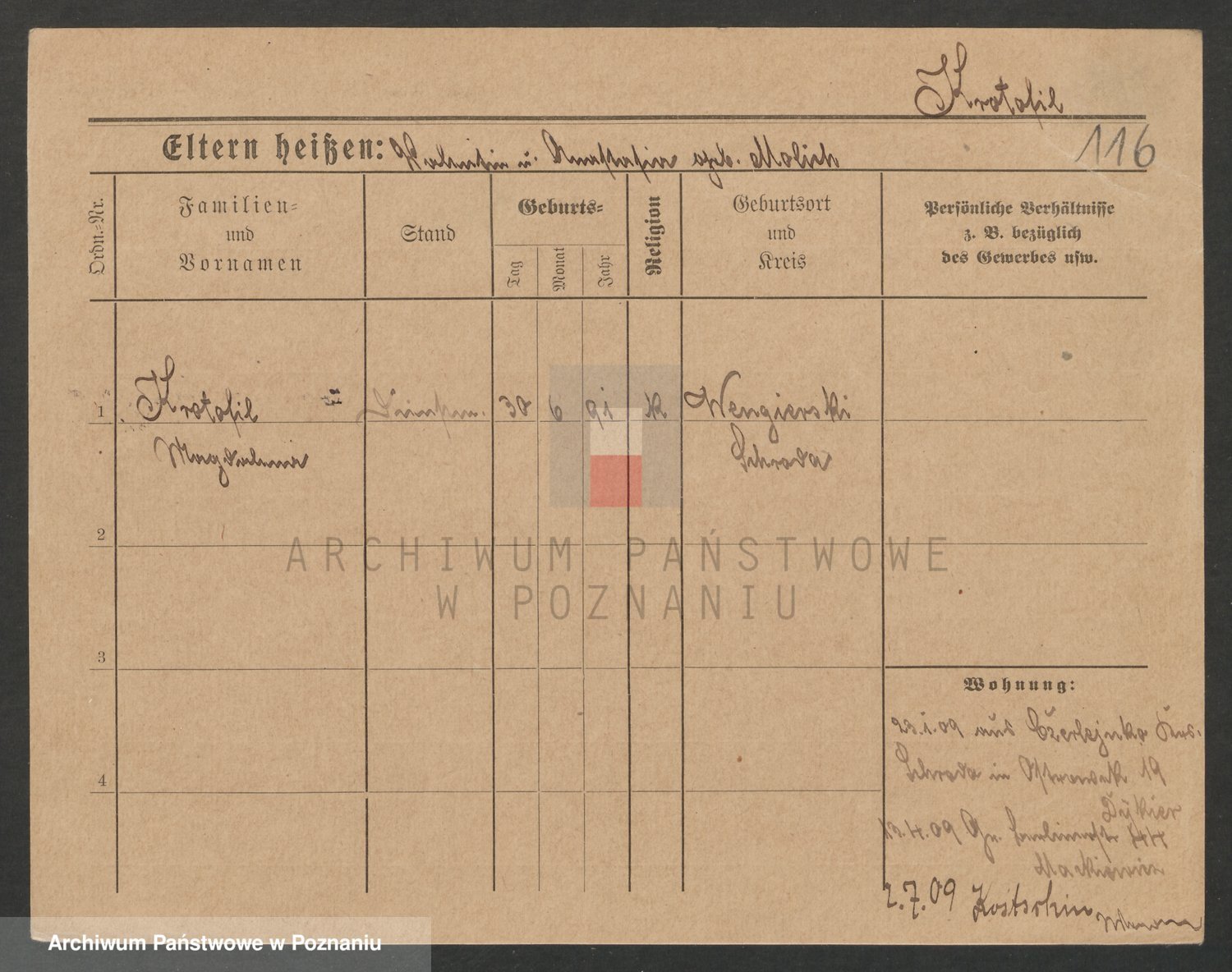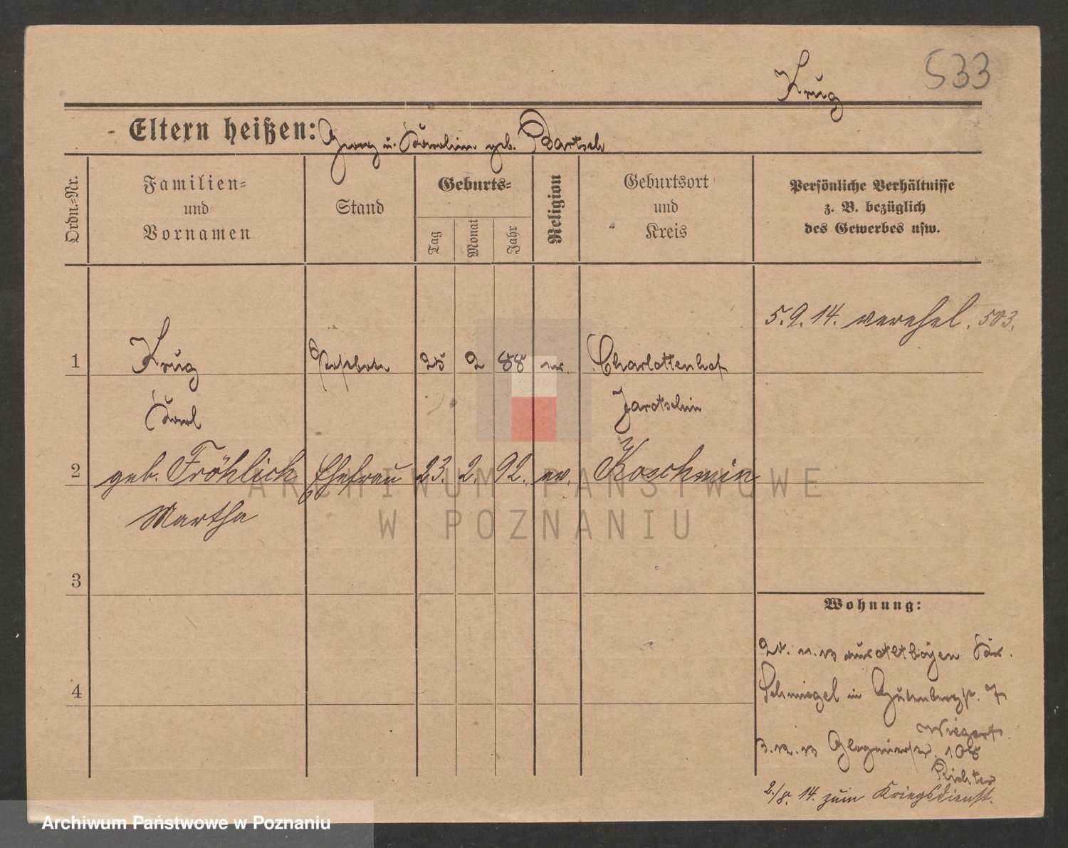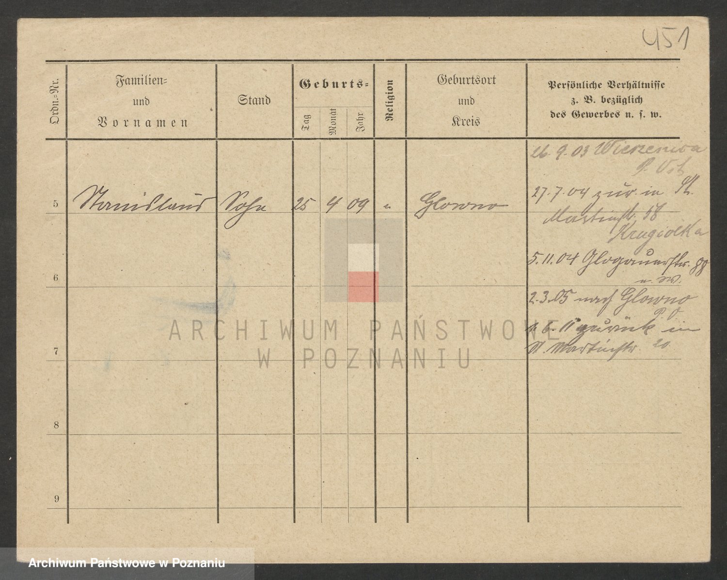 Podgląd karty osobowej dostępny jest po kliknięciu na nazwisko lub ikonkę karty. Można dokonywać powiększenia (ikony na górze) lub przechodzić między kolejnymi skanami (strzałki po bokach).