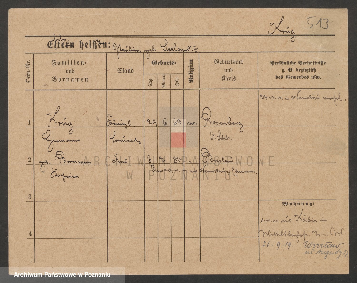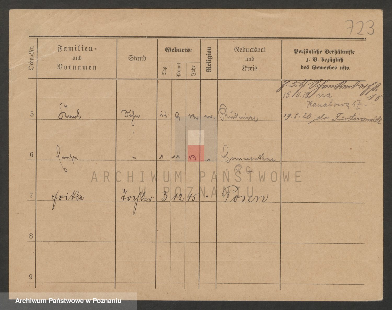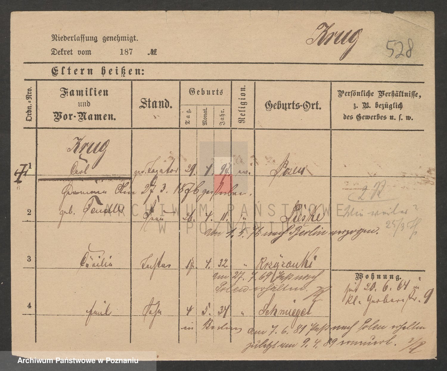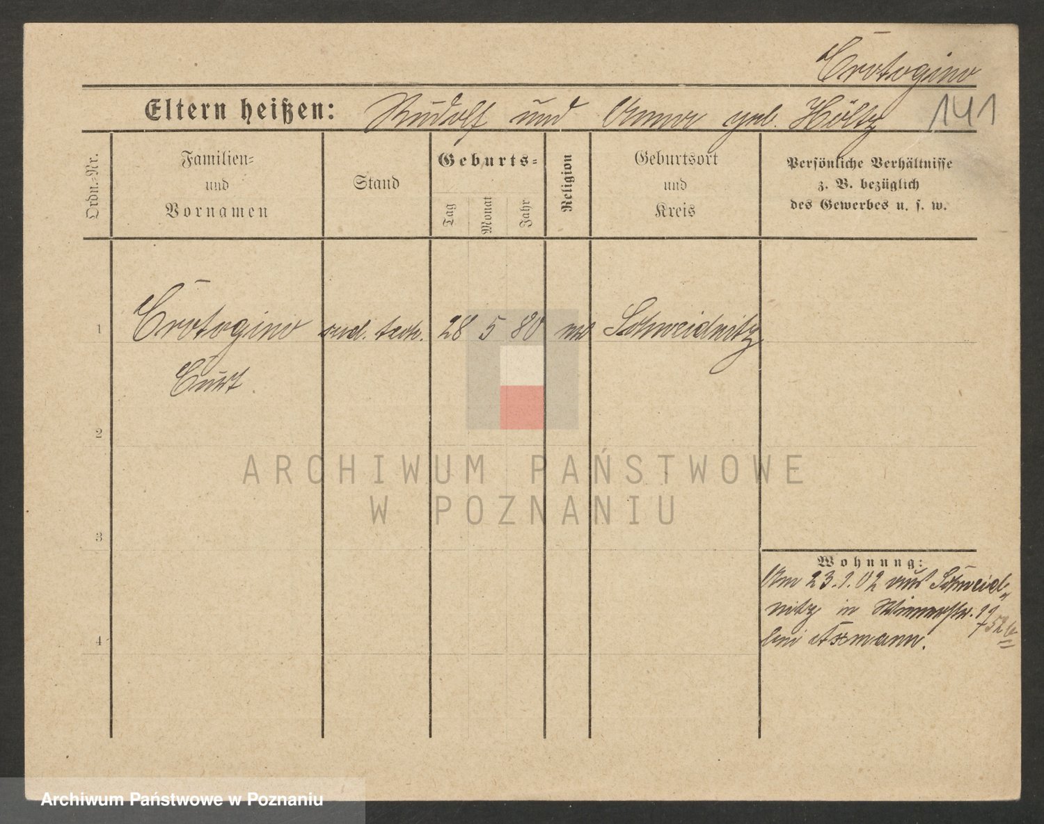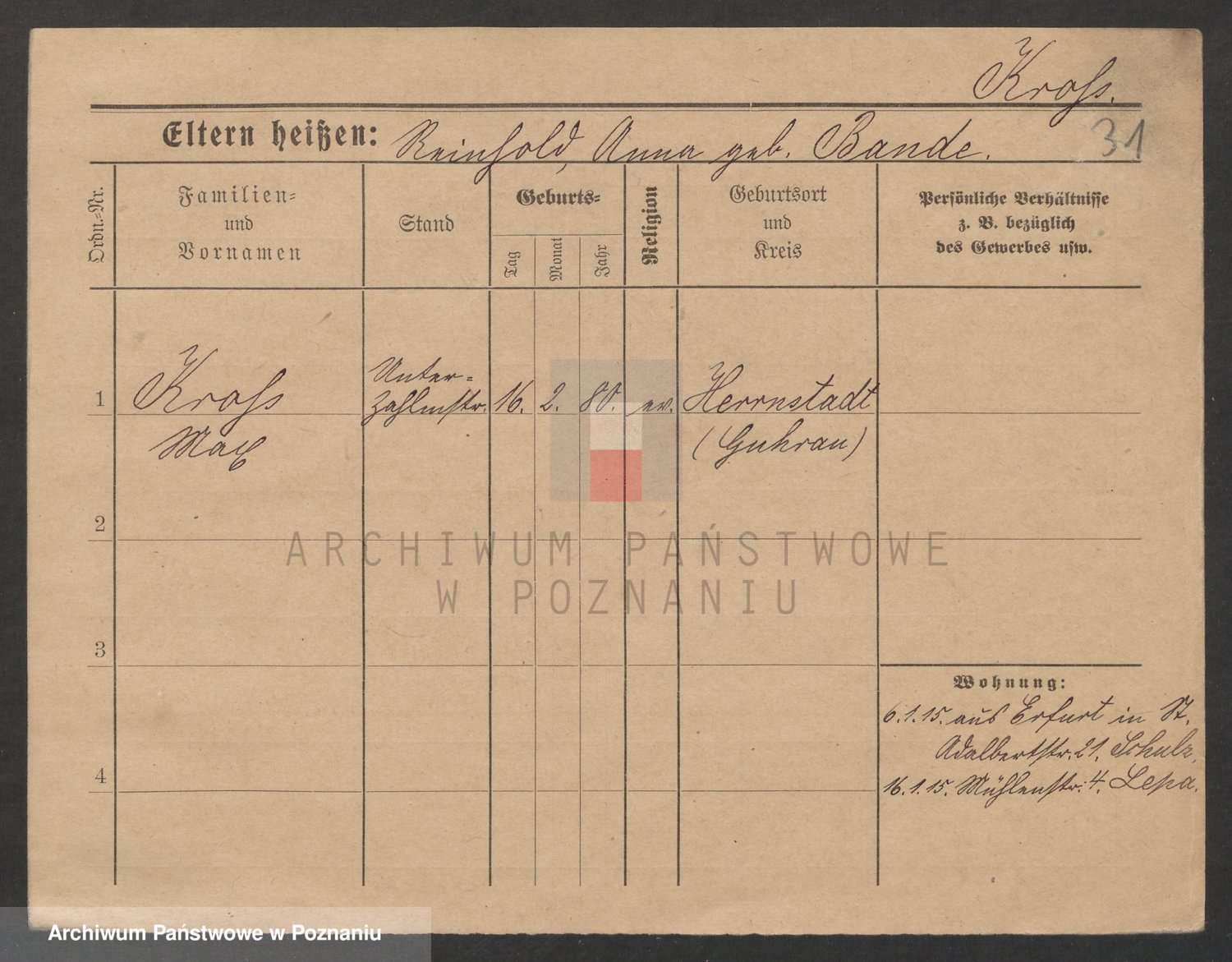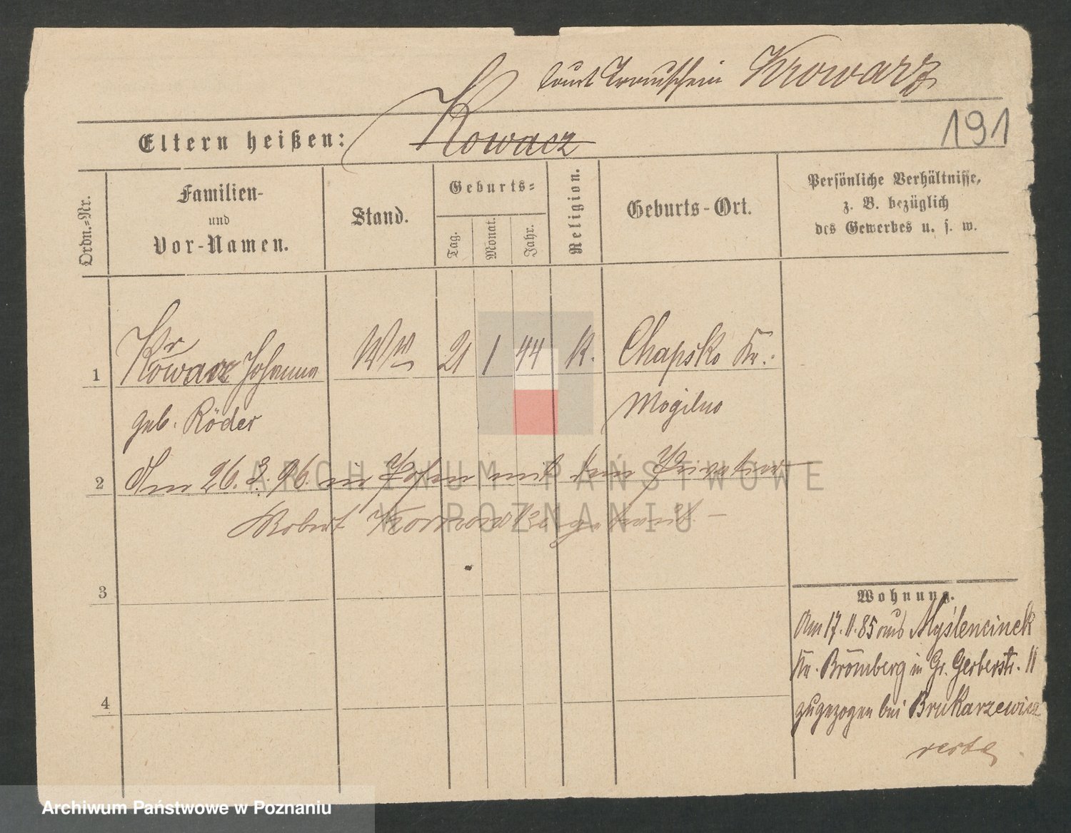 Podgląd karty osobowej dostępny jest po kliknięciu na nazwisko lub ikonkę karty. Można dokonywać powiększenia (ikony na górze) lub przechodzić między kolejnymi skanami (strzałki po bokach).