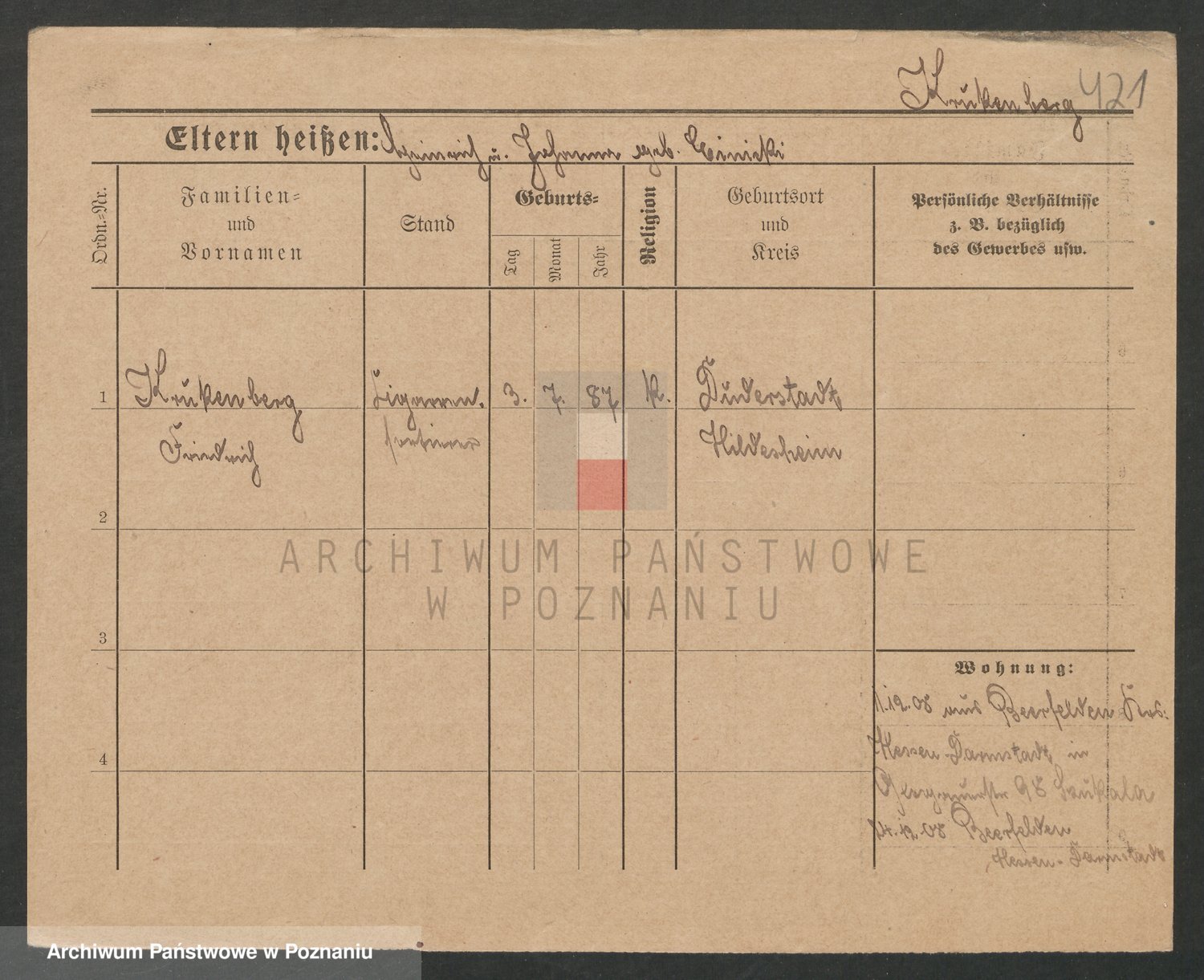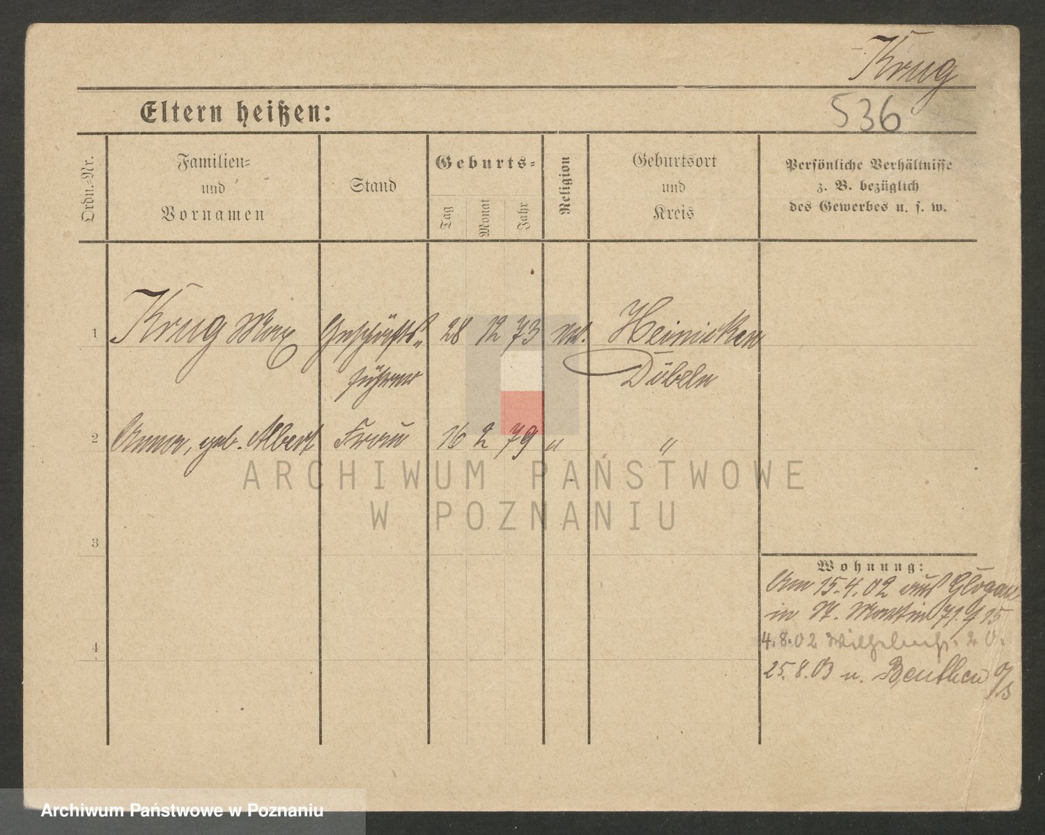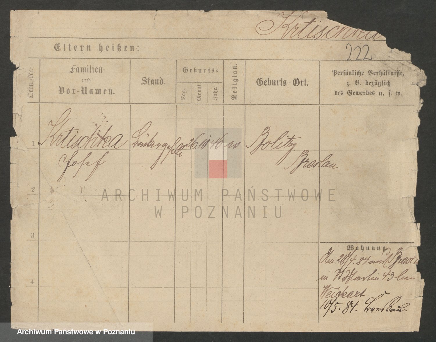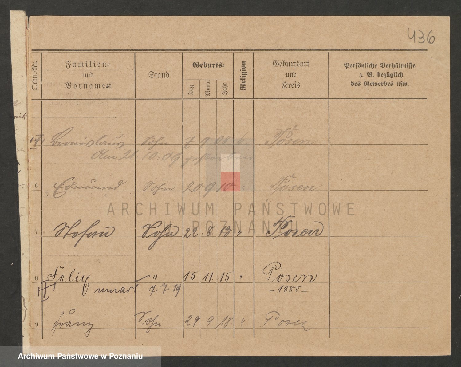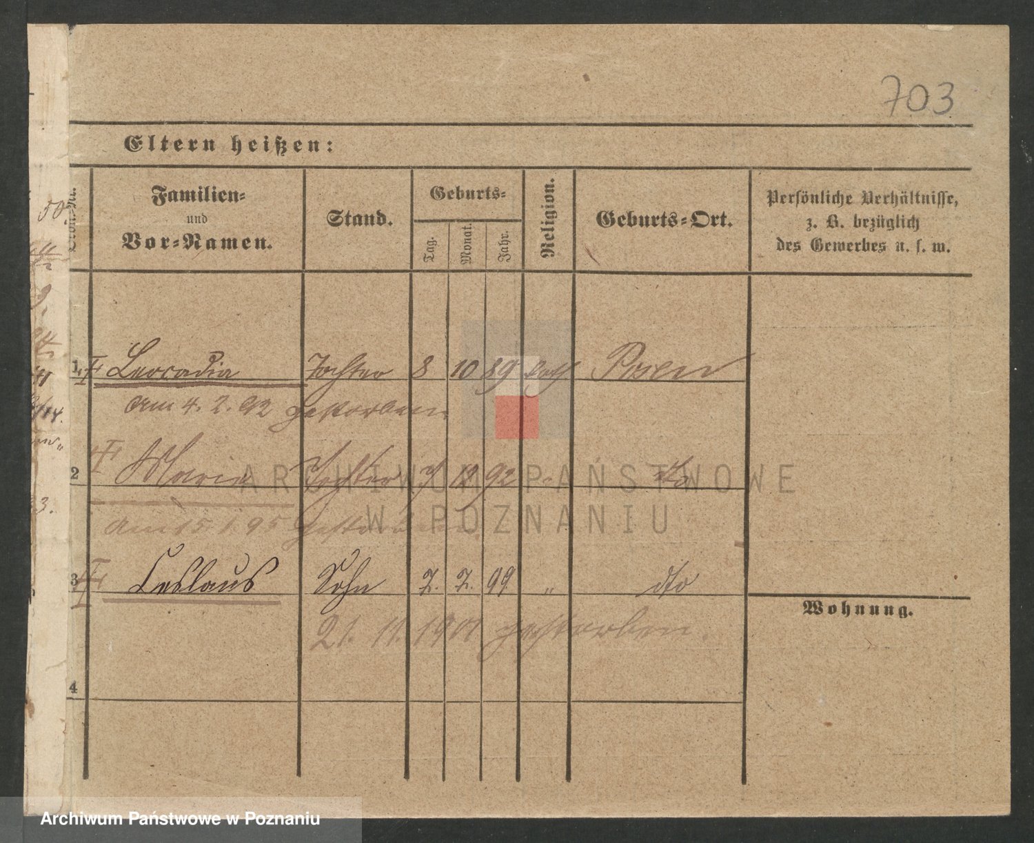 Podgląd karty osobowej dostępny jest po kliknięciu na nazwisko lub ikonkę karty. Można dokonywać powiększenia (ikony na górze) lub przechodzić między kolejnymi skanami (strzałki po bokach).