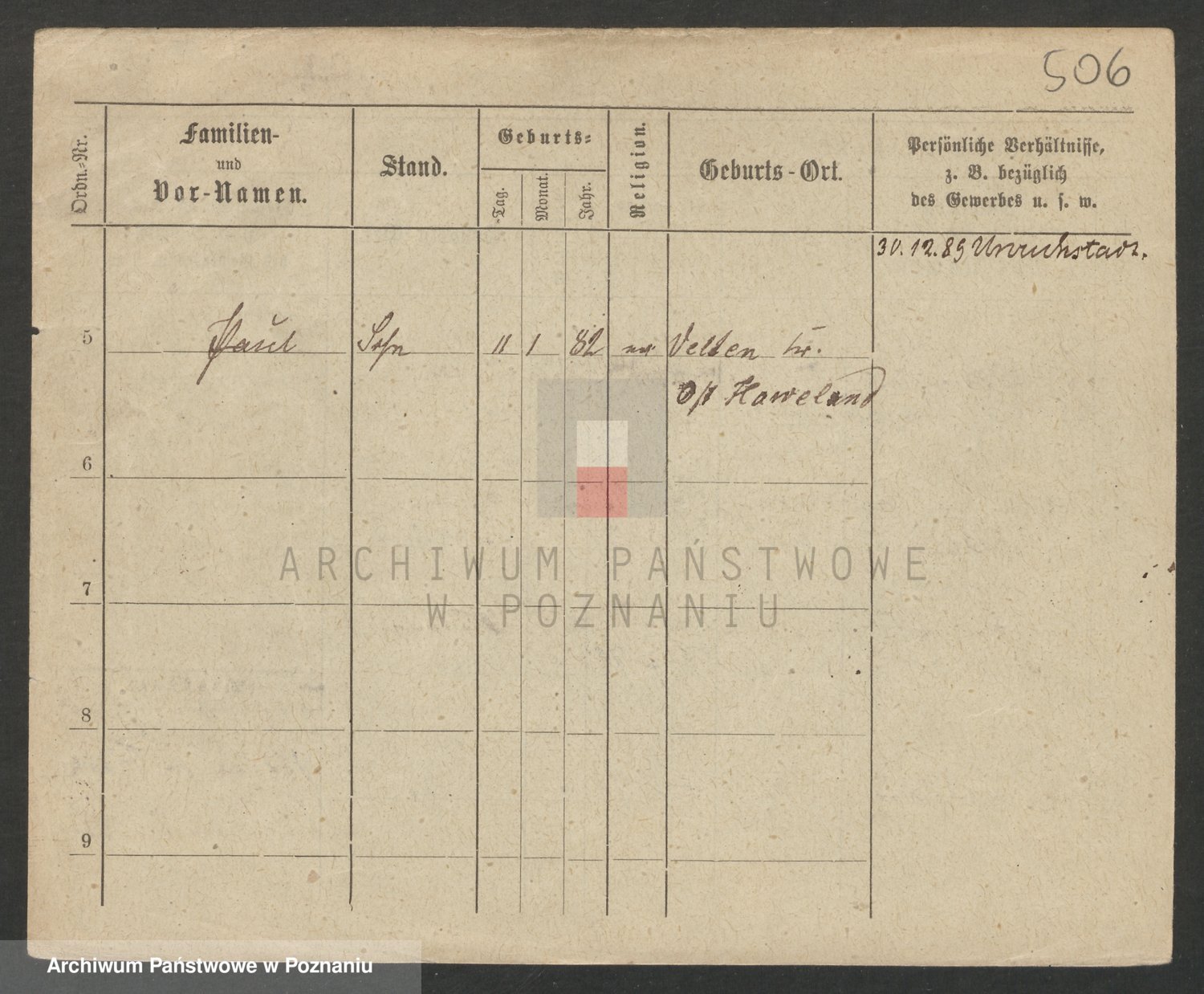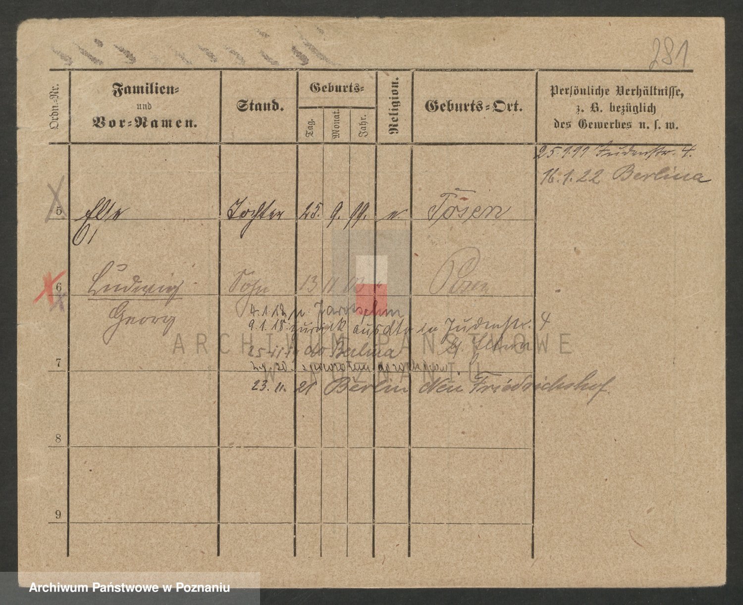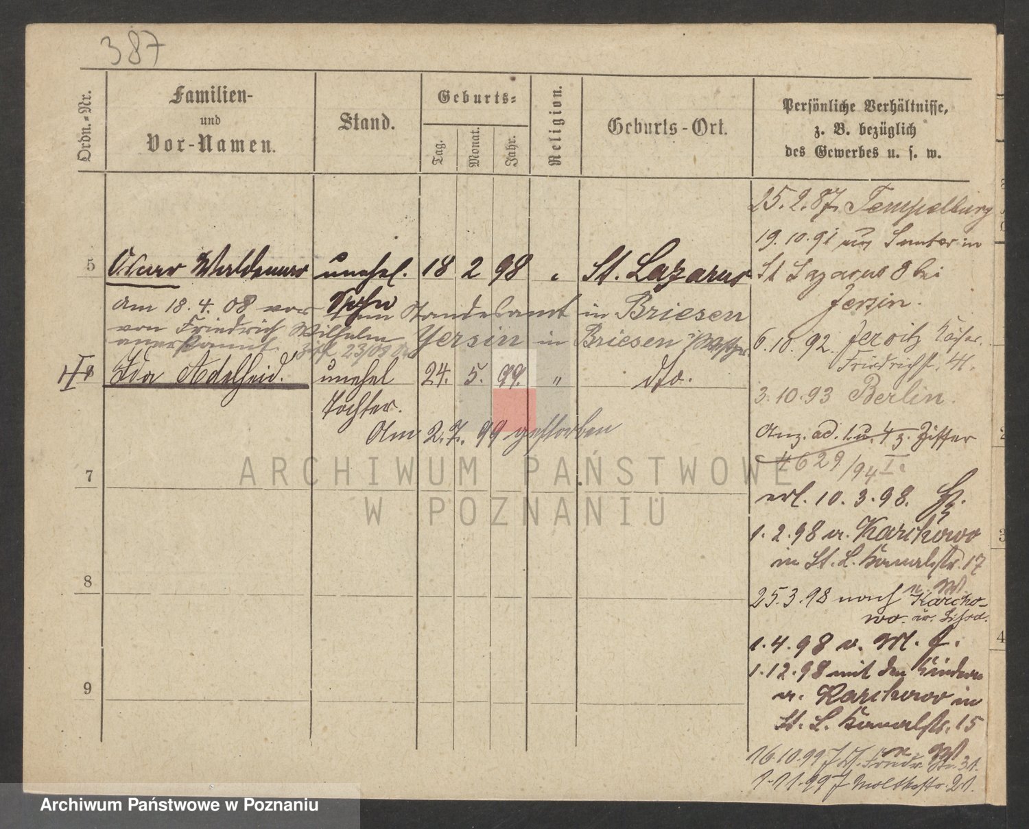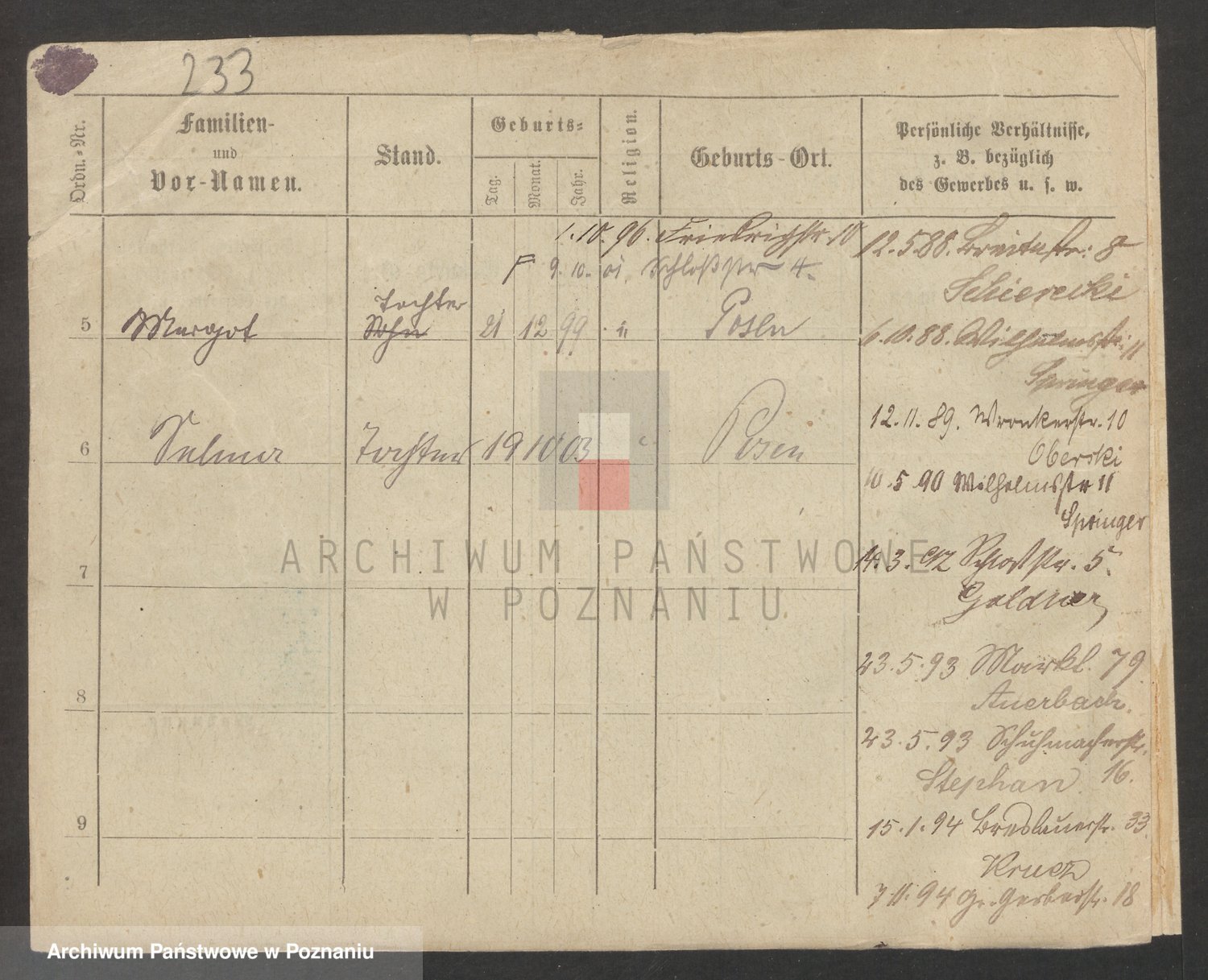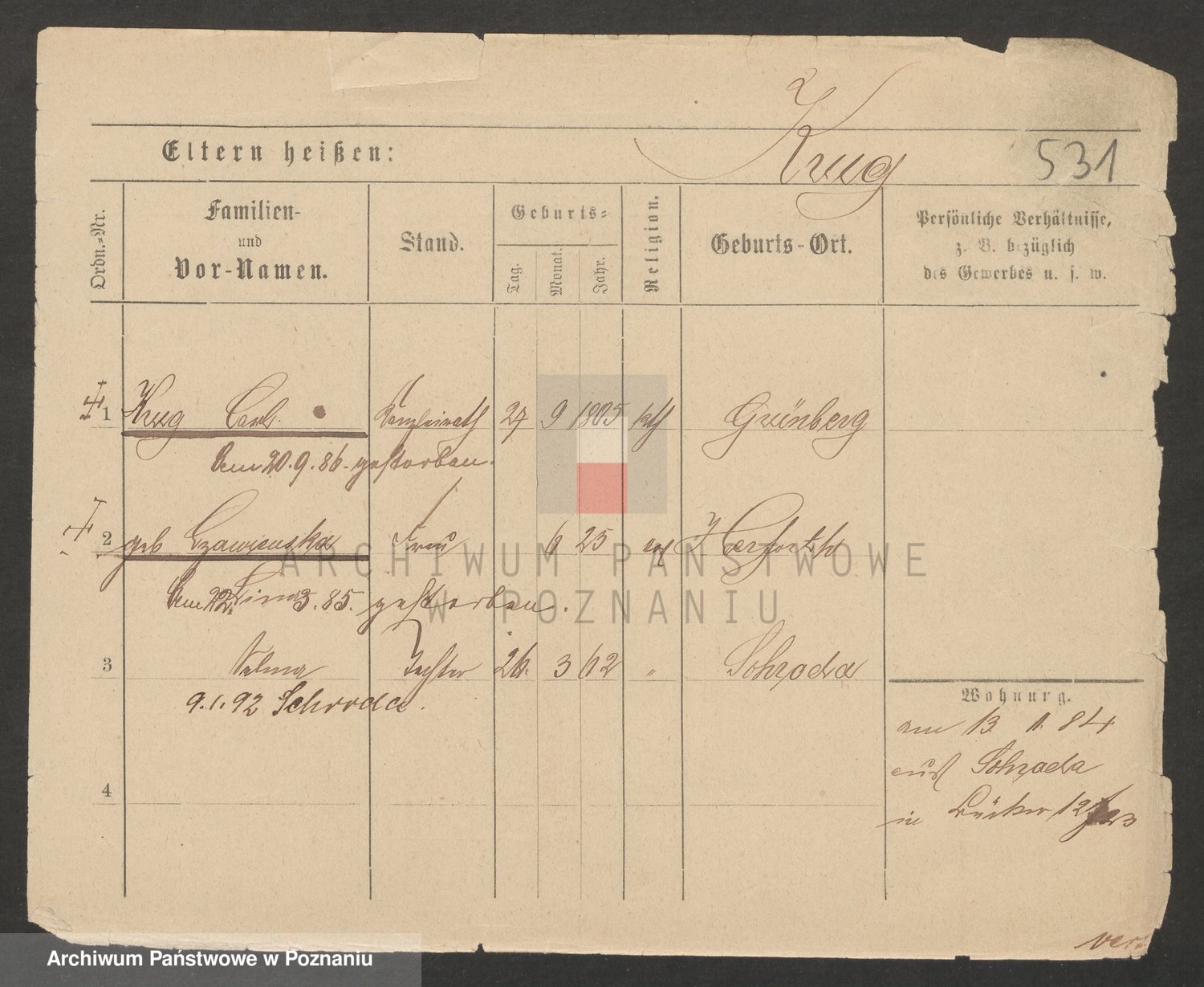 Podgląd karty osobowej dostępny jest po kliknięciu na nazwisko lub ikonkę karty. Można dokonywać powiększenia (ikony na górze) lub przechodzić między kolejnymi skanami (strzałki po bokach).