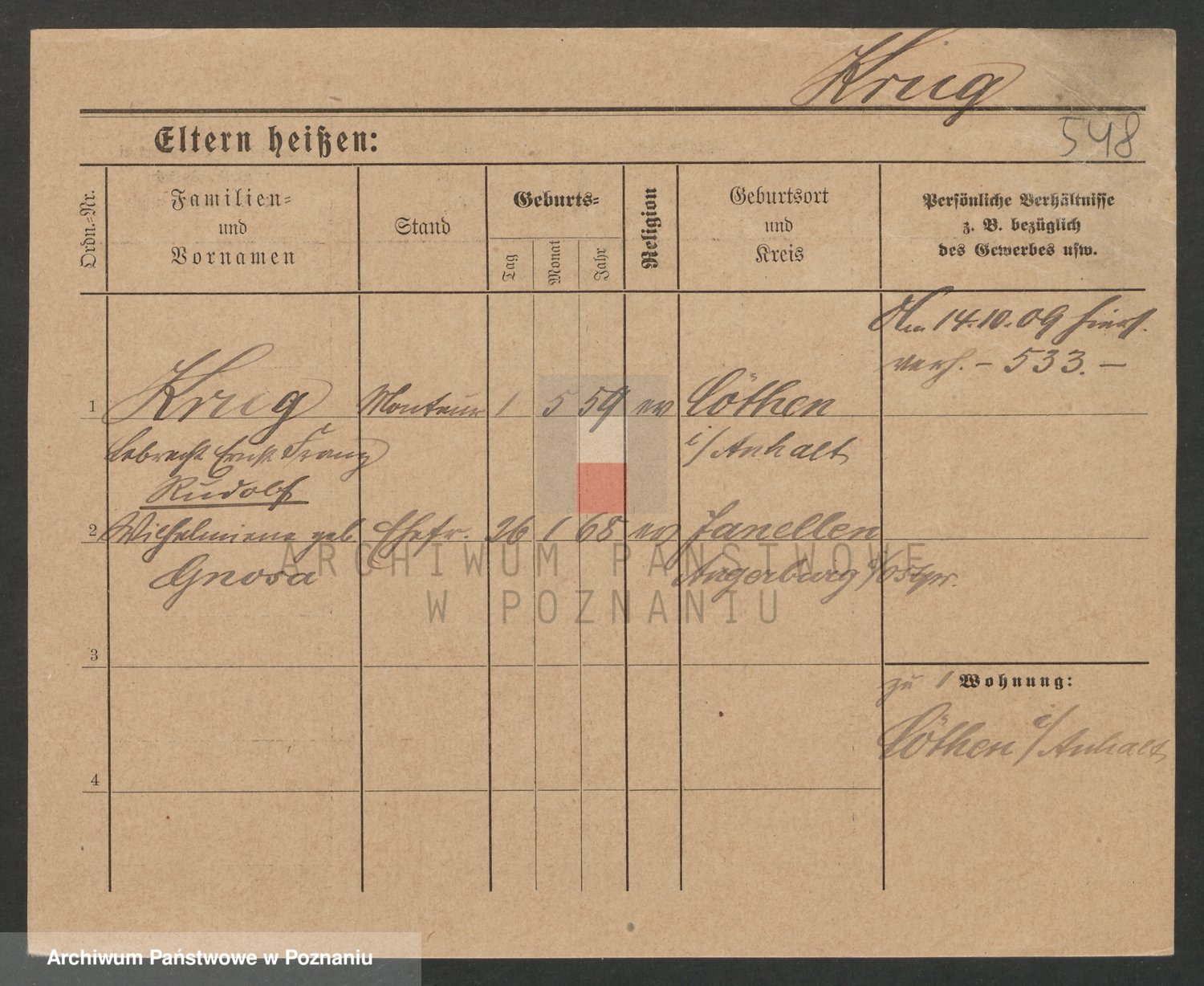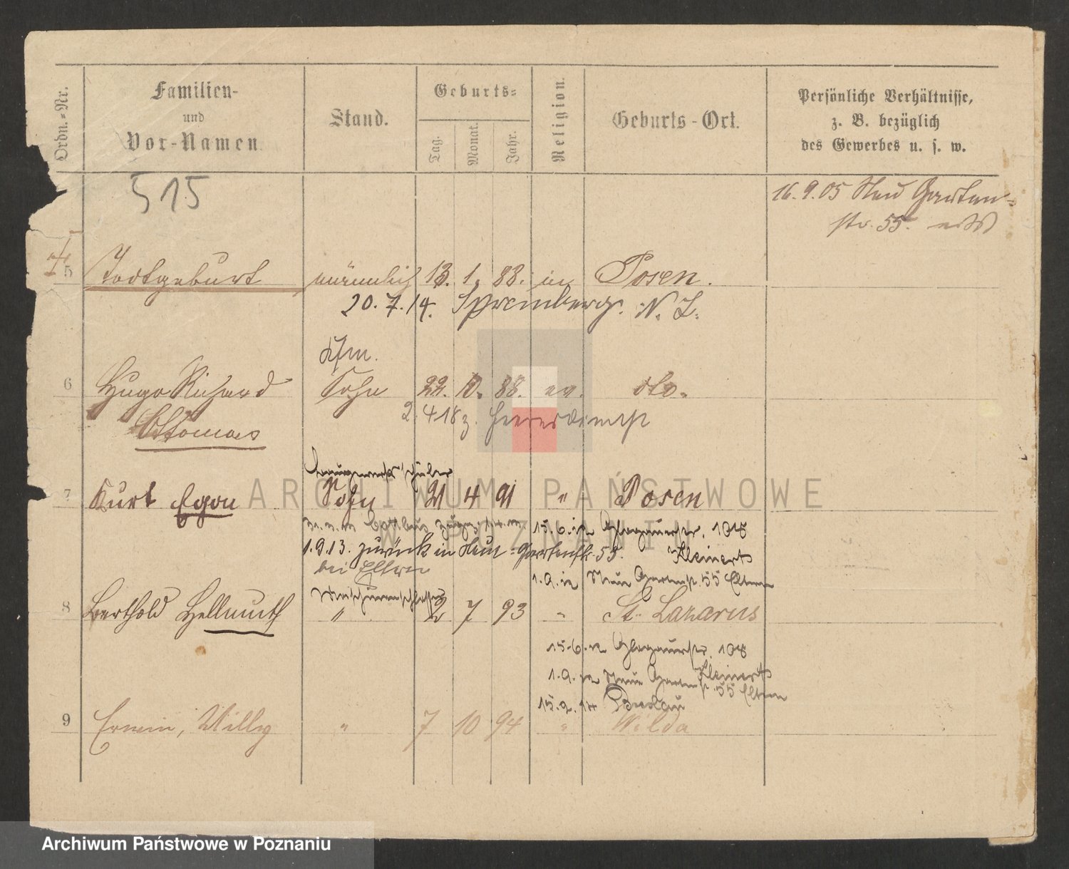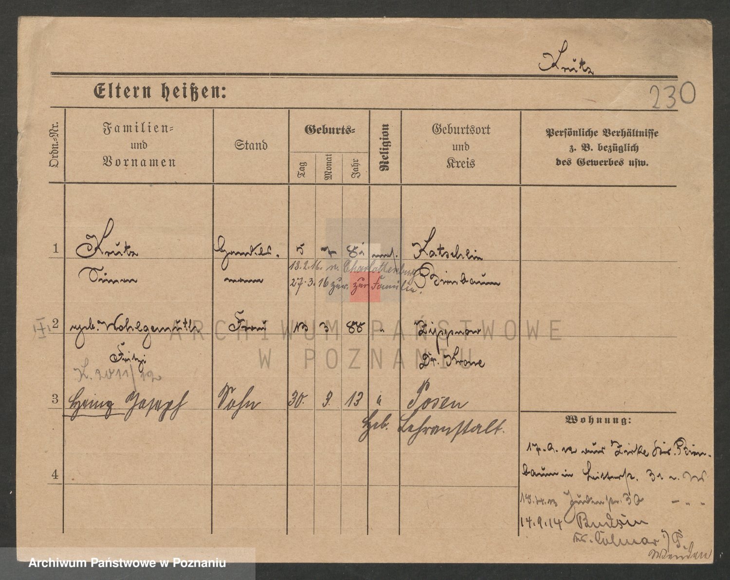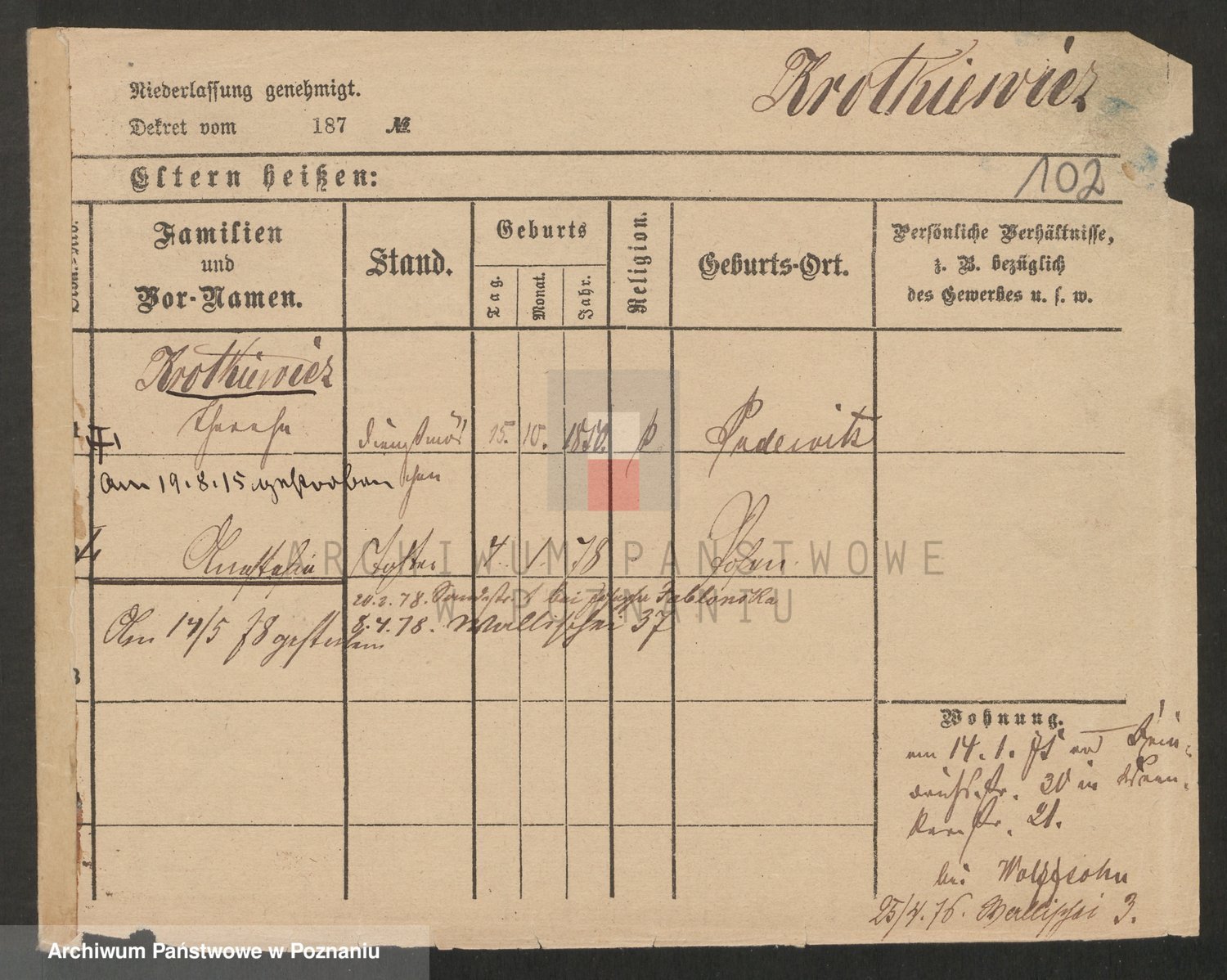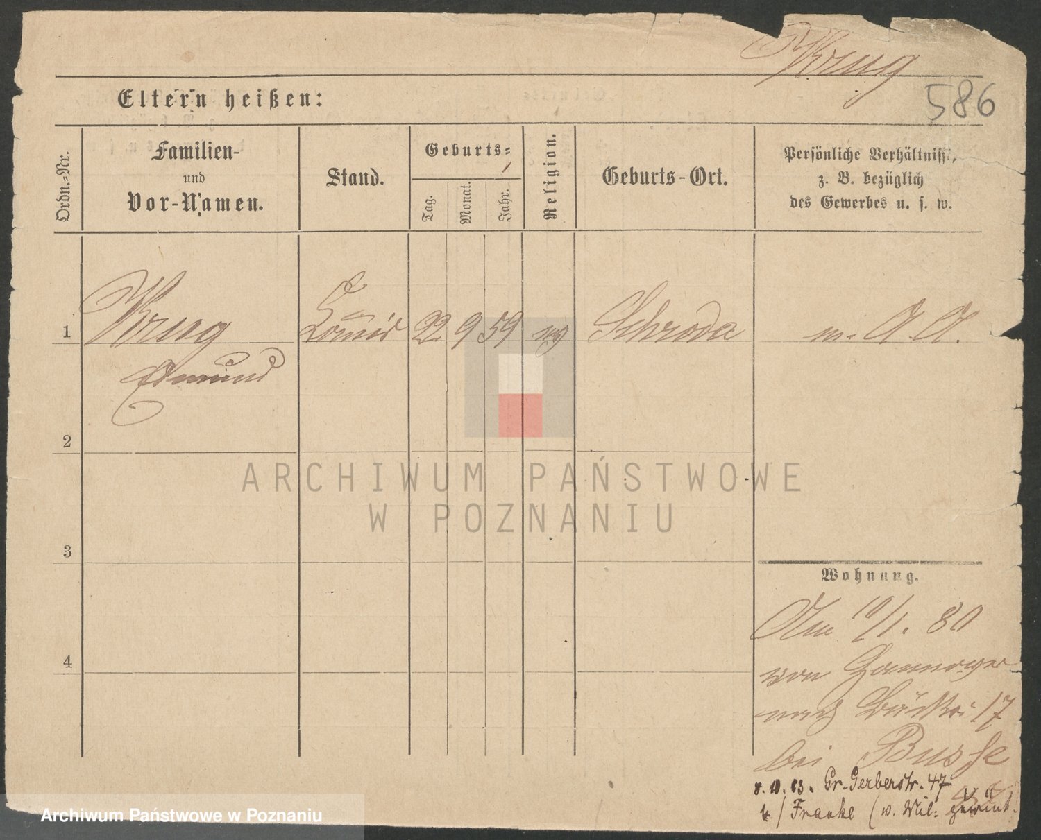 Podgląd karty osobowej dostępny jest po kliknięciu na nazwisko lub ikonkę karty. Można dokonywać powiększenia (ikony na górze) lub przechodzić między kolejnymi skanami (strzałki po bokach).