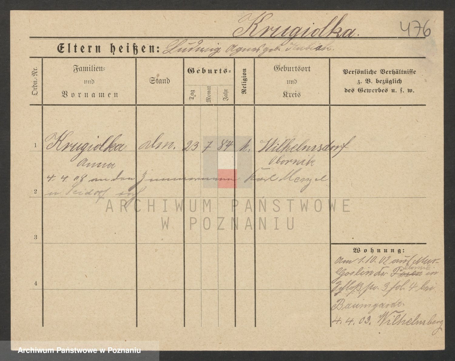 Kruk, Wilhelmine