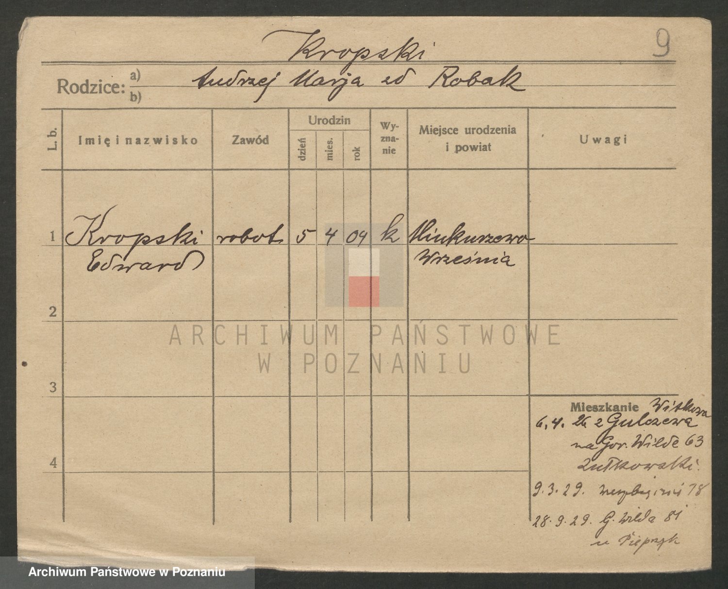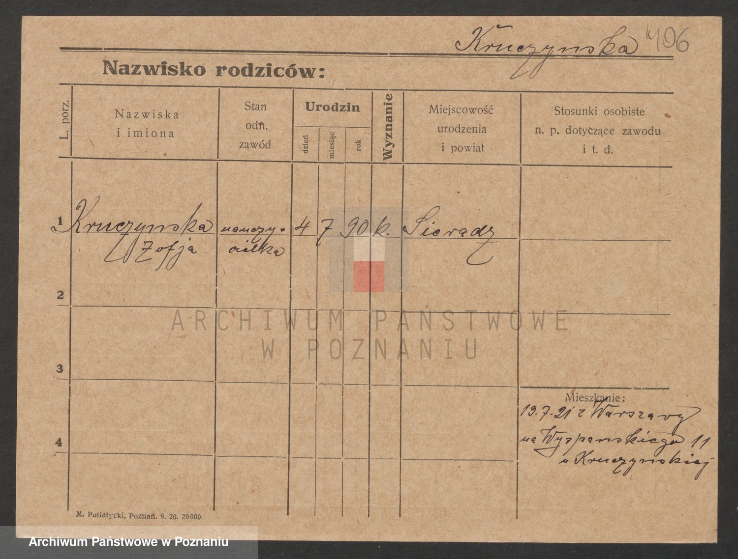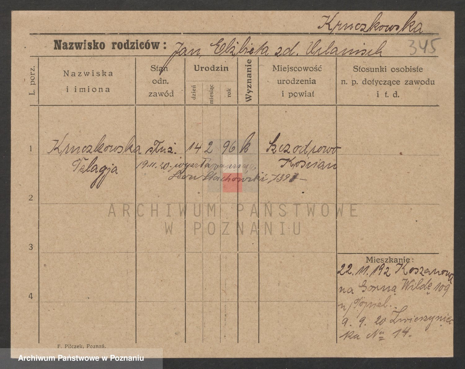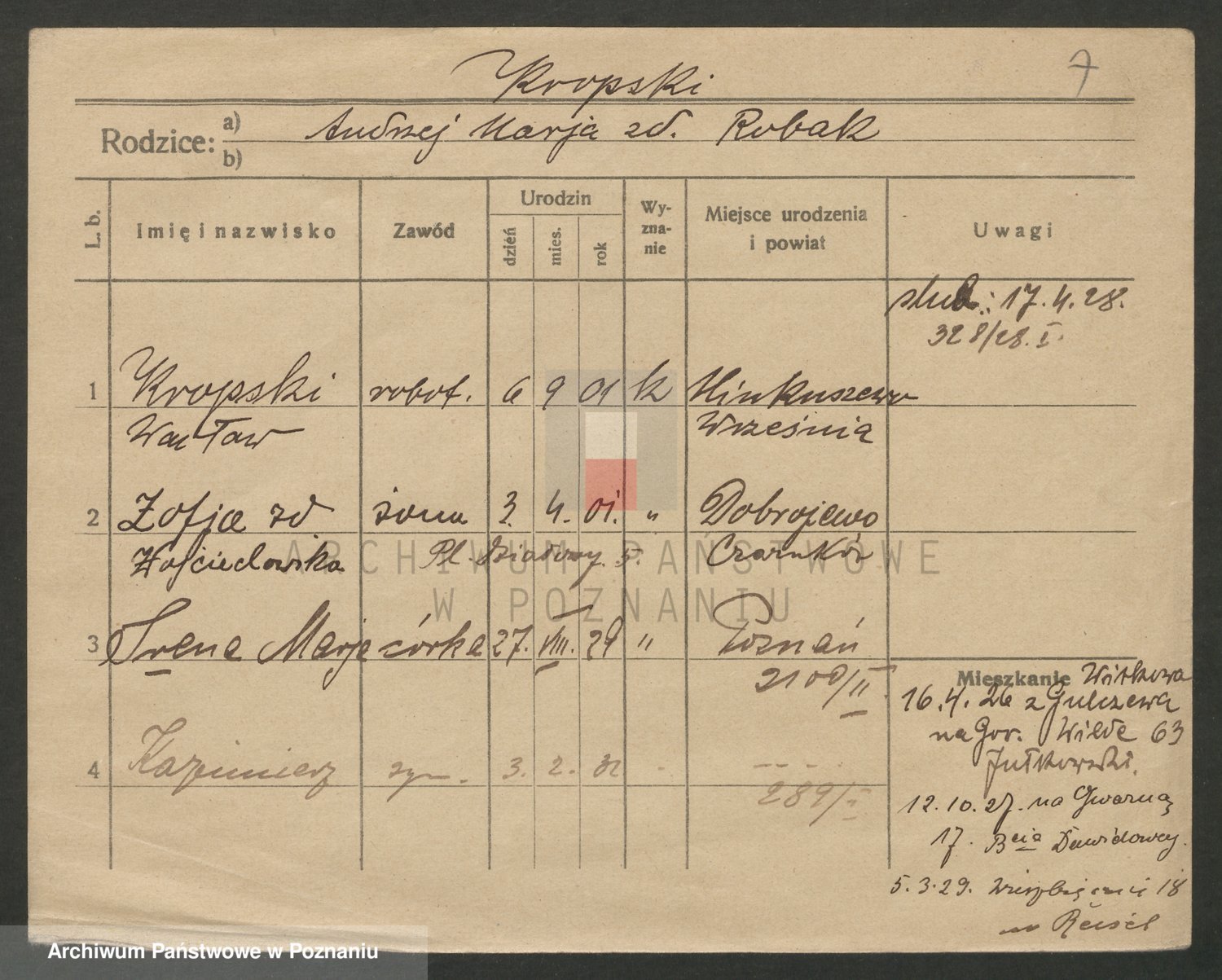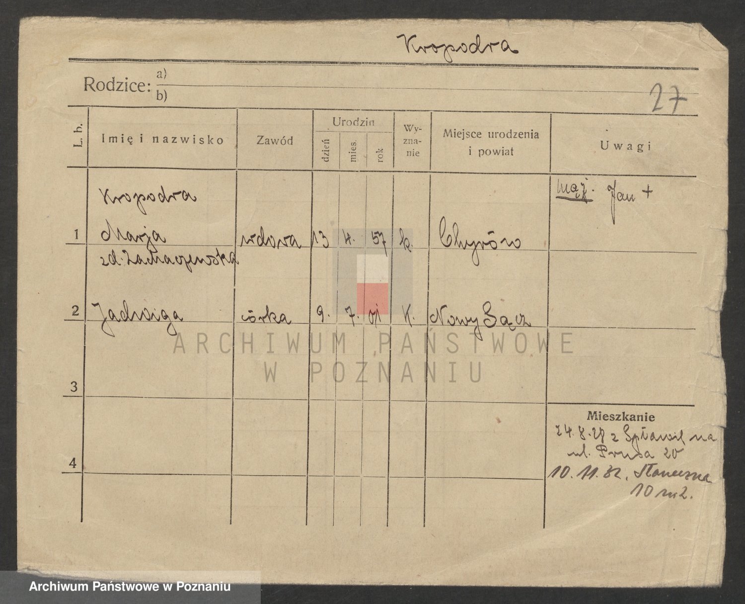 Kropodra z d. Zachaczewska, Marja