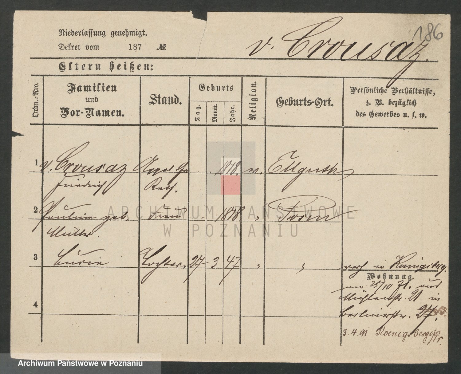 Krosigk von z d. Gräfin zu Dohne, Dora