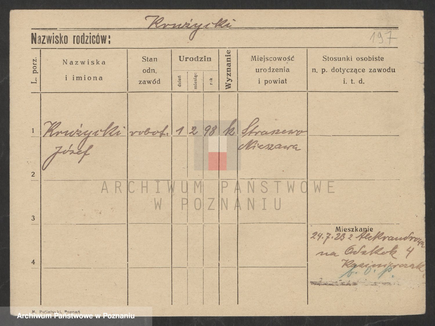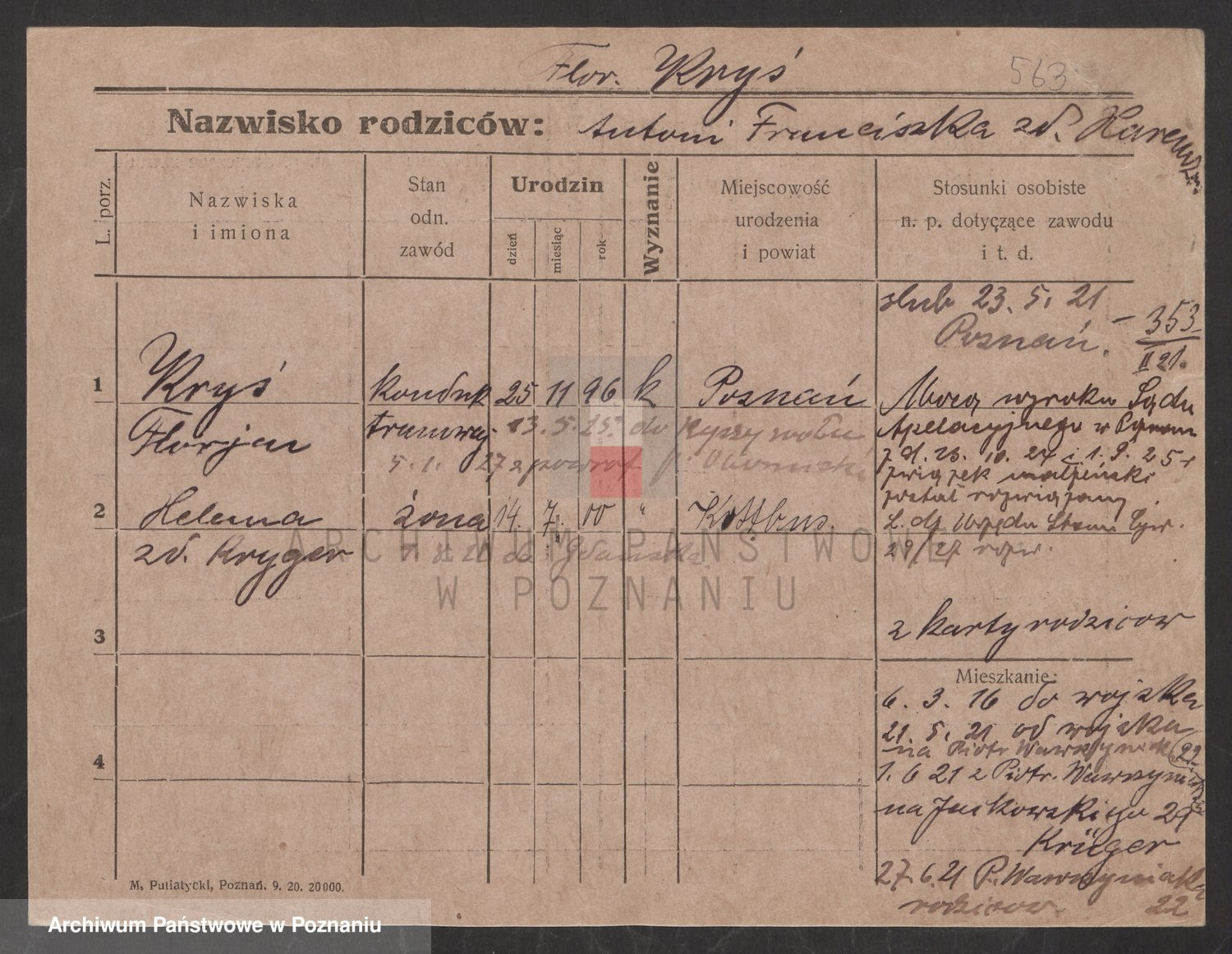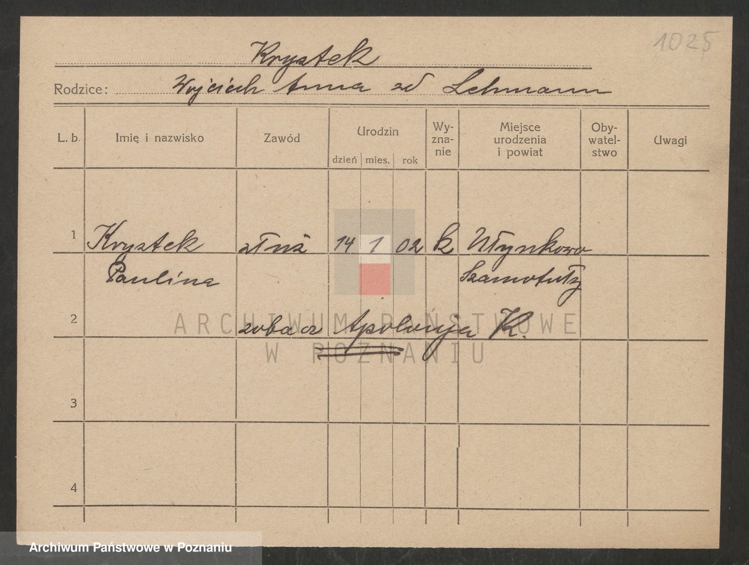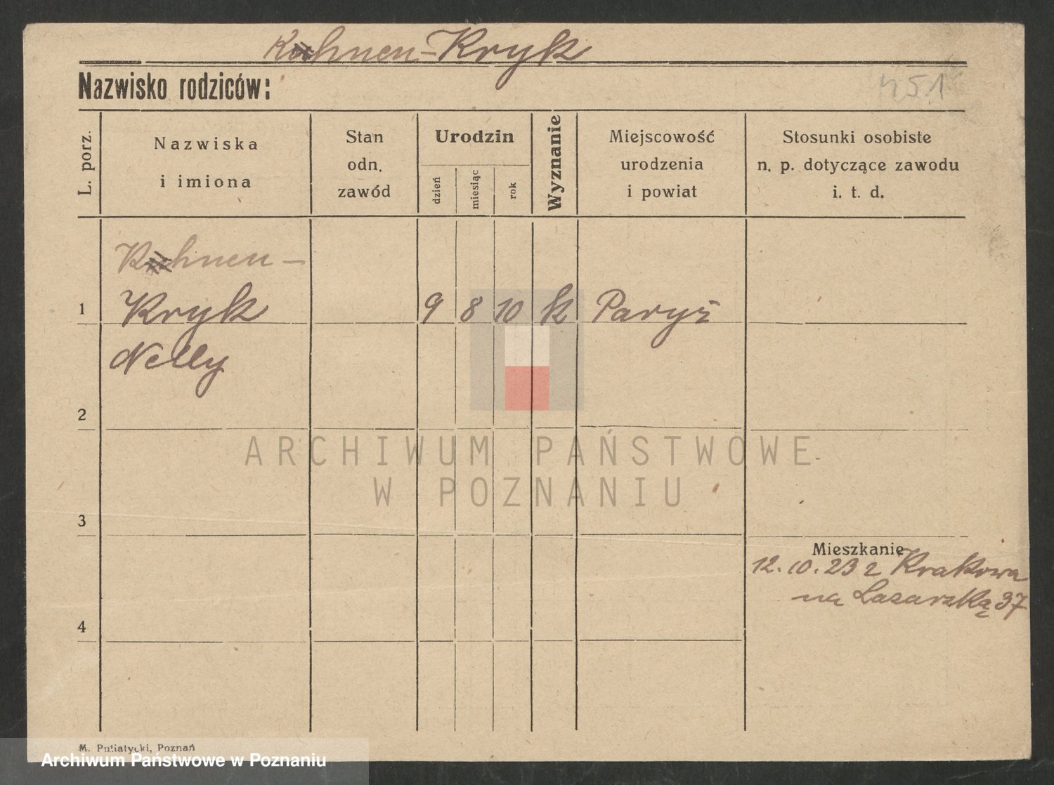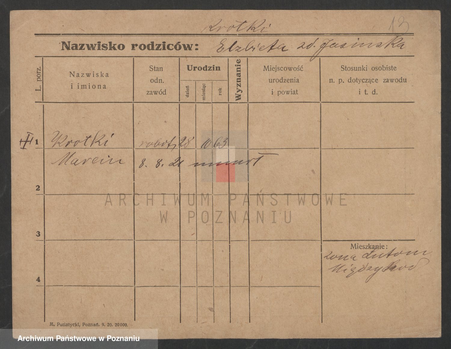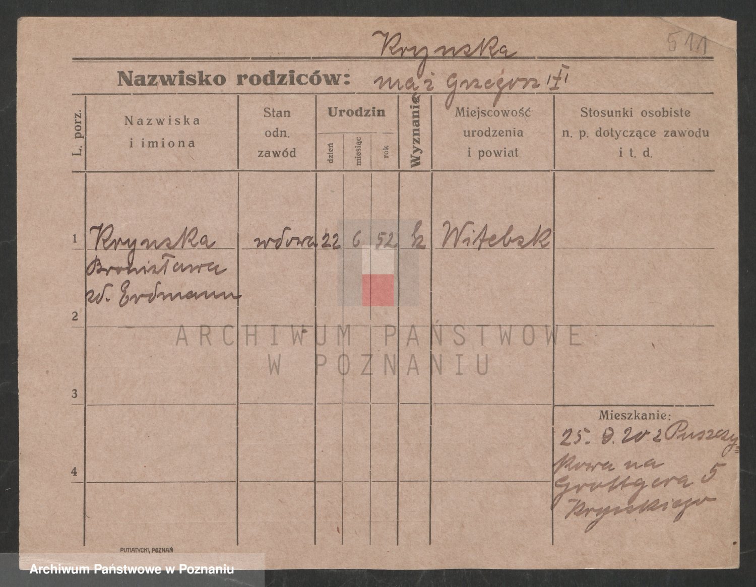 Podgląd karty osobowej dostępny jest po kliknięciu na nazwisko lub ikonkę karty. Można dokonywać powiększenia (ikony na górze) lub przechodzić między kolejnymi skanami (strzałki po bokach).