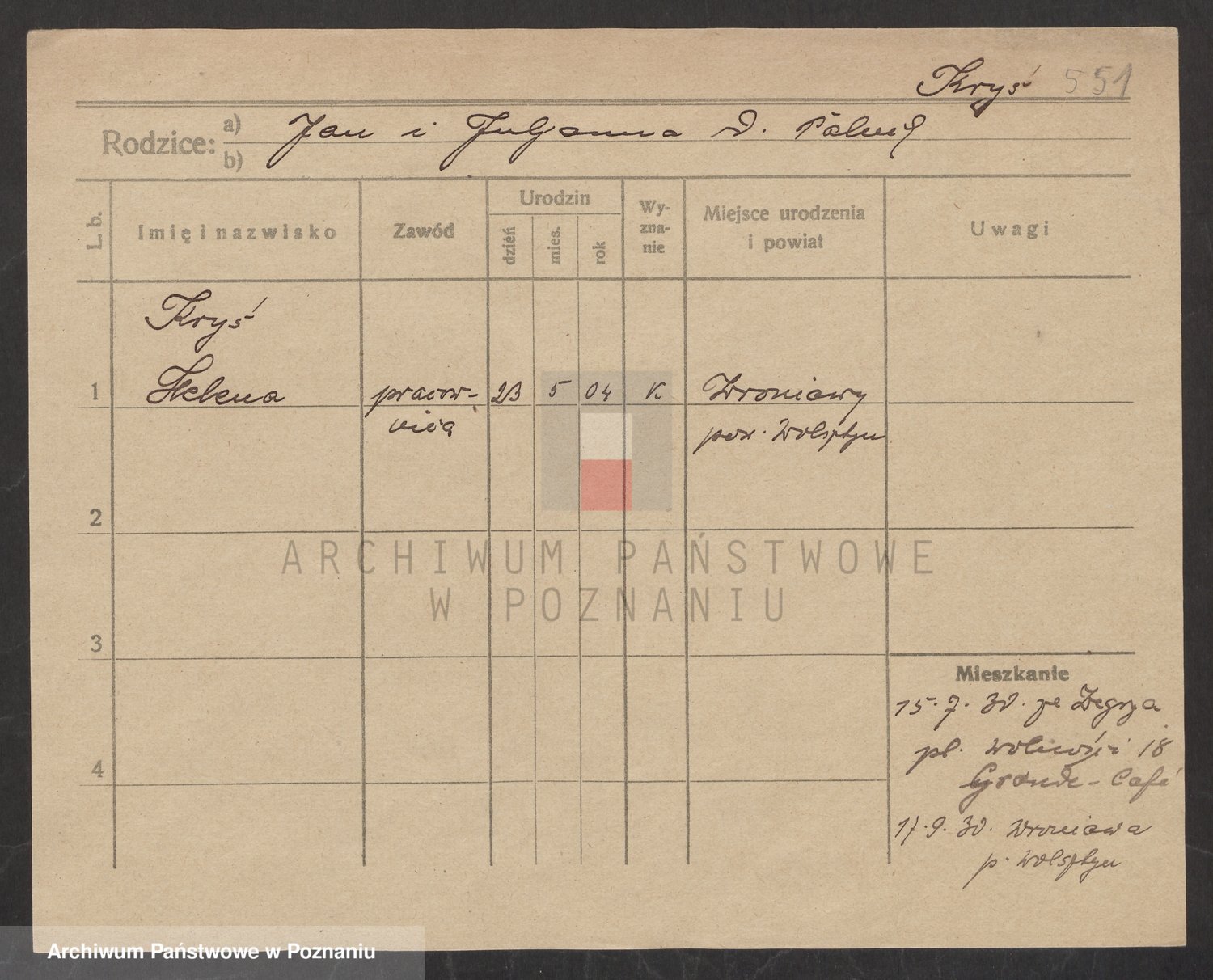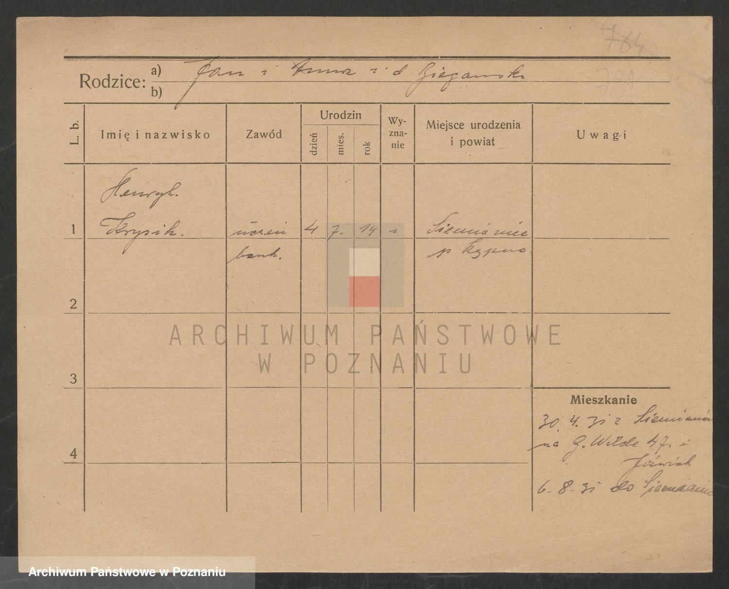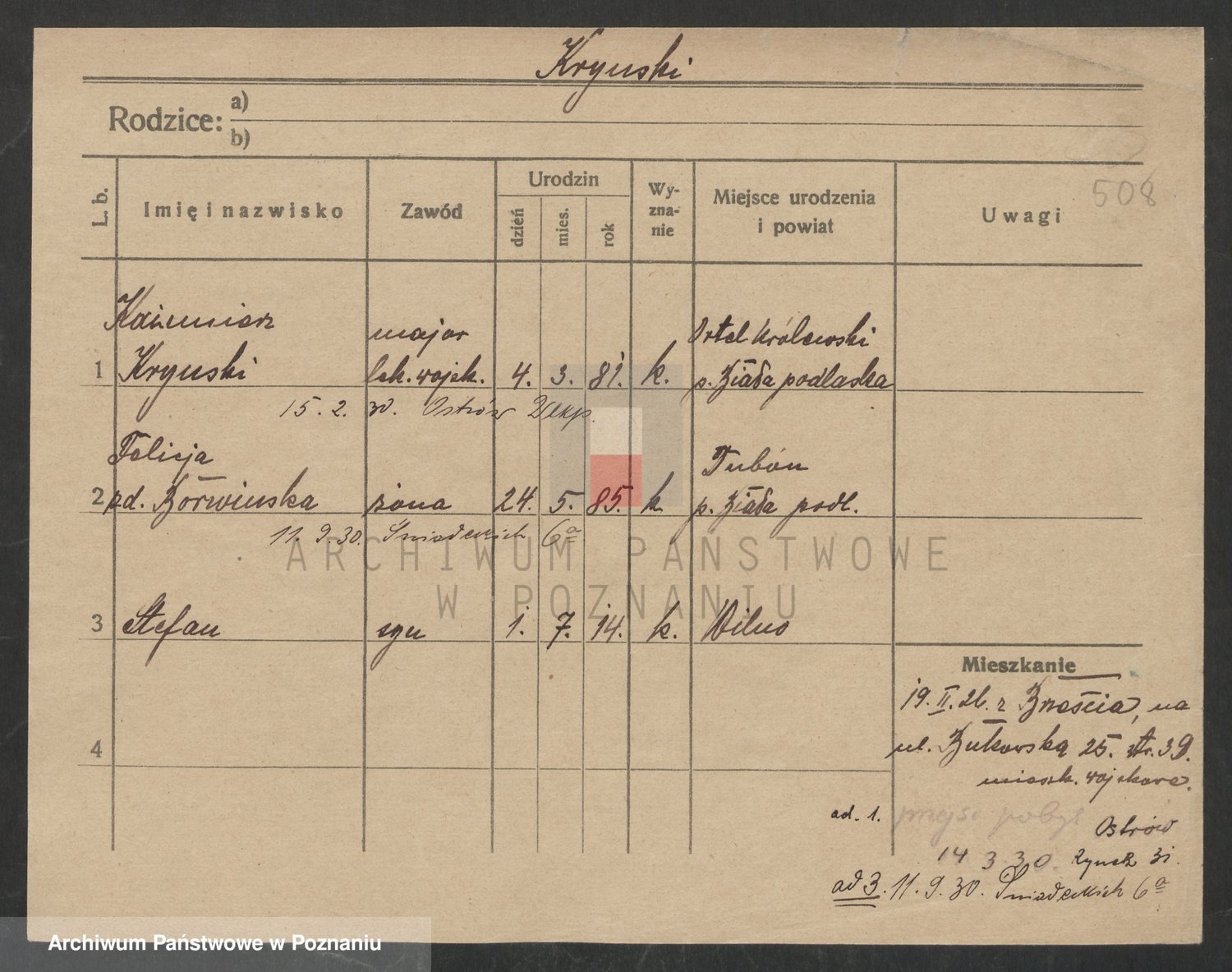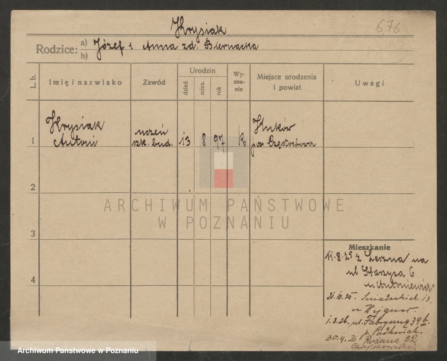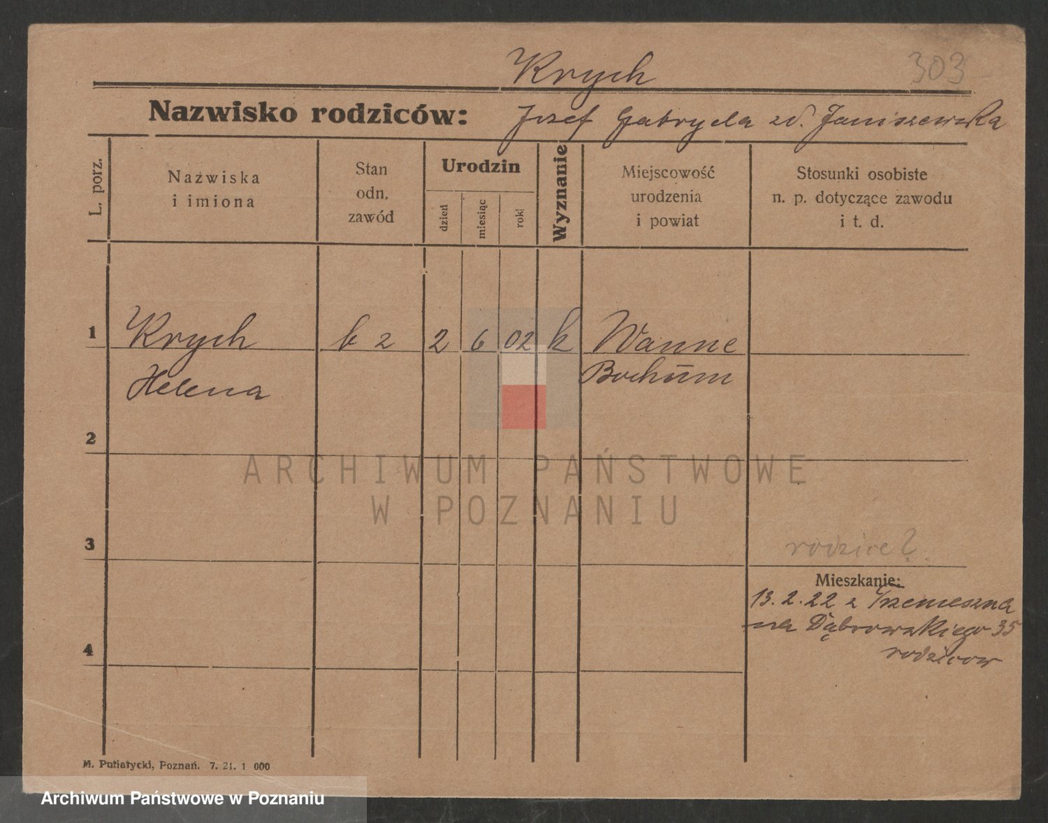 Podgląd karty osobowej dostępny jest po kliknięciu na nazwisko lub ikonkę karty. Można dokonywać powiększenia (ikony na górze) lub przechodzić między kolejnymi skanami (strzałki po bokach).