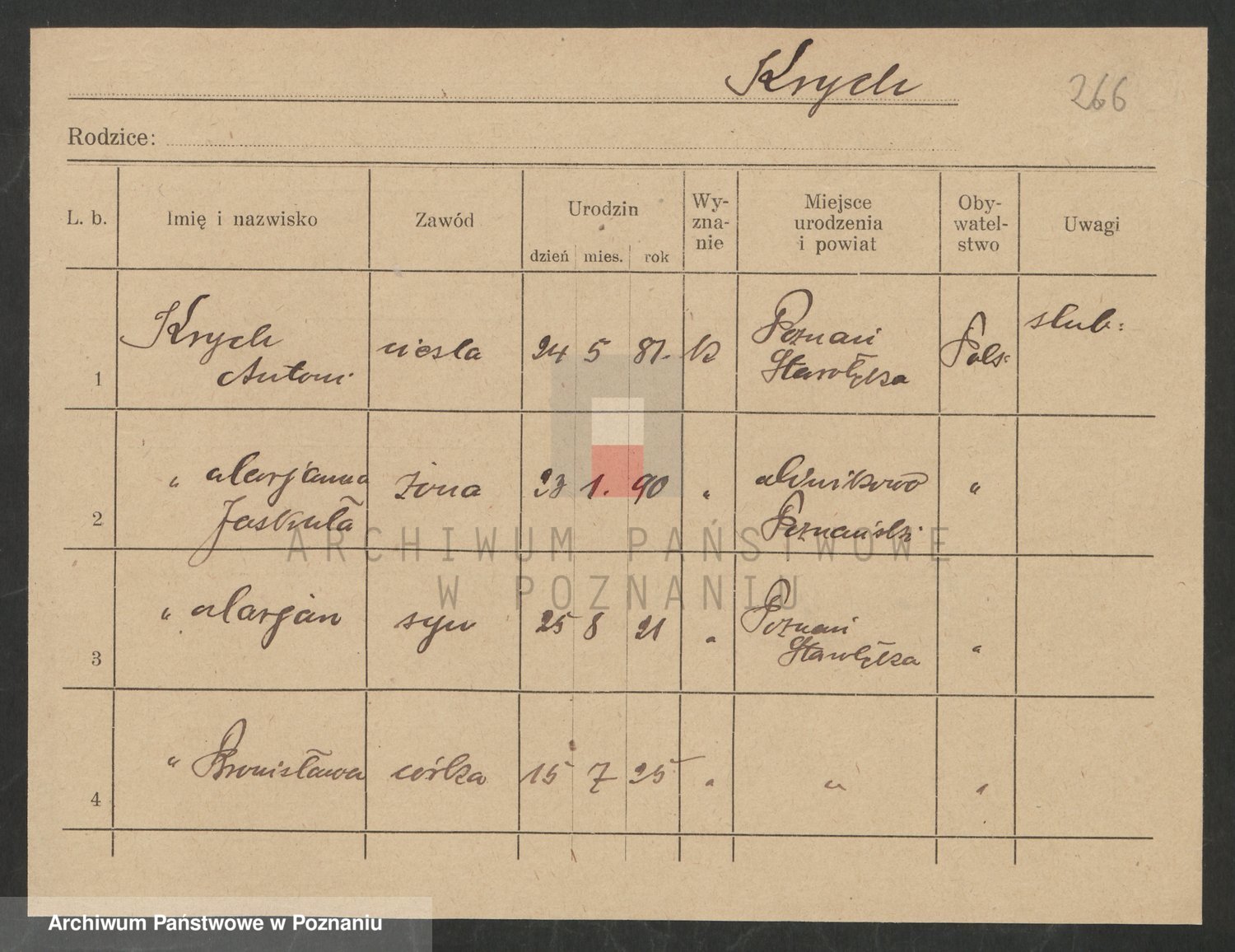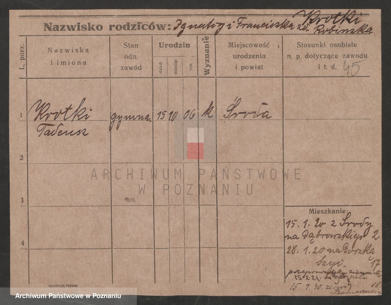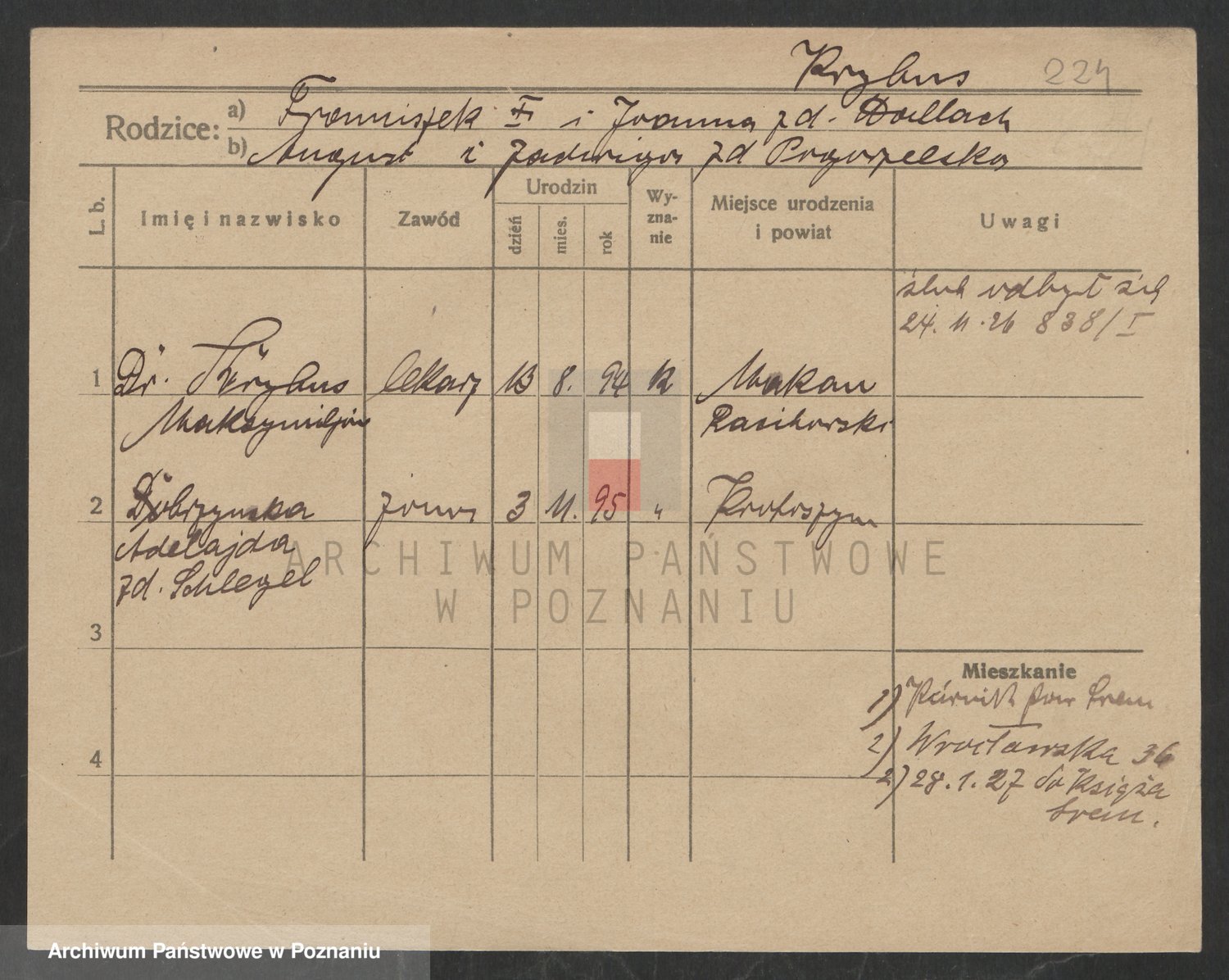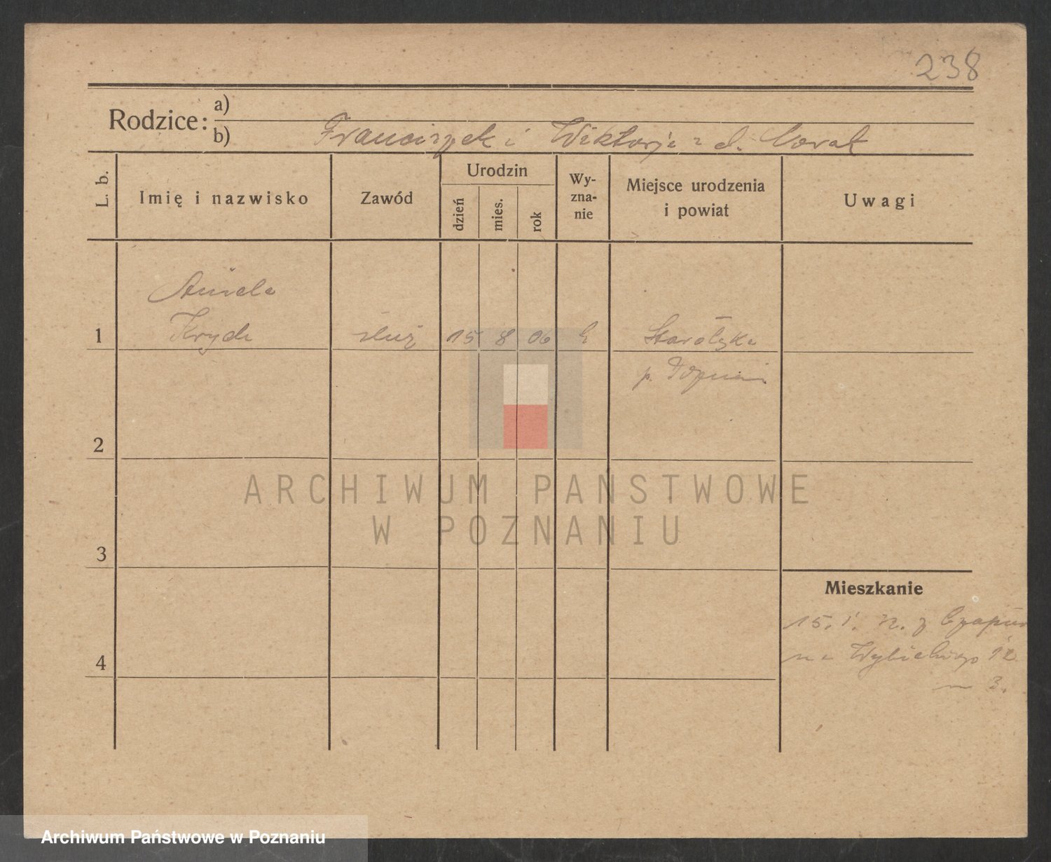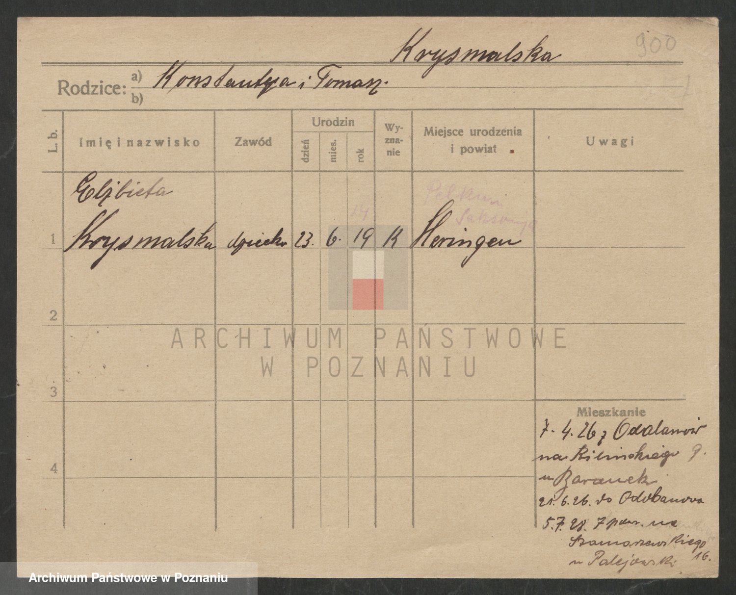 Podgląd karty osobowej dostępny jest po kliknięciu na nazwisko lub ikonkę karty. Można dokonywać powiększenia (ikony na górze) lub przechodzić między kolejnymi skanami (strzałki po bokach).