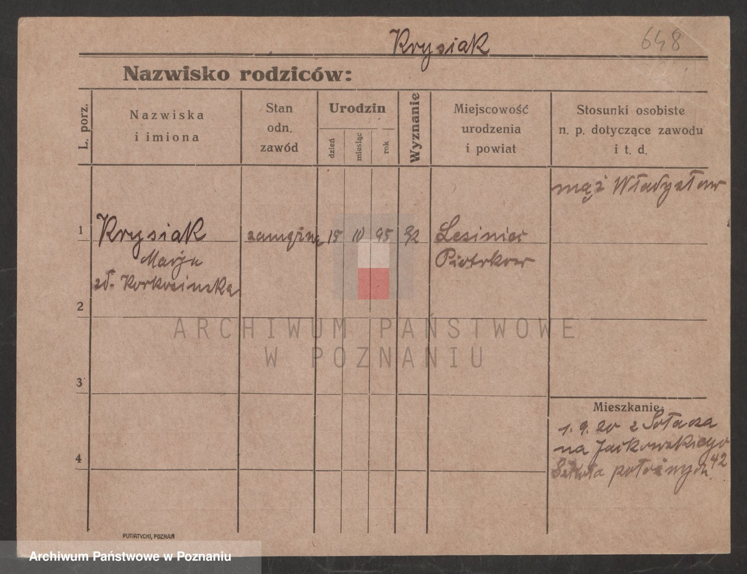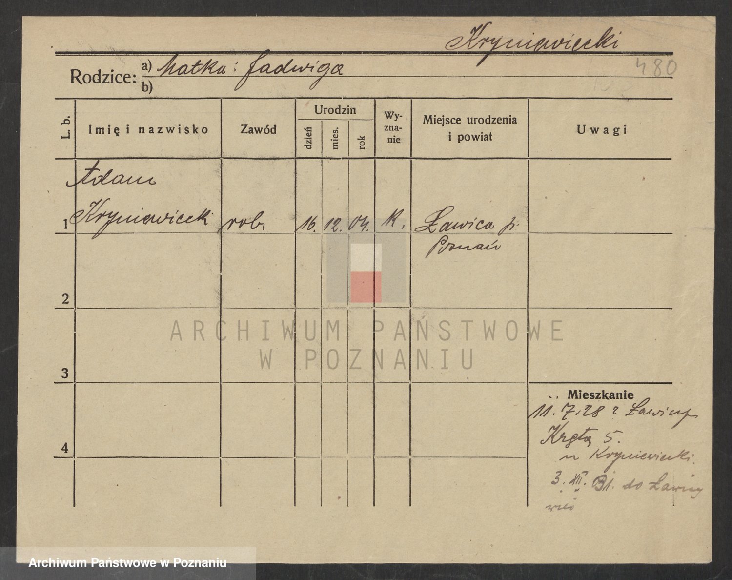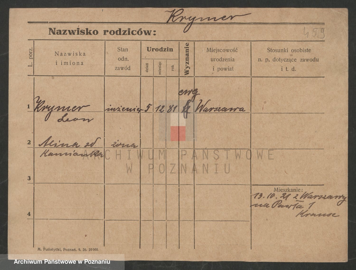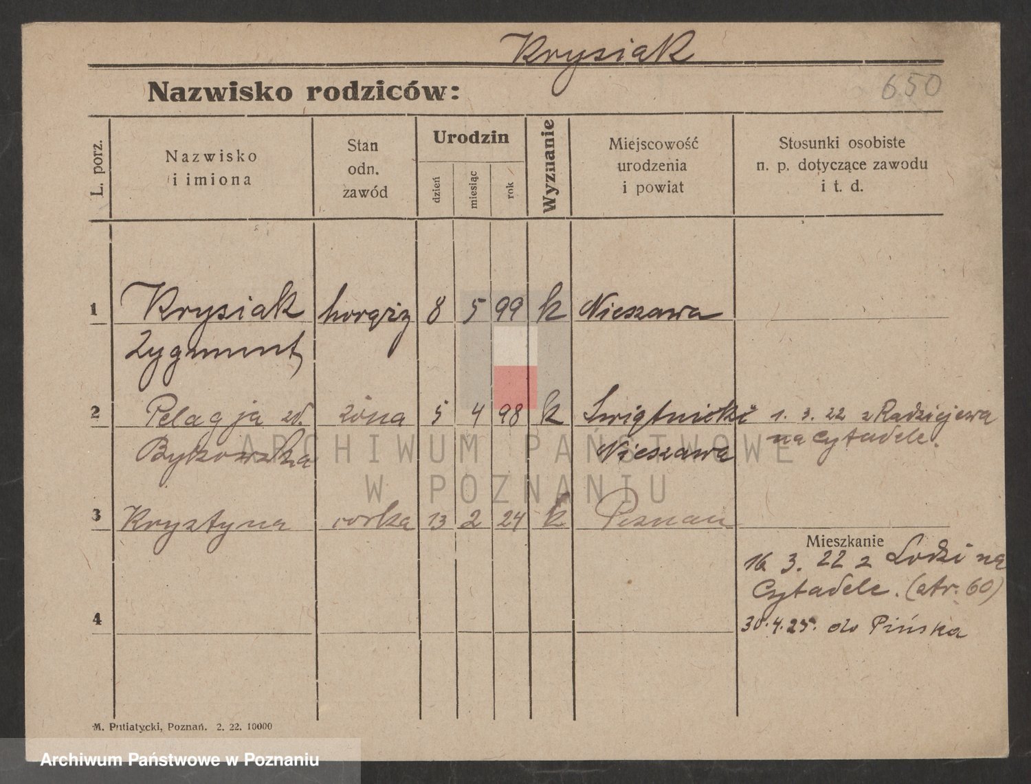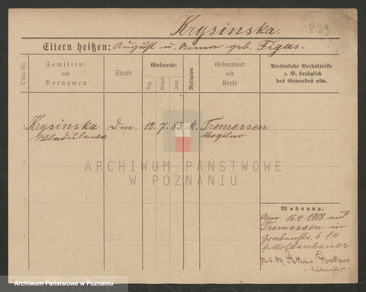 Podgląd karty osobowej dostępny jest po kliknięciu na nazwisko lub ikonkę karty. Można dokonywać powiększenia (ikony na górze) lub przechodzić między kolejnymi skanami (strzałki po bokach).