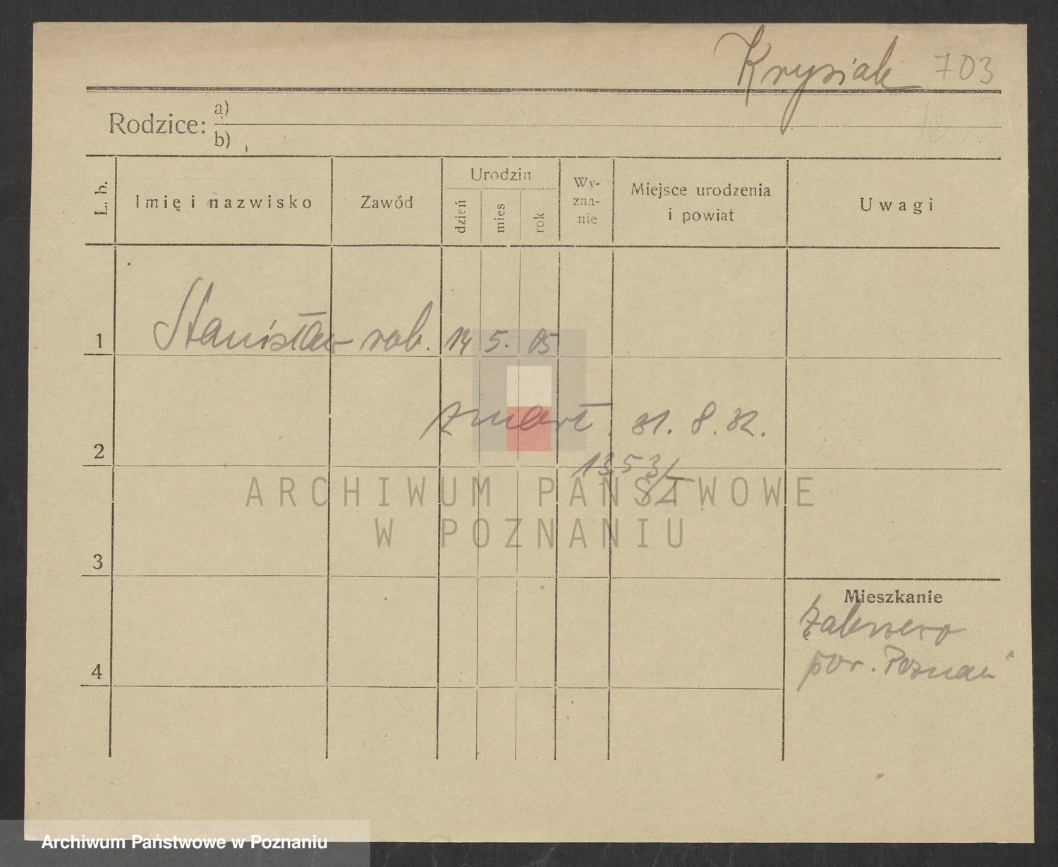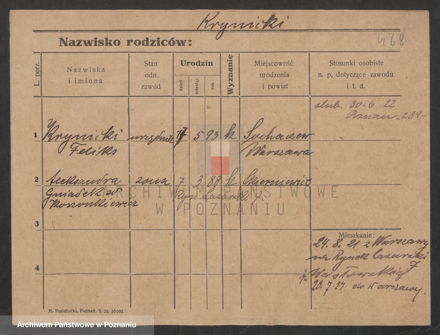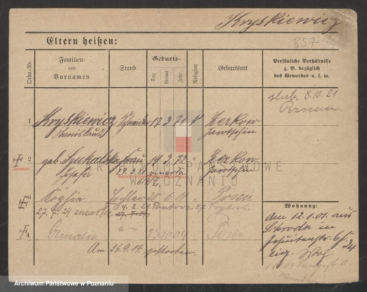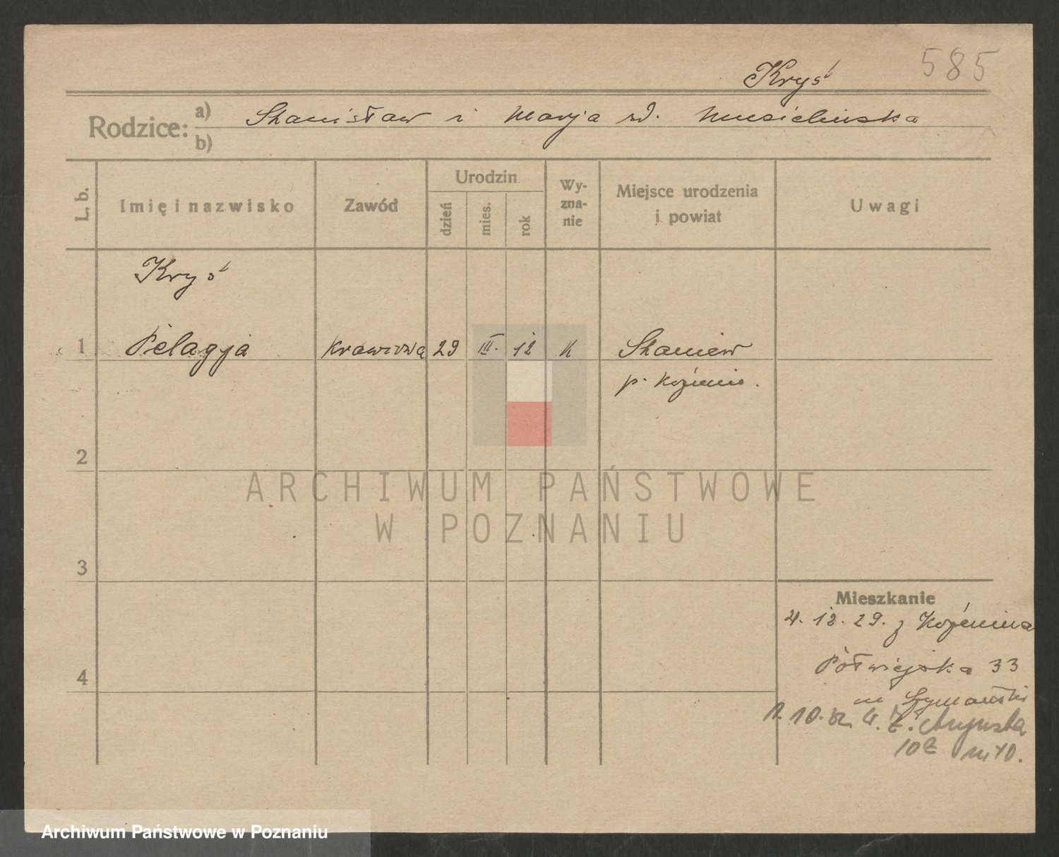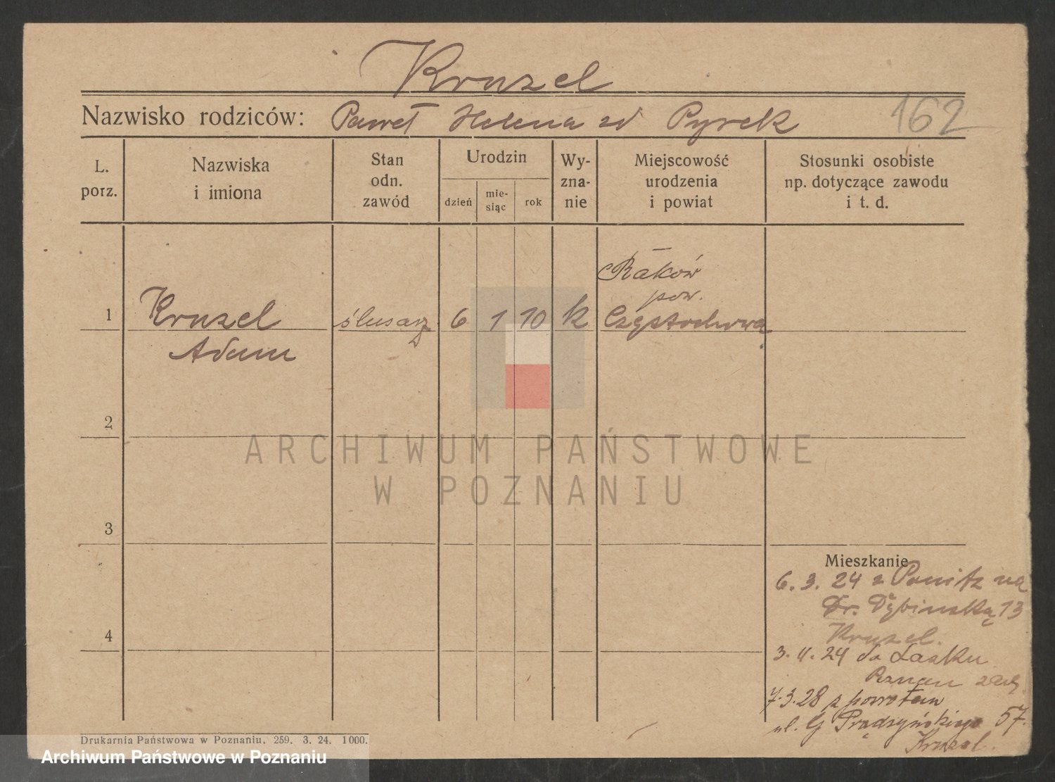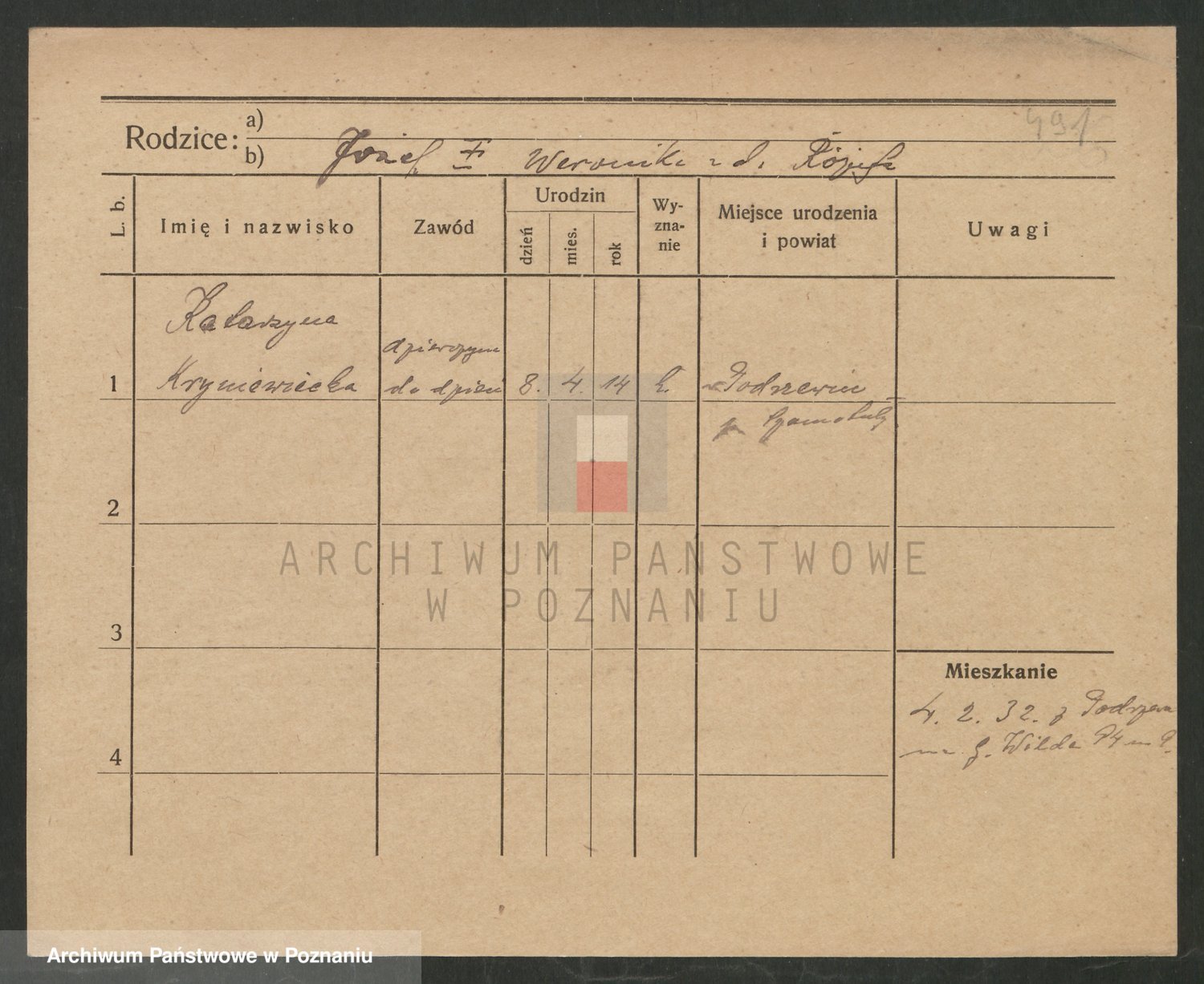 Podgląd karty osobowej dostępny jest po kliknięciu na nazwisko lub ikonkę karty. Można dokonywać powiększenia (ikony na górze) lub przechodzić między kolejnymi skanami (strzałki po bokach).