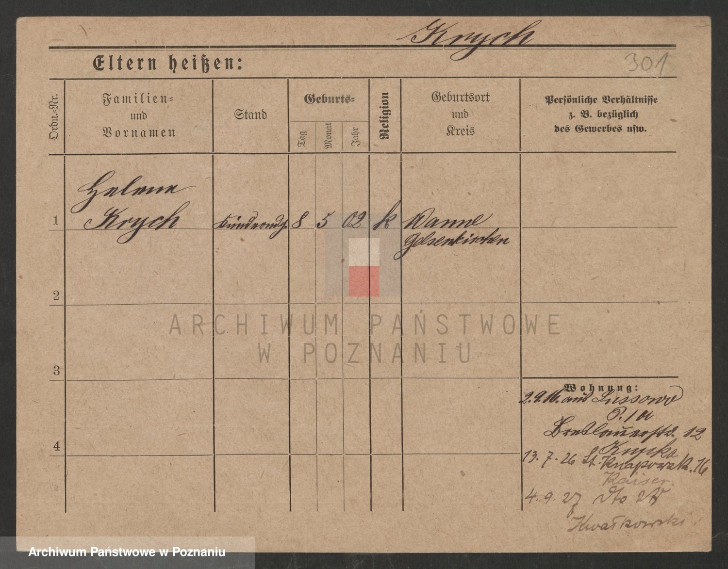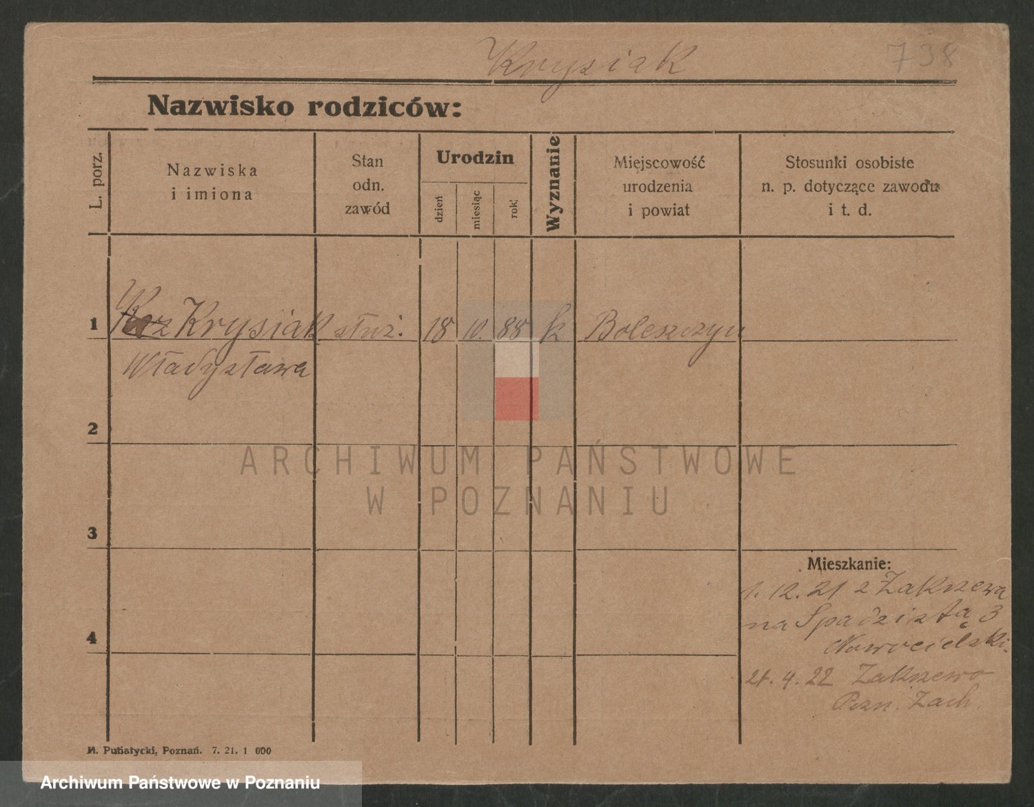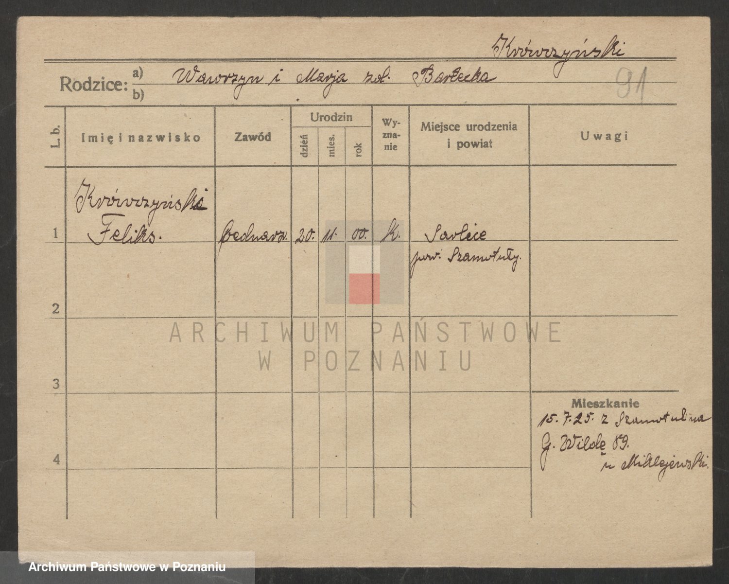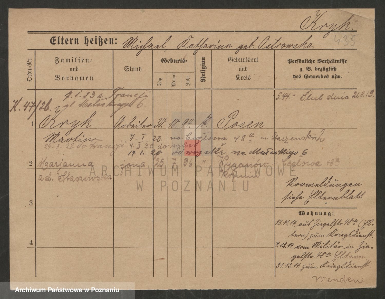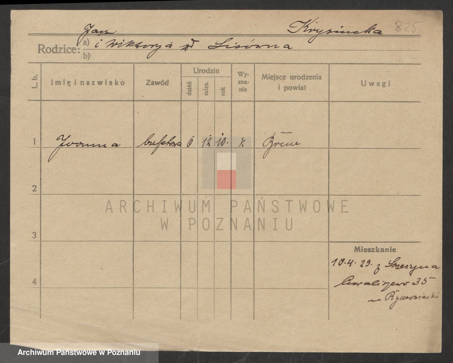 Podgląd karty osobowej dostępny jest po kliknięciu na nazwisko lub ikonkę karty. Można dokonywać powiększenia (ikony na górze) lub przechodzić między kolejnymi skanami (strzałki po bokach).