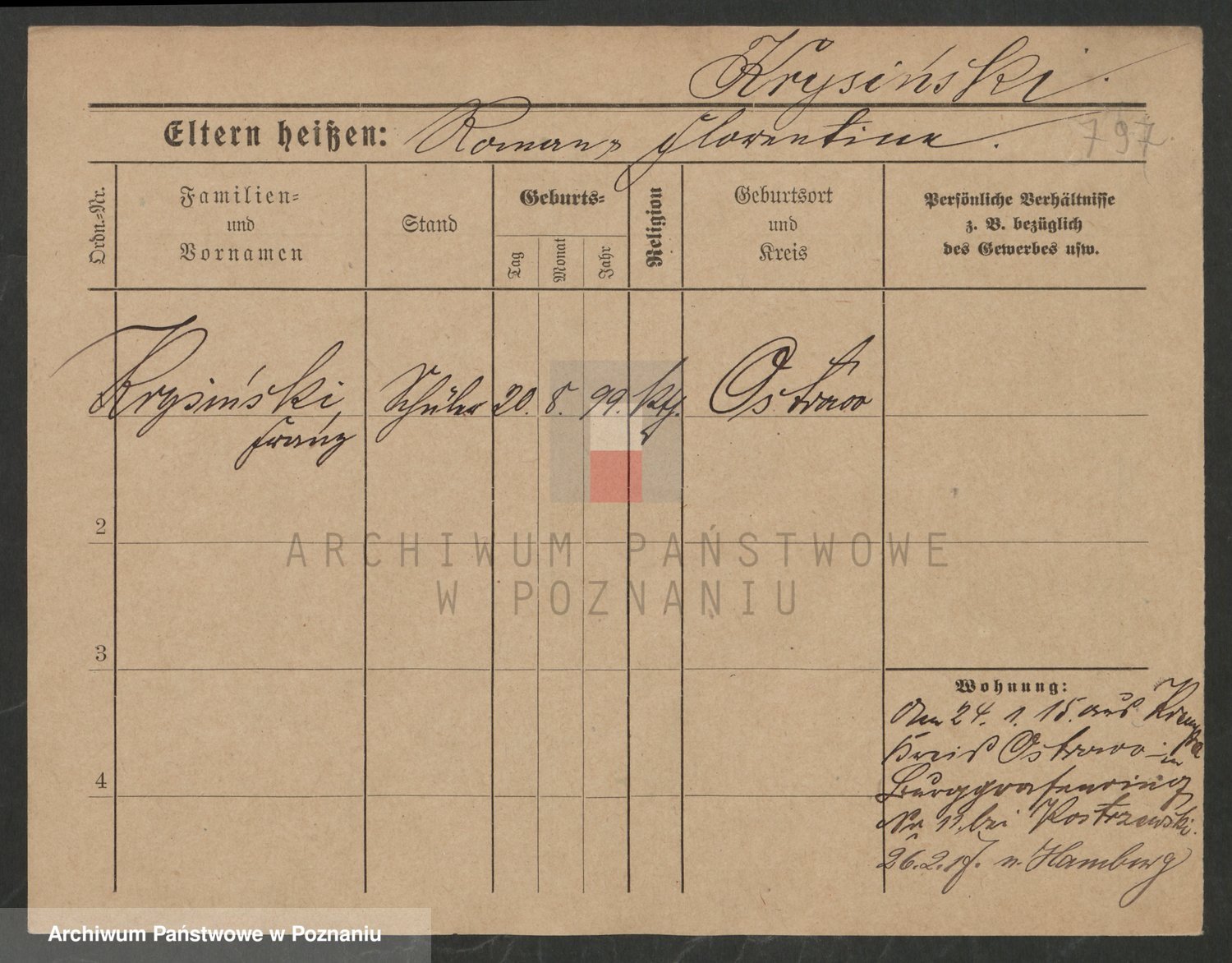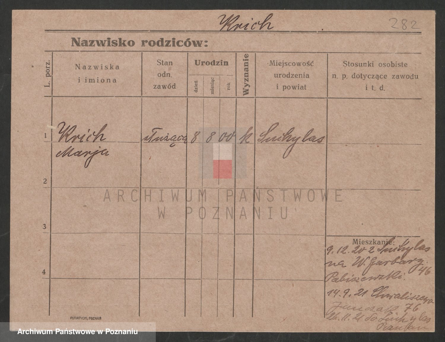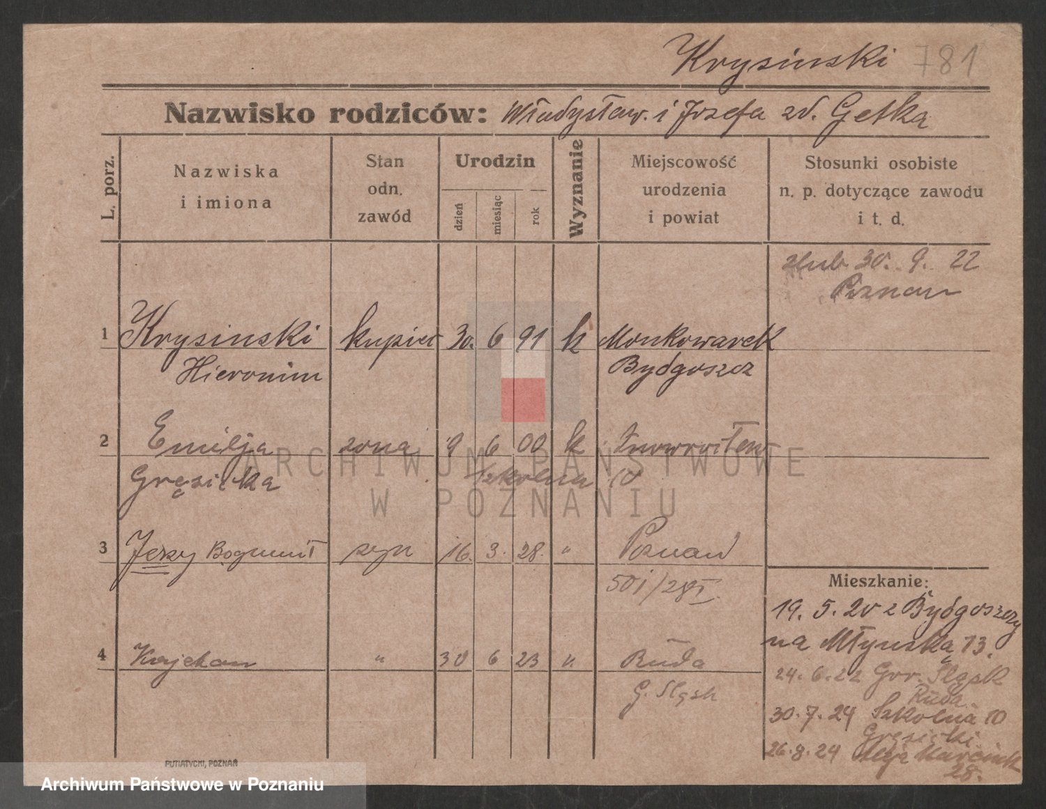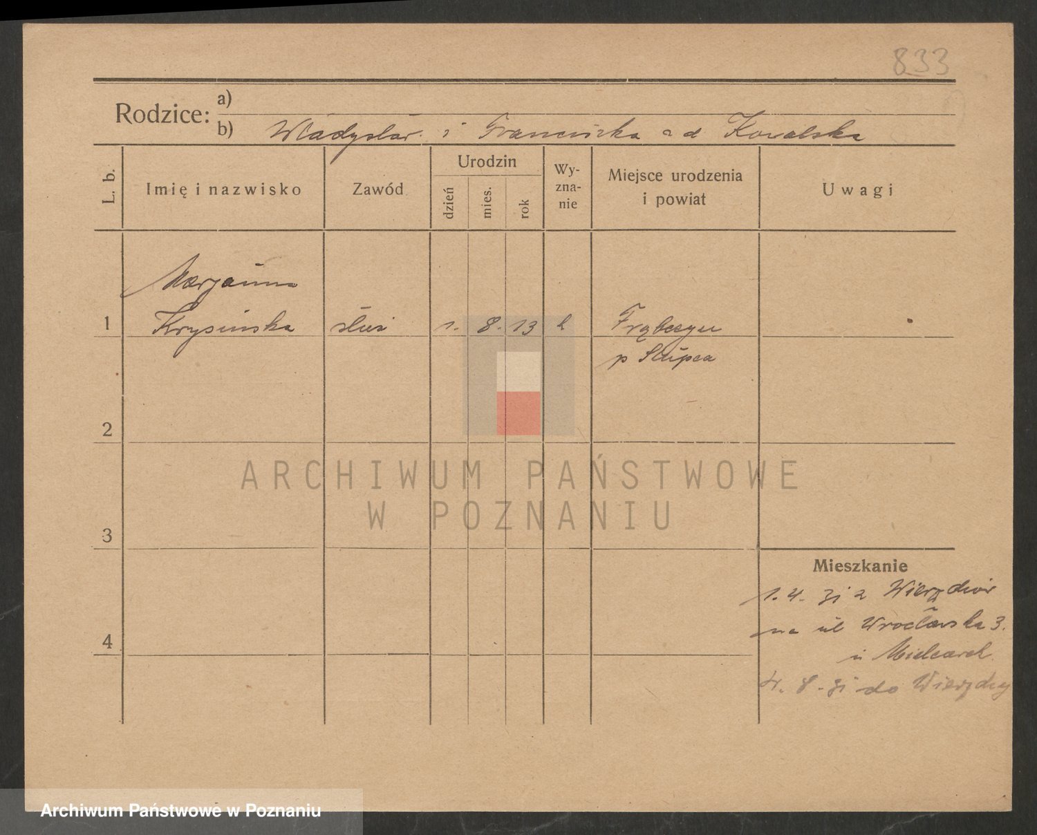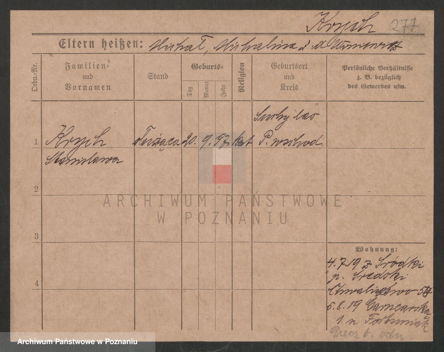 Podgląd karty osobowej dostępny jest po kliknięciu na nazwisko lub ikonkę karty. Można dokonywać powiększenia (ikony na górze) lub przechodzić między kolejnymi skanami (strzałki po bokach).