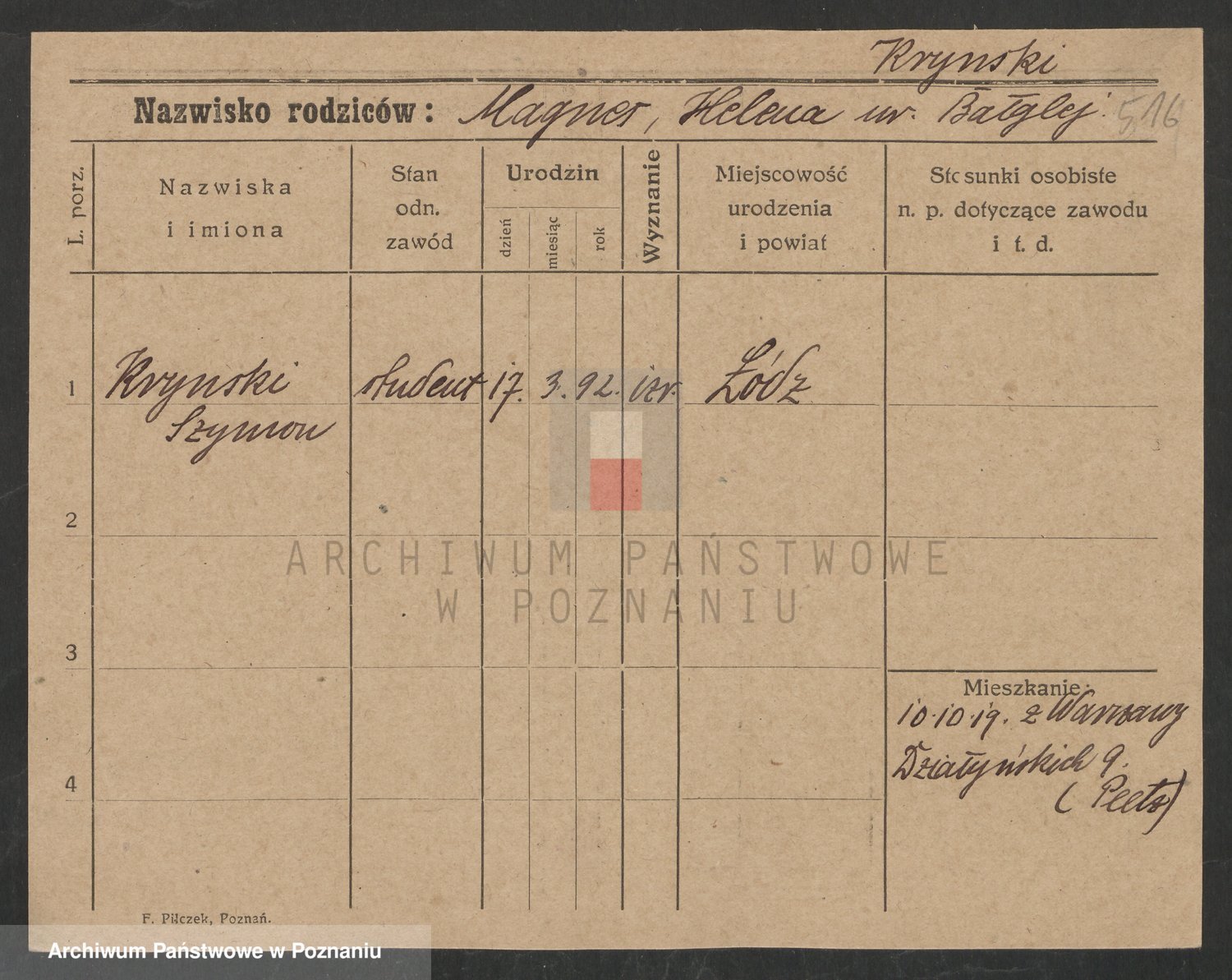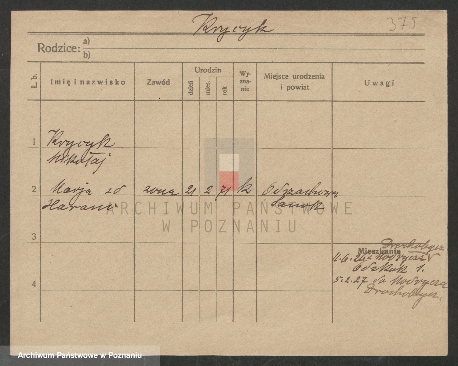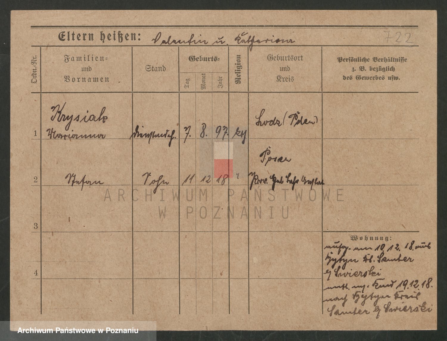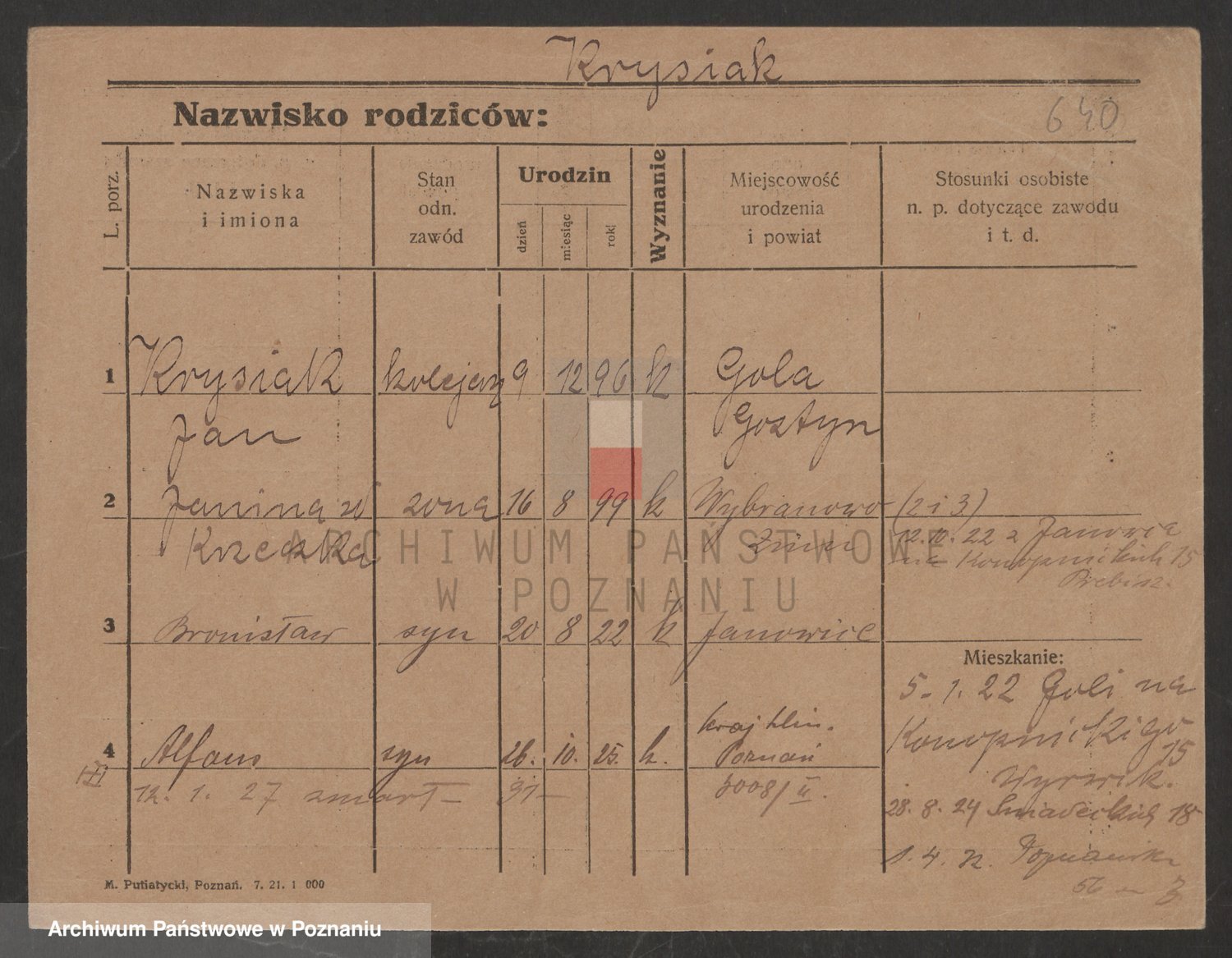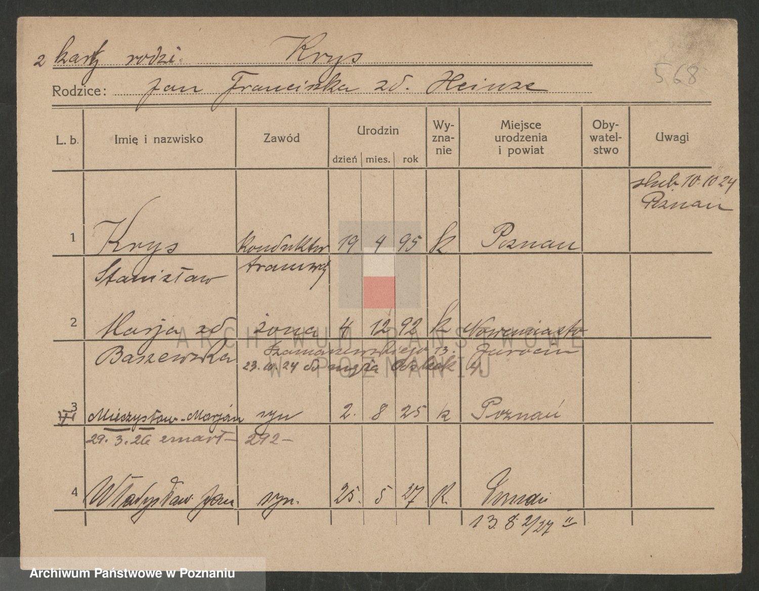 Podgląd karty osobowej dostępny jest po kliknięciu na nazwisko lub ikonkę karty. Można dokonywać powiększenia (ikony na górze) lub przechodzić między kolejnymi skanami (strzałki po bokach).