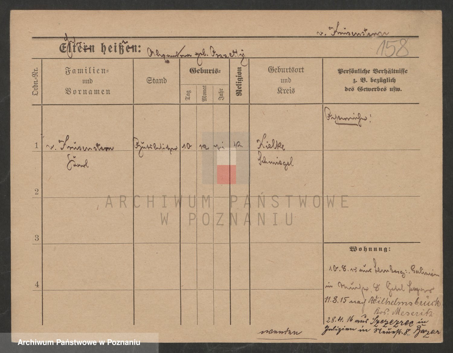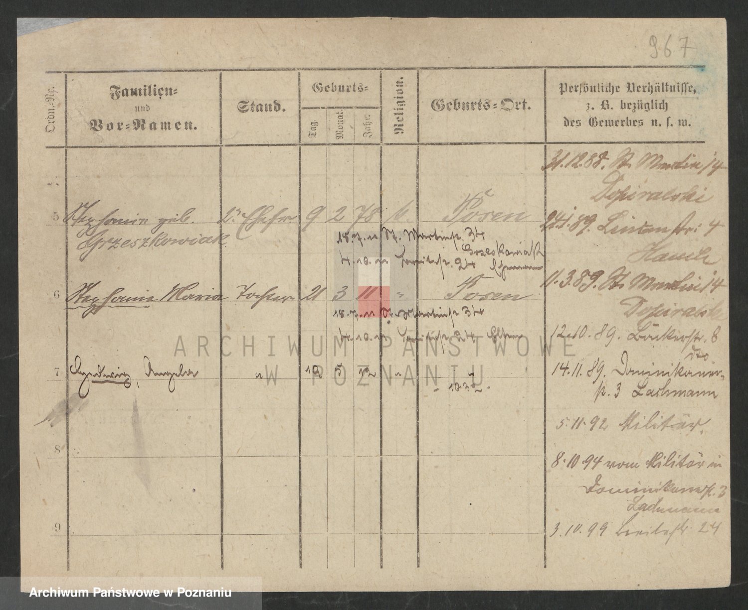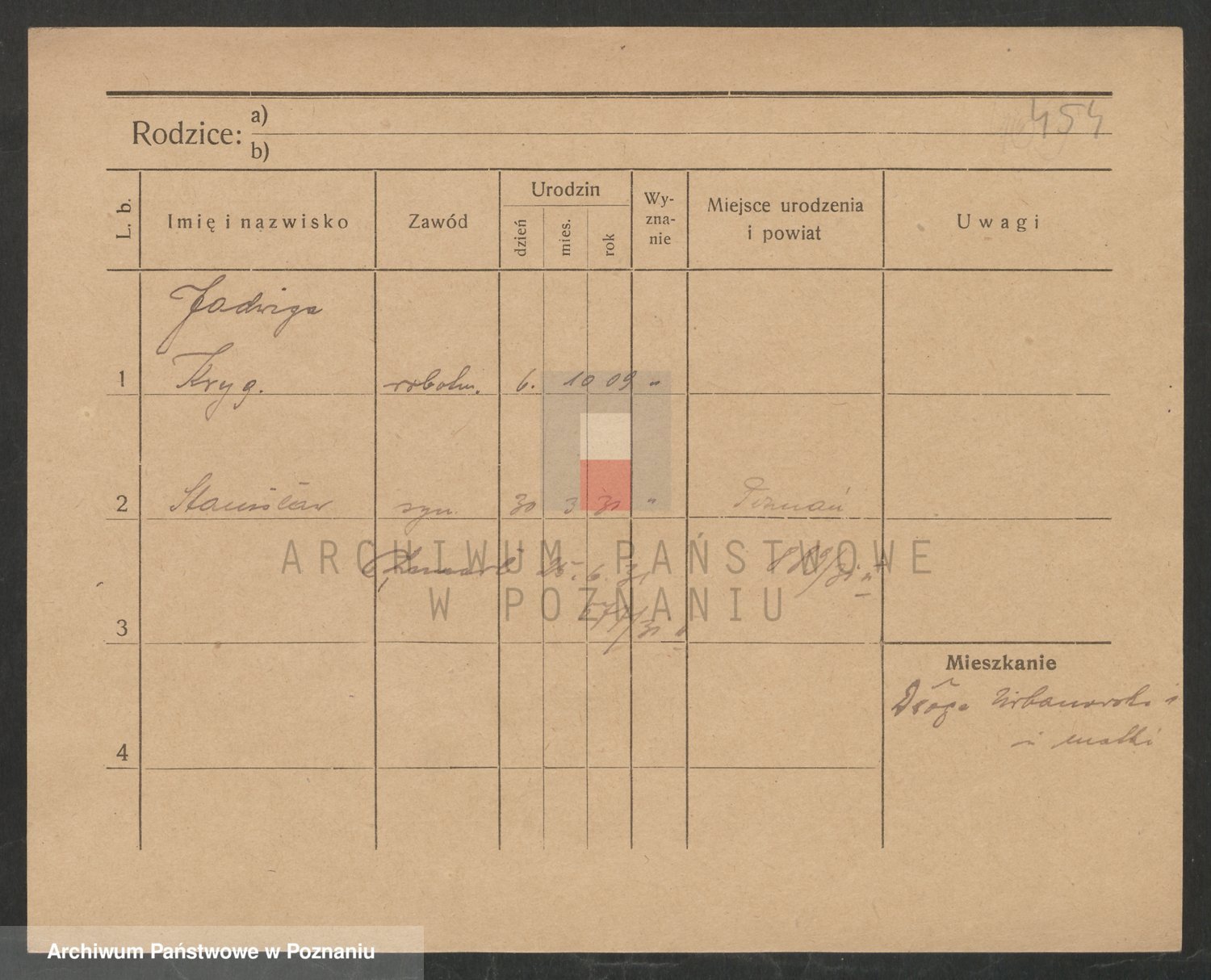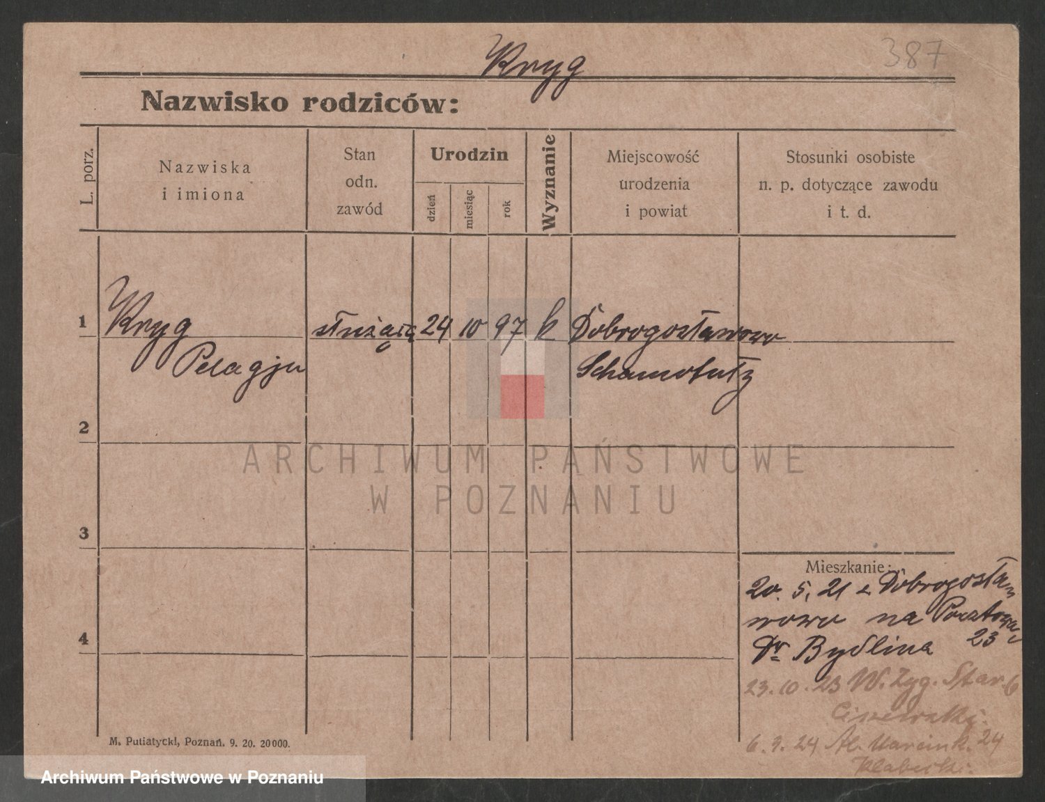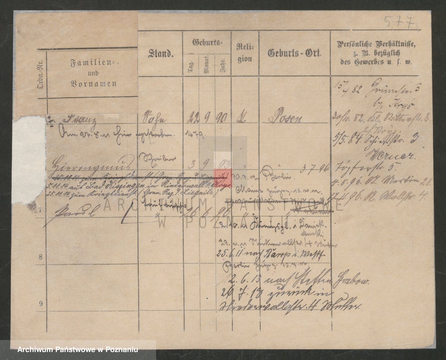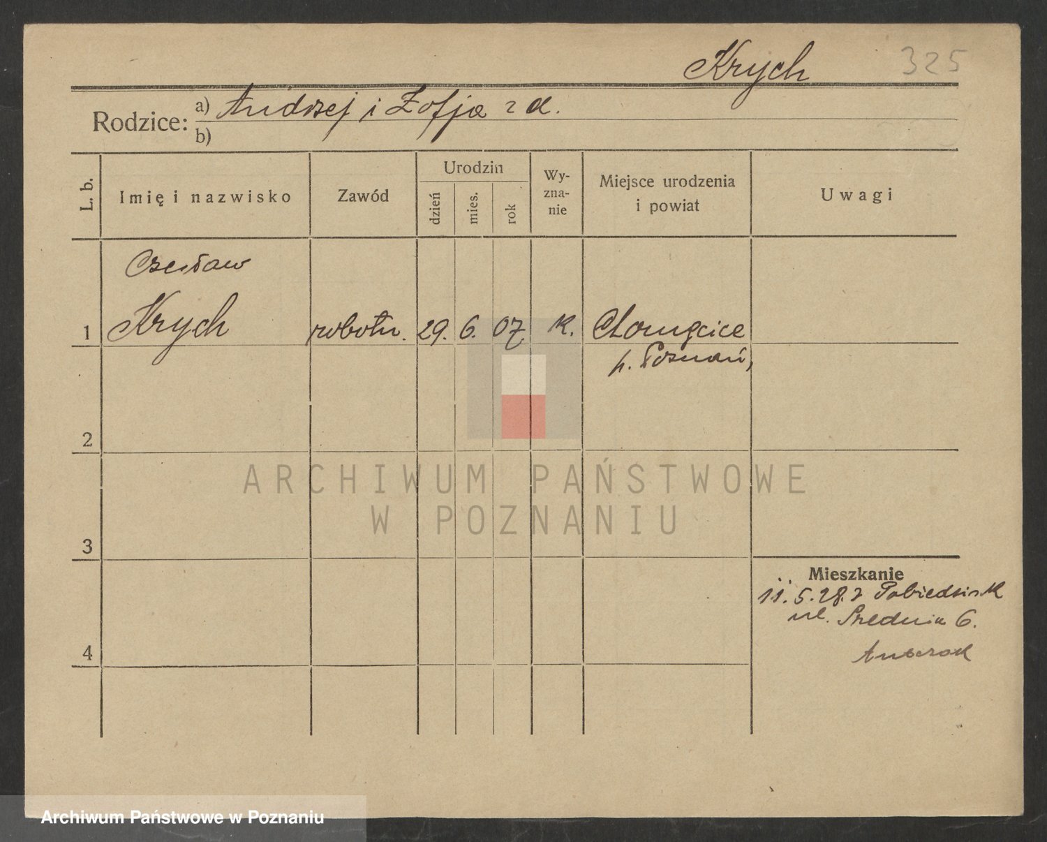 Podgląd karty osobowej dostępny jest po kliknięciu na nazwisko lub ikonkę karty. Można dokonywać powiększenia (ikony na górze) lub przechodzić między kolejnymi skanami (strzałki po bokach).
