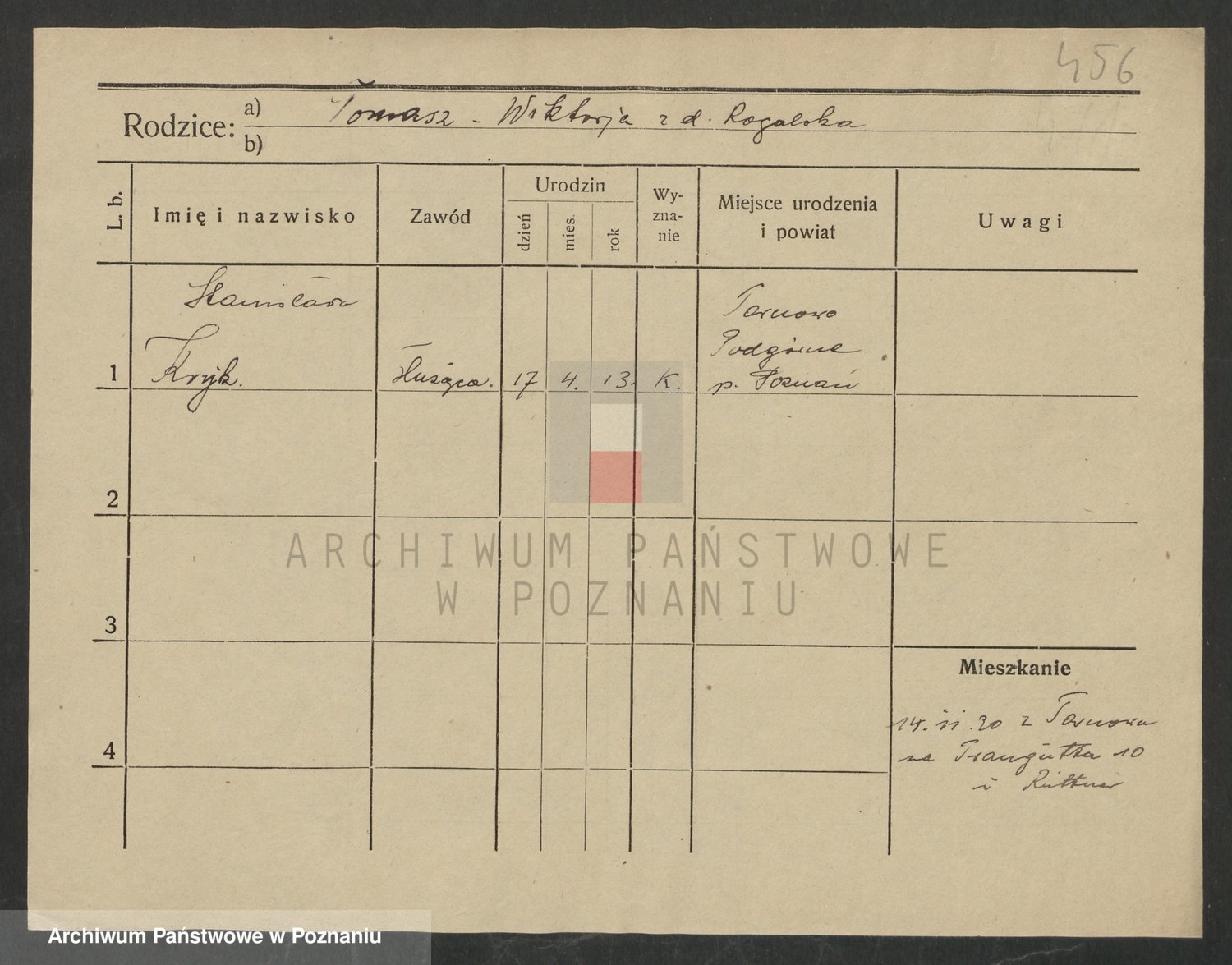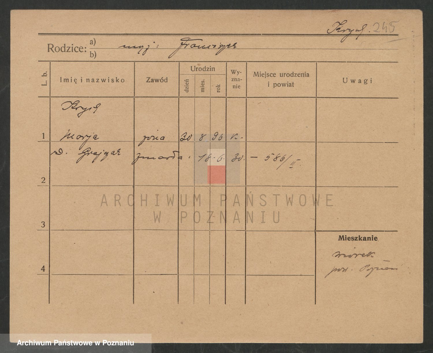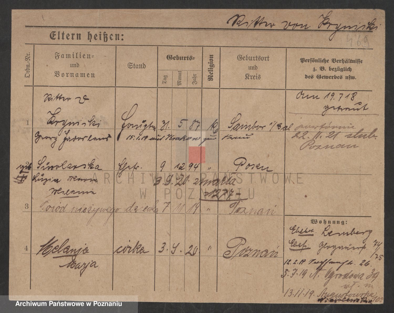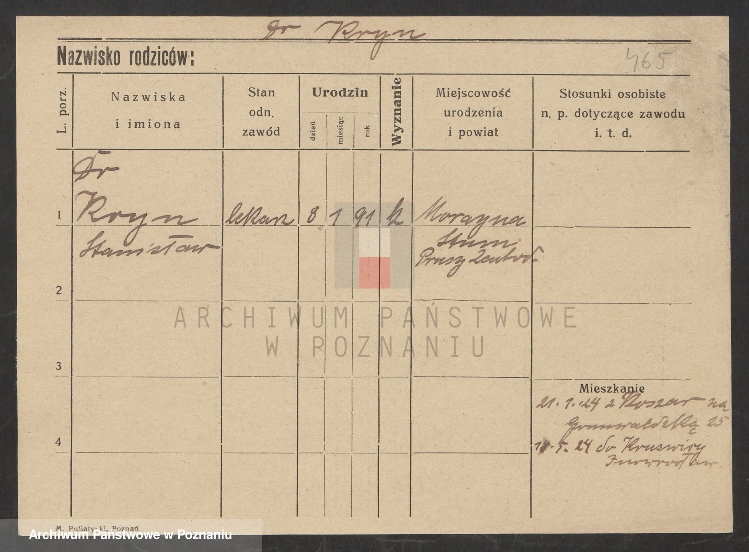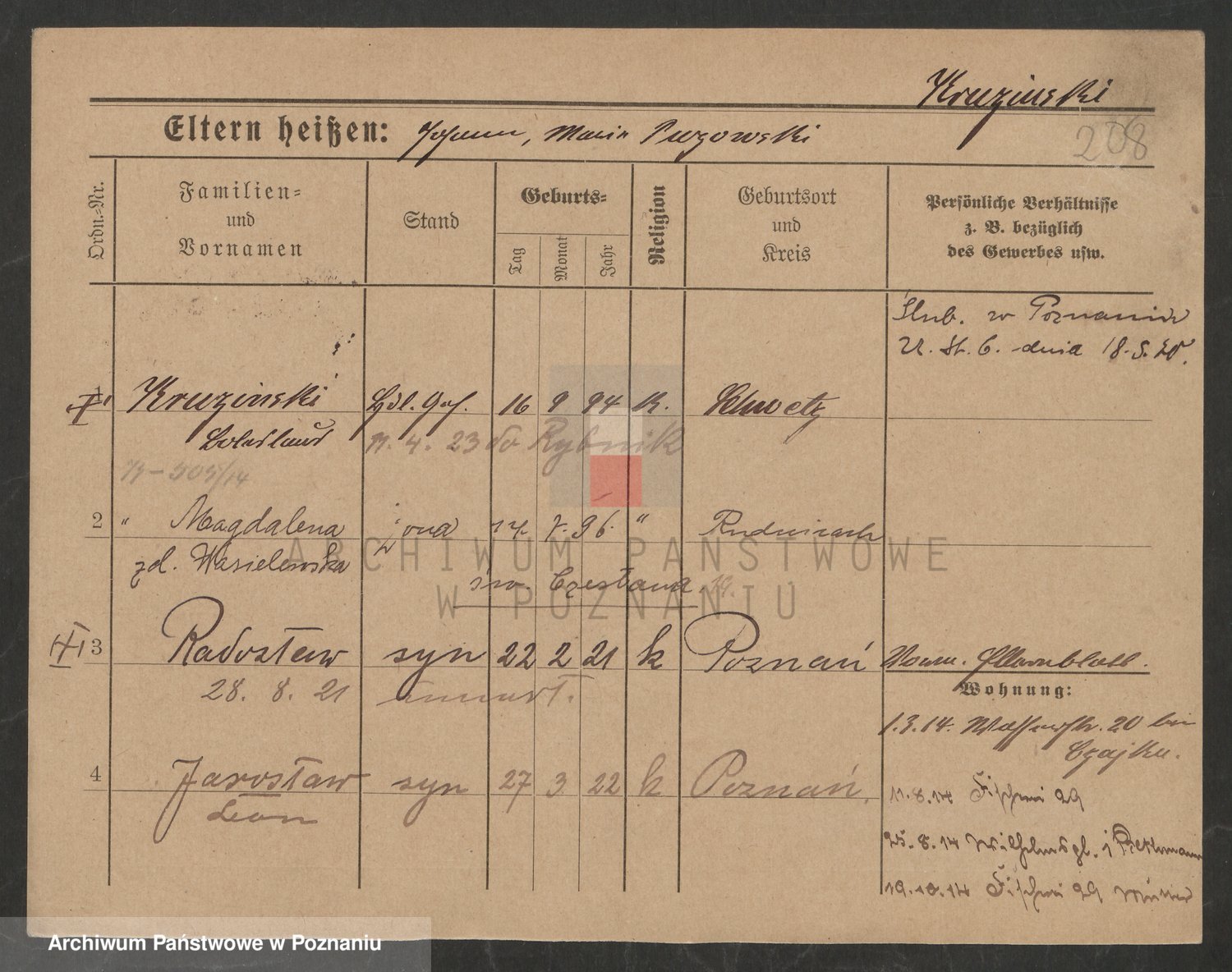 Podgląd karty osobowej dostępny jest po kliknięciu na nazwisko lub ikonkę karty. Można dokonywać powiększenia (ikony na górze) lub przechodzić między kolejnymi skanami (strzałki po bokach).