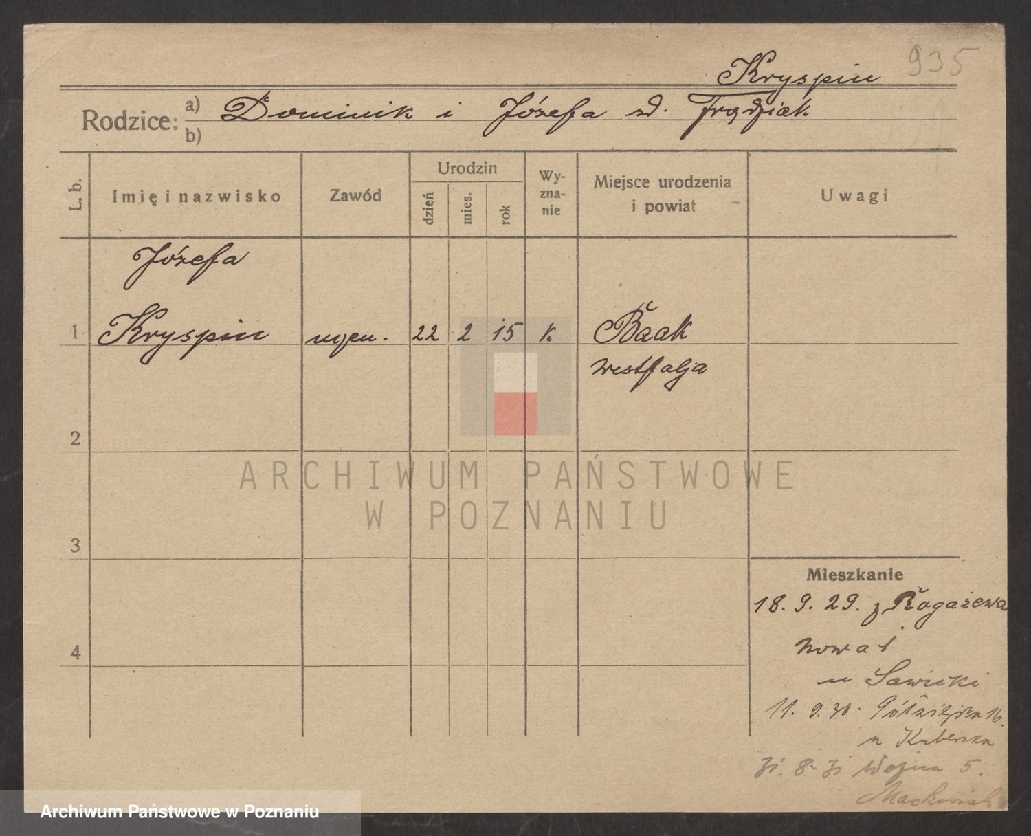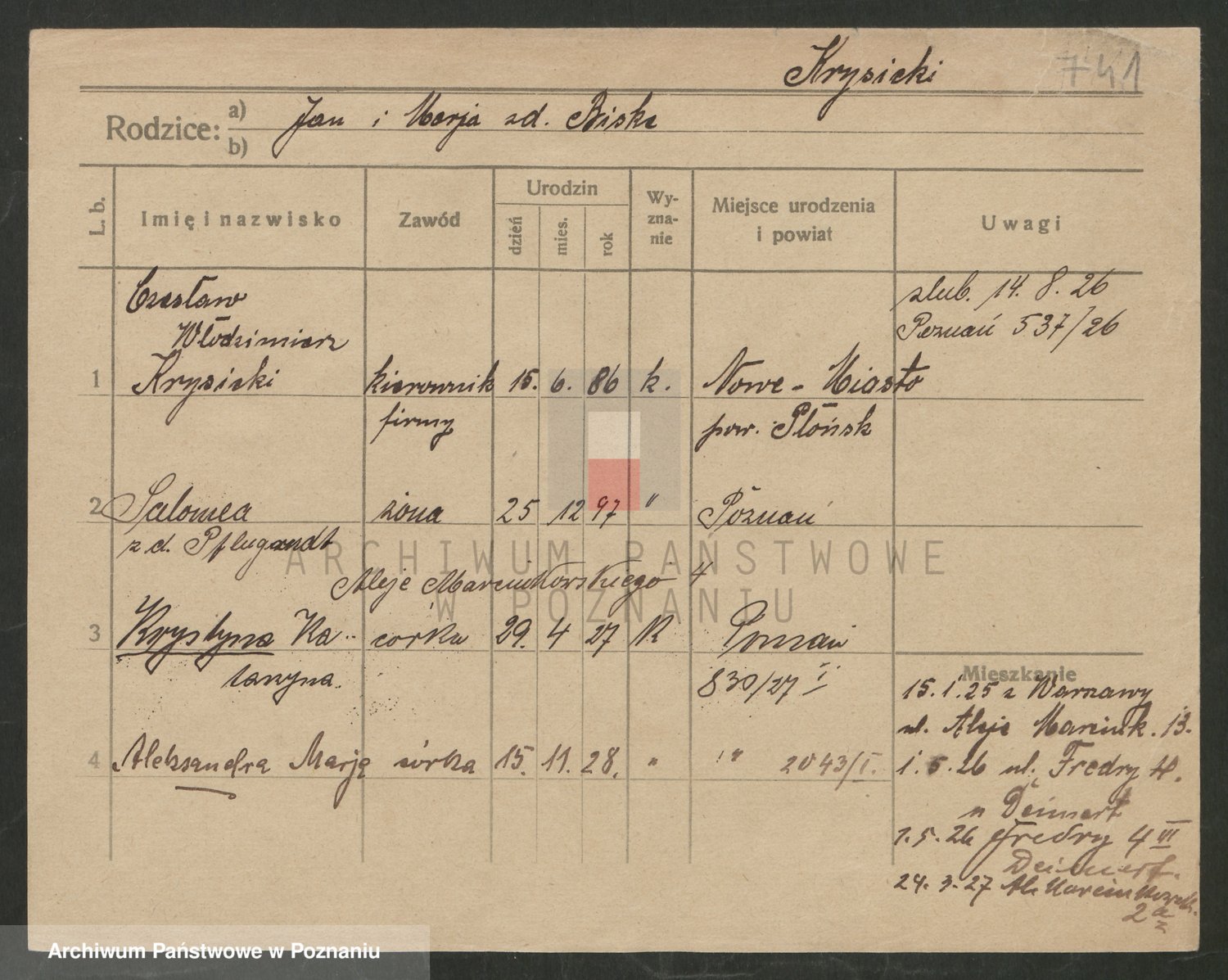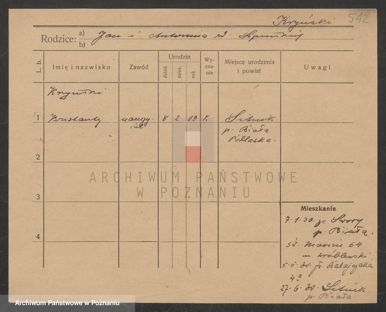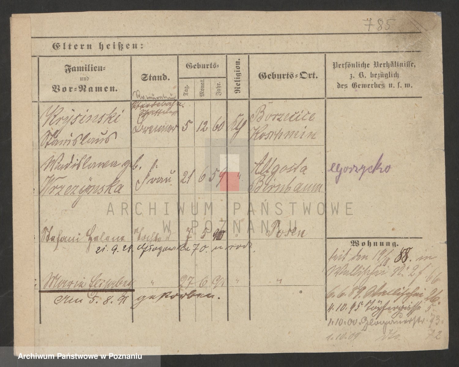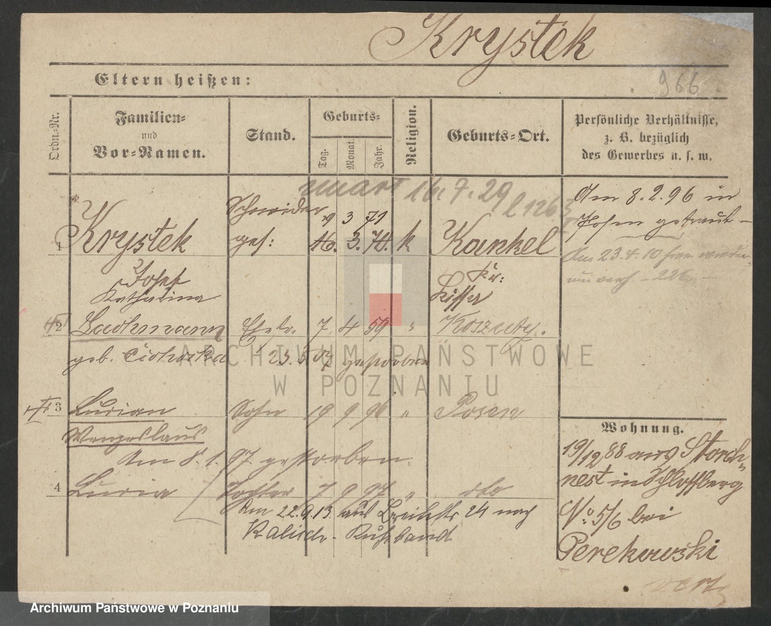 Podgląd karty osobowej dostępny jest po kliknięciu na nazwisko lub ikonkę karty. Można dokonywać powiększenia (ikony na górze) lub przechodzić między kolejnymi skanami (strzałki po bokach).