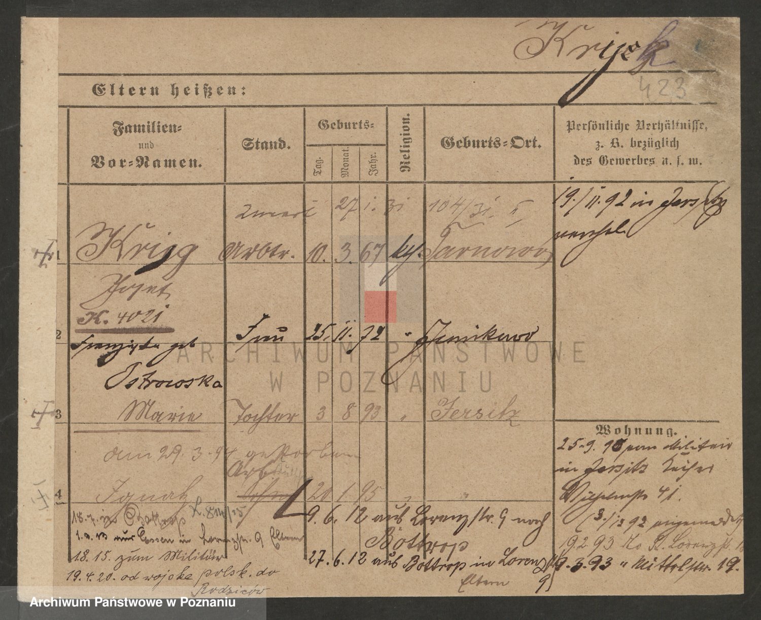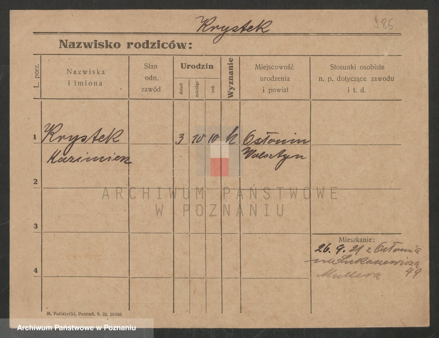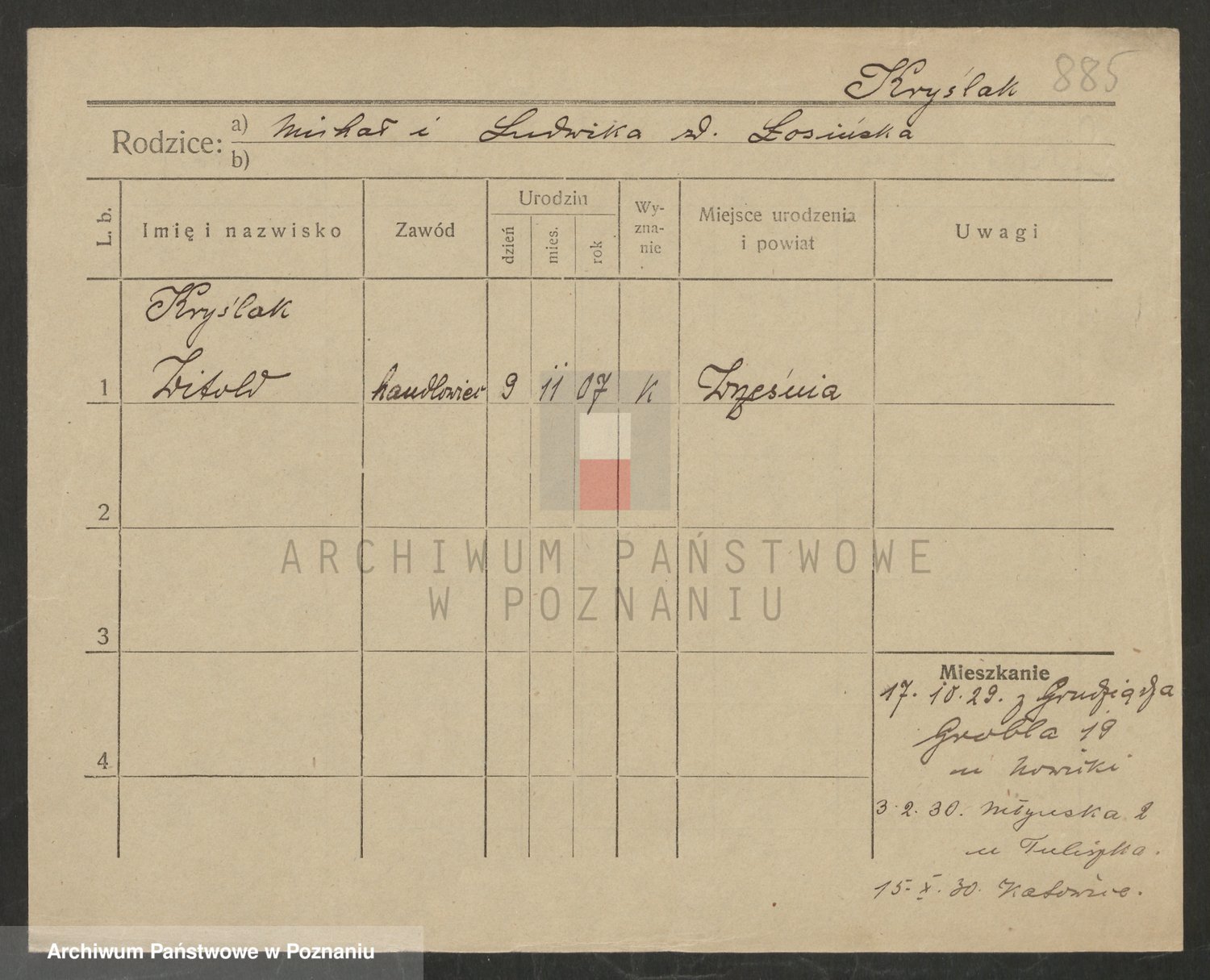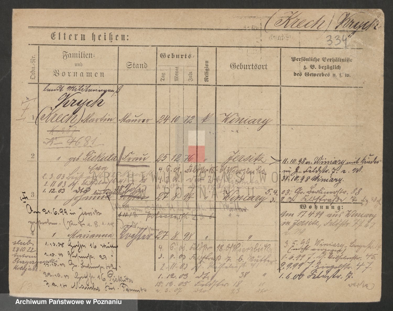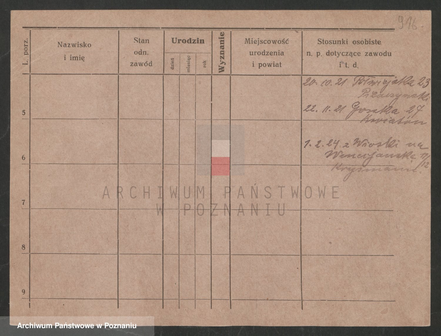 Podgląd karty osobowej dostępny jest po kliknięciu na nazwisko lub ikonkę karty. Można dokonywać powiększenia (ikony na górze) lub przechodzić między kolejnymi skanami (strzałki po bokach).