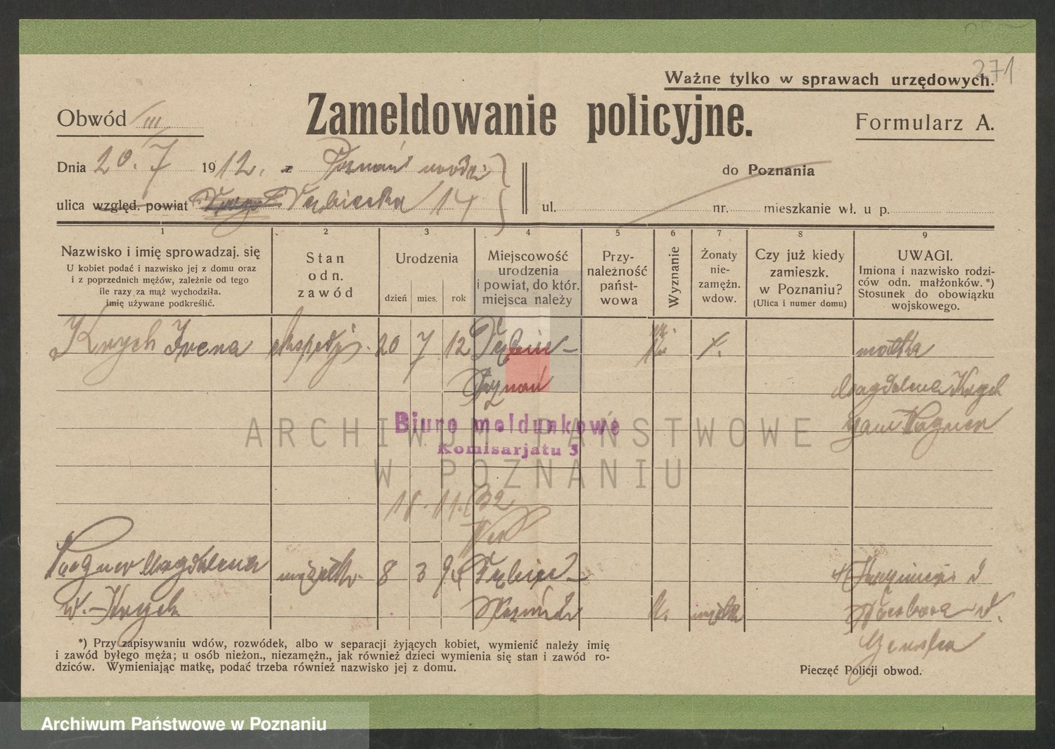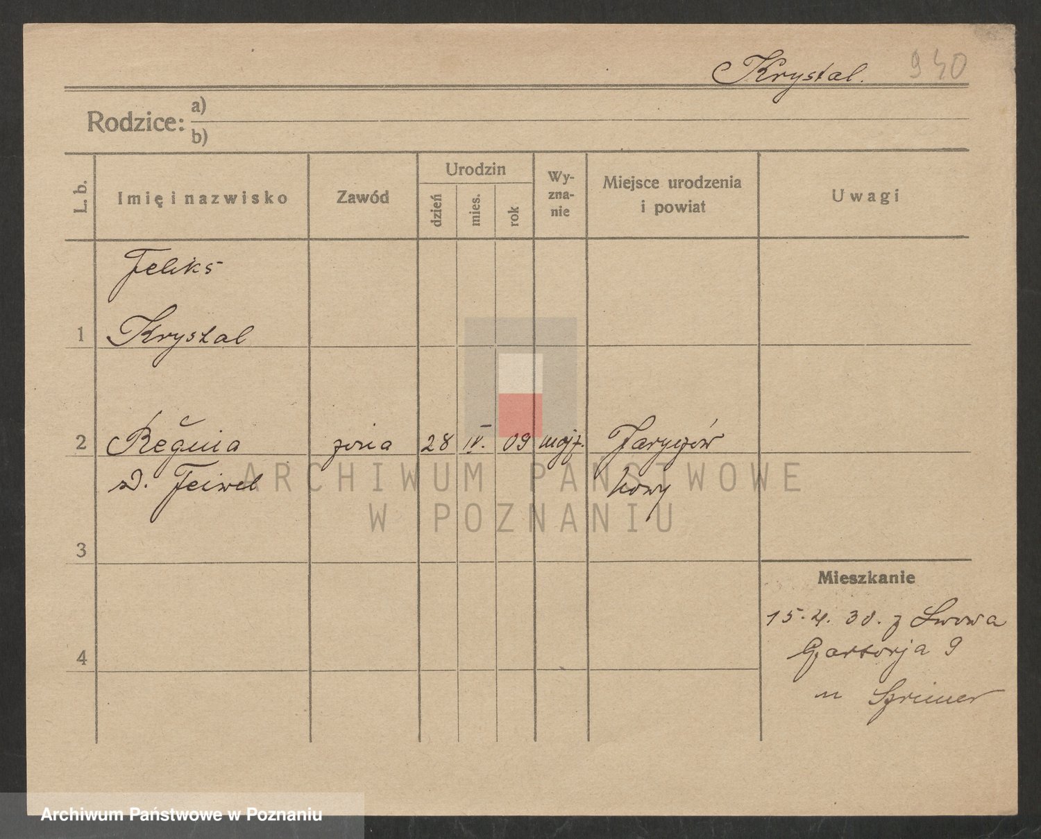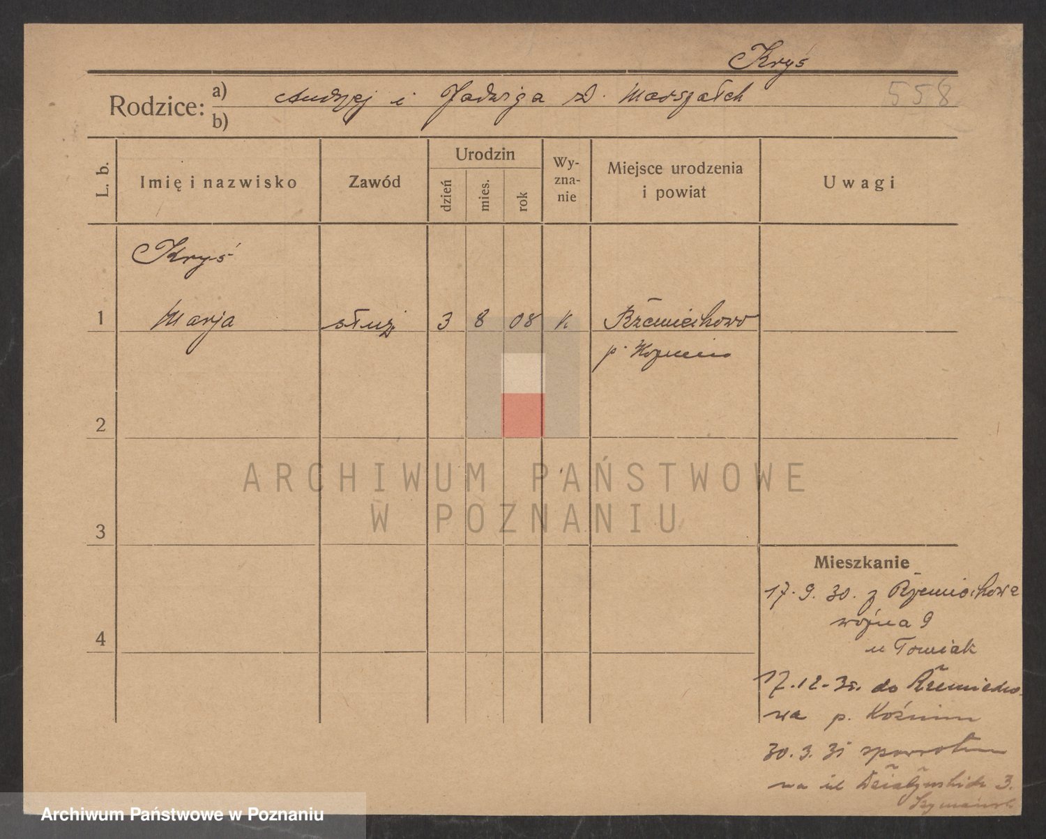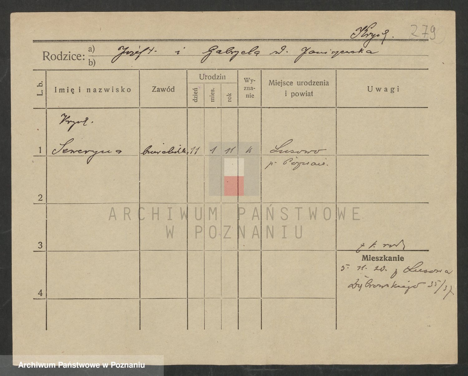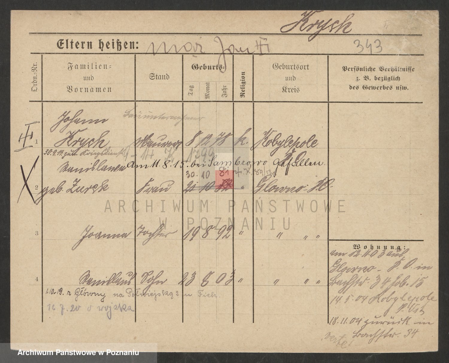 Podgląd karty osobowej dostępny jest po kliknięciu na nazwisko lub ikonkę karty. Można dokonywać powiększenia (ikony na górze) lub przechodzić między kolejnymi skanami (strzałki po bokach).