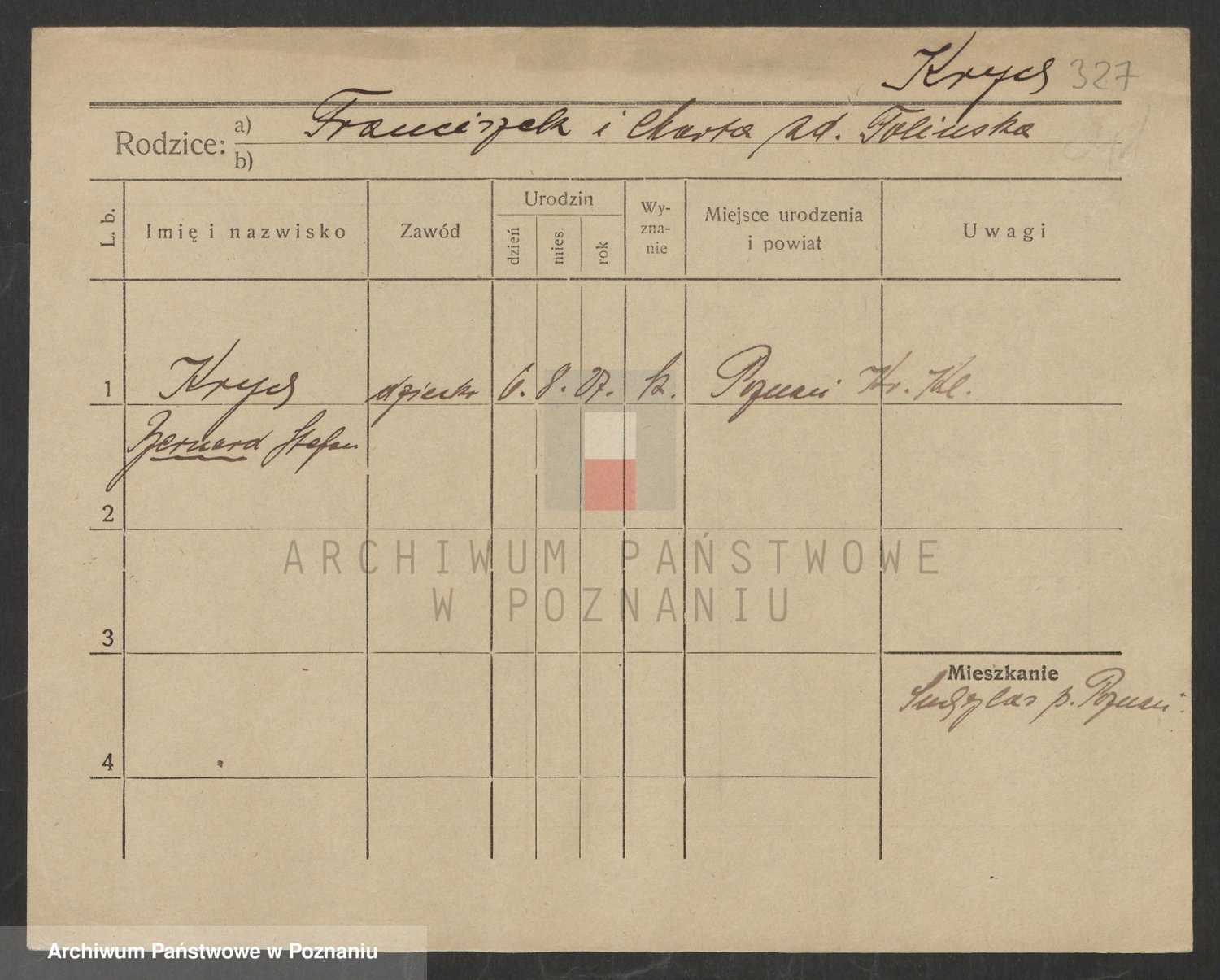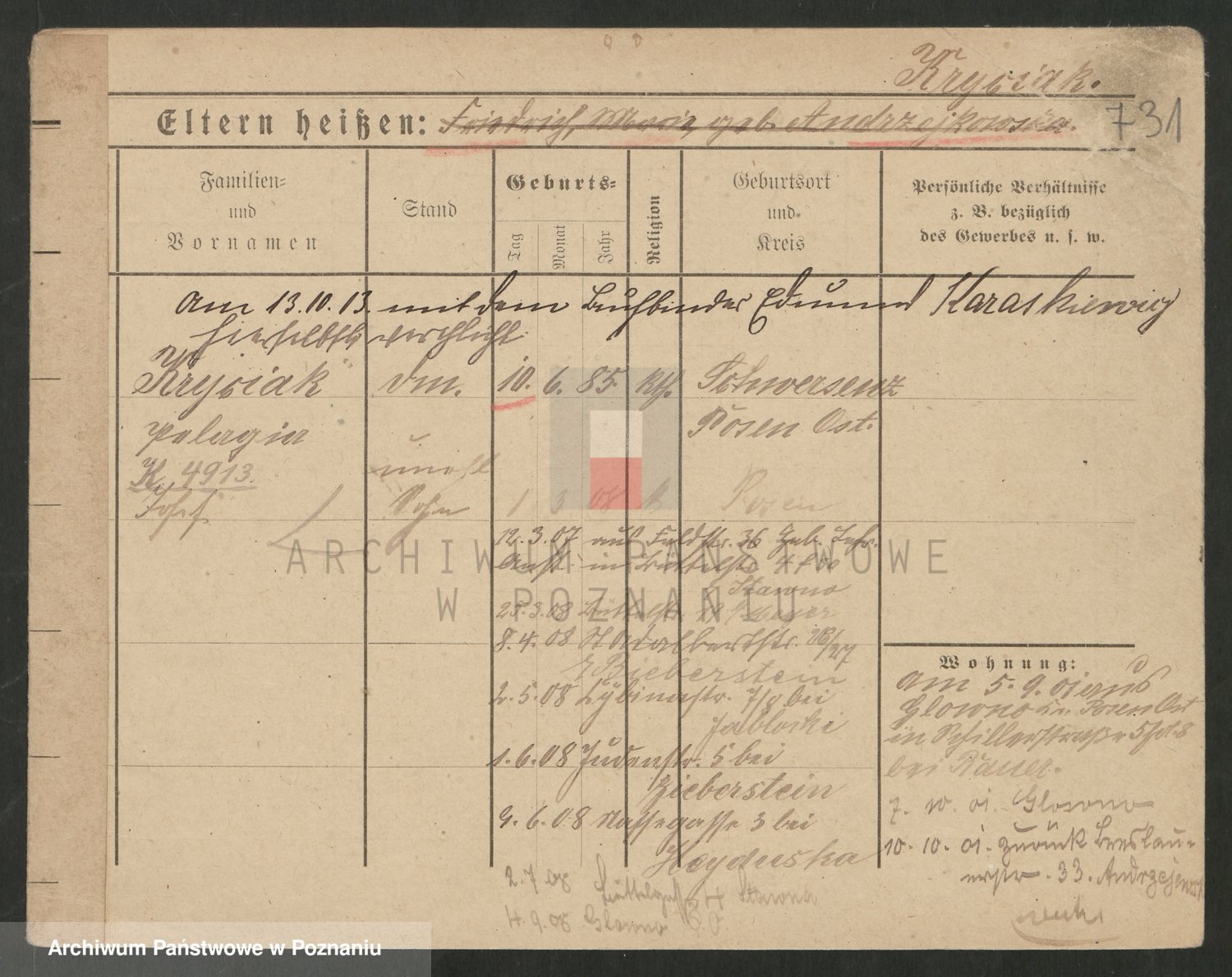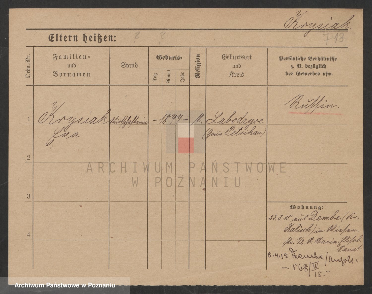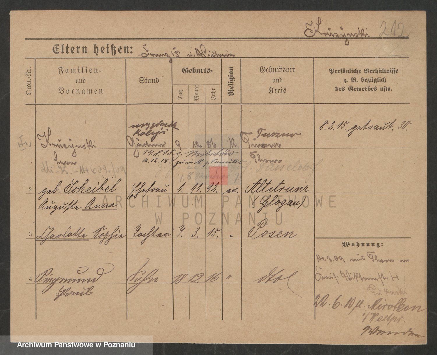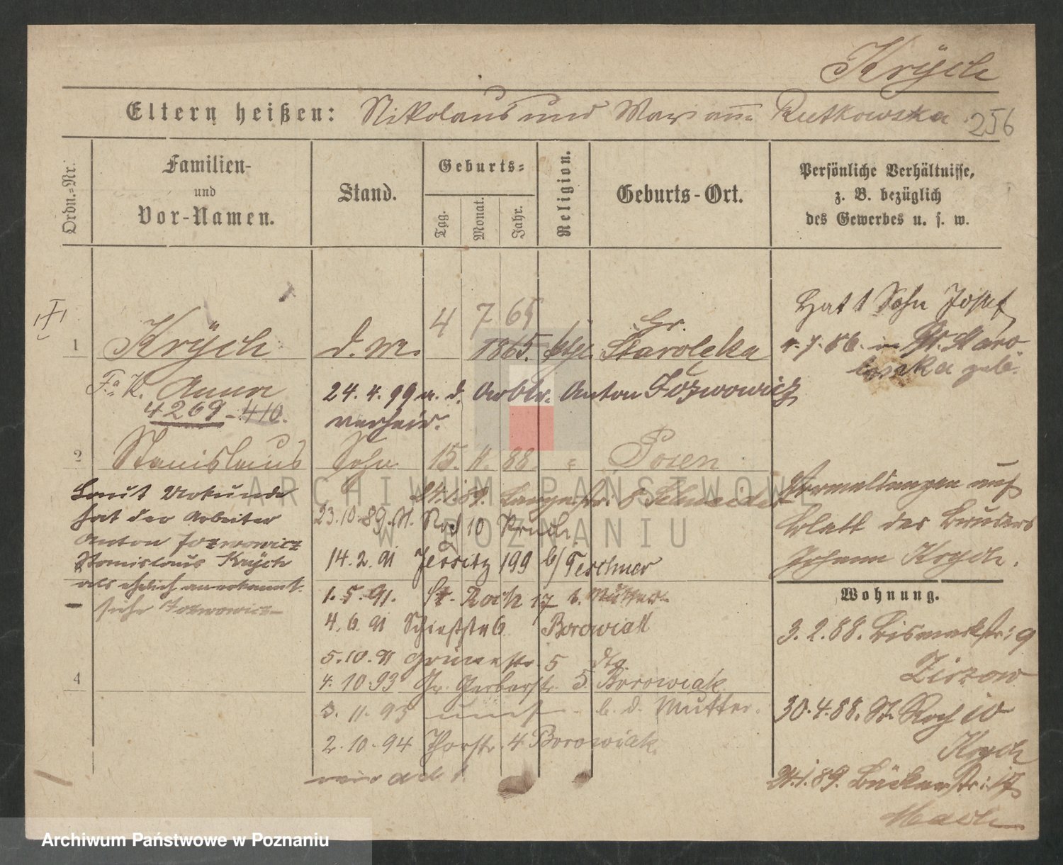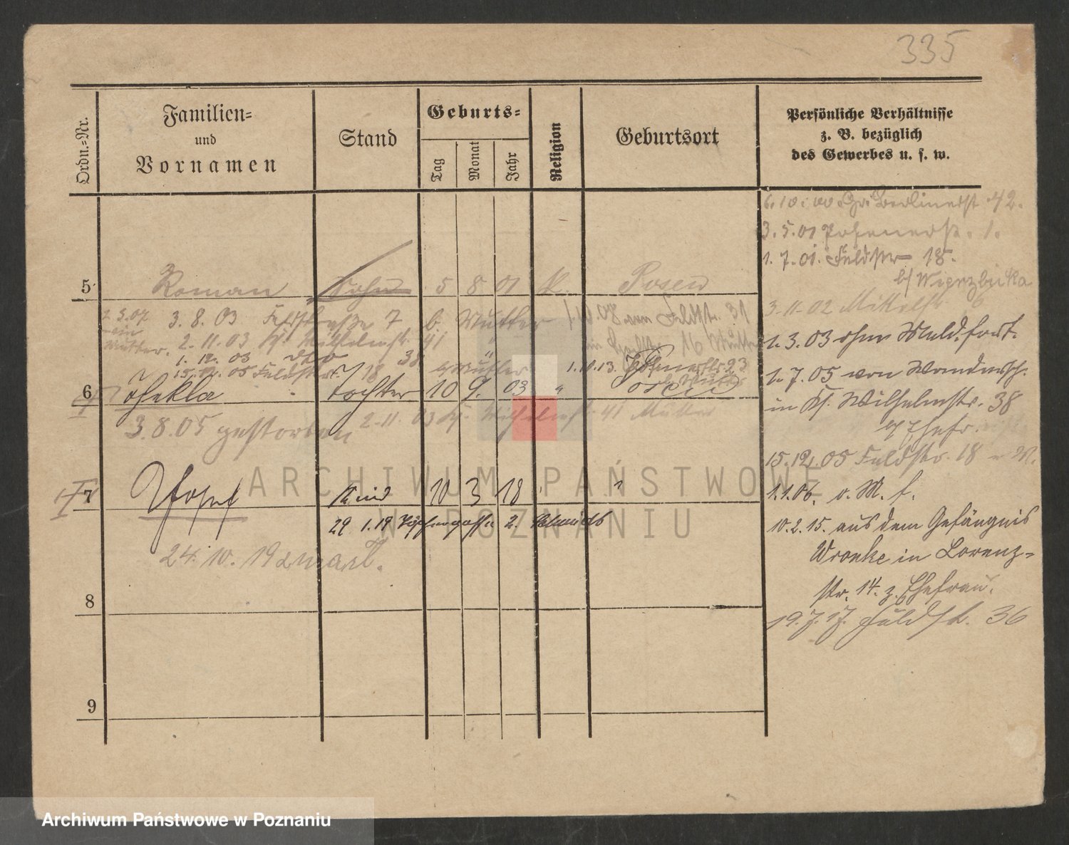 Podgląd karty osobowej dostępny jest po kliknięciu na nazwisko lub ikonkę karty. Można dokonywać powiększenia (ikony na górze) lub przechodzić między kolejnymi skanami (strzałki po bokach).