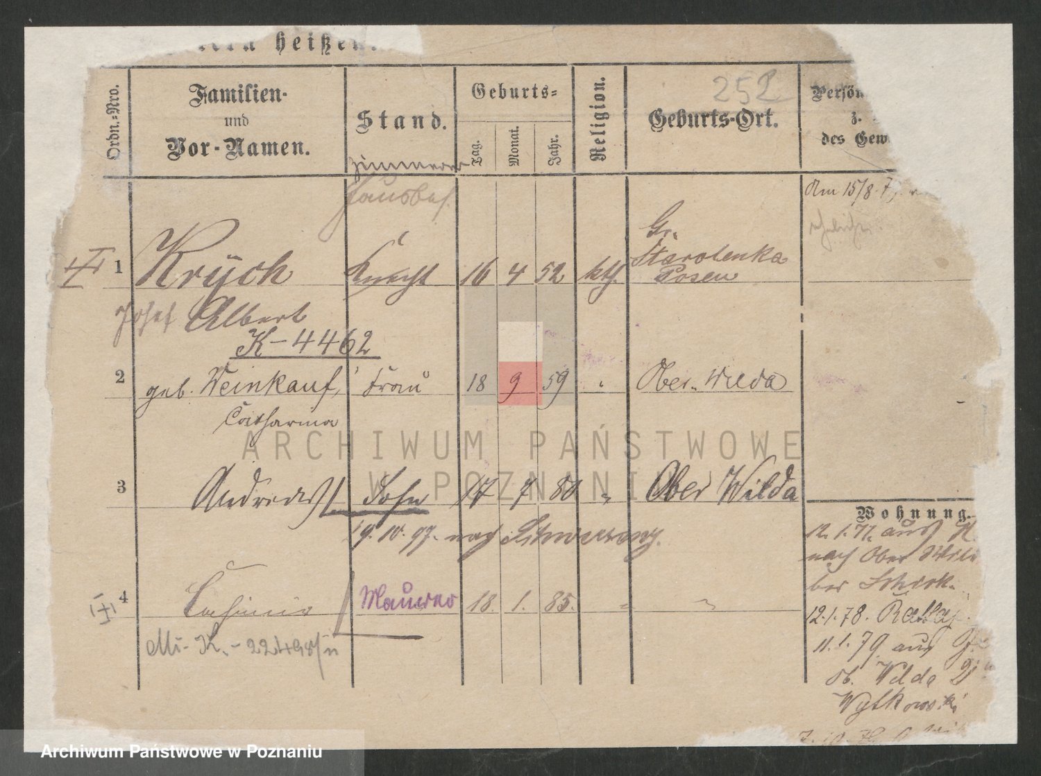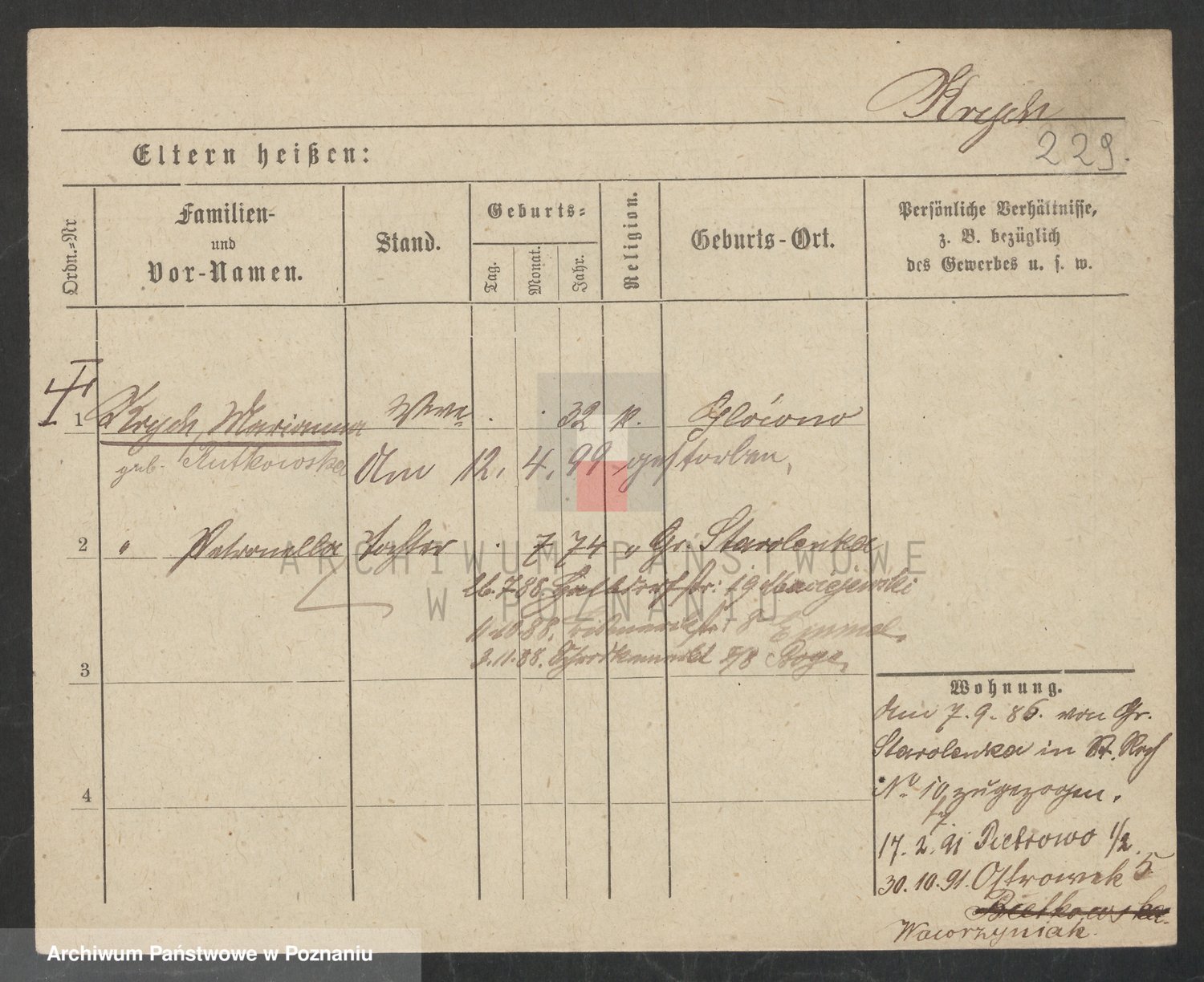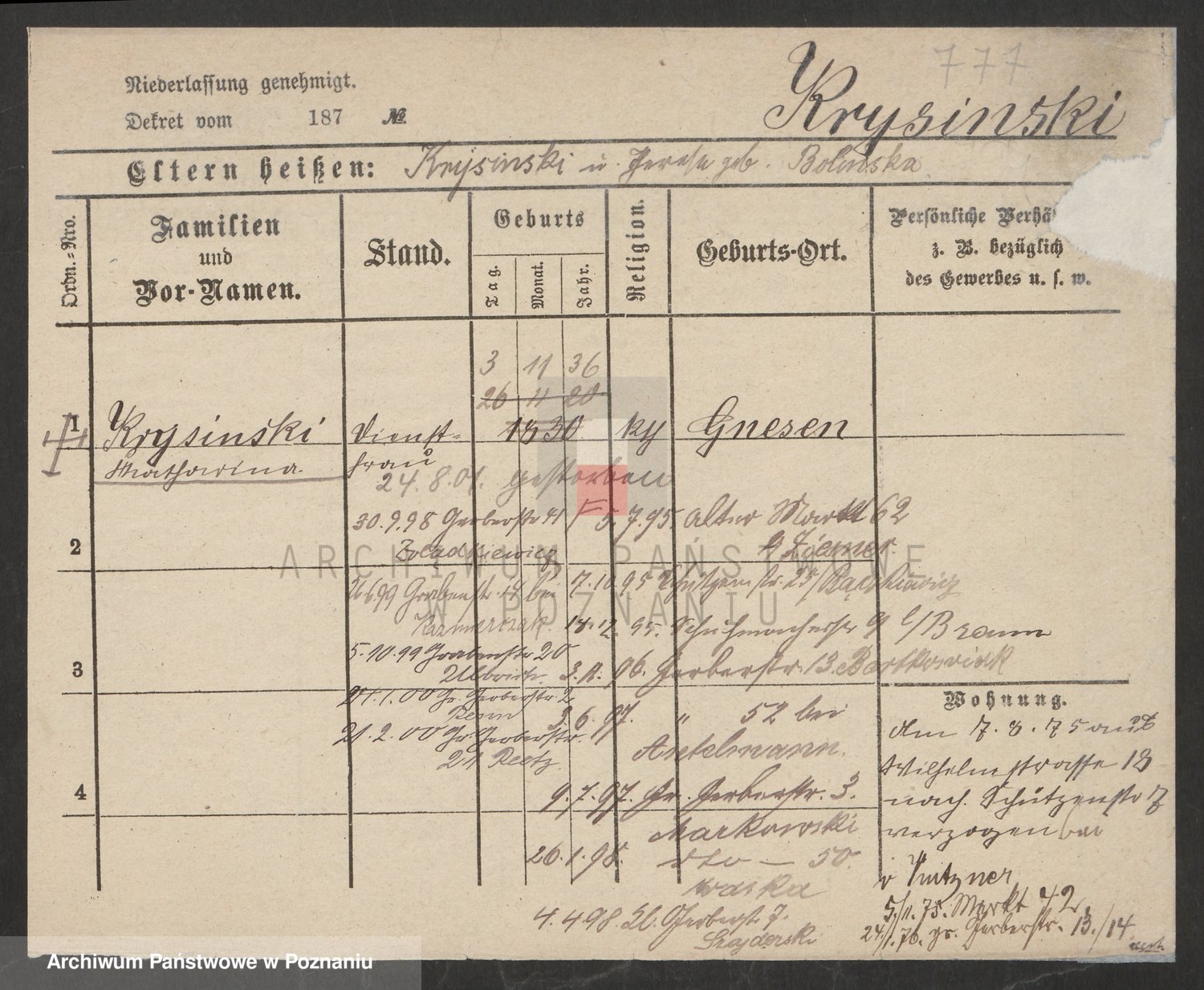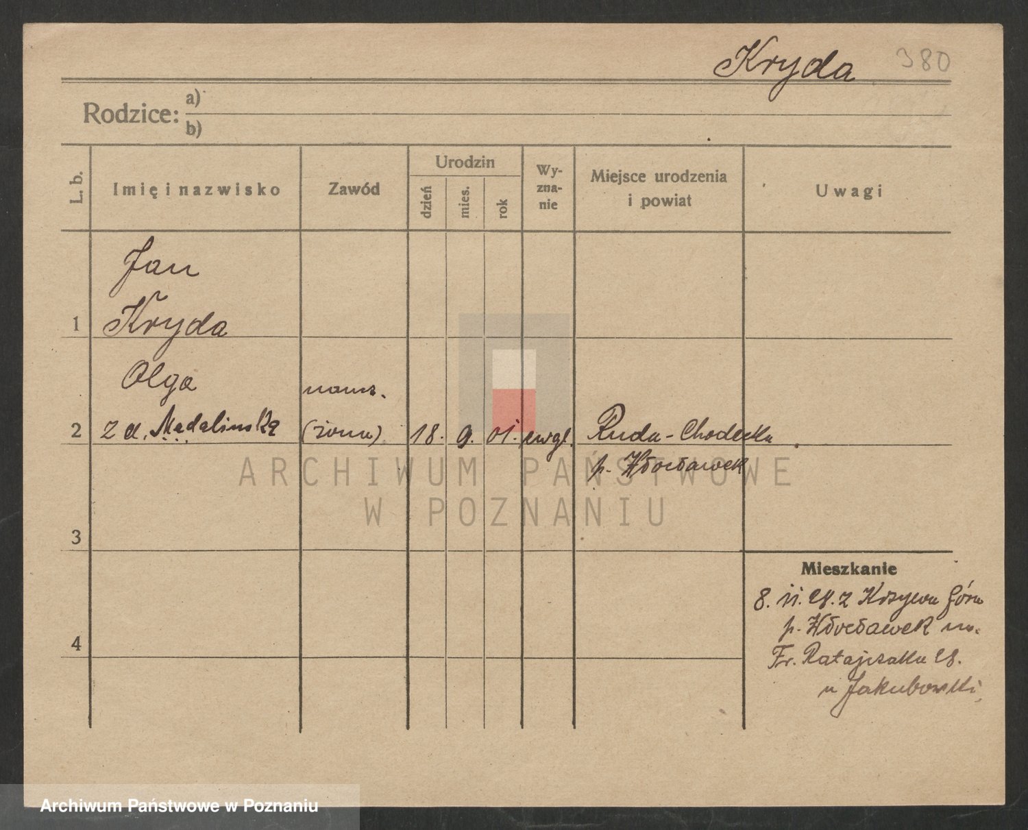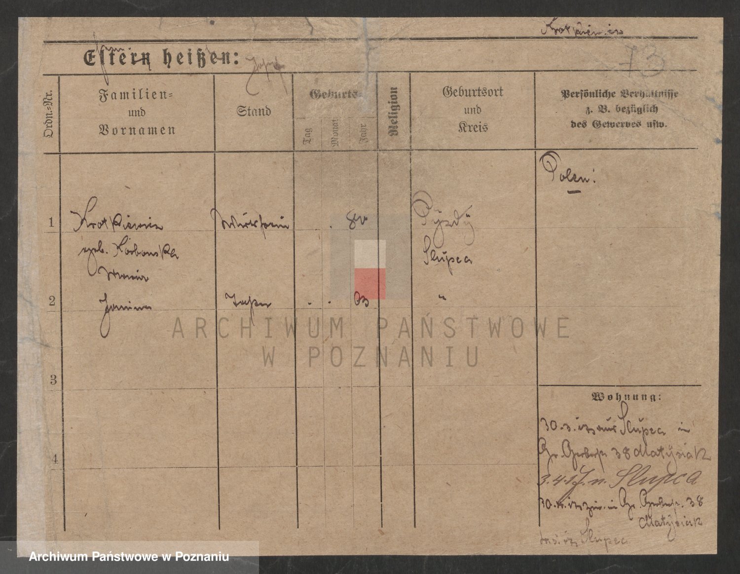 Podgląd karty osobowej dostępny jest po kliknięciu na nazwisko lub ikonkę karty. Można dokonywać powiększenia (ikony na górze) lub przechodzić między kolejnymi skanami (strzałki po bokach).