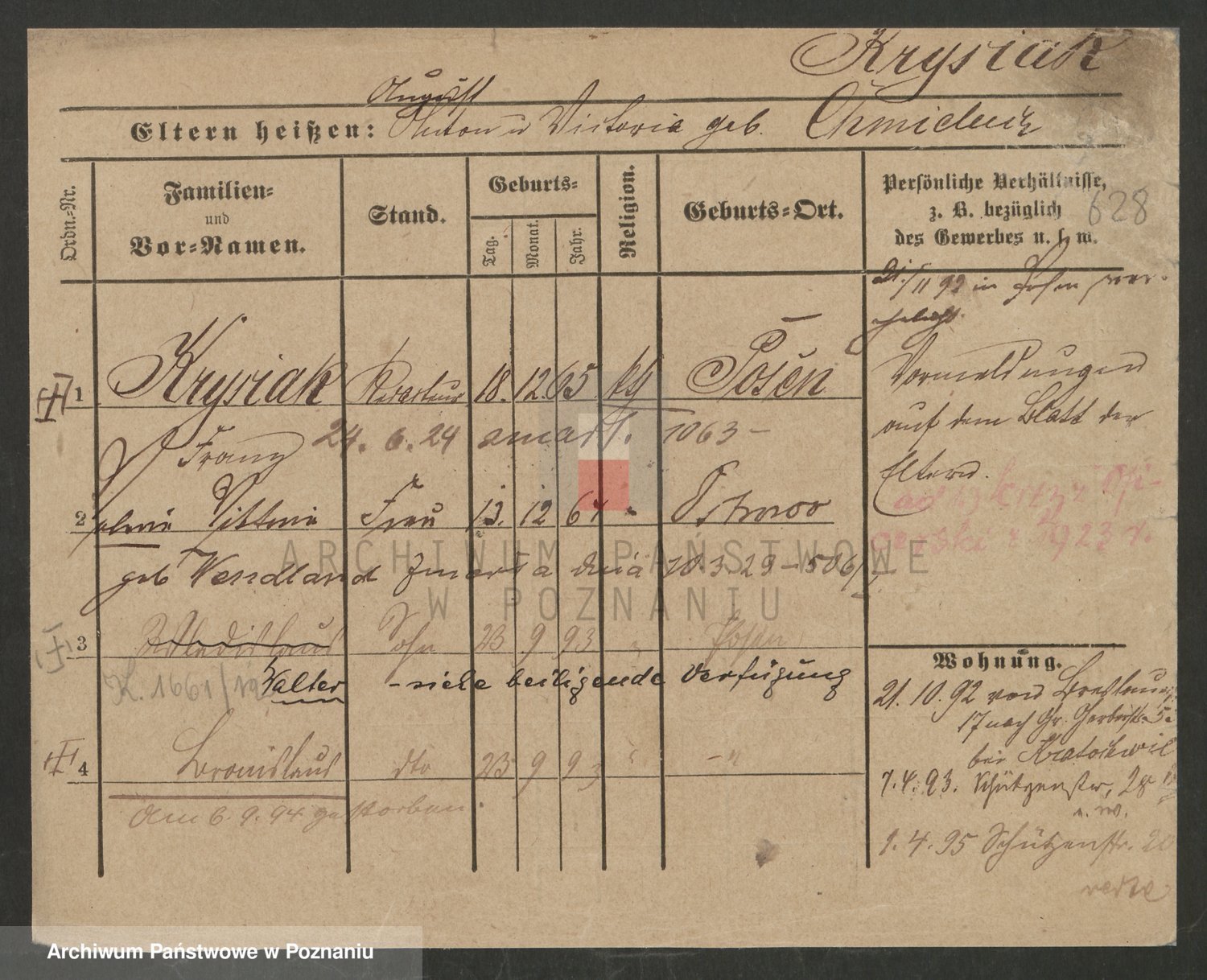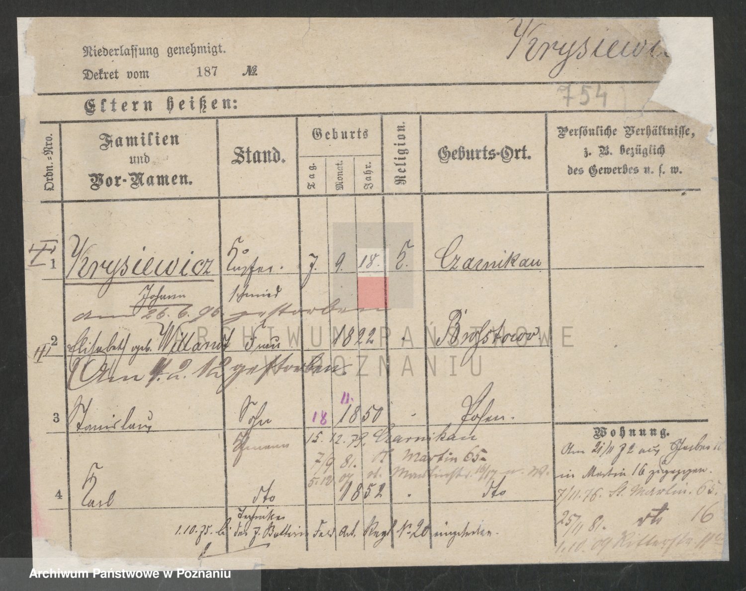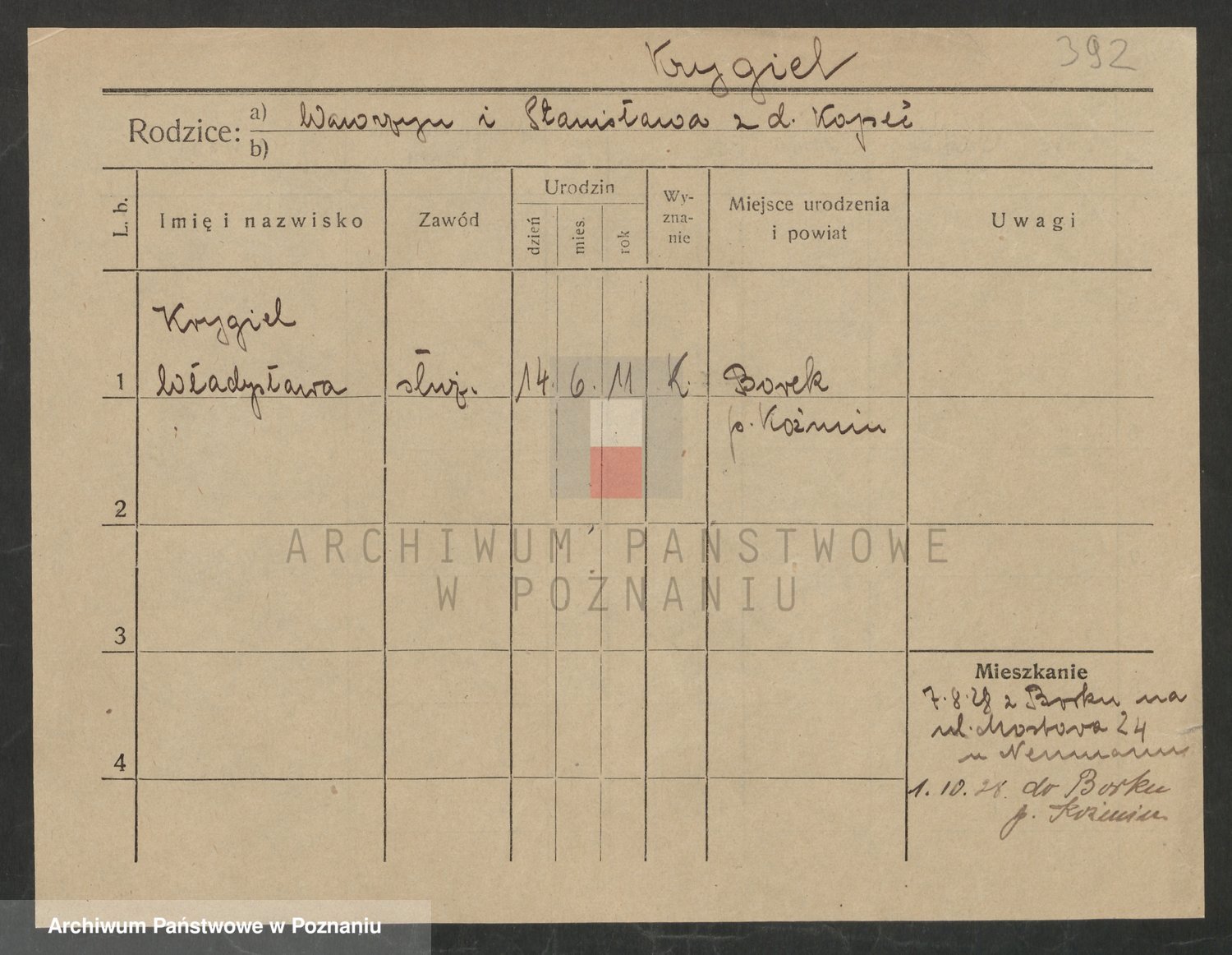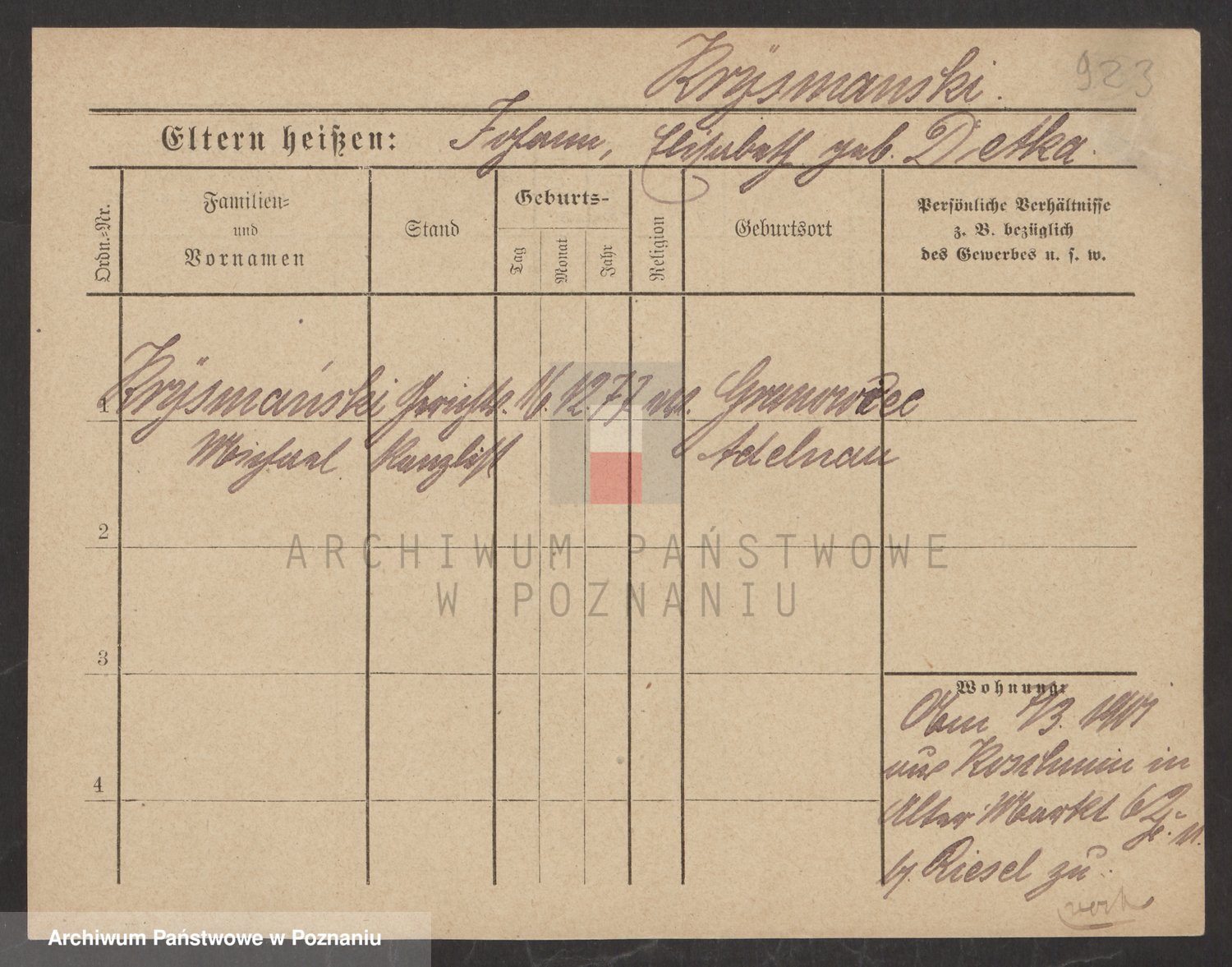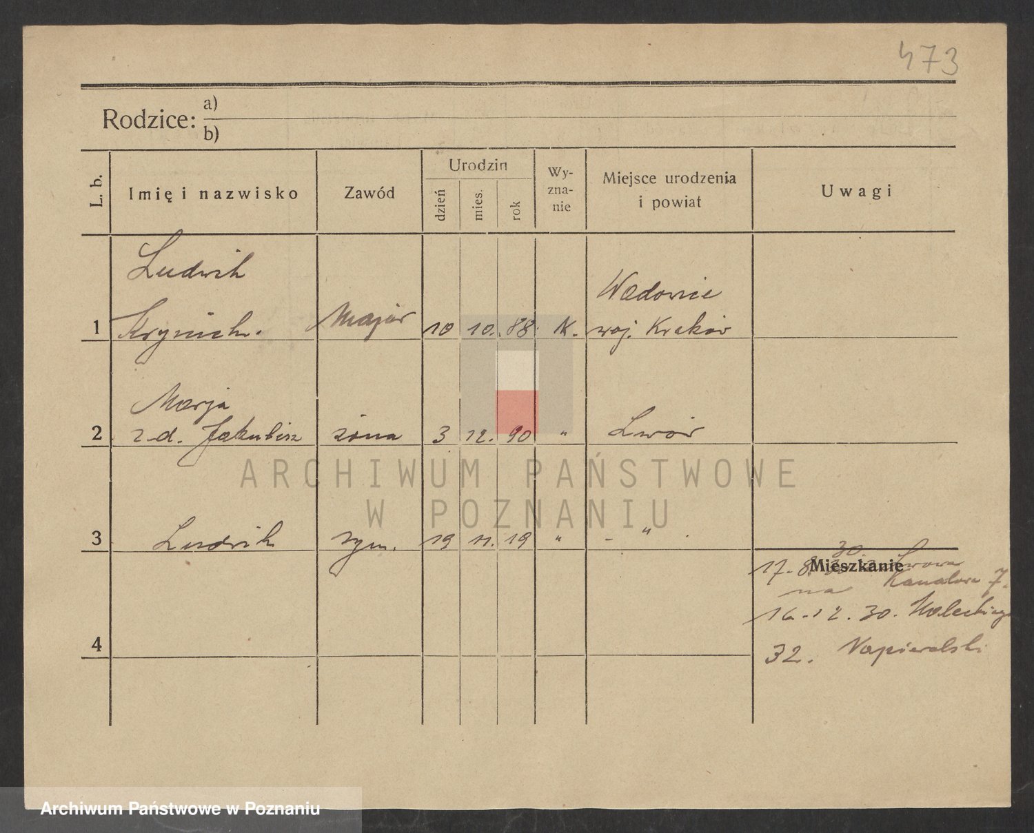 Podgląd karty osobowej dostępny jest po kliknięciu na nazwisko lub ikonkę karty. Można dokonywać powiększenia (ikony na górze) lub przechodzić między kolejnymi skanami (strzałki po bokach).