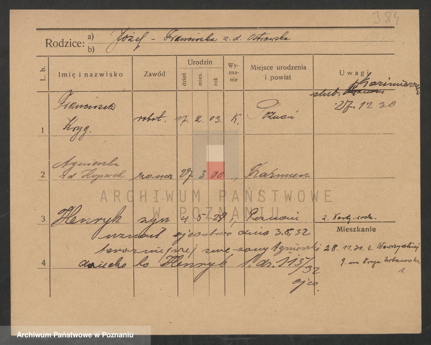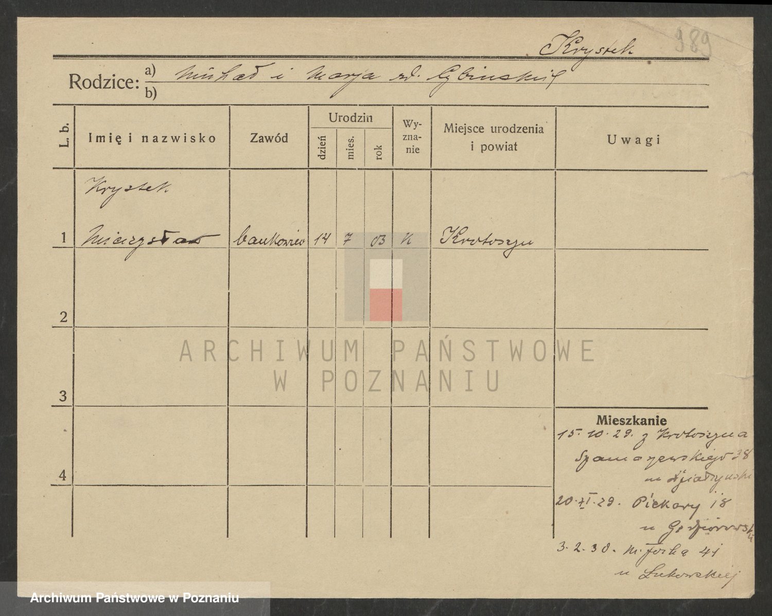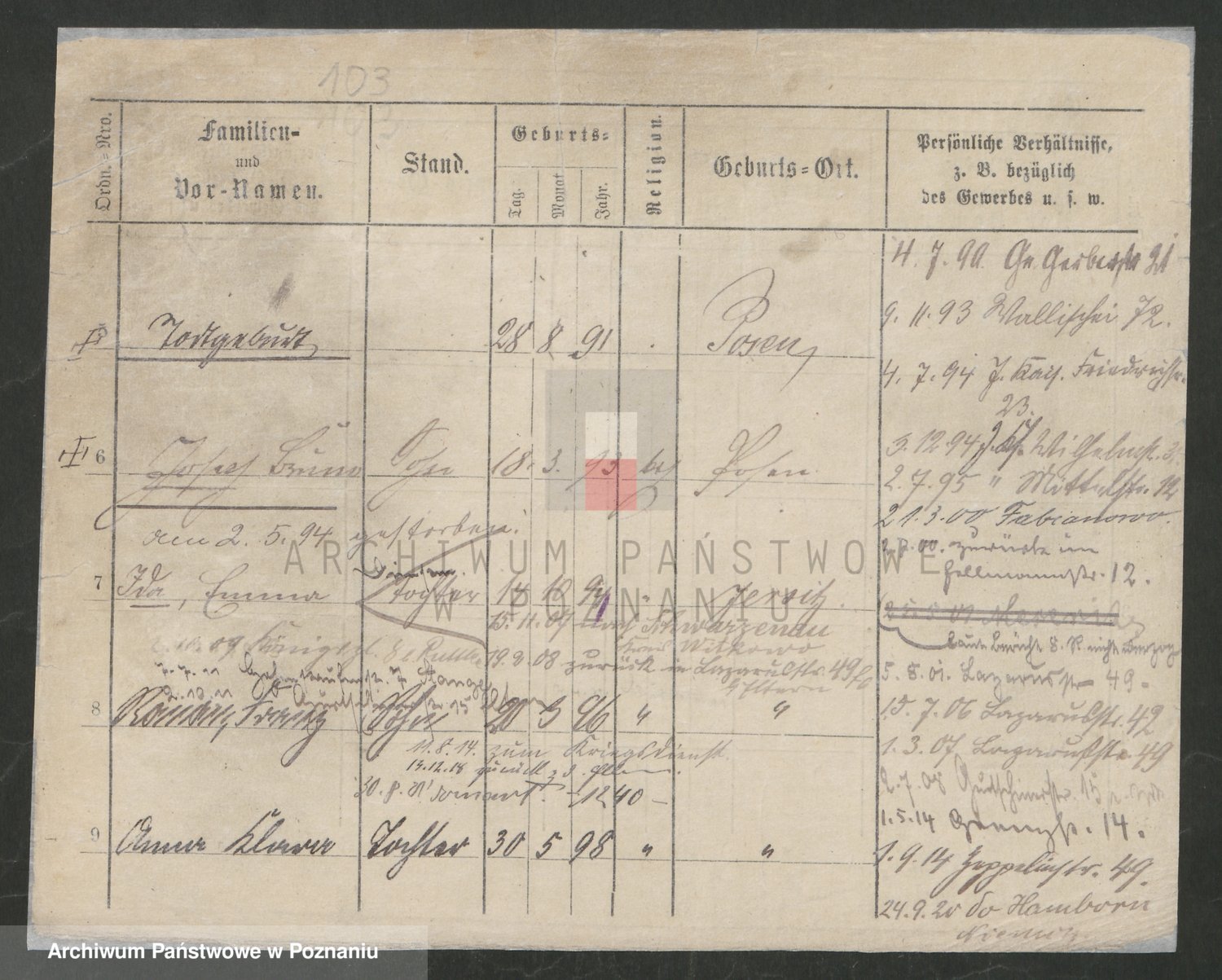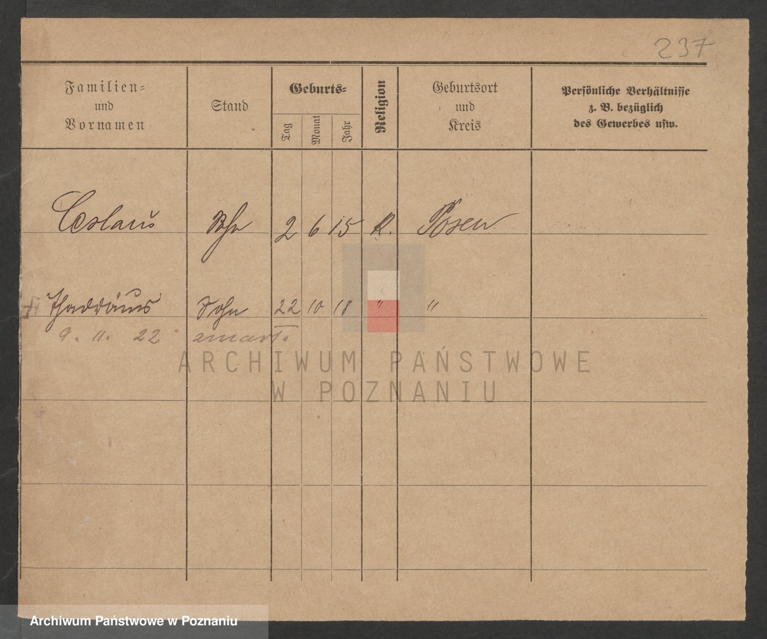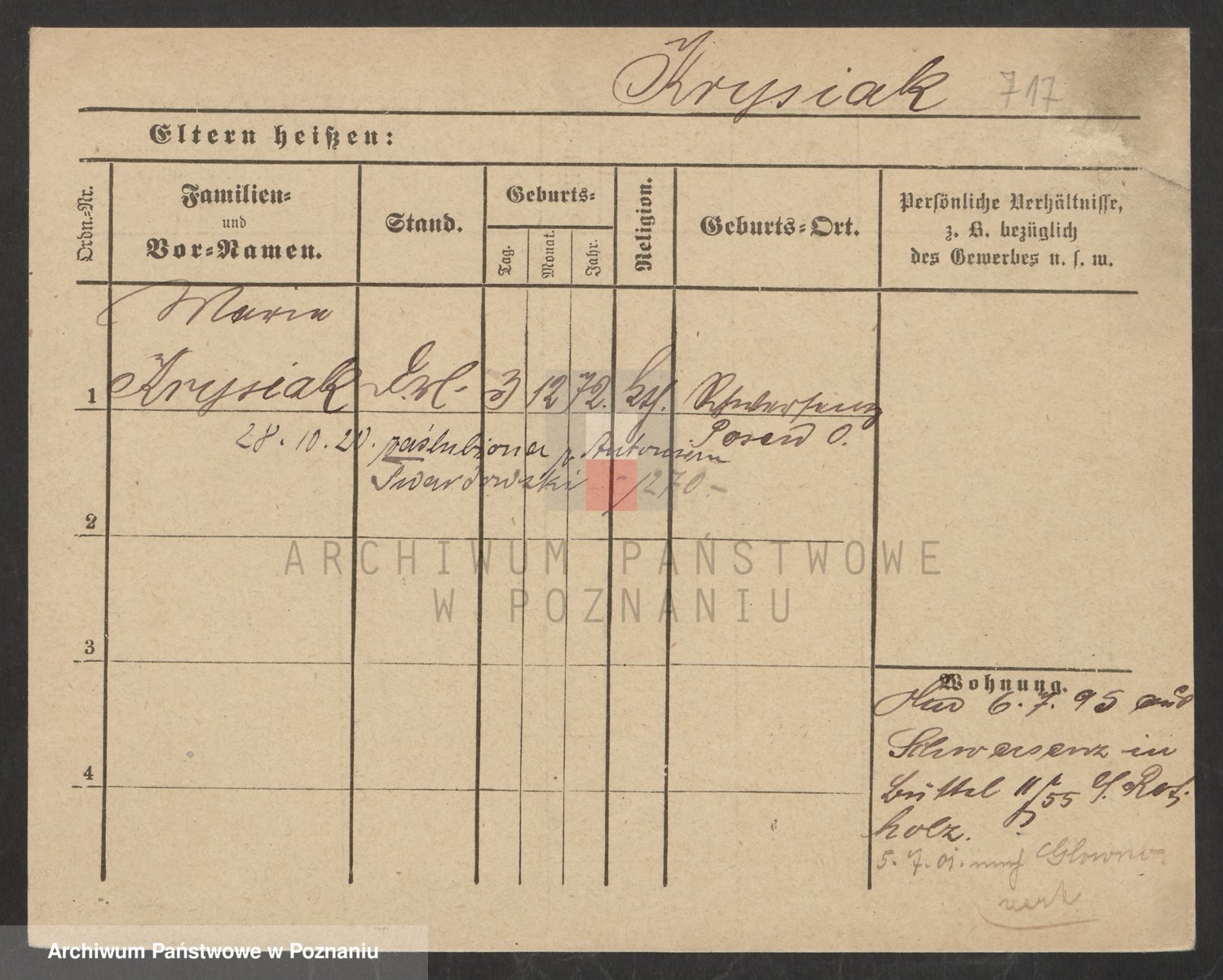 Podgląd karty osobowej dostępny jest po kliknięciu na nazwisko lub ikonkę karty. Można dokonywać powiększenia (ikony na górze) lub przechodzić między kolejnymi skanami (strzałki po bokach).