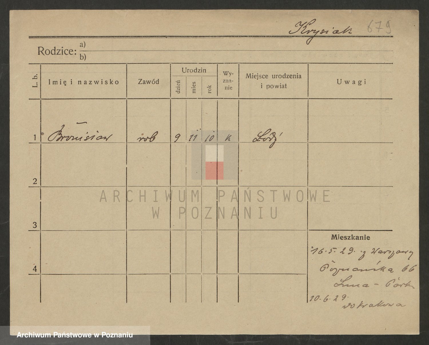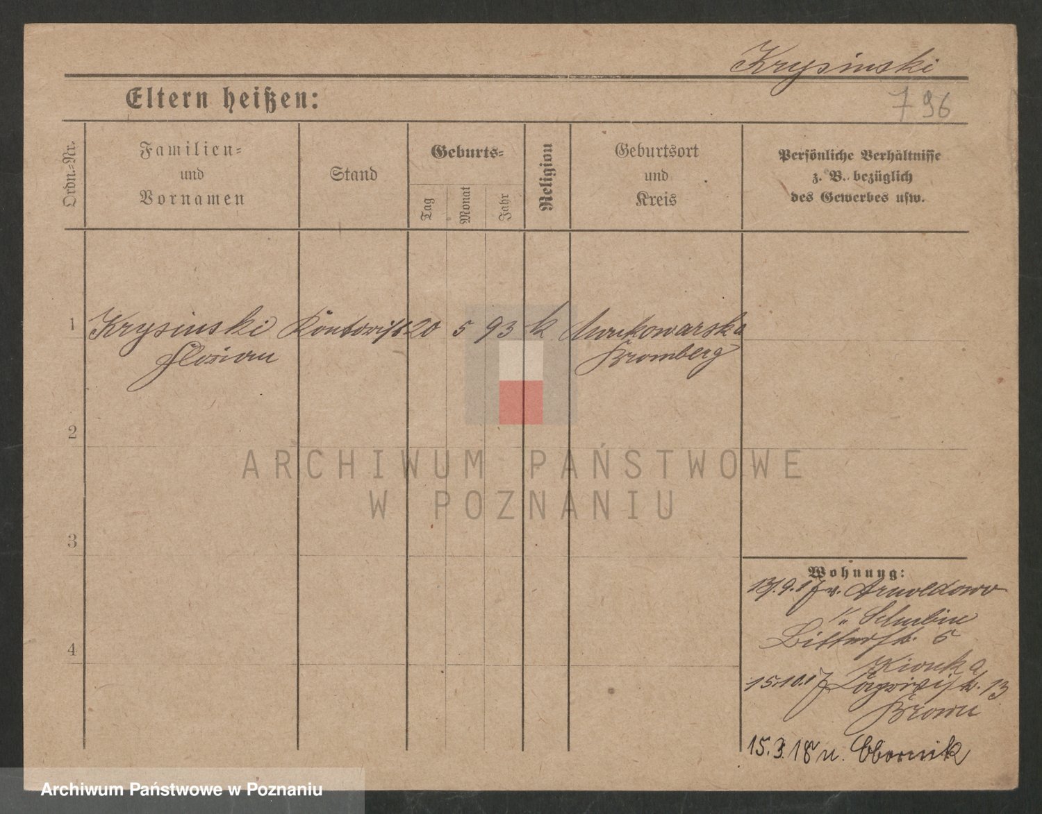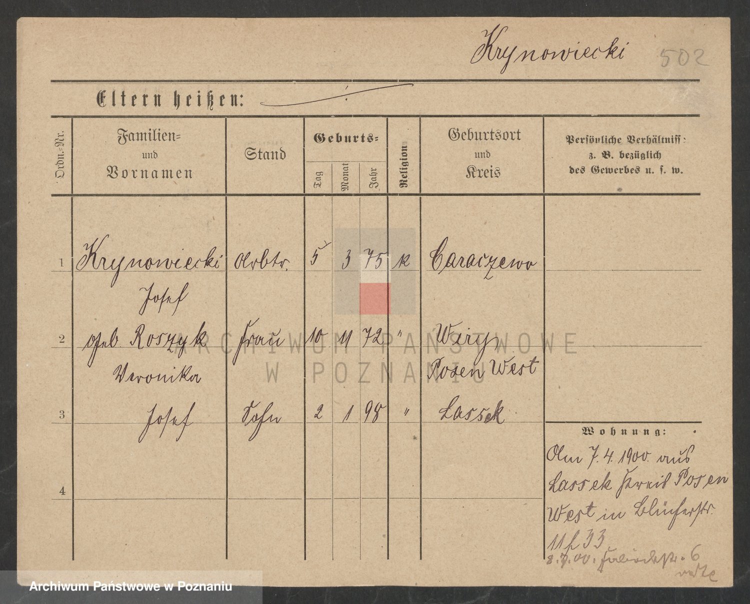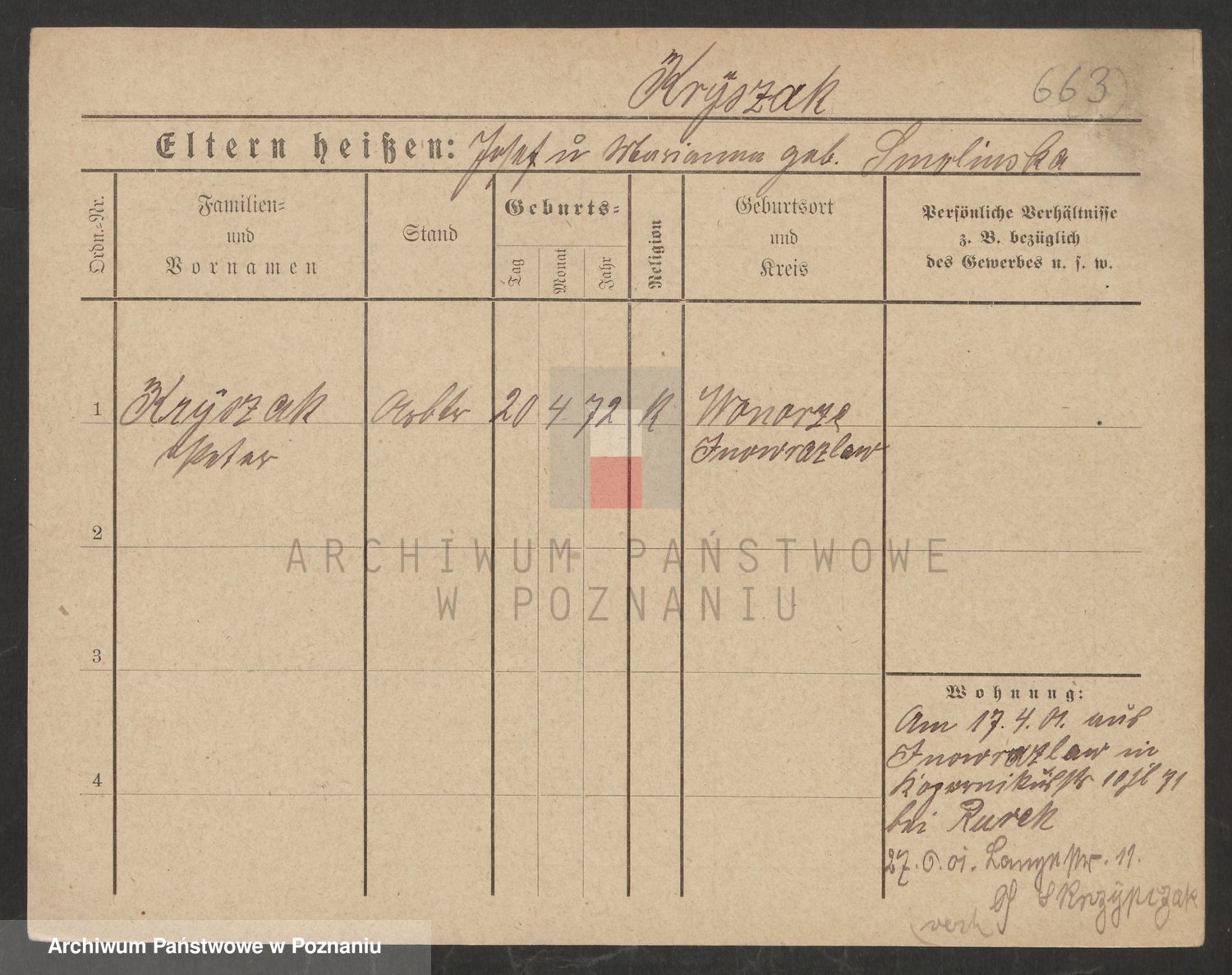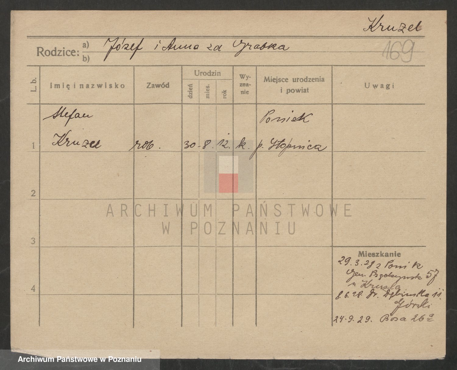 Podgląd karty osobowej dostępny jest po kliknięciu na nazwisko lub ikonkę karty. Można dokonywać powiększenia (ikony na górze) lub przechodzić między kolejnymi skanami (strzałki po bokach).