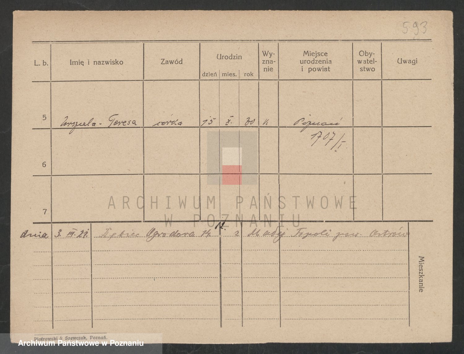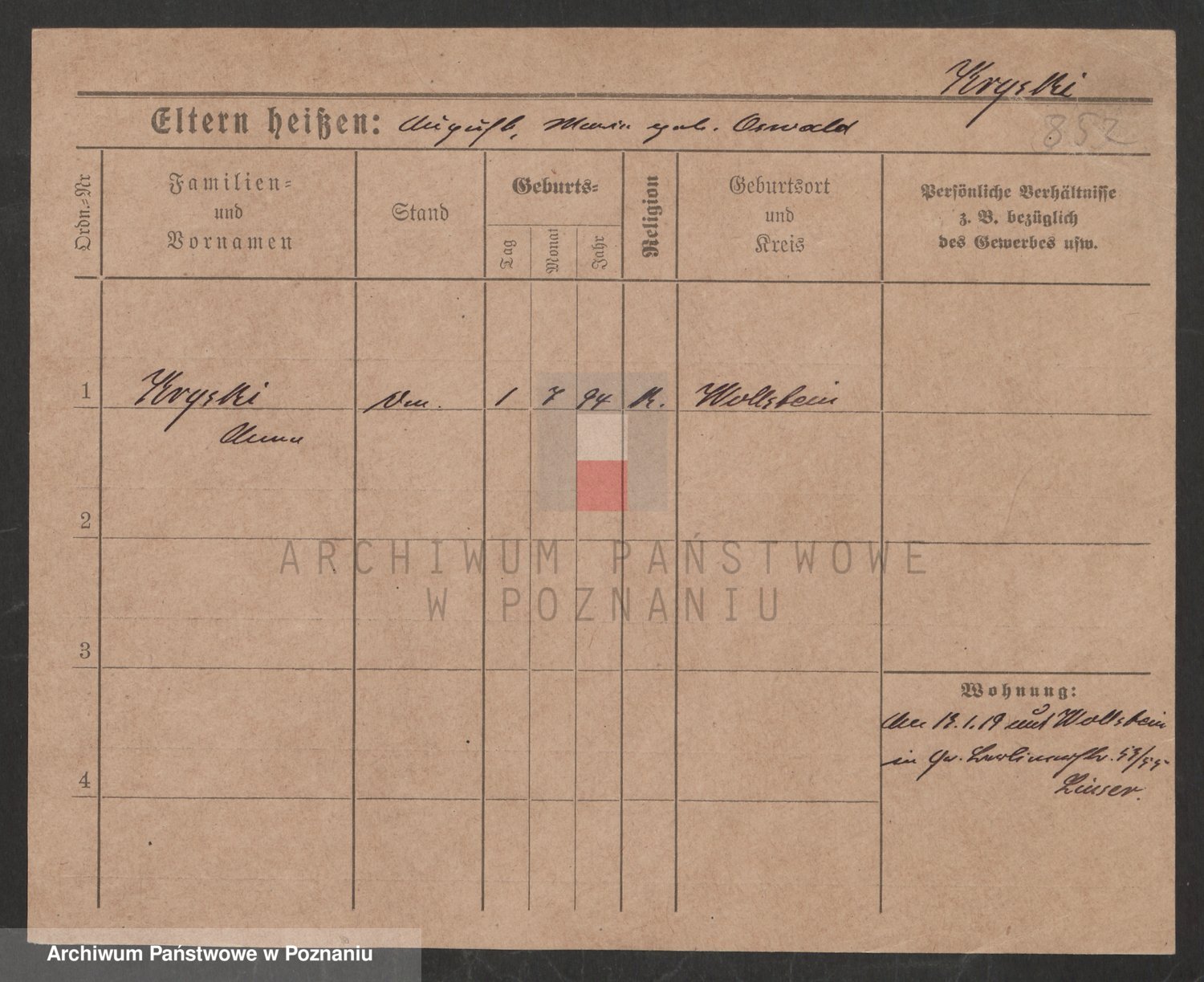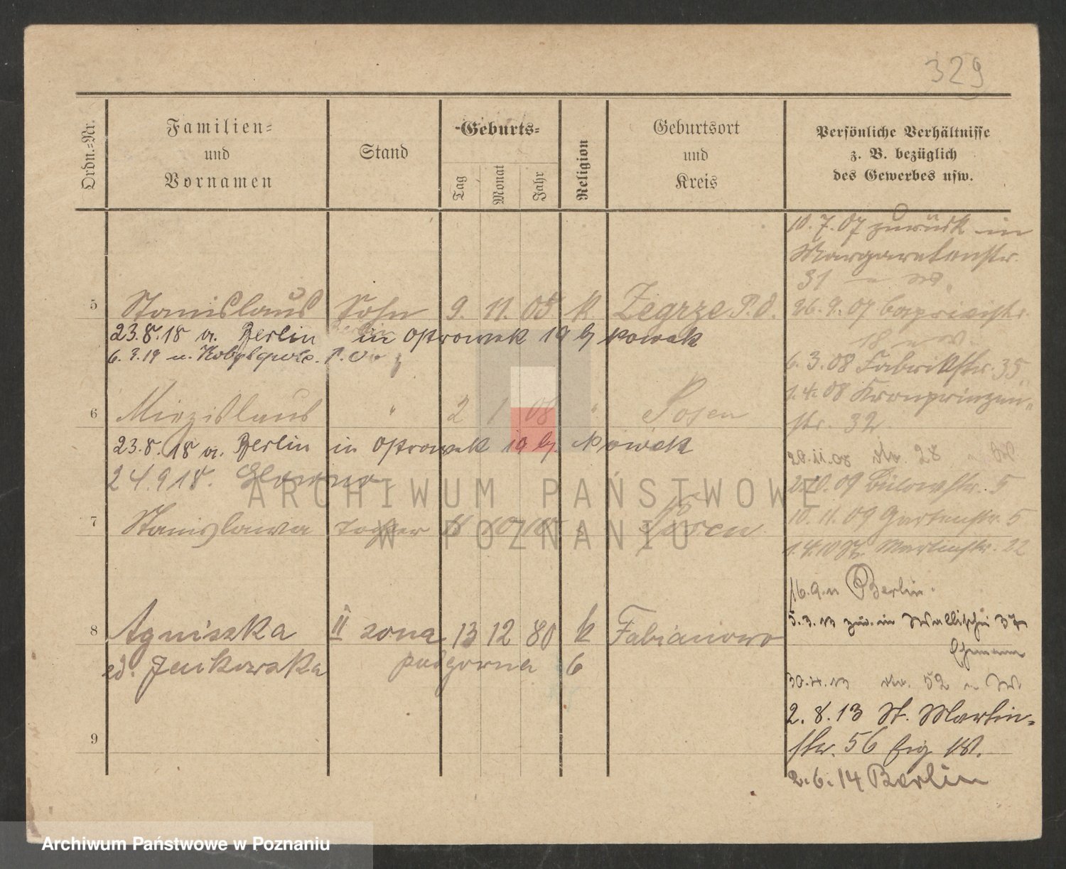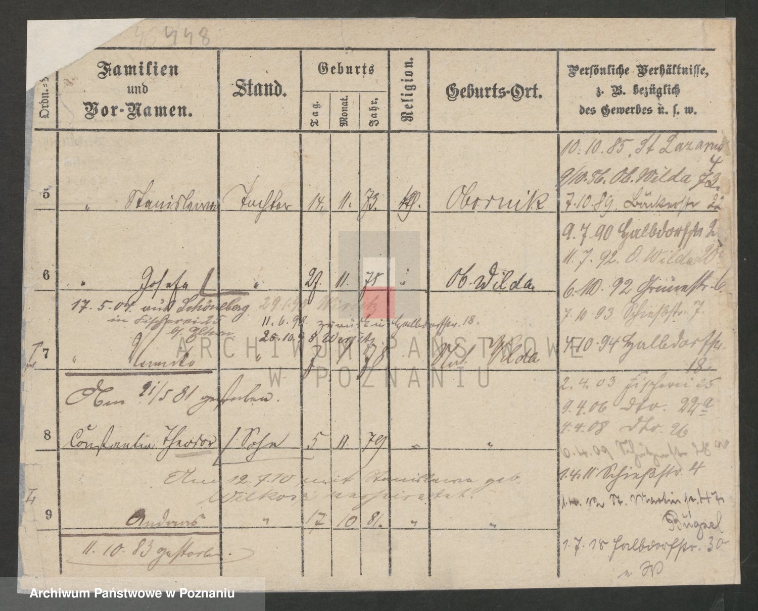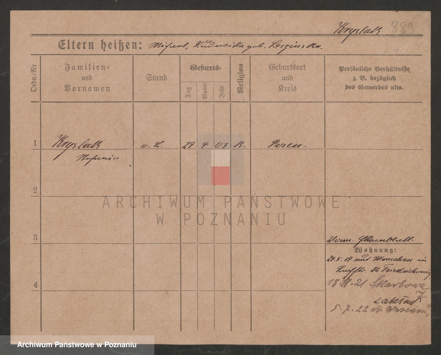 Podgląd karty osobowej dostępny jest po kliknięciu na nazwisko lub ikonkę karty. Można dokonywać powiększenia (ikony na górze) lub przechodzić między kolejnymi skanami (strzałki po bokach).