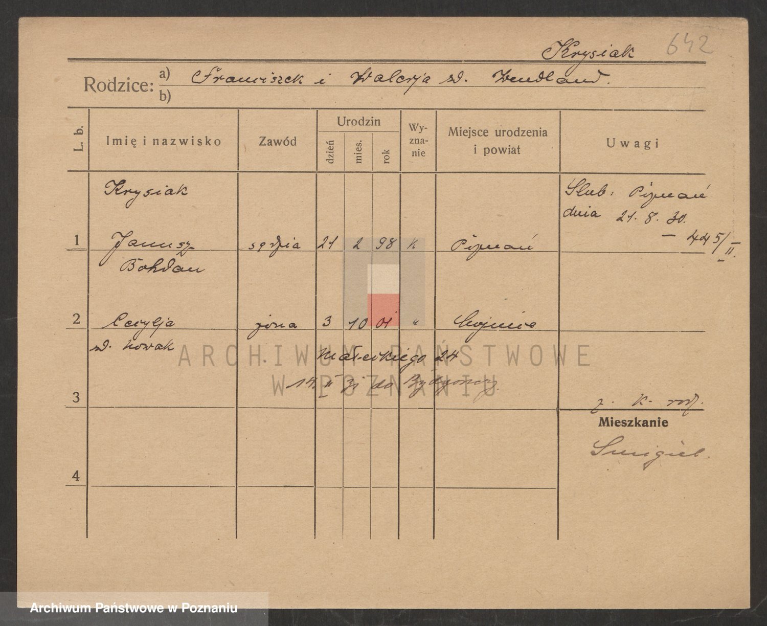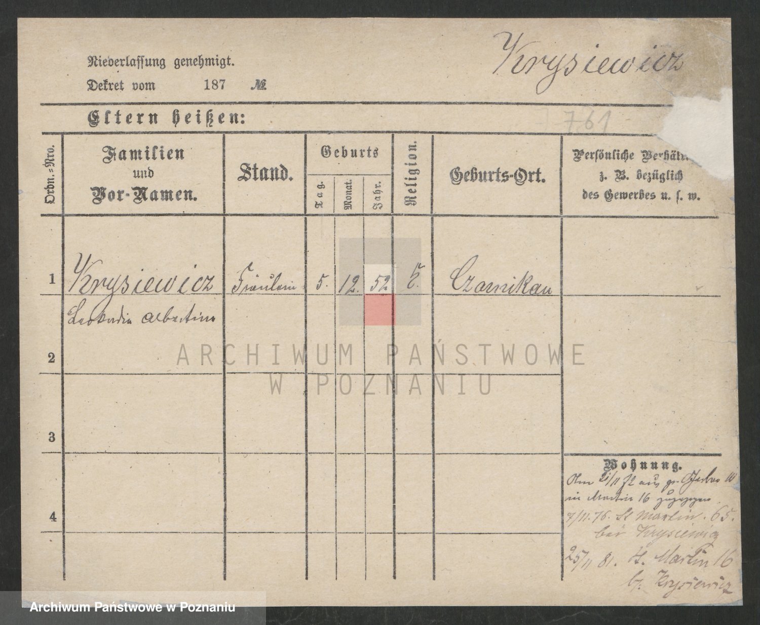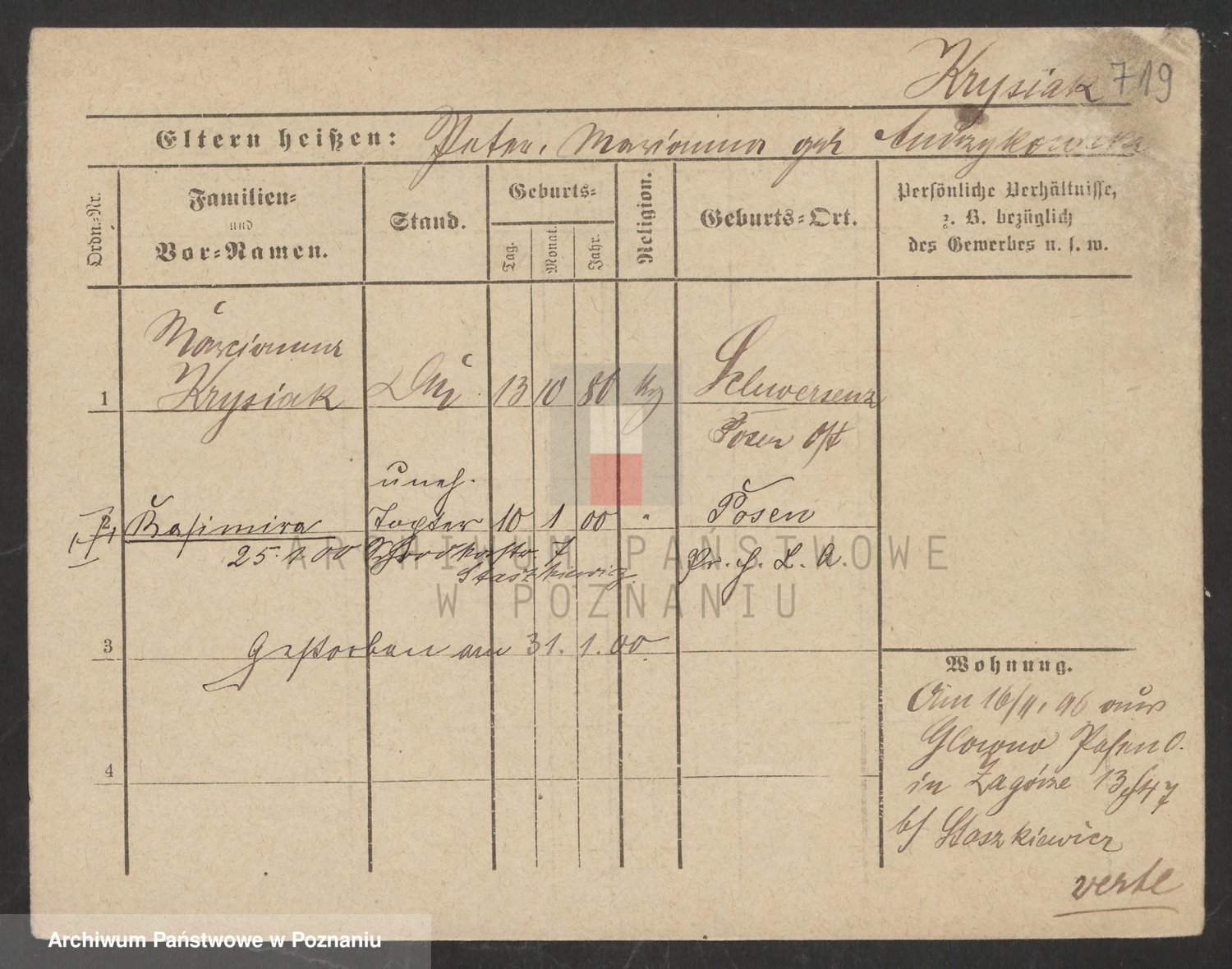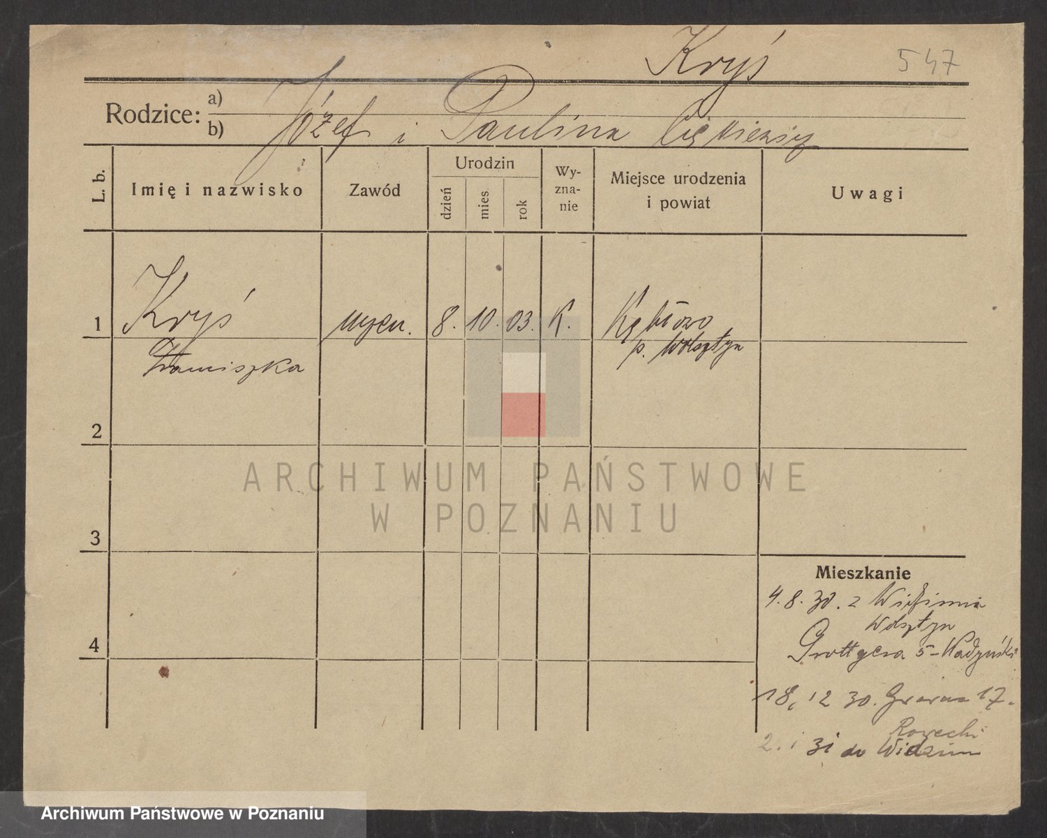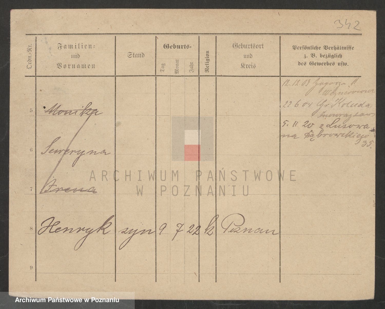 Podgląd karty osobowej dostępny jest po kliknięciu na nazwisko lub ikonkę karty. Można dokonywać powiększenia (ikony na górze) lub przechodzić między kolejnymi skanami (strzałki po bokach).