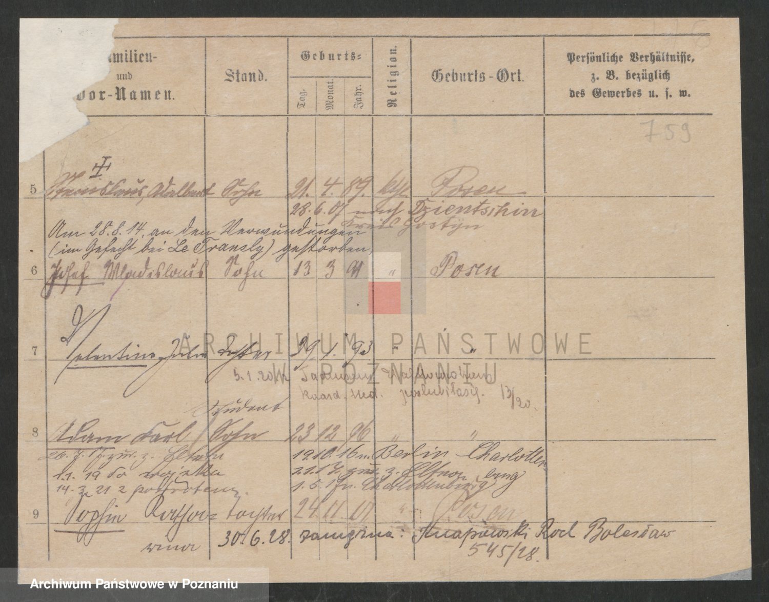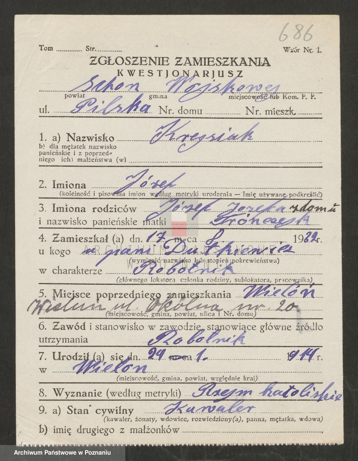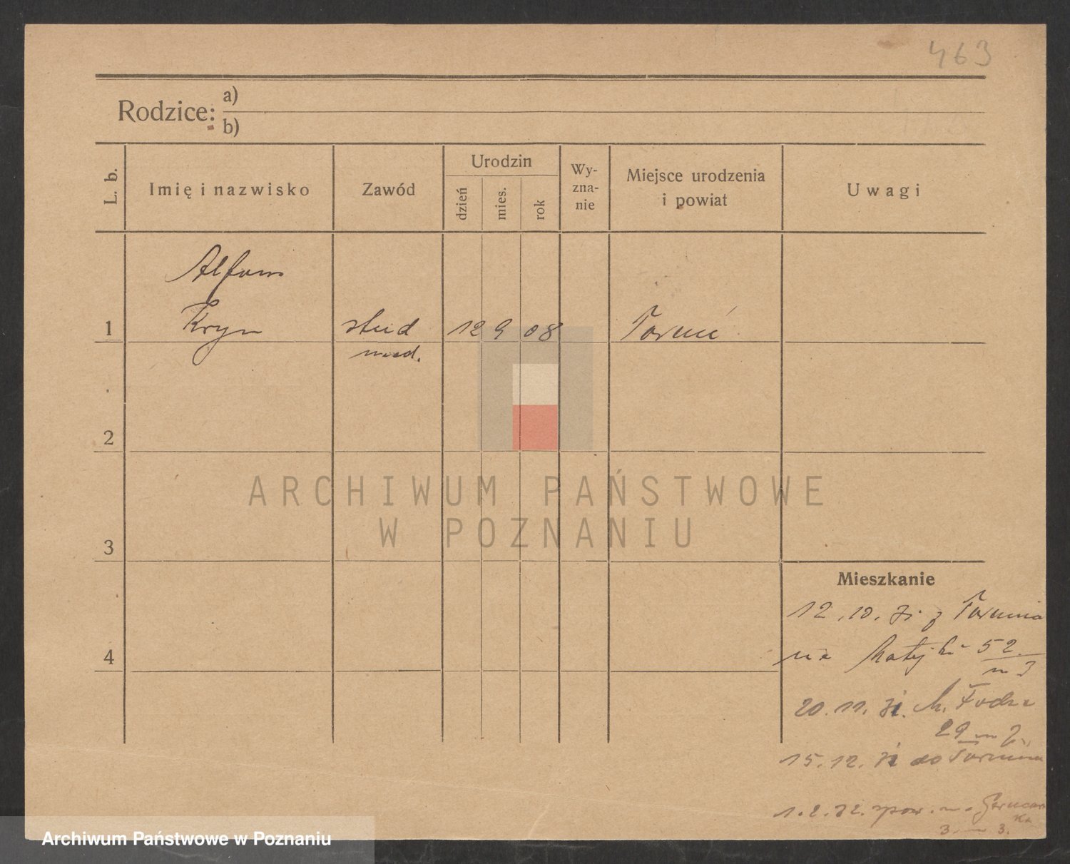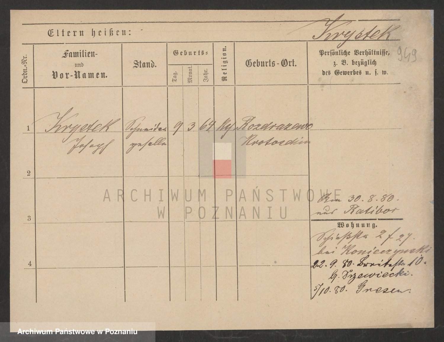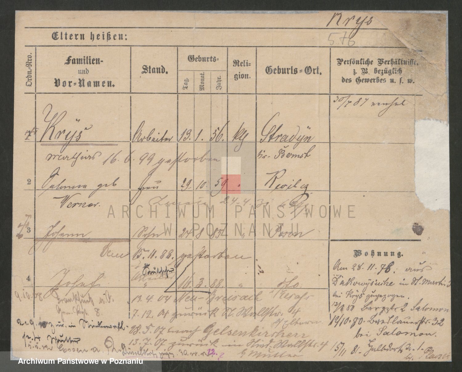 Podgląd karty osobowej dostępny jest po kliknięciu na nazwisko lub ikonkę karty. Można dokonywać powiększenia (ikony na górze) lub przechodzić między kolejnymi skanami (strzałki po bokach).