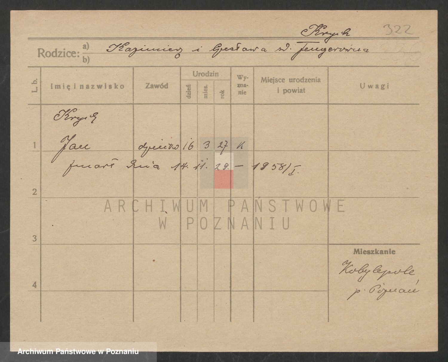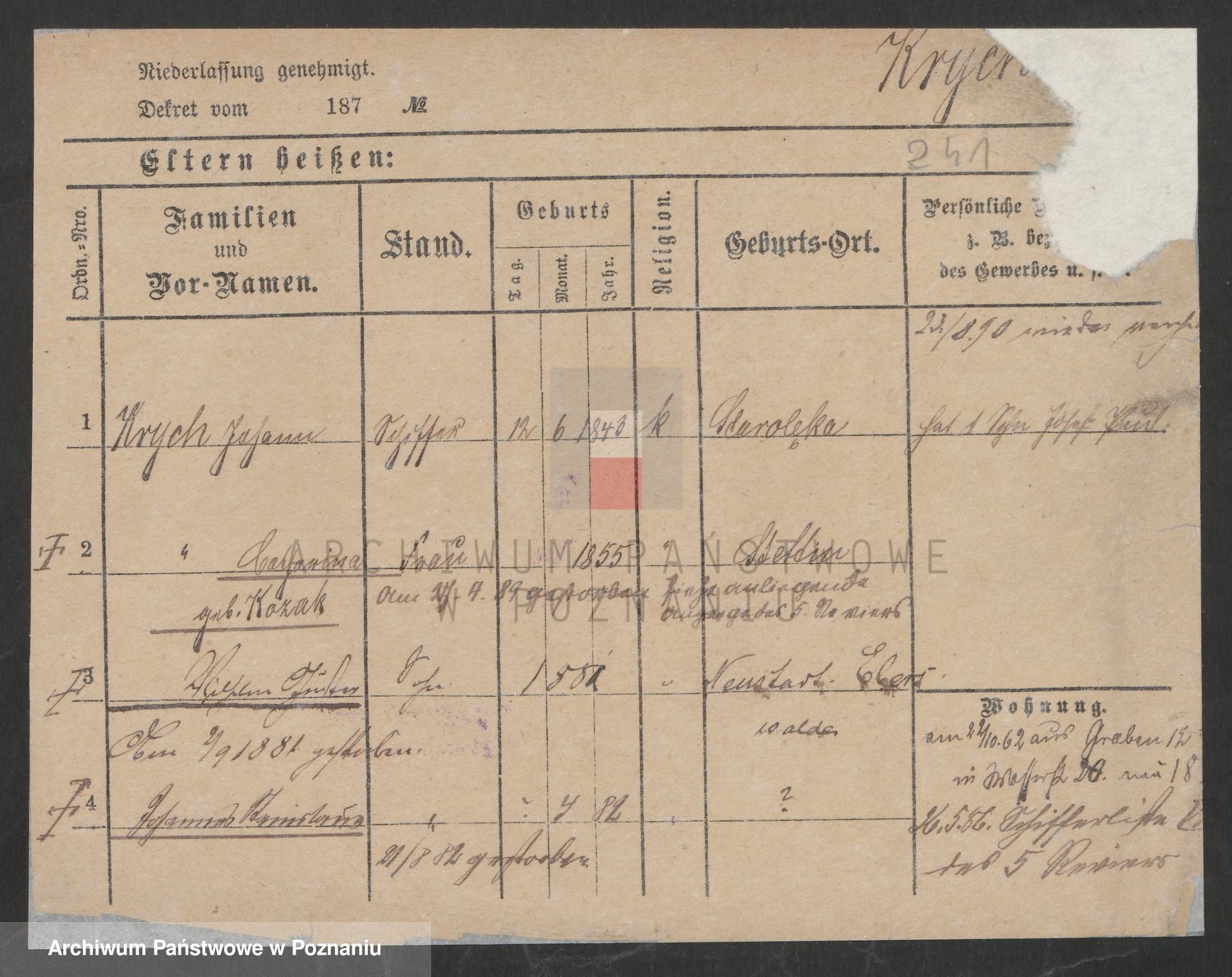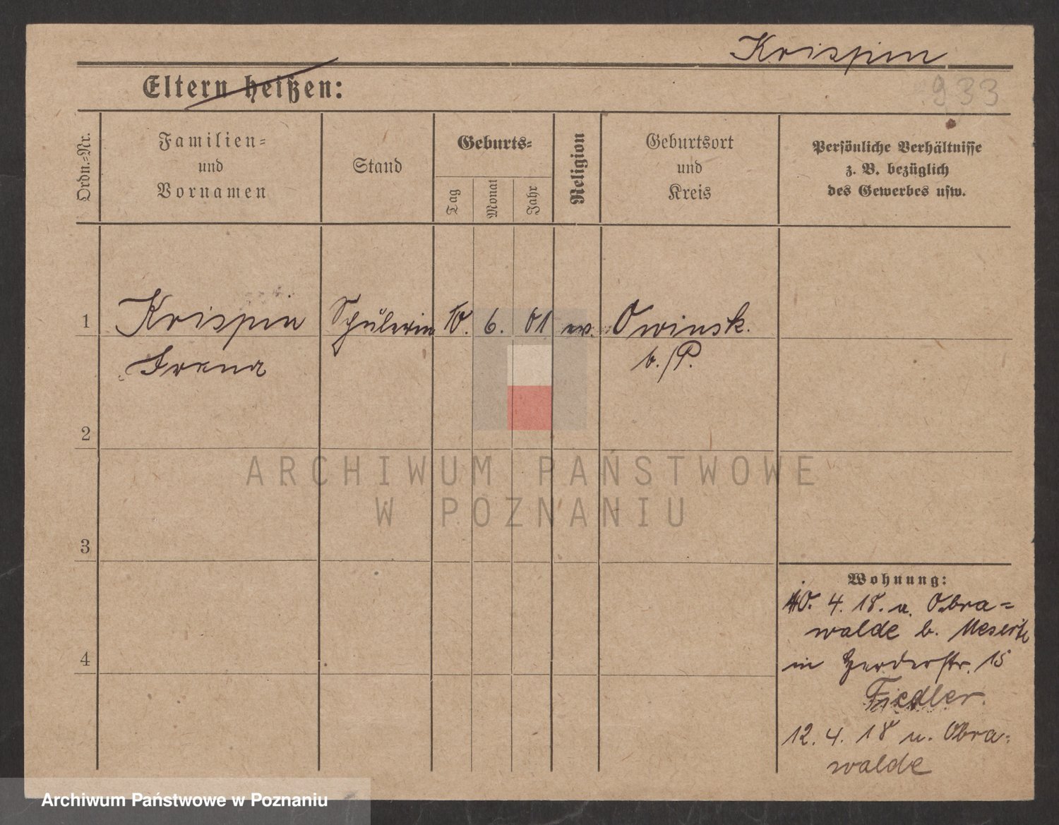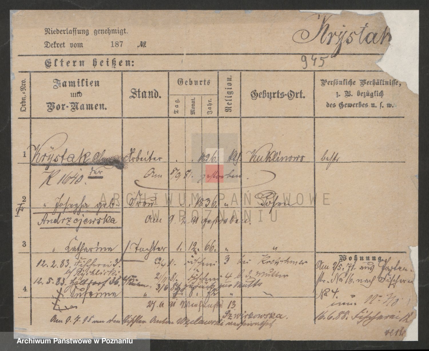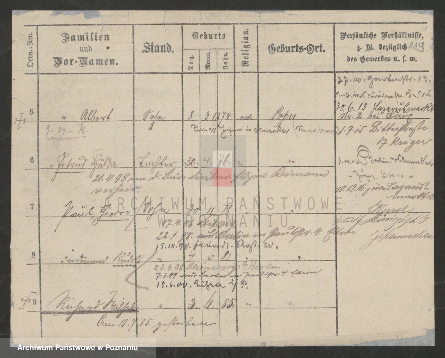 Podgląd karty osobowej dostępny jest po kliknięciu na nazwisko lub ikonkę karty. Można dokonywać powiększenia (ikony na górze) lub przechodzić między kolejnymi skanami (strzałki po bokach).