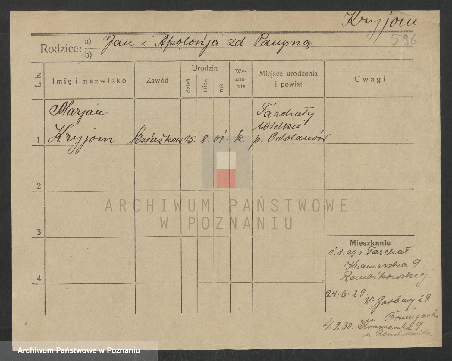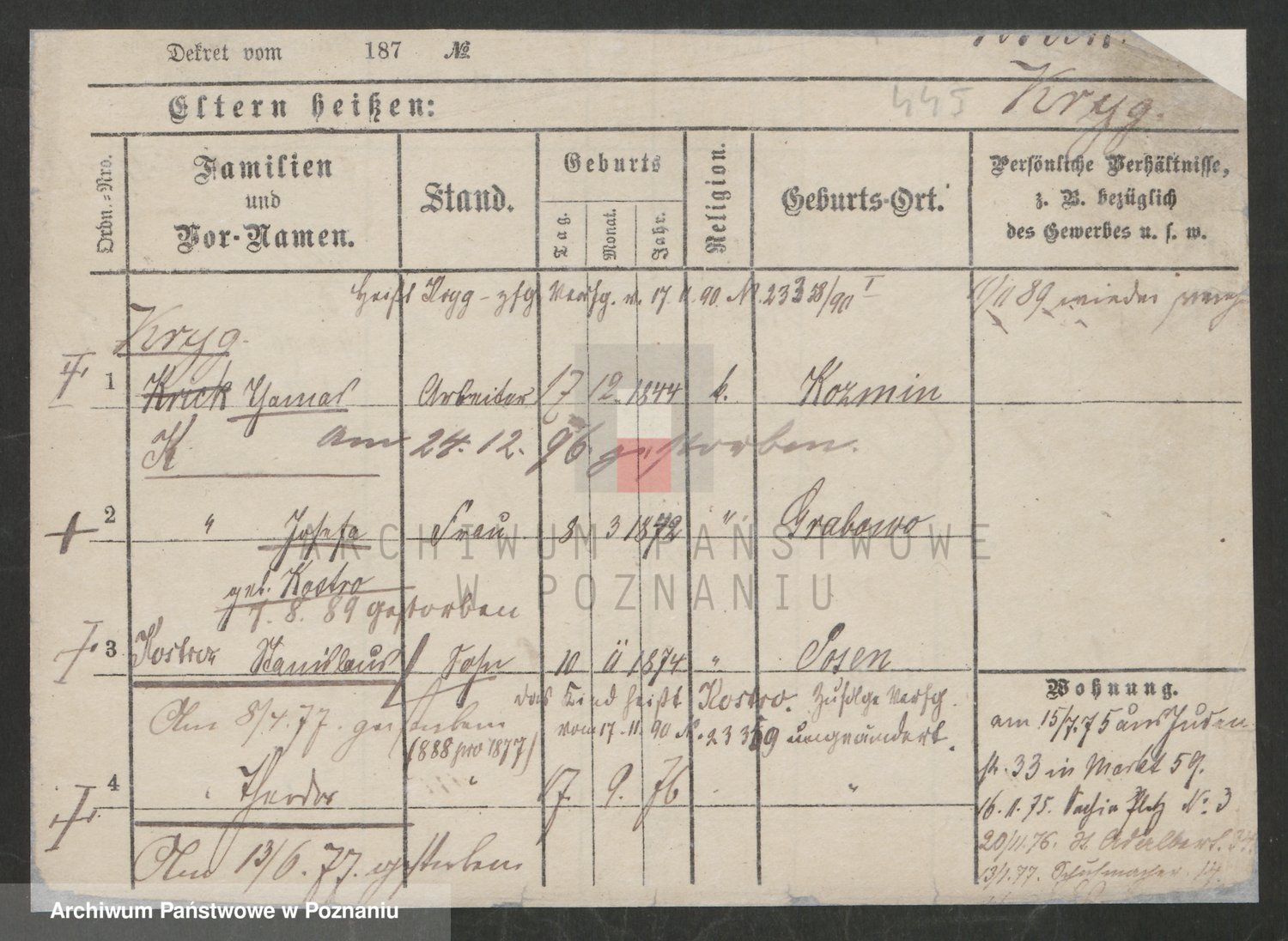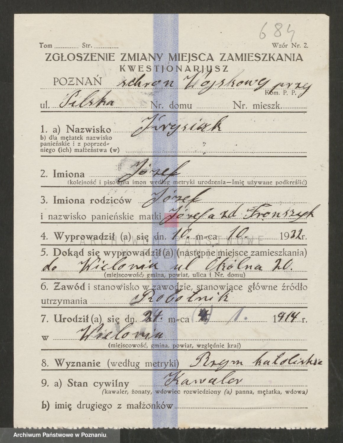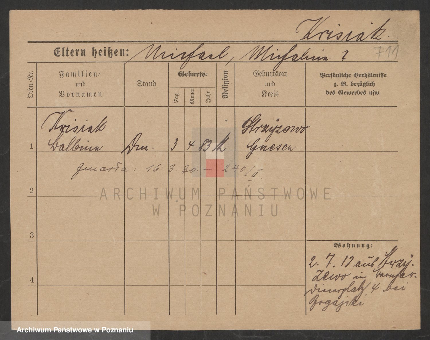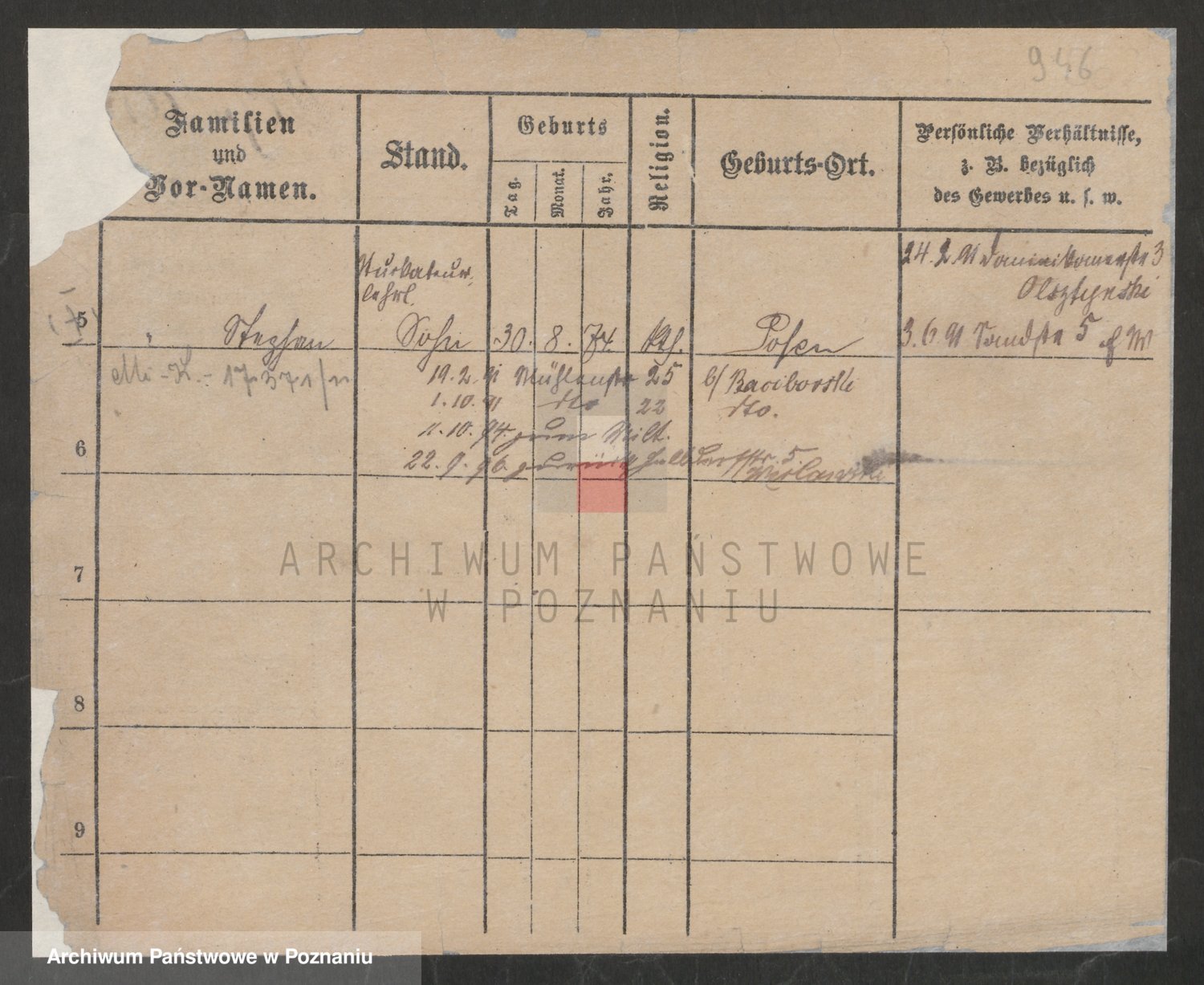 Podgląd karty osobowej dostępny jest po kliknięciu na nazwisko lub ikonkę karty. Można dokonywać powiększenia (ikony na górze) lub przechodzić między kolejnymi skanami (strzałki po bokach).