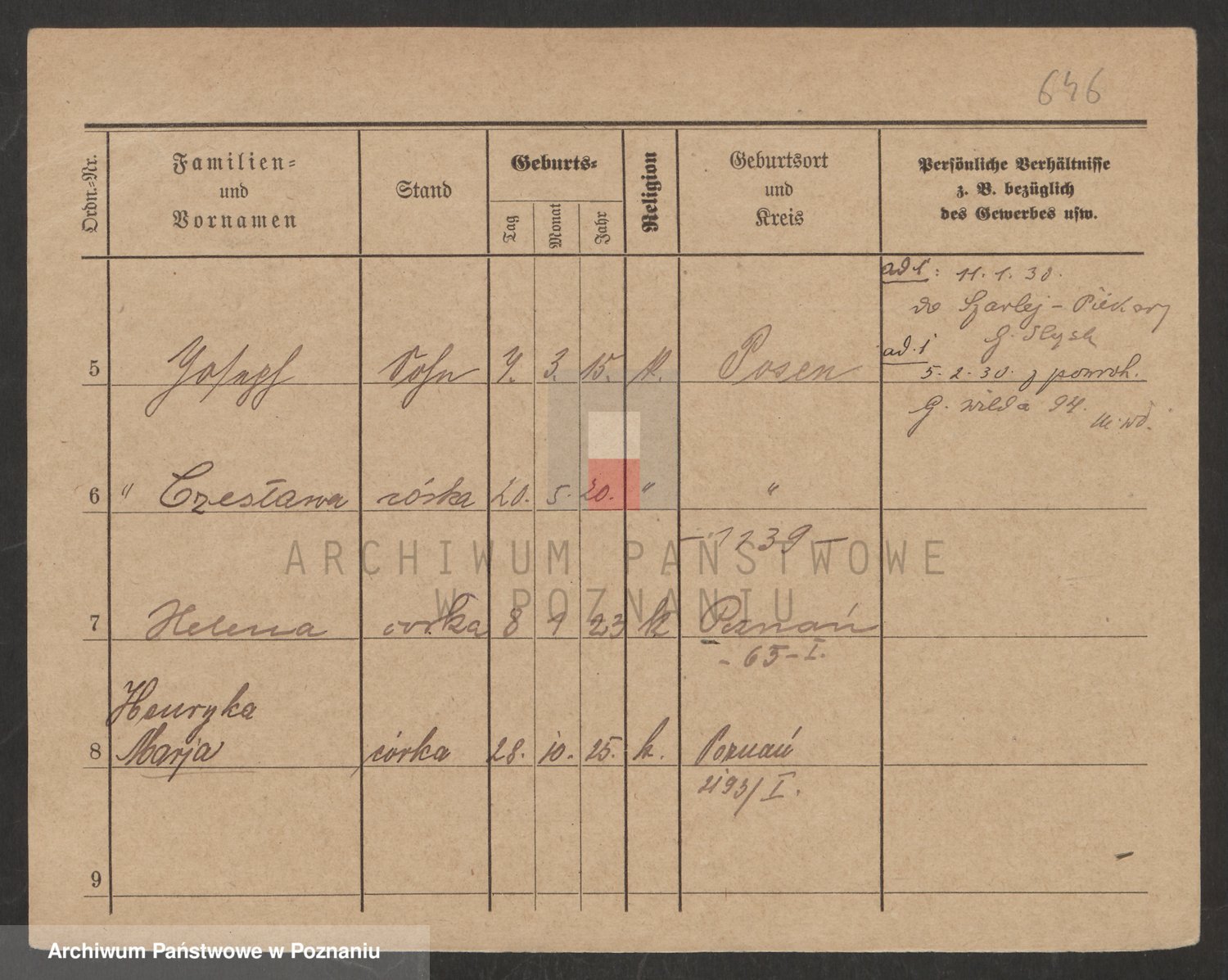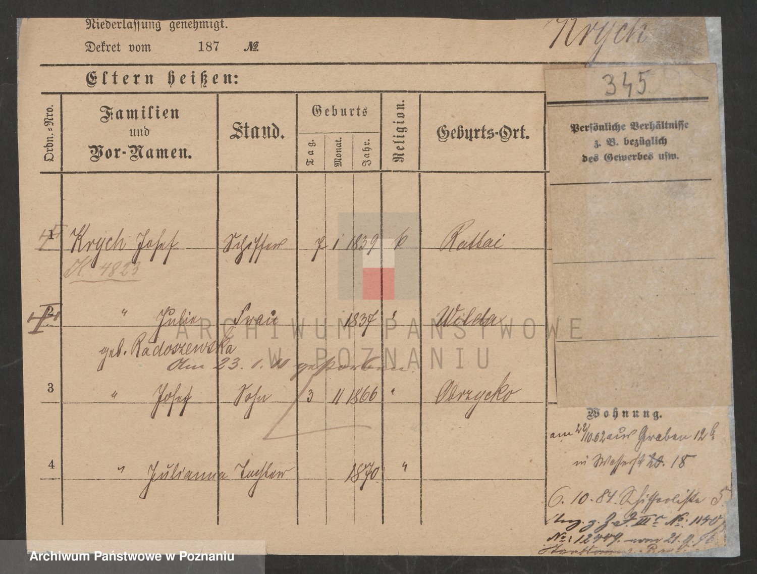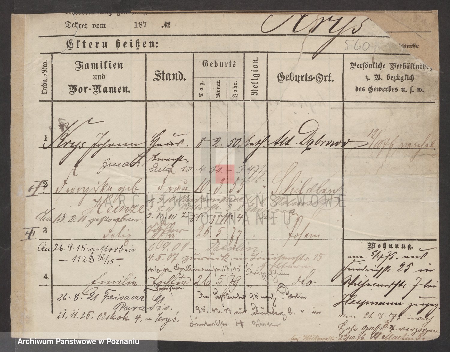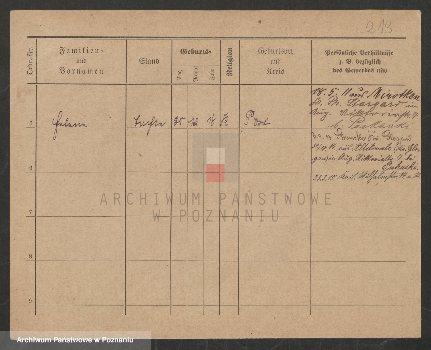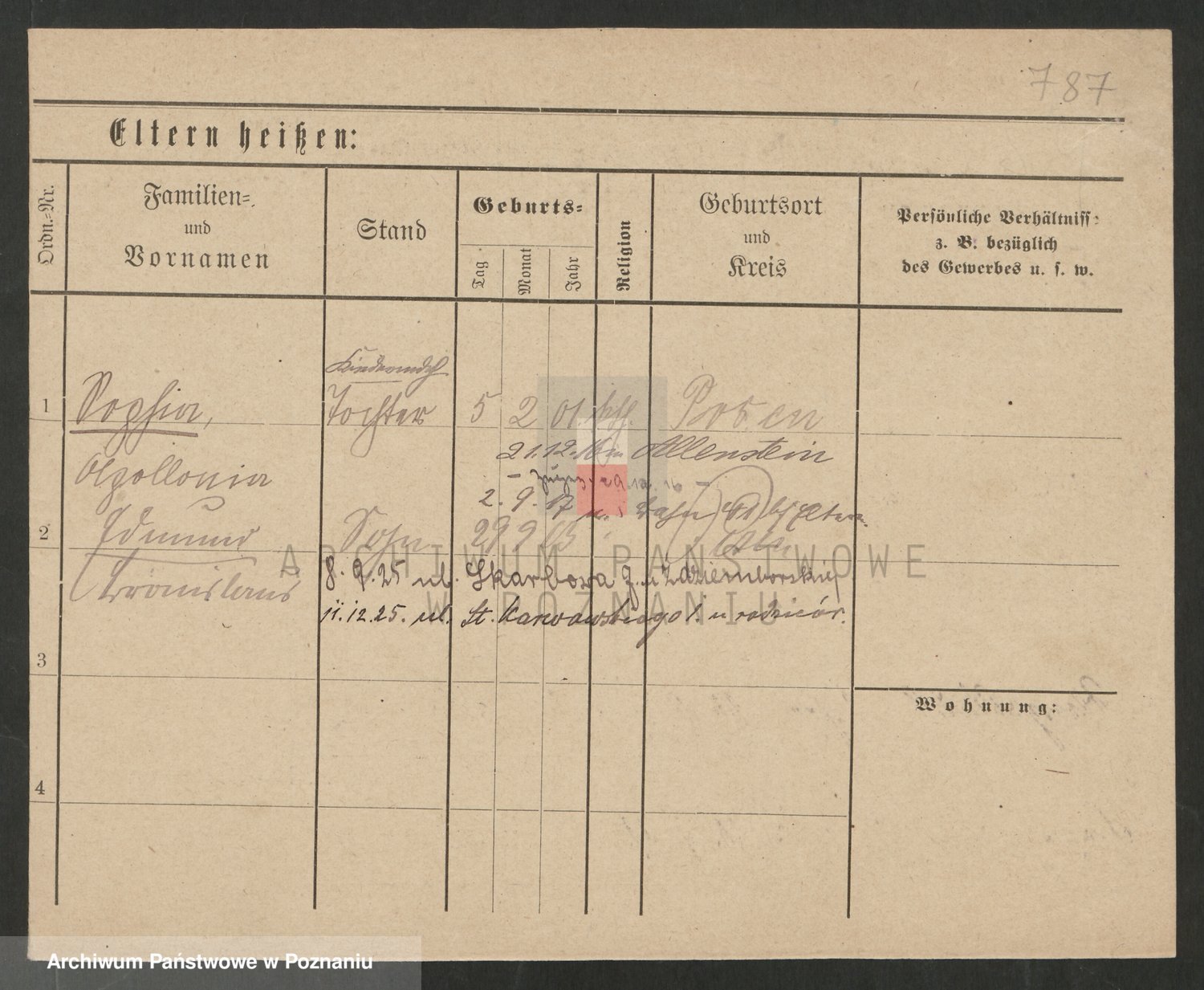 Podgląd karty osobowej dostępny jest po kliknięciu na nazwisko lub ikonkę karty. Można dokonywać powiększenia (ikony na górze) lub przechodzić między kolejnymi skanami (strzałki po bokach).