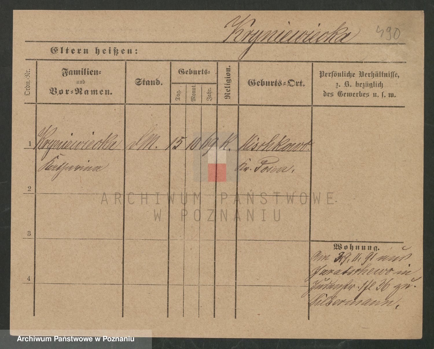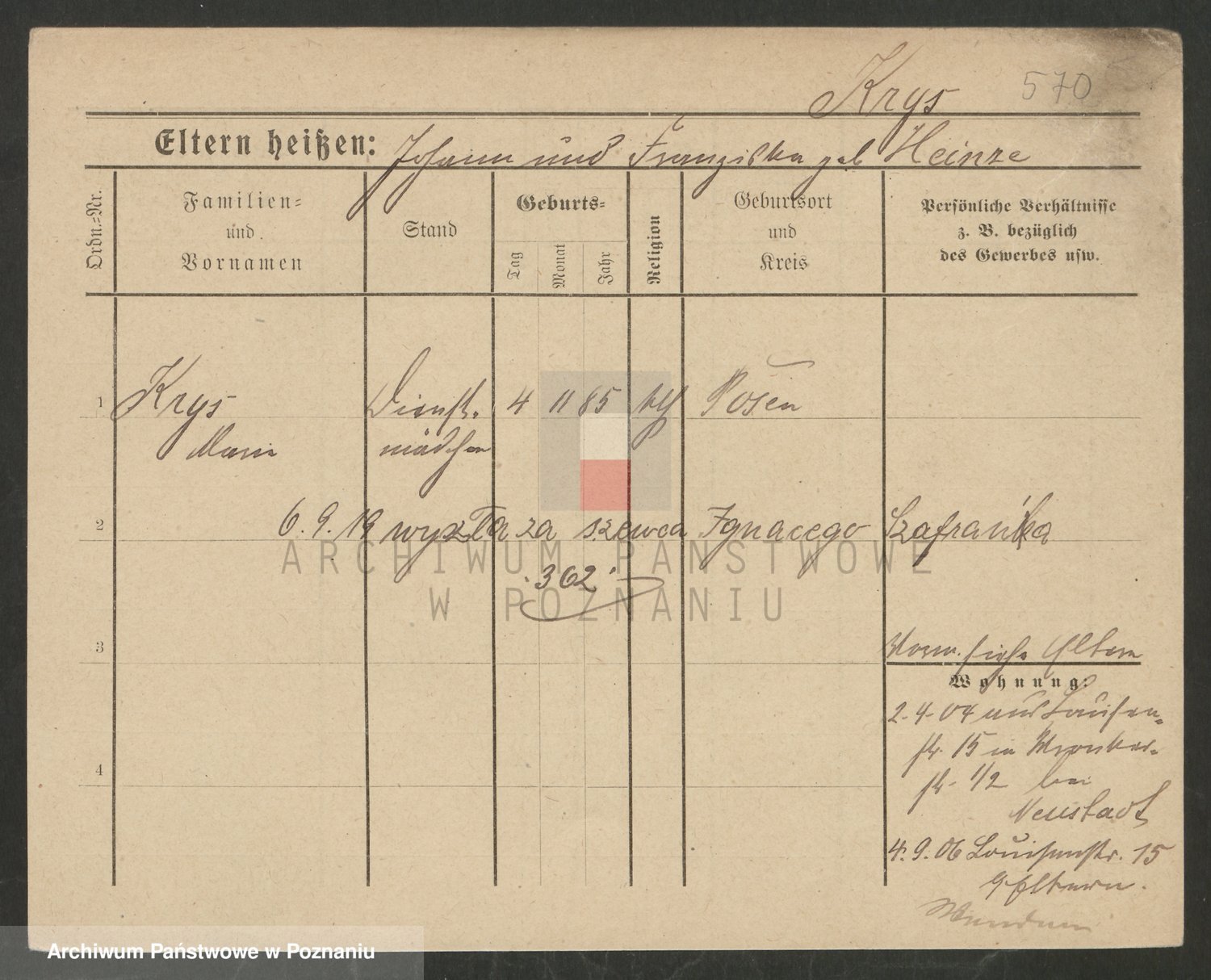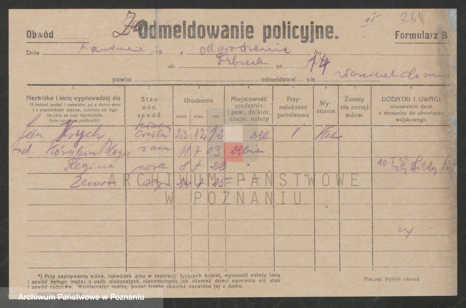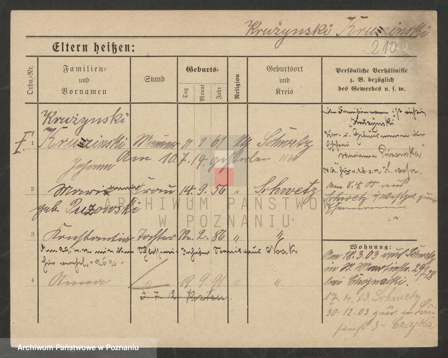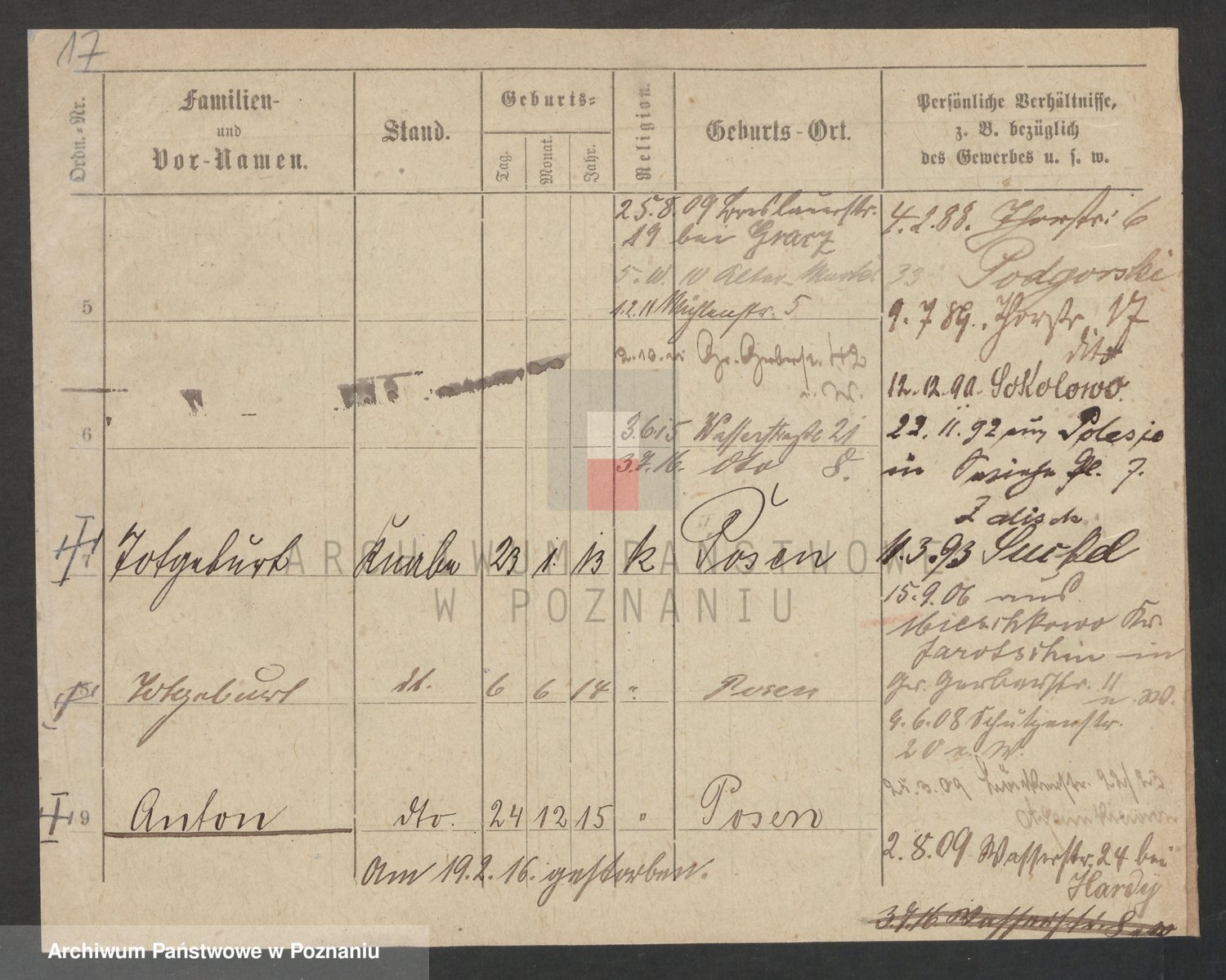 Podgląd karty osobowej dostępny jest po kliknięciu na nazwisko lub ikonkę karty. Można dokonywać powiększenia (ikony na górze) lub przechodzić między kolejnymi skanami (strzałki po bokach).