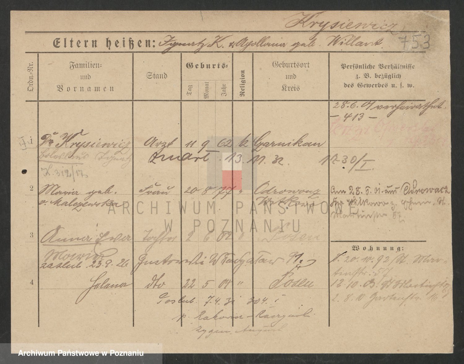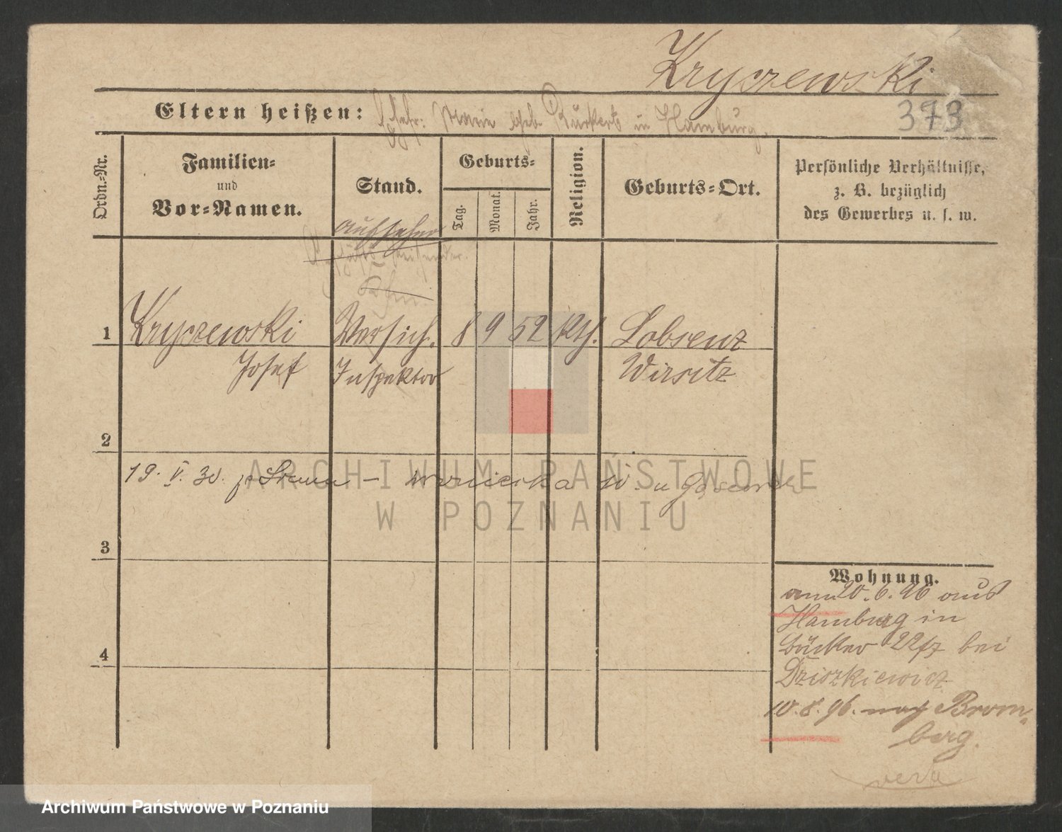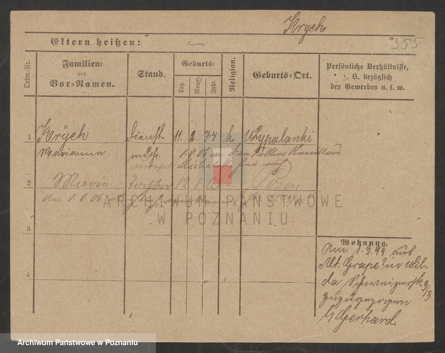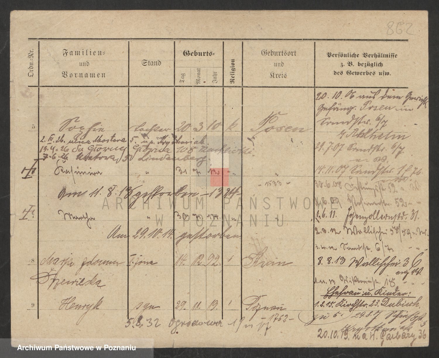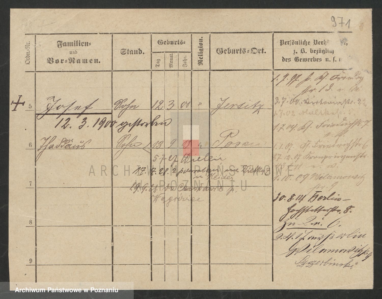 Podgląd karty osobowej dostępny jest po kliknięciu na nazwisko lub ikonkę karty. Można dokonywać powiększenia (ikony na górze) lub przechodzić między kolejnymi skanami (strzałki po bokach).