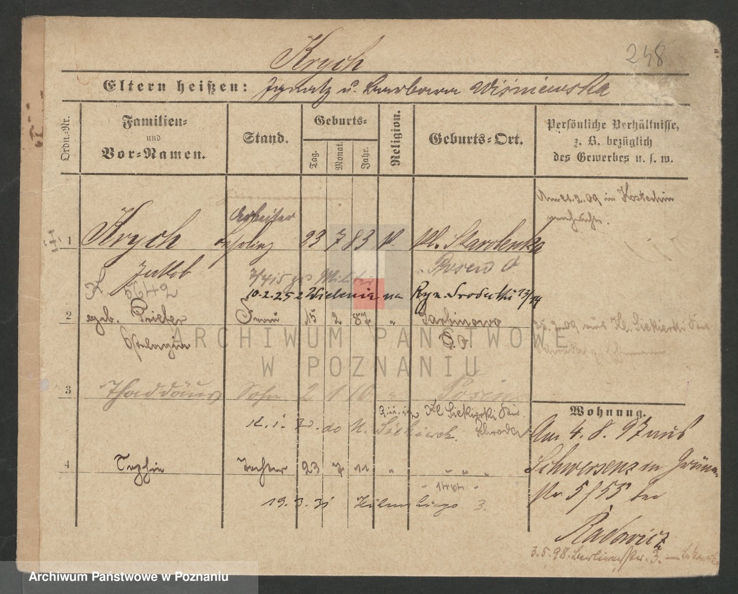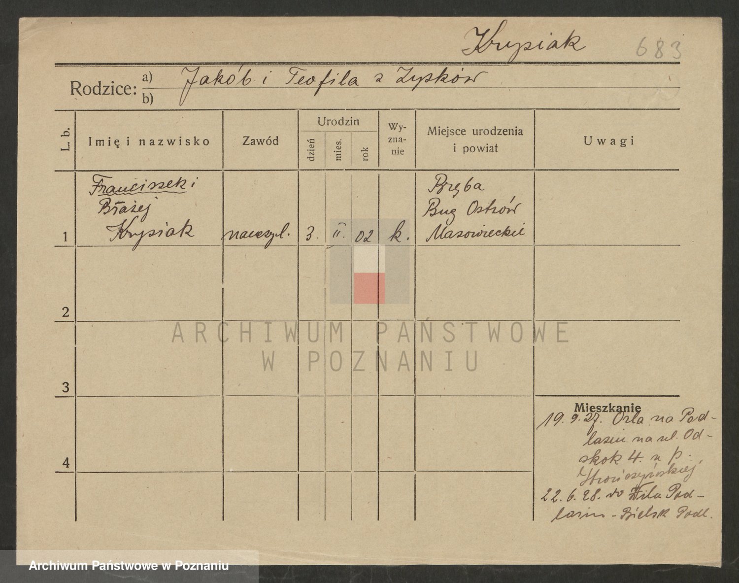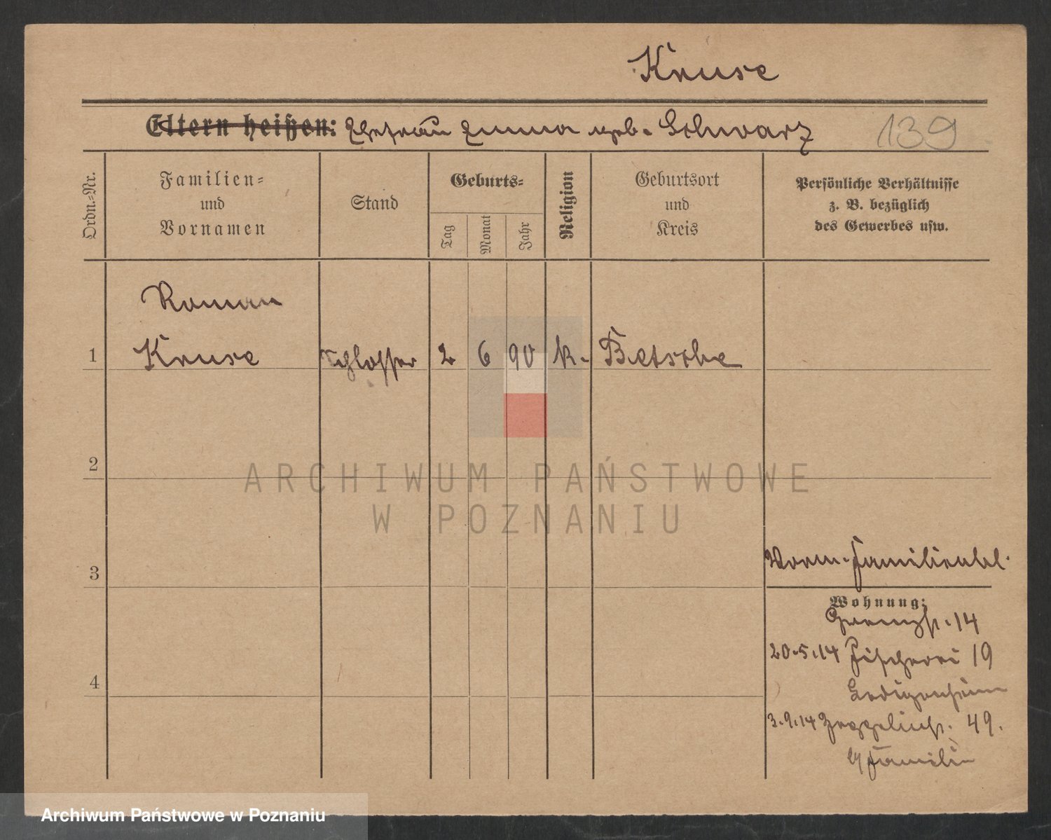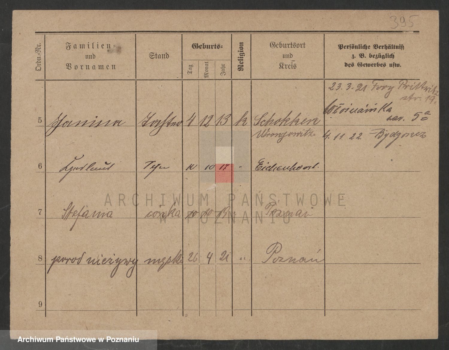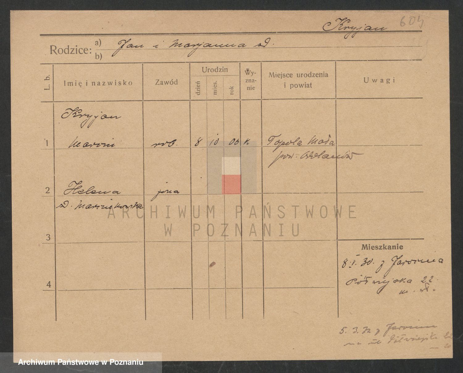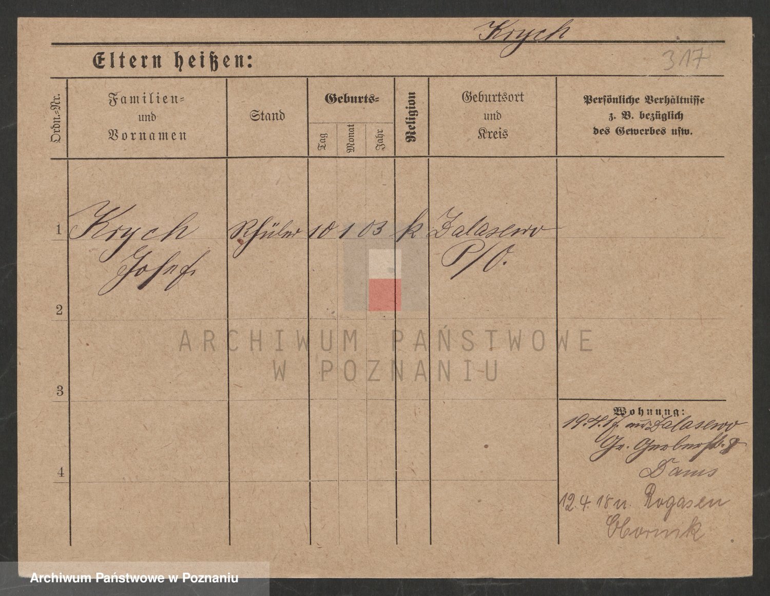 Podgląd karty osobowej dostępny jest po kliknięciu na nazwisko lub ikonkę karty. Można dokonywać powiększenia (ikony na górze) lub przechodzić między kolejnymi skanami (strzałki po bokach).